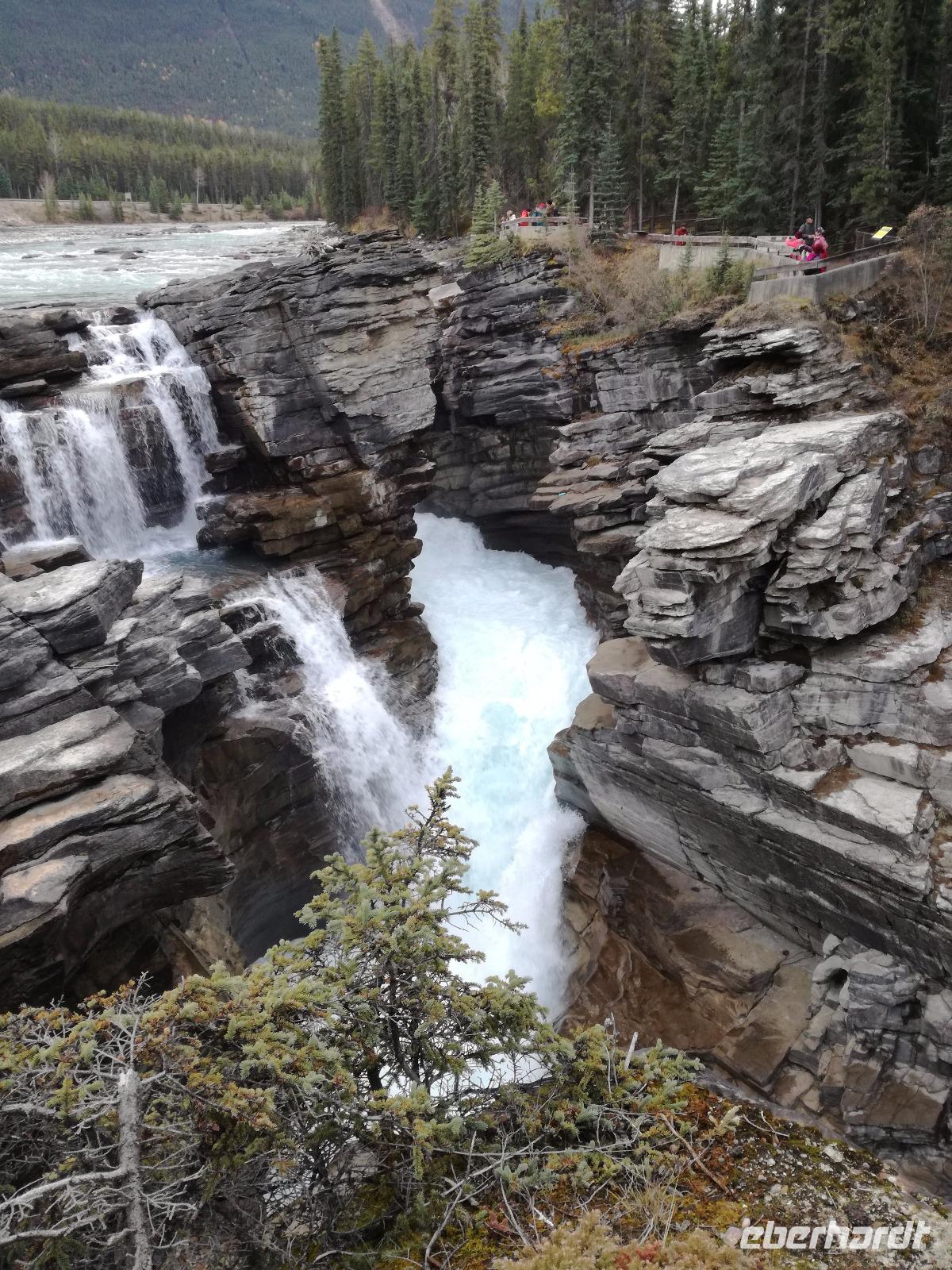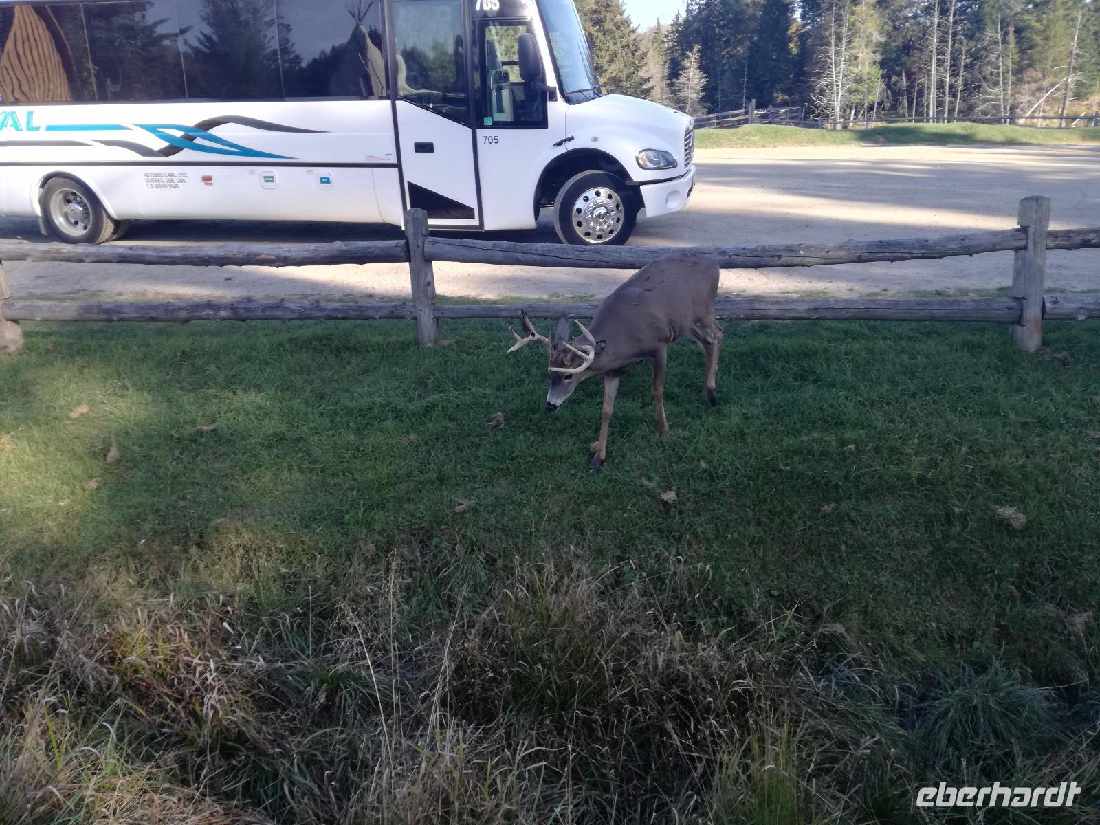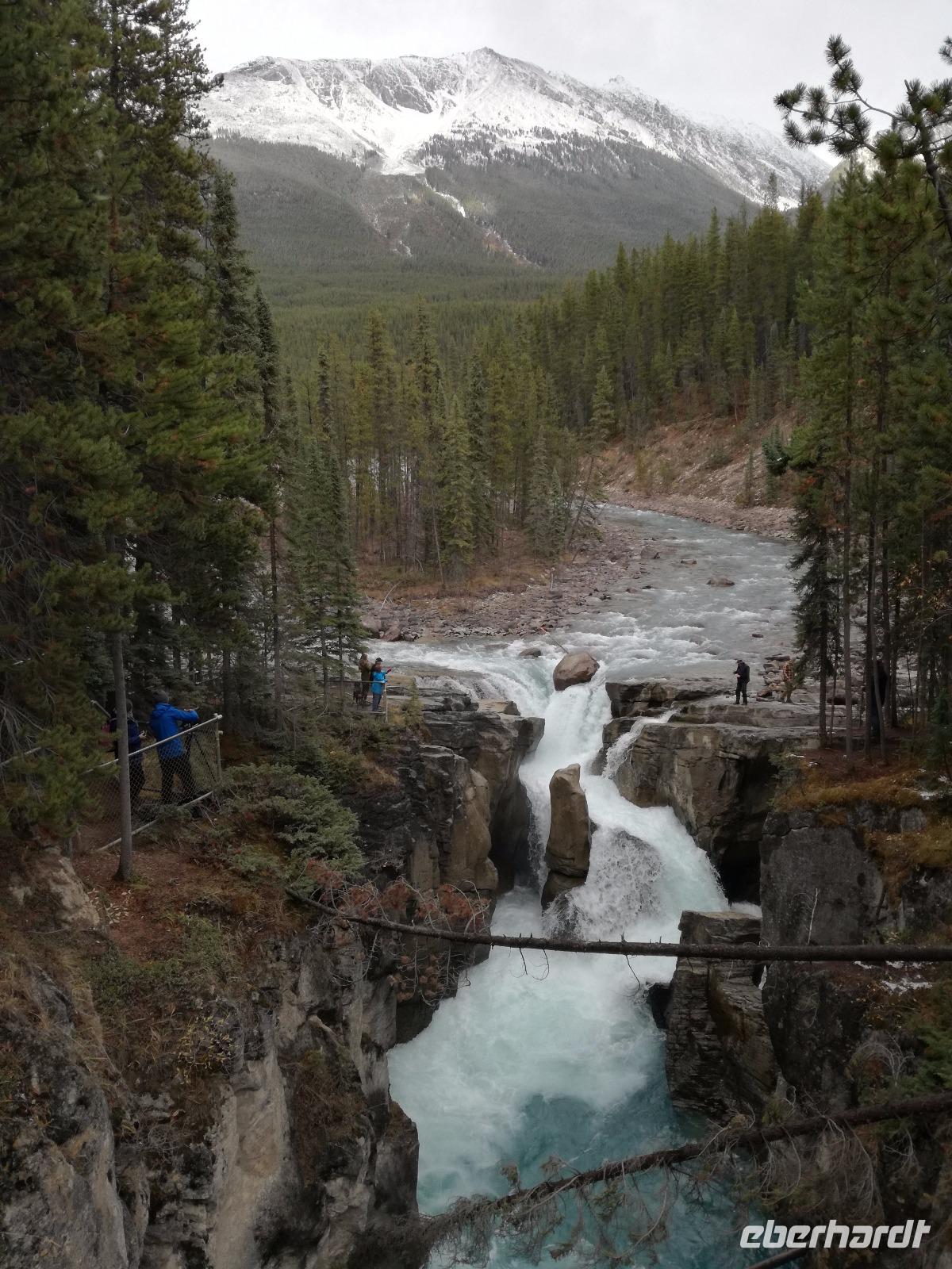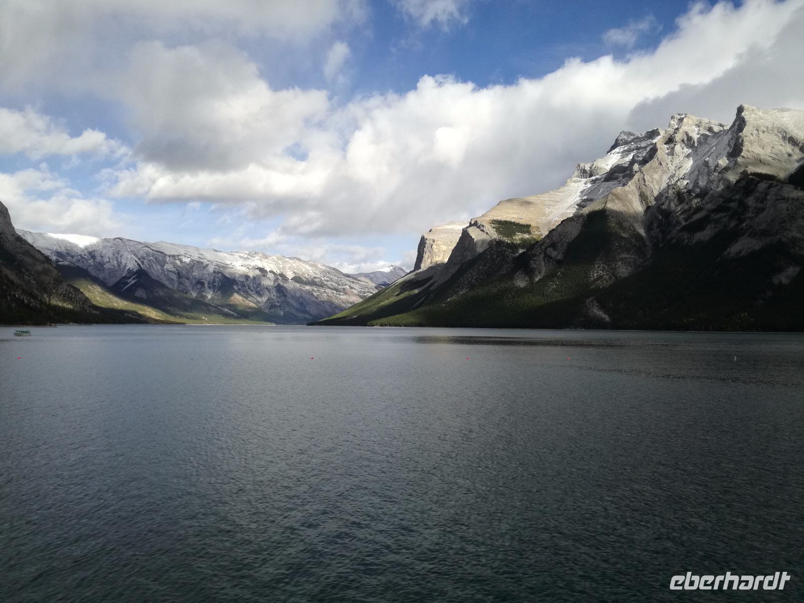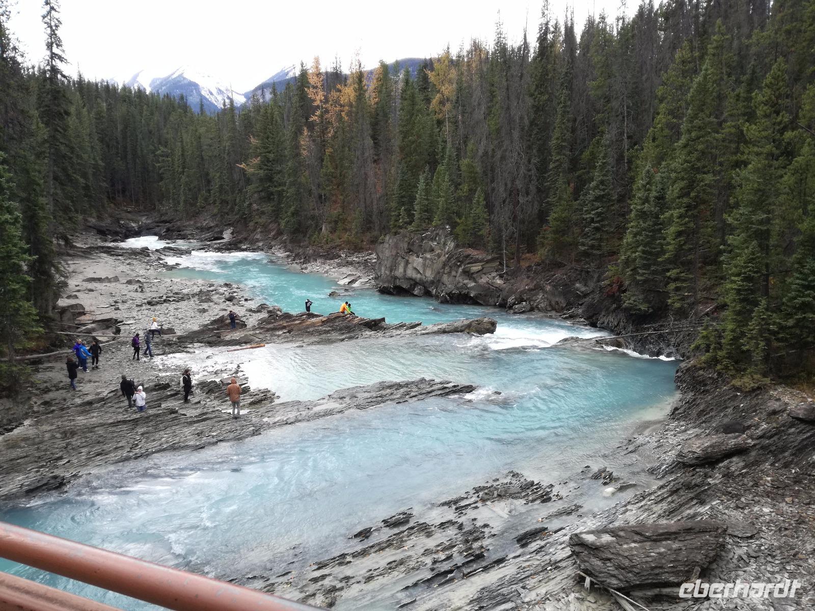 Nach einer gemütlichen und ruhigen Nacht in unseren Bungalows brachen wir nach dem Frühstück auf. Unser Ziel der berühmte Japser Nationalpark und zunächst einmal die Athabasca Fälle. Die 23 Meter hohen Fälle sind besonders für Ihre Kraft bekannt, mit der die Wassermassen durch den Berg fließen. Nach dem Aufenthalt an den Fällen fuhren wir weiter in Richtung Maligne Lake. Während der Busfahrt sahen wir zwei Wapitis am Straßenrand grasen. Weiter ging es zum Maligne Lake. Während sich die ersten bereits mit Kaffee und Essen stärkten, entdecken 2 Gäste plötzlich Elche auf einem abgelegenen Parkplatz. Schnell wurde die Gruppe informiert und wir konnten alle ein schönes Bild von den gemütlich erscheinenden Tieren machen. Nach dieser Bekanntschaft stand noch ein Spaziergang entlang des Seeufers auf dem Programm. Nach der kleinen Wanderung kehrten wir alle in ein Restaurant ein und wärmten uns mit Suppe und Kaffee. Nach der Mittagspause fuhren wir weiter zum Maligne Canyon. Über mehrere Brücken passierten wir die tiefen Schluchten des Canyons. Auch hier erkannte man wieder die Kraft der Wassermassen, da die Steinfelsen rundförmig durch die Strömung abgetragen wurden. Als wir zurück zum Bus liefen, entdeckten wir wieder Wapitis, die vorm Bus grasten. Unseren letzten Halt des Tages machten wir in der Provinzstadt Jasper, wo wir ausreichend Zeit zum Bummel oder spazieren hatten, bevor wir zurück zur unserer Lodge fuhren.