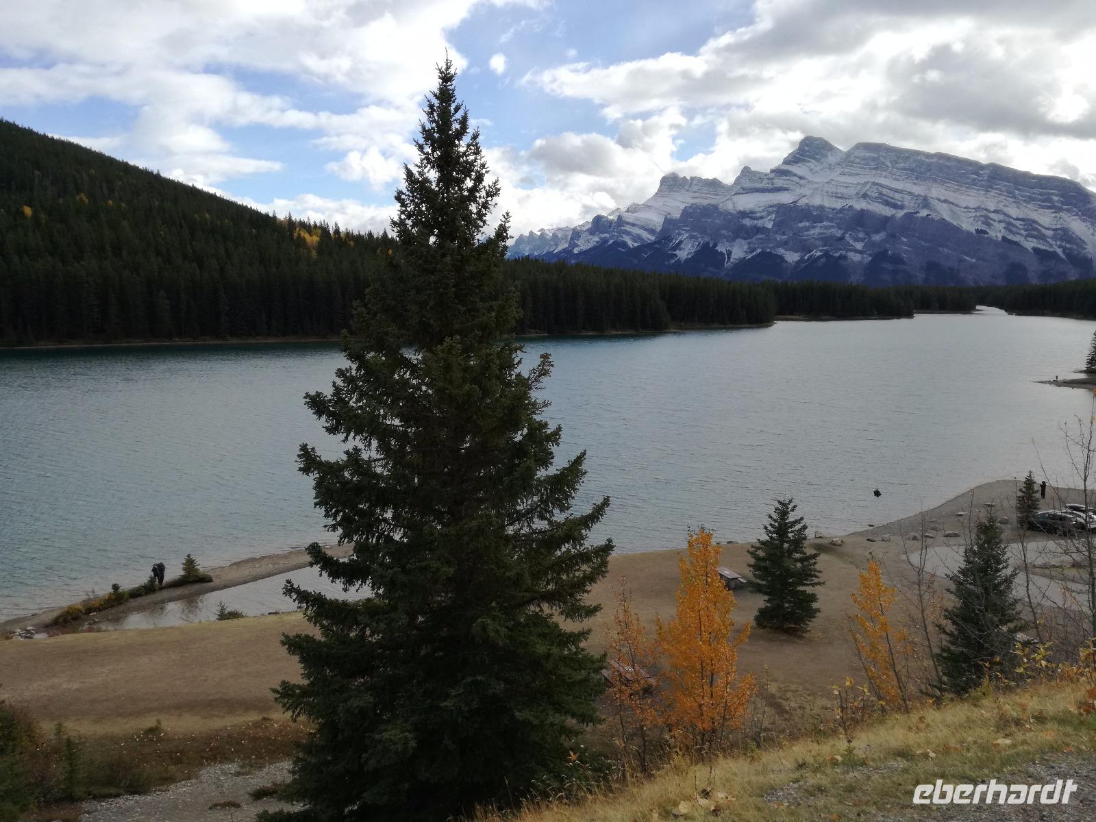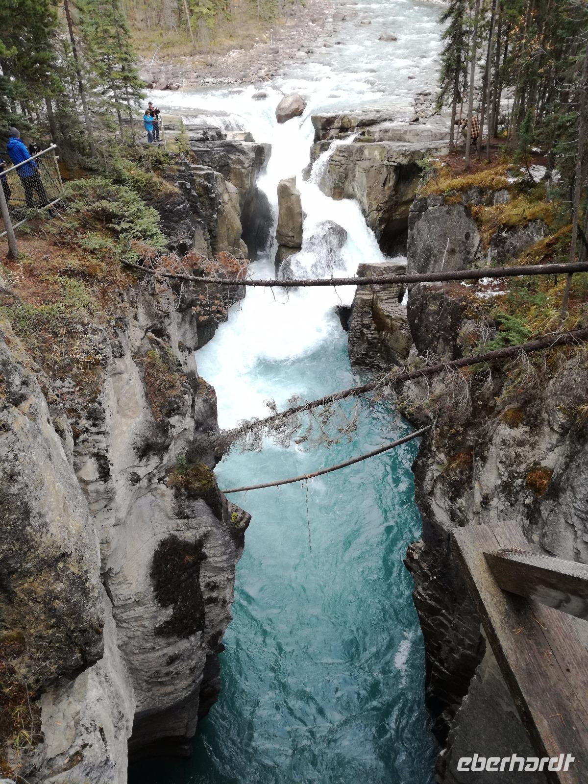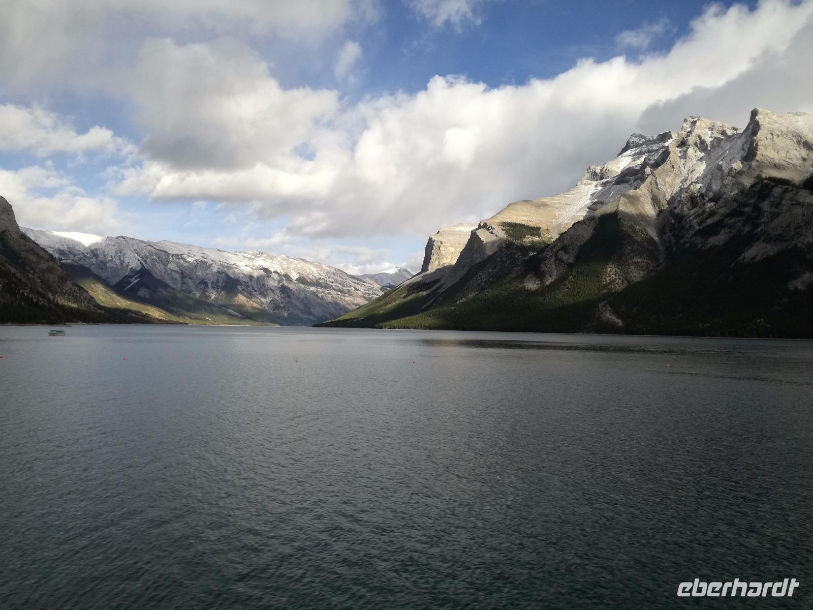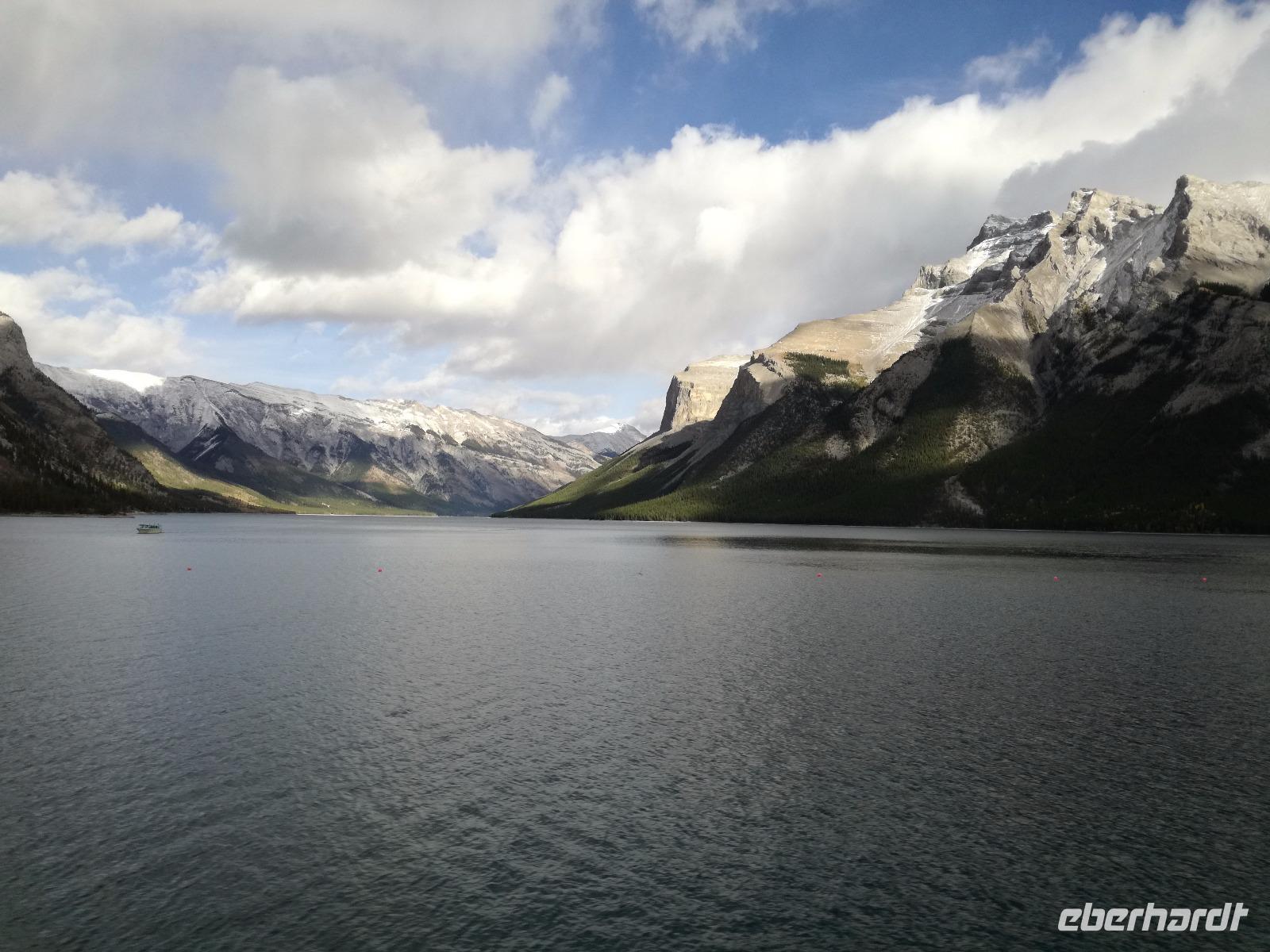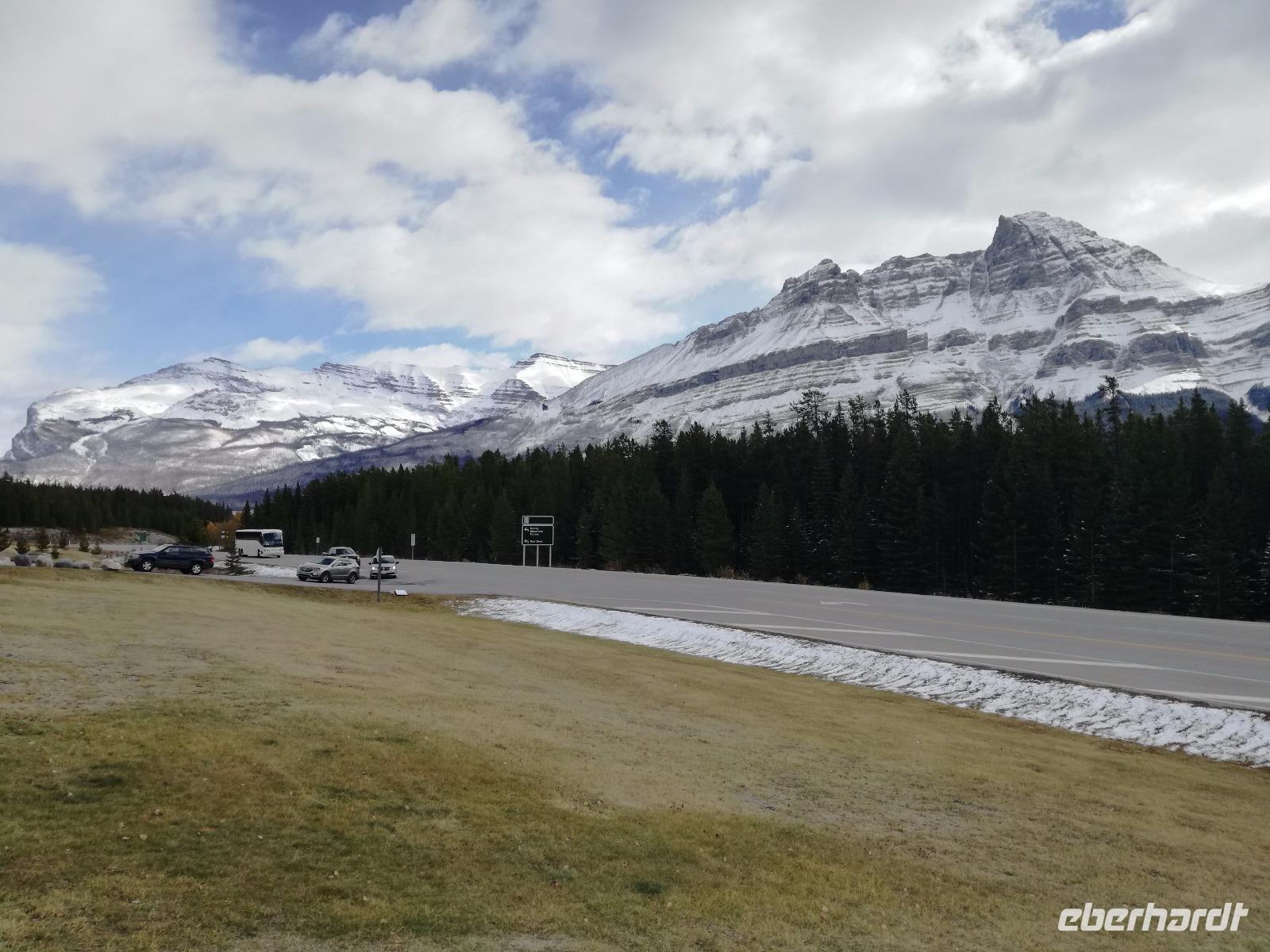 Nach einer gemütlichen und ruhigen Nacht in unseren Bungalows brachen wir nach dem Frühstück auf. Unser Ziel der berühmte Japser Nationalpark und zunächst einmal die Athabasca Fälle. Die 23 Meter hohen Fälle sind besonders für Ihre Kraft bekannt, mit der die Wassermassen durch den Berg fließen. Nach dem Aufenthalt an den Fällen fuhren wir weiter in Richtung Maligne Lake. Während der Busfahrt sahen wir zwei Wapitis am Straßenrand grasen. Weiter ging es zum Maligne Lake. Während sich die ersten bereits mit Kaffee und Essen stärkten, entdecken 2 Gäste plötzlich Elche auf einem abgelegenen Parkplatz. Schnell wurde die Gruppe informiert und wir konnten alle ein schönes Bild von den gemütlich erscheinenden Tieren machen. Nach dieser Bekanntschaft stand noch ein Spaziergang entlang des Seeufers auf dem Programm. Nach der kleinen Wanderung kehrten wir alle in ein Restaurant ein und wärmten uns mit Suppe und Kaffee. Nach der Mittagspause fuhren wir weiter zum Maligne Canyon. Über mehrere Brücken passierten wir die tiefen Schluchten des Canyons. Auch hier erkannte man wieder die Kraft der Wassermassen, da die Steinfelsen rundförmig durch die Strömung abgetragen wurden. Als wir zurück zum Bus liefen, entdeckten wir wieder Wapitis, die vorm Bus grasten. Unseren letzten Halt des Tages machten wir in der Provinzstadt Jasper, wo wir ausreichend Zeit zum Bummel oder spazieren hatten, bevor wir zurück zur unserer Lodge fuhren.