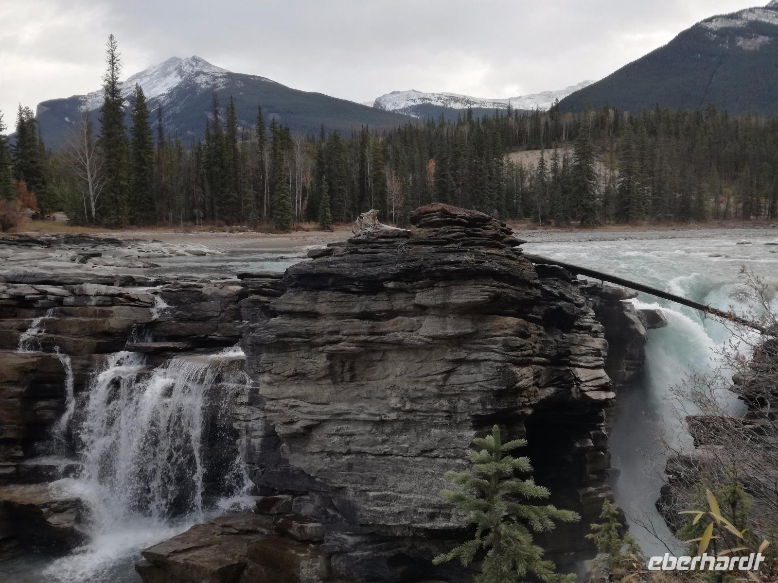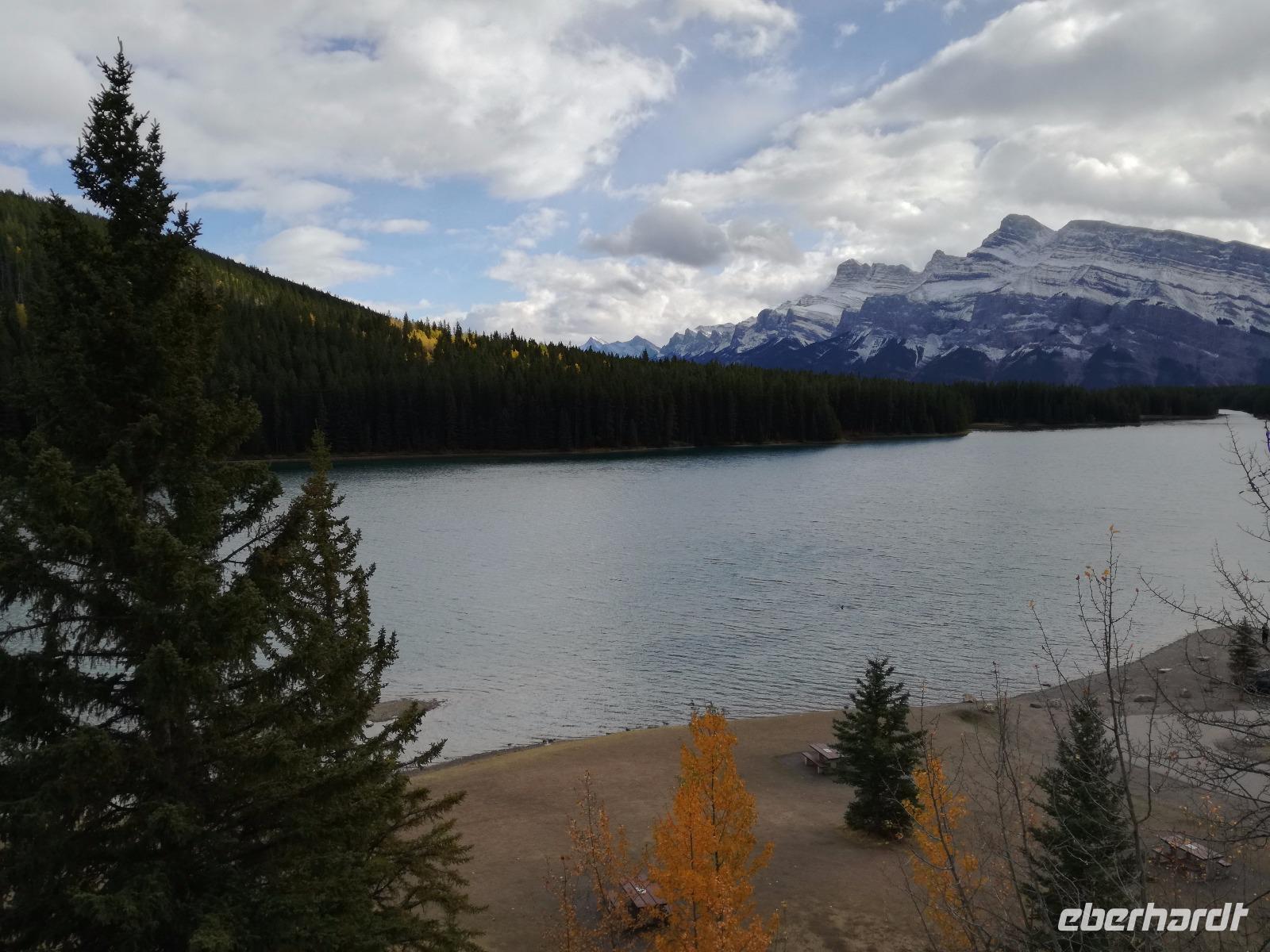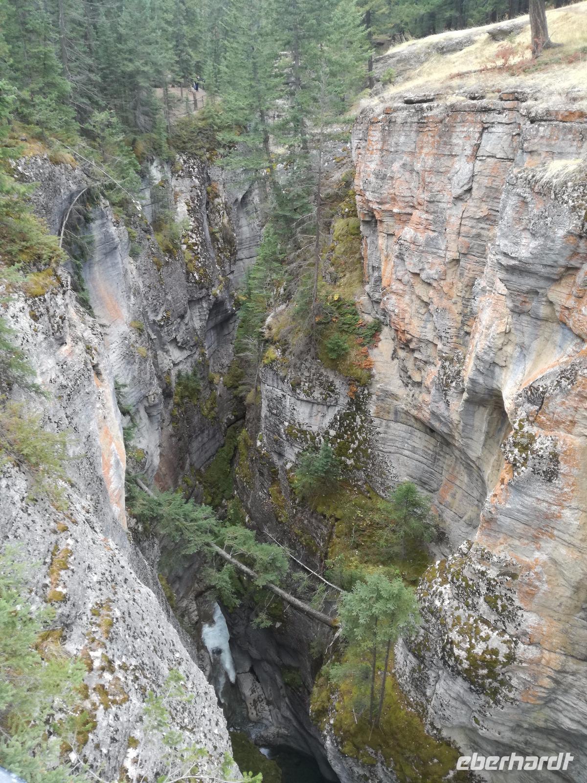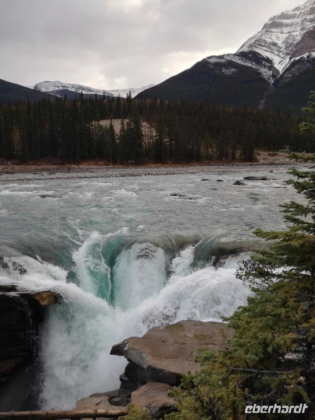 Nach einer gemütlichen und ruhigen Nacht in unseren Bungalows brachen wir nach dem Frühstück auf. Unser Ziel der berühmte Japser Nationalpark und zunächst einmal die Athabasca Fälle. Die 23 Meter hohen Fälle sind besonders für Ihre Kraft bekannt, mit der die Wassermassen durch den Berg fließen. Nach dem Aufenthalt an den Fällen fuhren wir weiter in Richtung Maligne Lake. Während der Busfahrt sahen wir zwei Wapitis am Straßenrand grasen. Weiter ging es zum Maligne Lake. Während sich die ersten bereits mit Kaffee und Essen stärkten, entdecken 2 Gäste plötzlich Elche auf einem abgelegenen Parkplatz. Schnell wurde die Gruppe informiert und wir konnten alle ein schönes Bild von den gemütlich erscheinenden Tieren machen. Nach dieser Bekanntschaft stand noch ein Spaziergang entlang des Seeufers auf dem Programm. Nach der kleinen Wanderung kehrten wir alle in ein Restaurant ein und wärmten uns mit Suppe und Kaffee. Nach der Mittagspause fuhren wir weiter zum Maligne Canyon. Über mehrere Brücken passierten wir die tiefen Schluchten des Canyons. Auch hier erkannte man wieder die Kraft der Wassermassen, da die Steinfelsen rundförmig durch die Strömung abgetragen wurden. Als wir zurück zum Bus liefen, entdeckten wir wieder Wapitis, die vorm Bus grasten. Unseren letzten Halt des Tages machten wir in der Provinzstadt Jasper, wo wir ausreichend Zeit zum Bummel oder spazieren hatten, bevor wir zurück zur unserer Lodge fuhren.