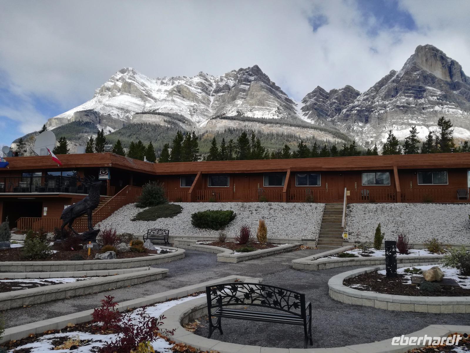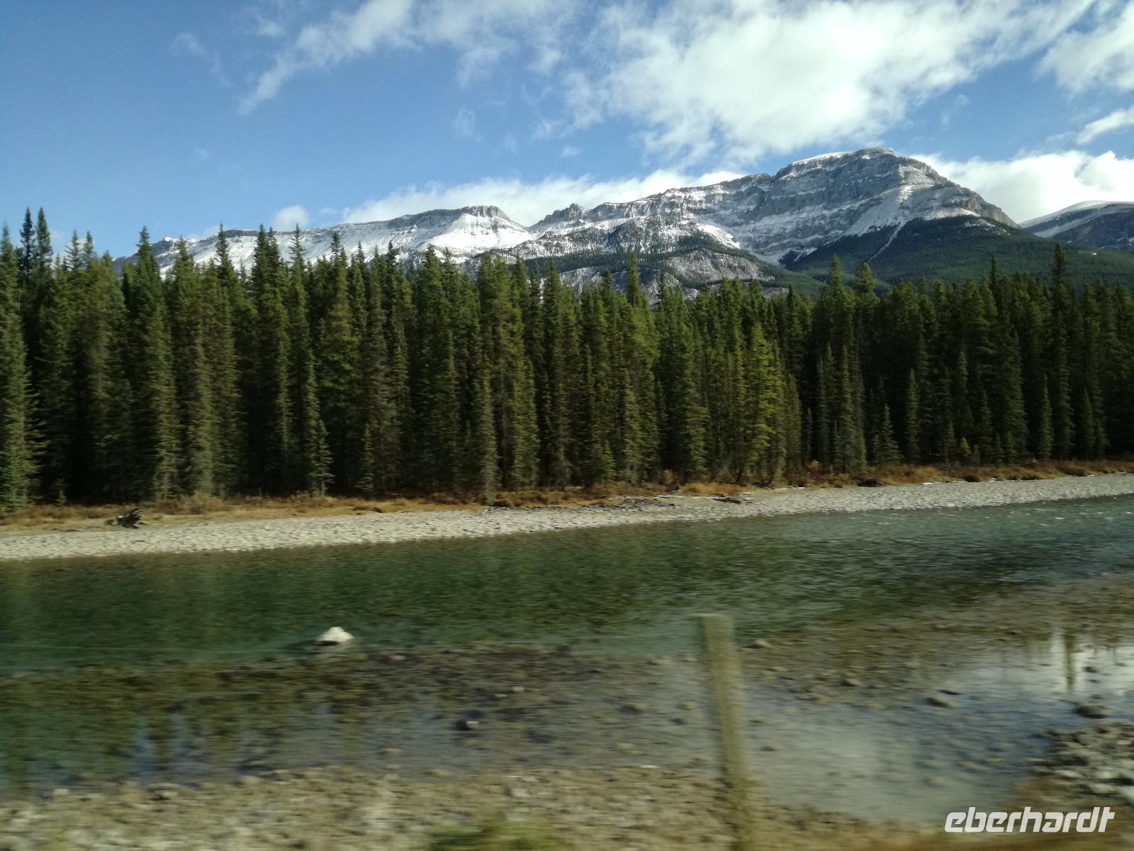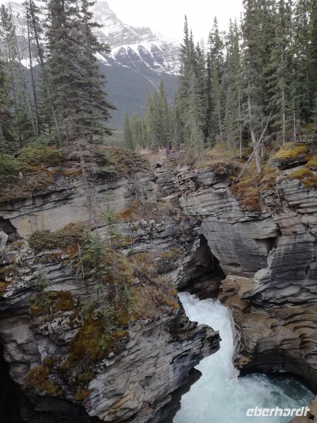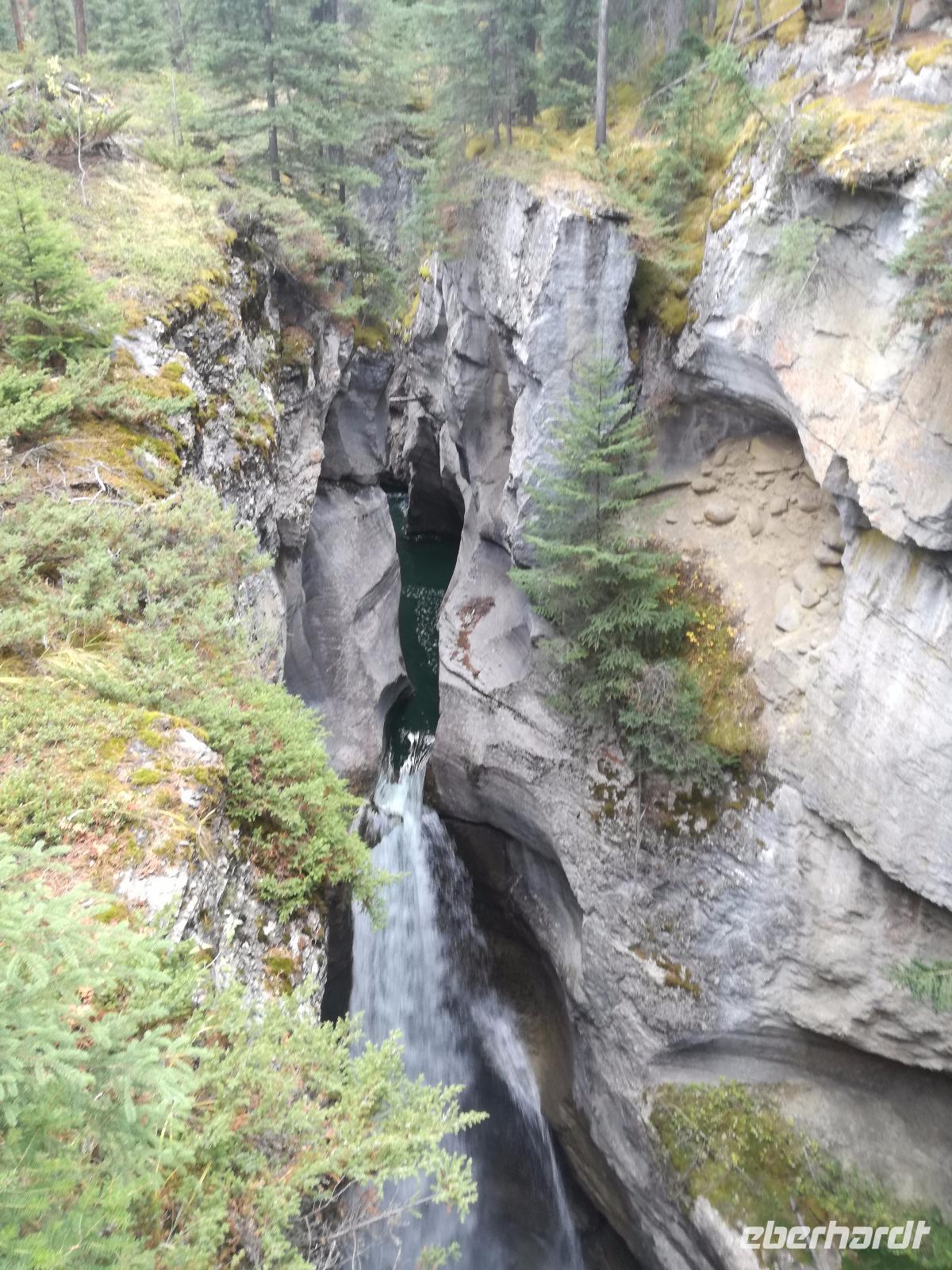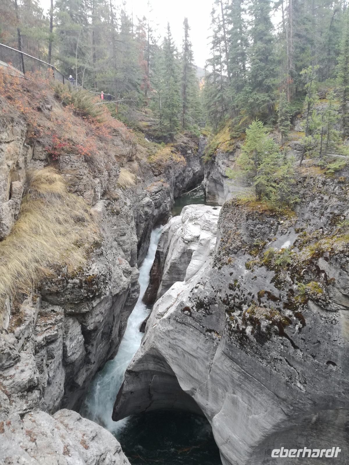 Nach einer gemütlichen und ruhigen Nacht in unseren Bungalows brachen wir nach dem Frühstück auf. Unser Ziel der berühmte Japser Nationalpark und zunächst einmal die Athabasca Fälle. Die 23 Meter hohen Fälle sind besonders für Ihre Kraft bekannt, mit der die Wassermassen durch den Berg fließen. Nach dem Aufenthalt an den Fällen fuhren wir weiter in Richtung Maligne Lake. Während der Busfahrt sahen wir zwei Wapitis am Straßenrand grasen. Weiter ging es zum Maligne Lake. Während sich die ersten bereits mit Kaffee und Essen stärkten, entdecken 2 Gäste plötzlich Elche auf einem abgelegenen Parkplatz. Schnell wurde die Gruppe informiert und wir konnten alle ein schönes Bild von den gemütlich erscheinenden Tieren machen. Nach dieser Bekanntschaft stand noch ein Spaziergang entlang des Seeufers auf dem Programm. Nach der kleinen Wanderung kehrten wir alle in ein Restaurant ein und wärmten uns mit Suppe und Kaffee. Nach der Mittagspause fuhren wir weiter zum Maligne Canyon. Über mehrere Brücken passierten wir die tiefen Schluchten des Canyons. Auch hier erkannte man wieder die Kraft der Wassermassen, da die Steinfelsen rundförmig durch die Strömung abgetragen wurden. Als wir zurück zum Bus liefen, entdeckten wir wieder Wapitis, die vorm Bus grasten. Unseren letzten Halt des Tages machten wir in der Provinzstadt Jasper, wo wir ausreichend Zeit zum Bummel oder spazieren hatten, bevor wir zurück zur unserer Lodge fuhren.
