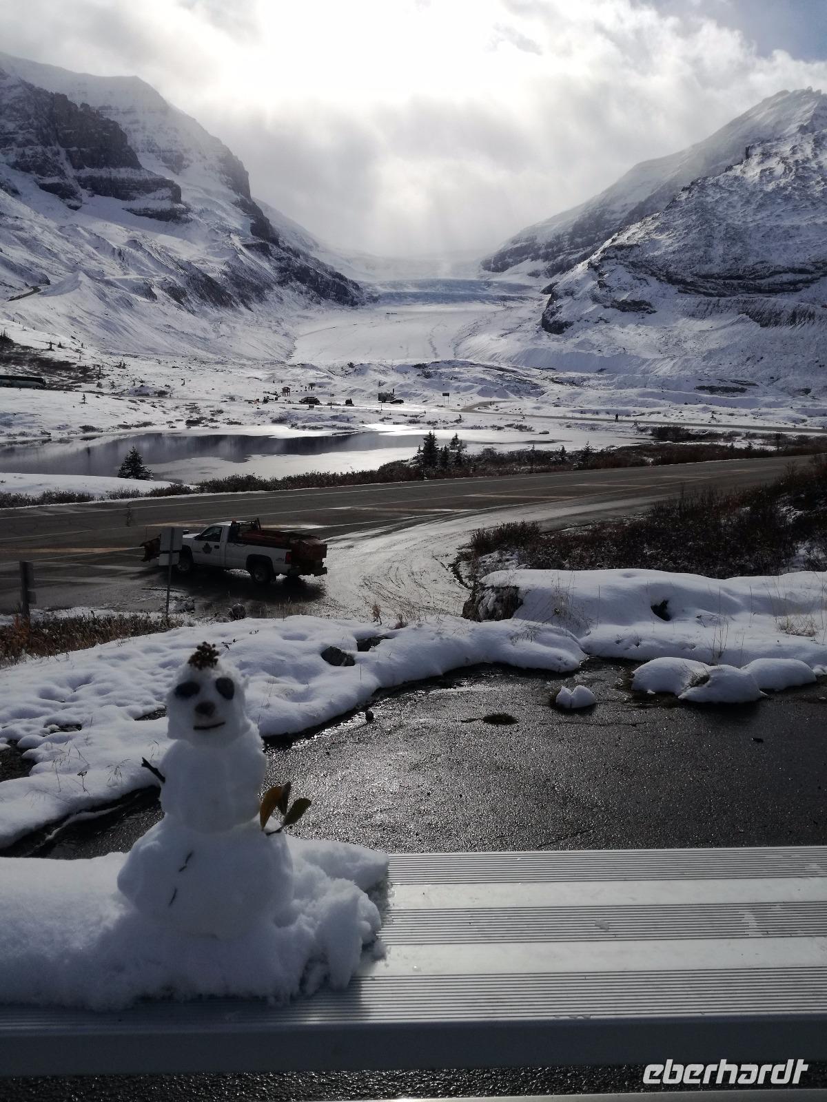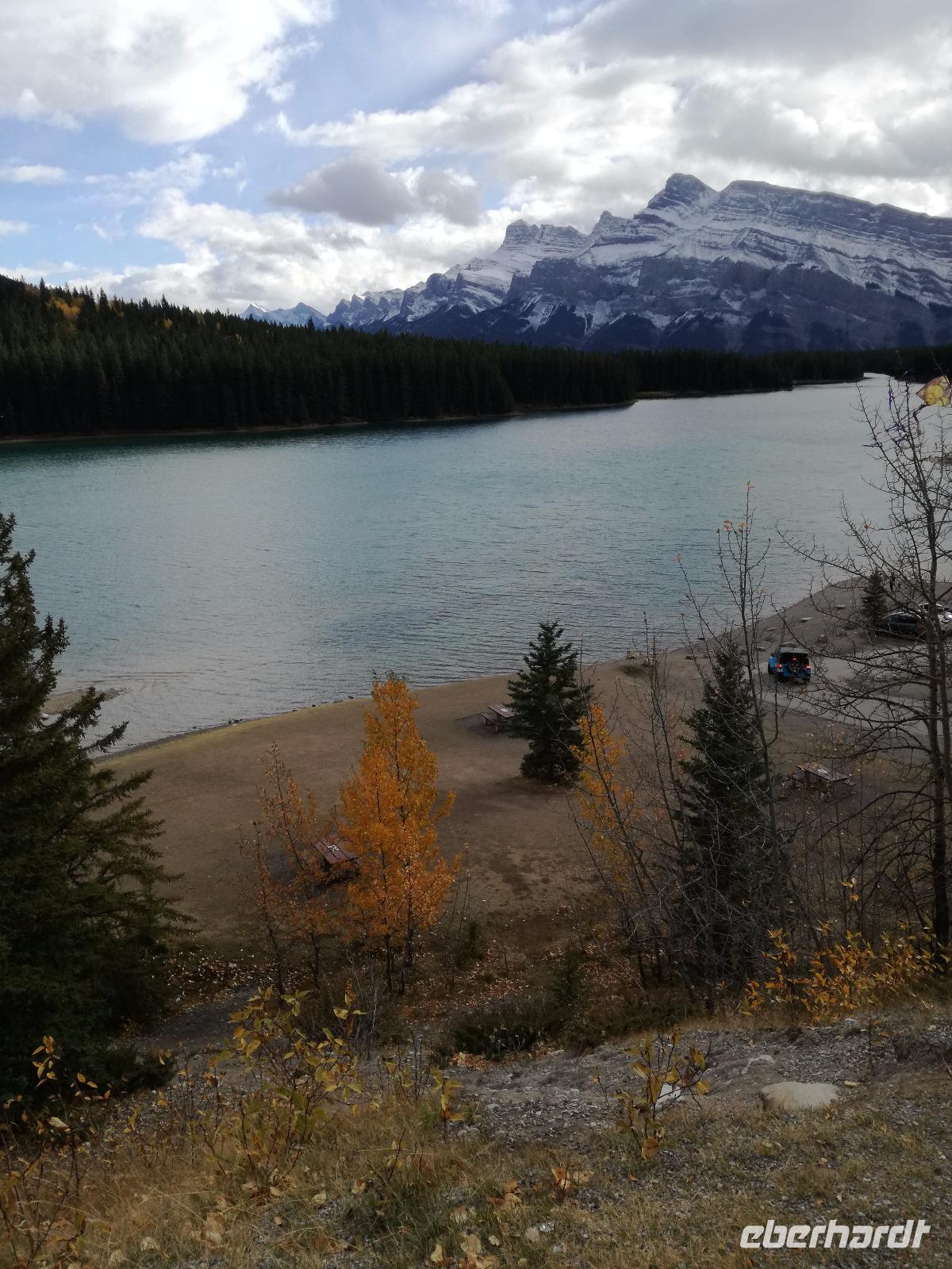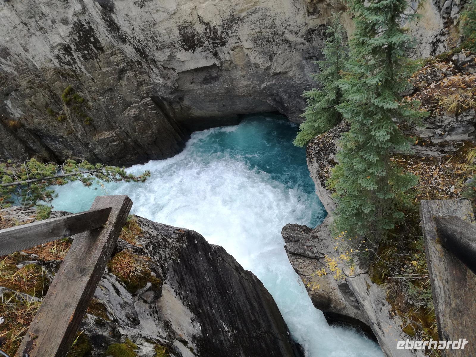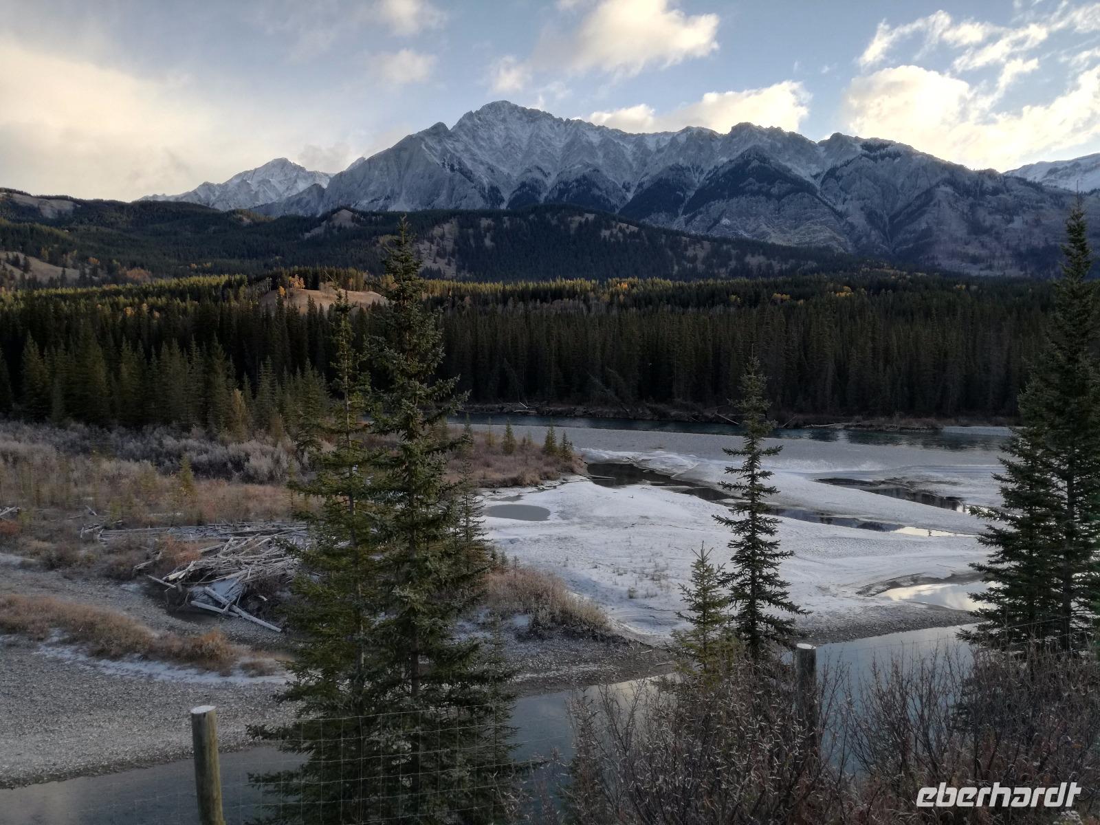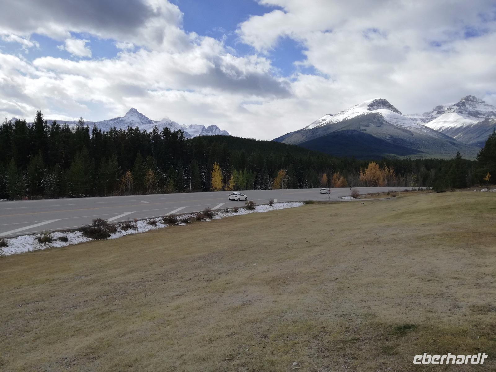 Nach einer gemütlichen und ruhigen Nacht in unseren Bungalows brachen wir nach dem Frühstück auf. Unser Ziel der berühmte Japser Nationalpark und zunächst einmal die Athabasca Fälle. Die 23 Meter hohen Fälle sind besonders für Ihre Kraft bekannt, mit der die Wassermassen durch den Berg fließen. Nach dem Aufenthalt an den Fällen fuhren wir weiter in Richtung Maligne Lake. Während der Busfahrt sahen wir zwei Wapitis am Straßenrand grasen. Weiter ging es zum Maligne Lake. Während sich die ersten bereits mit Kaffee und Essen stärkten, entdecken 2 Gäste plötzlich Elche auf einem abgelegenen Parkplatz. Schnell wurde die Gruppe informiert und wir konnten alle ein schönes Bild von den gemütlich erscheinenden Tieren machen. Nach dieser Bekanntschaft stand noch ein Spaziergang entlang des Seeufers auf dem Programm. Nach der kleinen Wanderung kehrten wir alle in ein Restaurant ein und wärmten uns mit Suppe und Kaffee. Nach der Mittagspause fuhren wir weiter zum Maligne Canyon. Über mehrere Brücken passierten wir die tiefen Schluchten des Canyons. Auch hier erkannte man wieder die Kraft der Wassermassen, da die Steinfelsen rundförmig durch die Strömung abgetragen wurden. Als wir zurück zum Bus liefen, entdeckten wir wieder Wapitis, die vorm Bus grasten. Unseren letzten Halt des Tages machten wir in der Provinzstadt Jasper, wo wir ausreichend Zeit zum Bummel oder spazieren hatten, bevor wir zurück zur unserer Lodge fuhren.