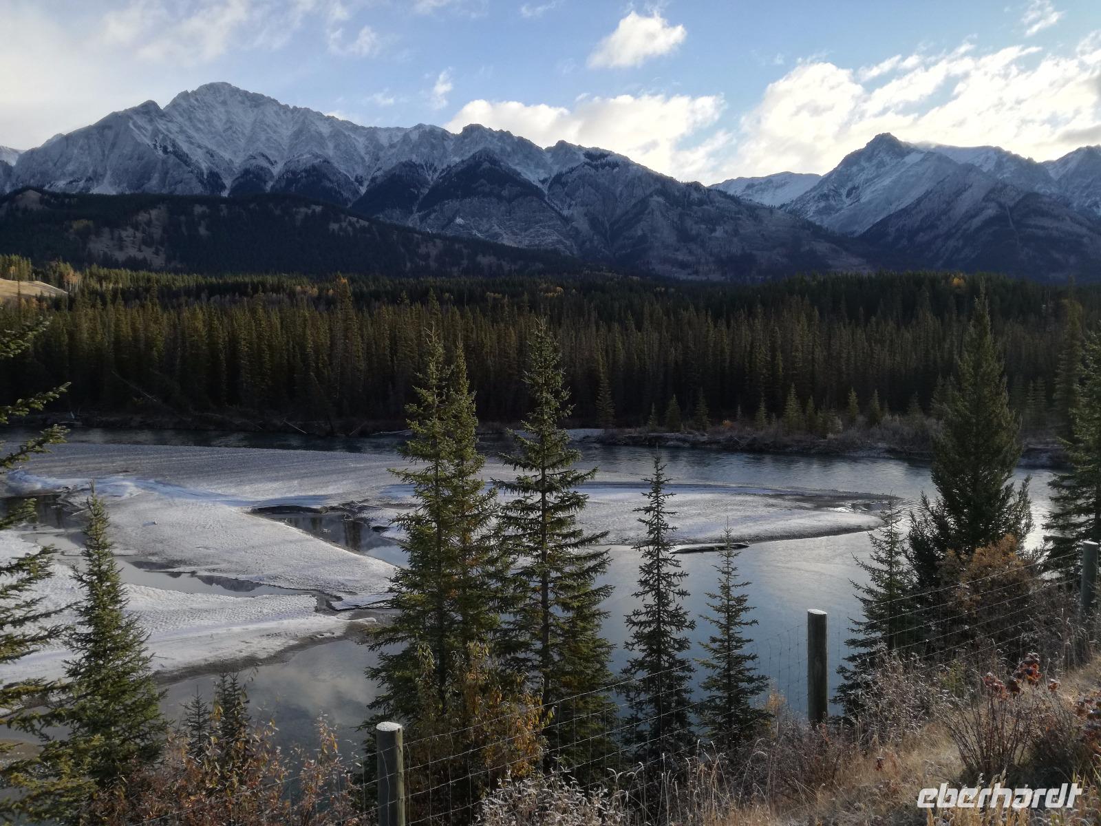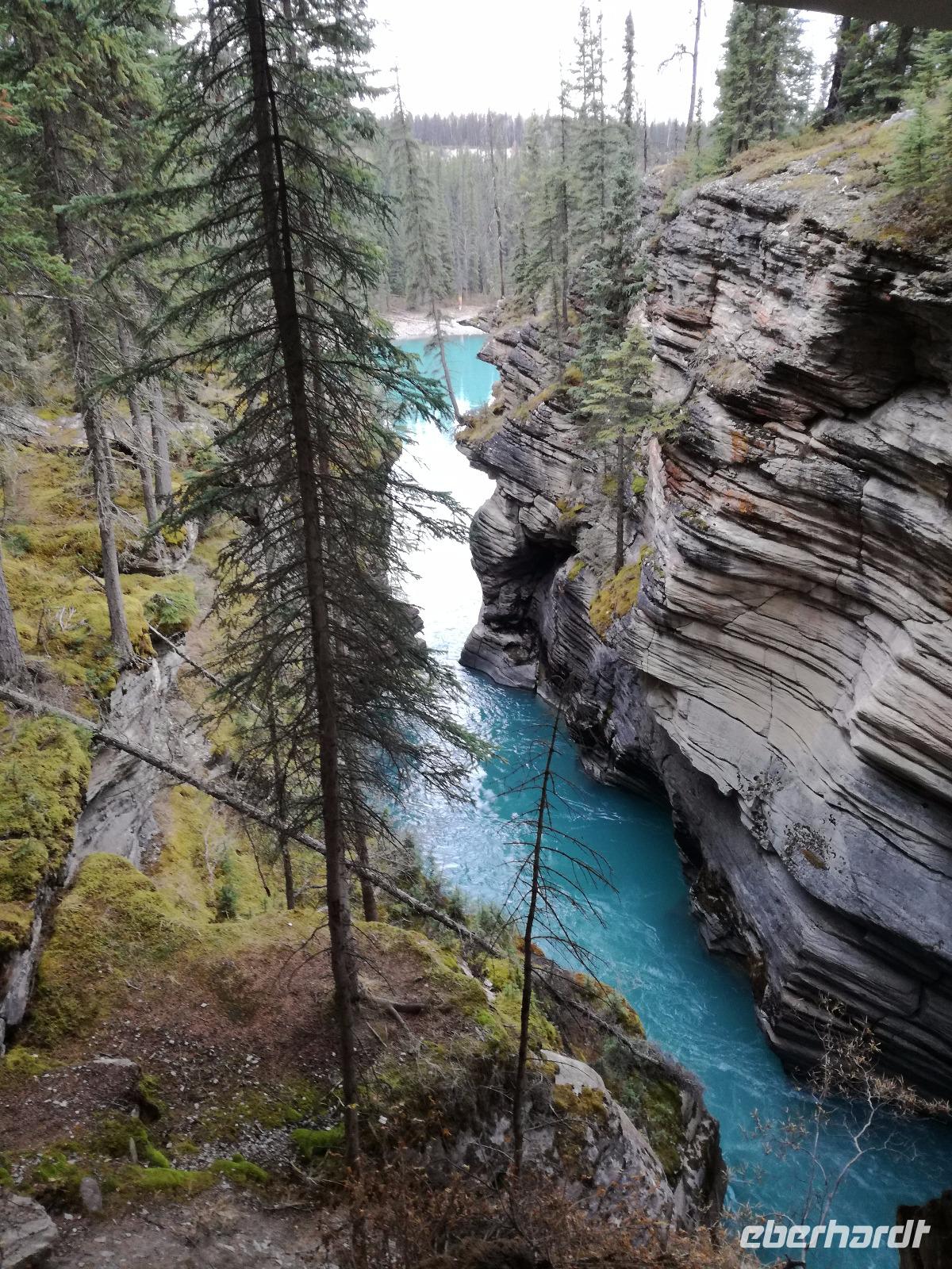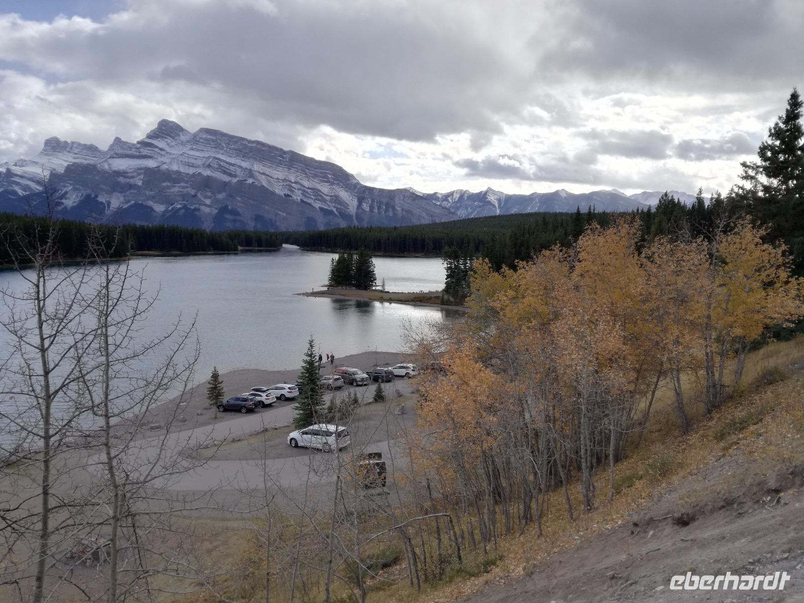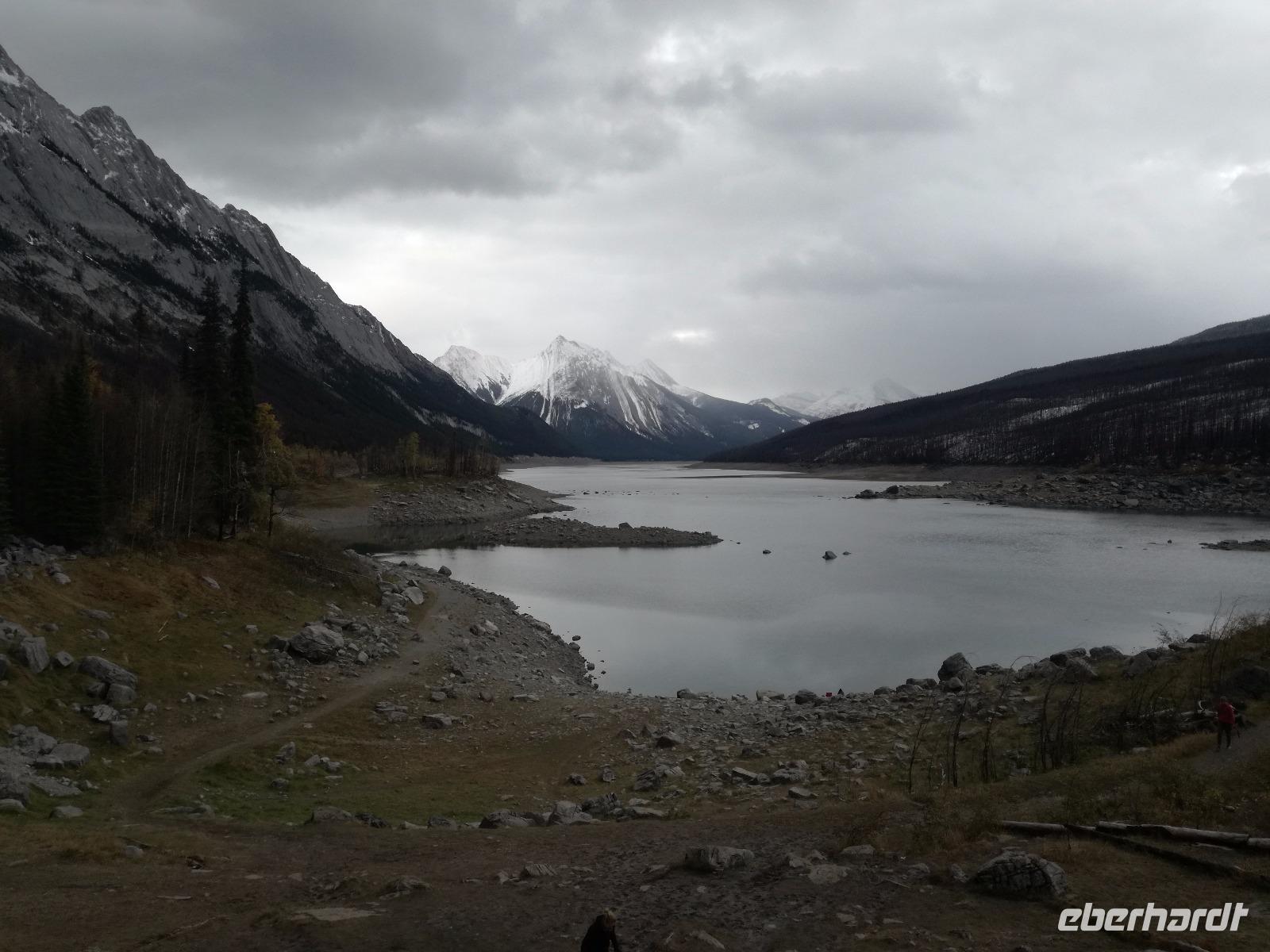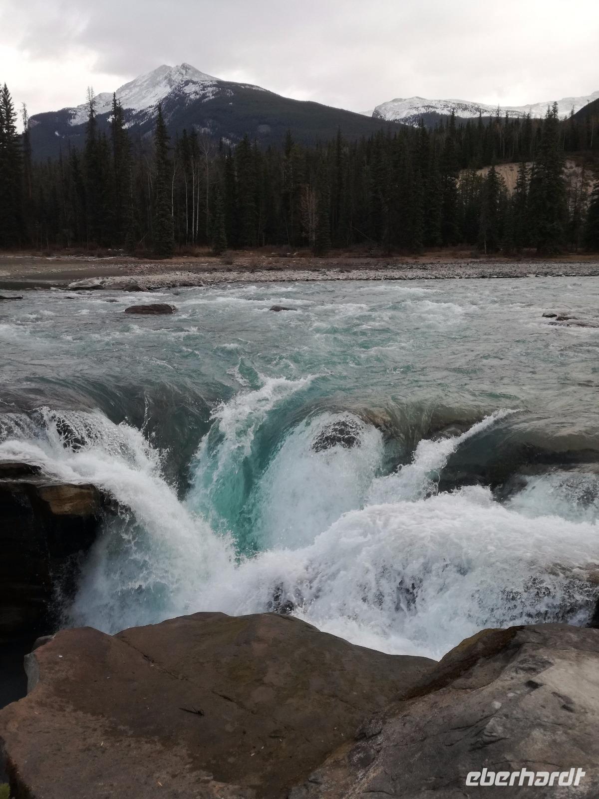 Nach einer gemütlichen und ruhigen Nacht in unseren Bungalows brachen wir nach dem Frühstück auf. Unser Ziel der berühmte Japser Nationalpark und zunächst einmal die Athabasca Fälle. Die 23 Meter hohen Fälle sind besonders für Ihre Kraft bekannt, mit der die Wassermassen durch den Berg fließen. Nach dem Aufenthalt an den Fällen fuhren wir weiter in Richtung Maligne Lake. Während der Busfahrt sahen wir zwei Wapitis am Straßenrand grasen. Weiter ging es zum Maligne Lake. Während sich die ersten bereits mit Kaffee und Essen stärkten, entdecken 2 Gäste plötzlich Elche auf einem abgelegenen Parkplatz. Schnell wurde die Gruppe informiert und wir konnten alle ein schönes Bild von den gemütlich erscheinenden Tieren machen. Nach dieser Bekanntschaft stand noch ein Spaziergang entlang des Seeufers auf dem Programm. Nach der kleinen Wanderung kehrten wir alle in ein Restaurant ein und wärmten uns mit Suppe und Kaffee. Nach der Mittagspause fuhren wir weiter zum Maligne Canyon. Über mehrere Brücken passierten wir die tiefen Schluchten des Canyons. Auch hier erkannte man wieder die Kraft der Wassermassen, da die Steinfelsen rundförmig durch die Strömung abgetragen wurden. Als wir zurück zum Bus liefen, entdeckten wir wieder Wapitis, die vorm Bus grasten. Unseren letzten Halt des Tages machten wir in der Provinzstadt Jasper, wo wir ausreichend Zeit zum Bummel oder spazieren hatten, bevor wir zurück zur unserer Lodge fuhren.