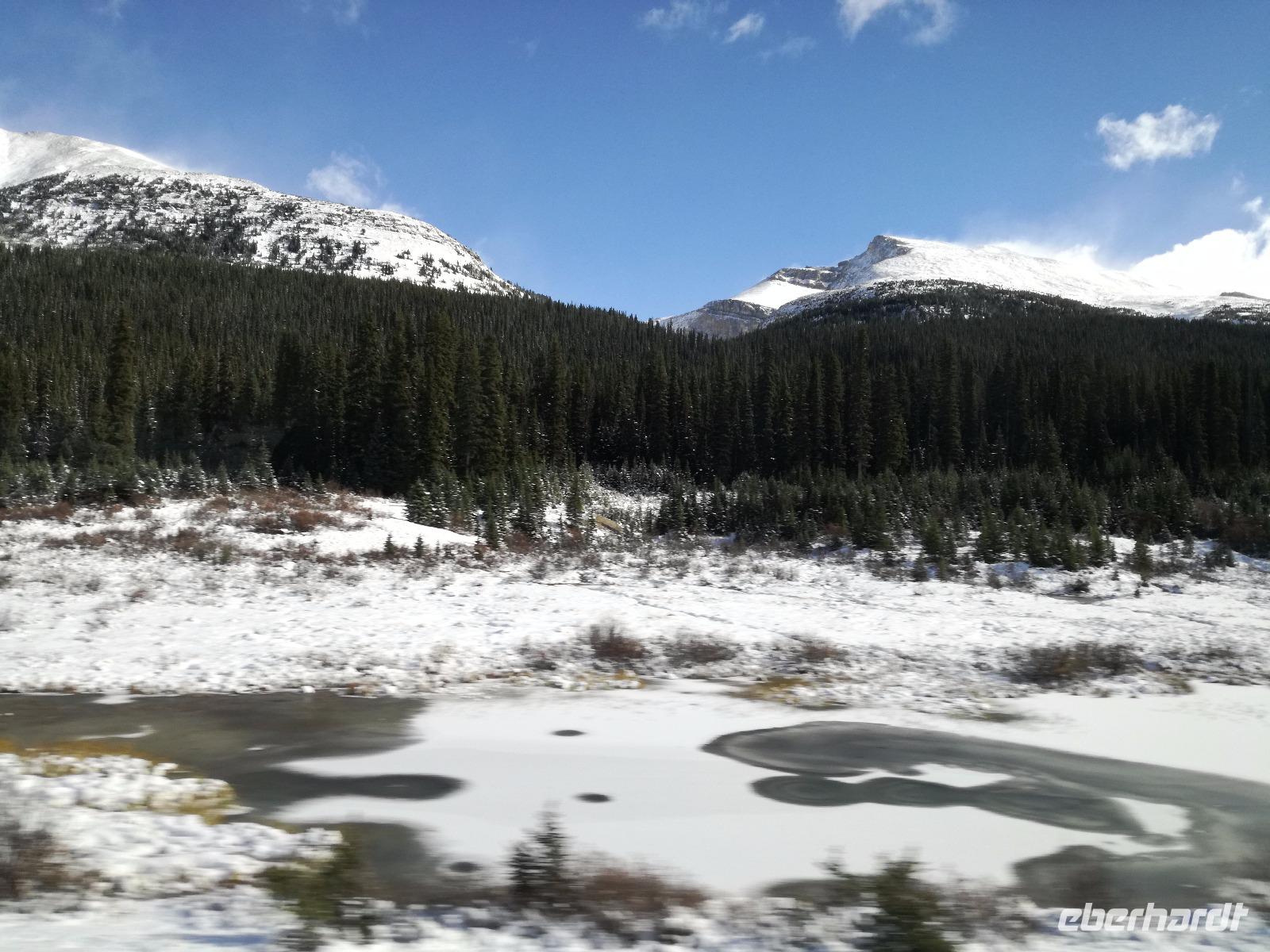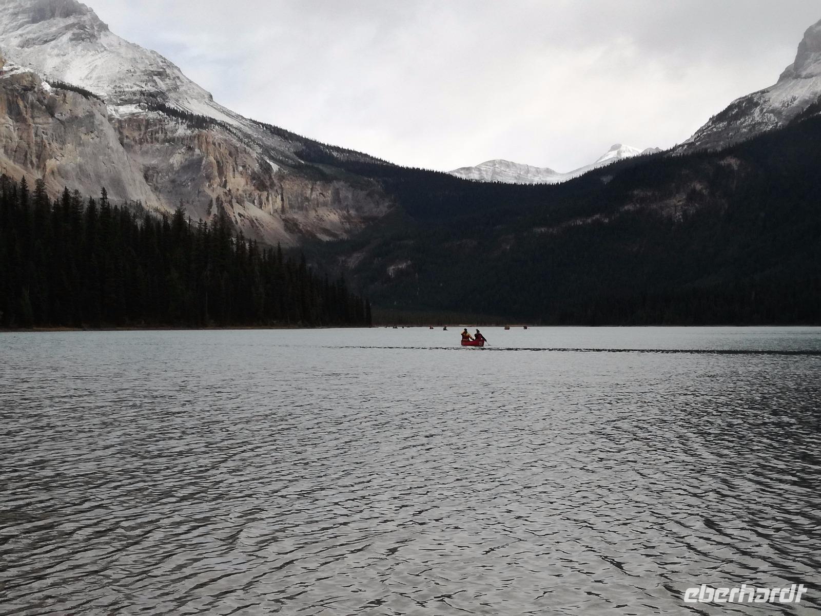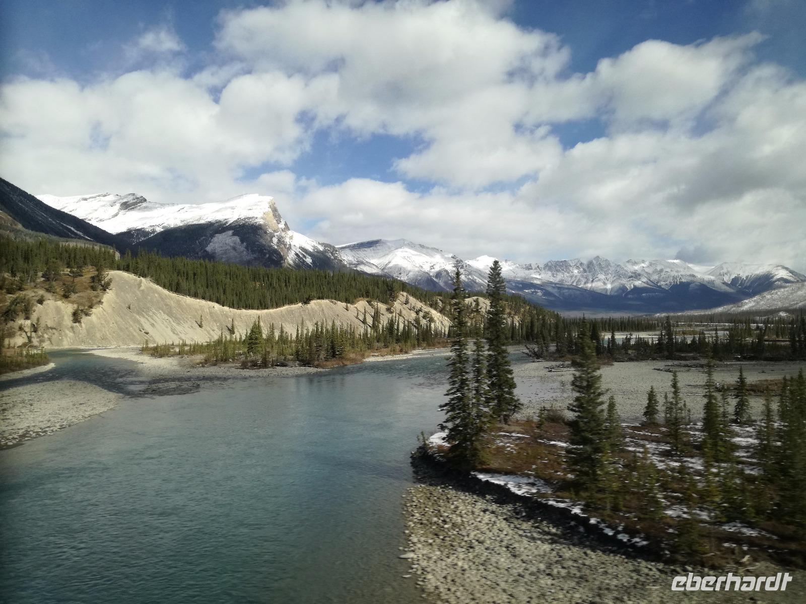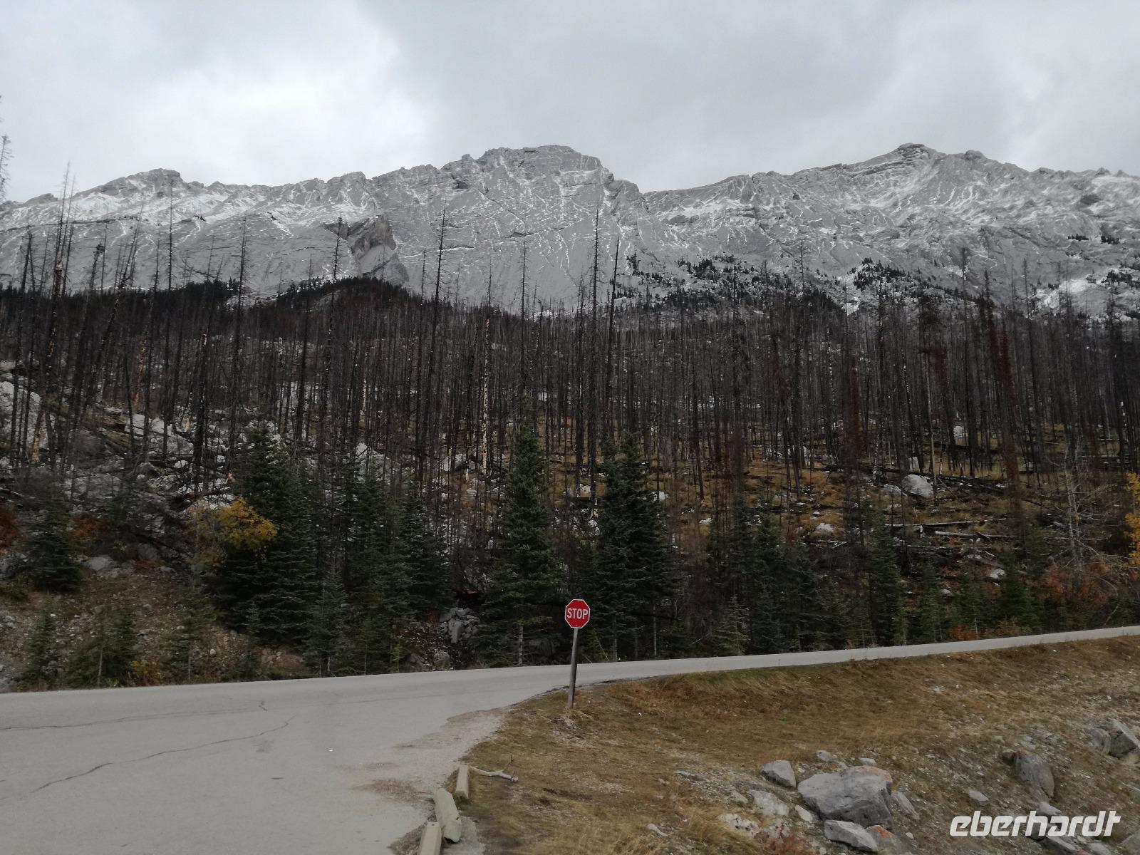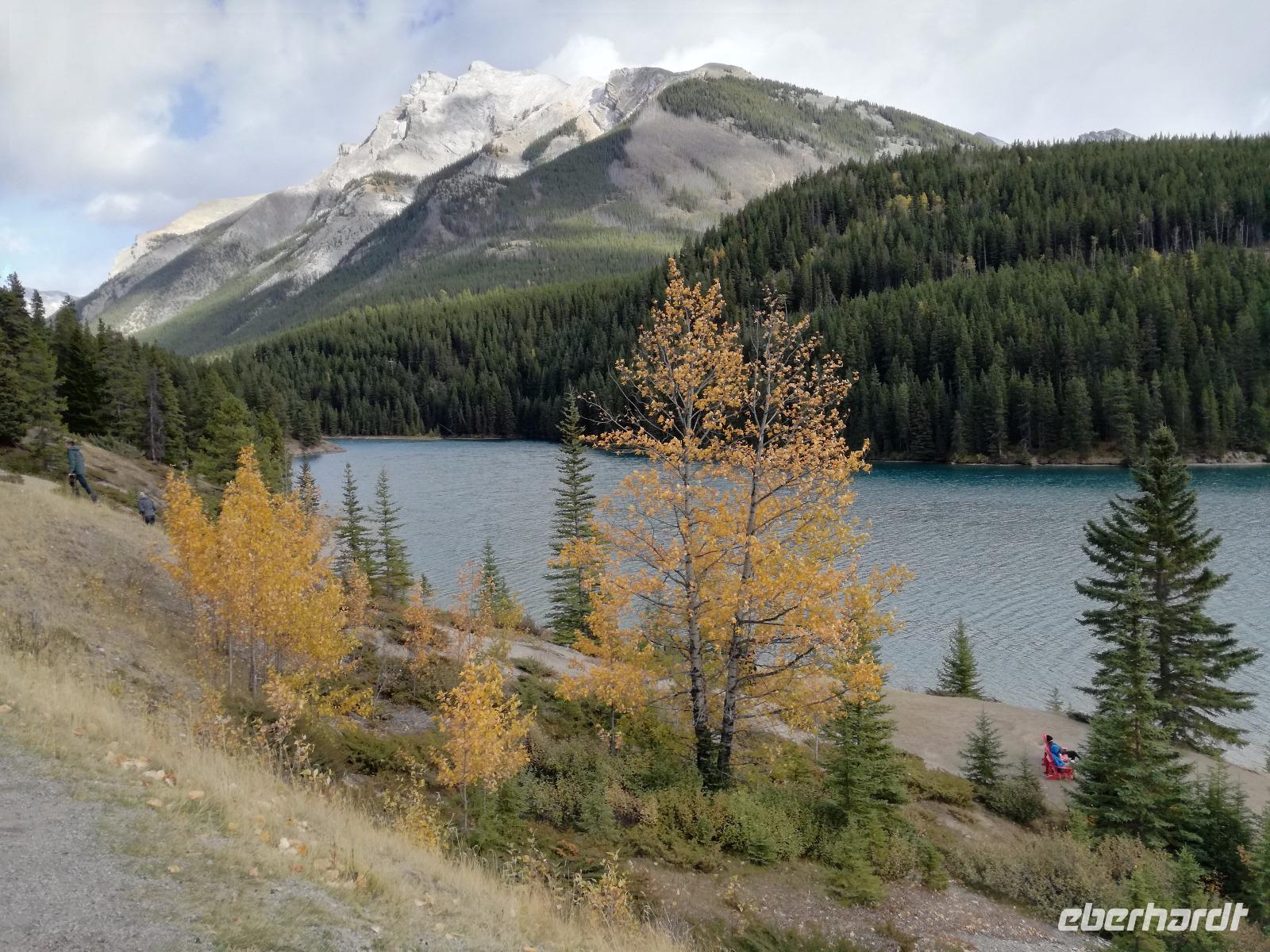Nach einer gemütlichen und ruhigen Nacht in unseren Bungalows brachen wir nach dem Frühstück auf. Unser Ziel der berühmte Japser Nationalpark und zunächst einmal die Athabasca Fälle. Die 23 Meter hohen Fälle sind besonders für Ihre Kraft bekannt, mit der die Wassermassen durch den Berg fließen. Nach dem Aufenthalt an den Fällen fuhren wir weiter in Richtung Maligne Lake. Während der Busfahrt sahen wir zwei Wapitis am Straßenrand grasen. Weiter ging es zum Maligne Lake. Während sich die ersten bereits mit Kaffee und Essen stärkten, entdecken 2 Gäste plötzlich Elche auf einem abgelegenen Parkplatz. Schnell wurde die Gruppe informiert und wir konnten alle ein schönes Bild von den gemütlich erscheinenden Tieren machen. Nach dieser Bekanntschaft stand noch ein Spaziergang entlang des Seeufers auf dem Programm. Nach der kleinen Wanderung kehrten wir alle in ein Restaurant ein und wärmten uns mit Suppe und Kaffee. Nach der Mittagspause fuhren wir weiter zum Maligne Canyon. Über mehrere Brücken passierten wir die tiefen Schluchten des Canyons. Auch hier erkannte man wieder die Kraft der Wassermassen, da die Steinfelsen rundförmig durch die Strömung abgetragen wurden. Als wir zurück zum Bus liefen, entdeckten wir wieder Wapitis, die vorm Bus grasten. Unseren letzten Halt des Tages machten wir in der Provinzstadt Jasper, wo wir ausreichend Zeit zum Bummel oder spazieren hatten, bevor wir zurück zur unserer Lodge fuhren.