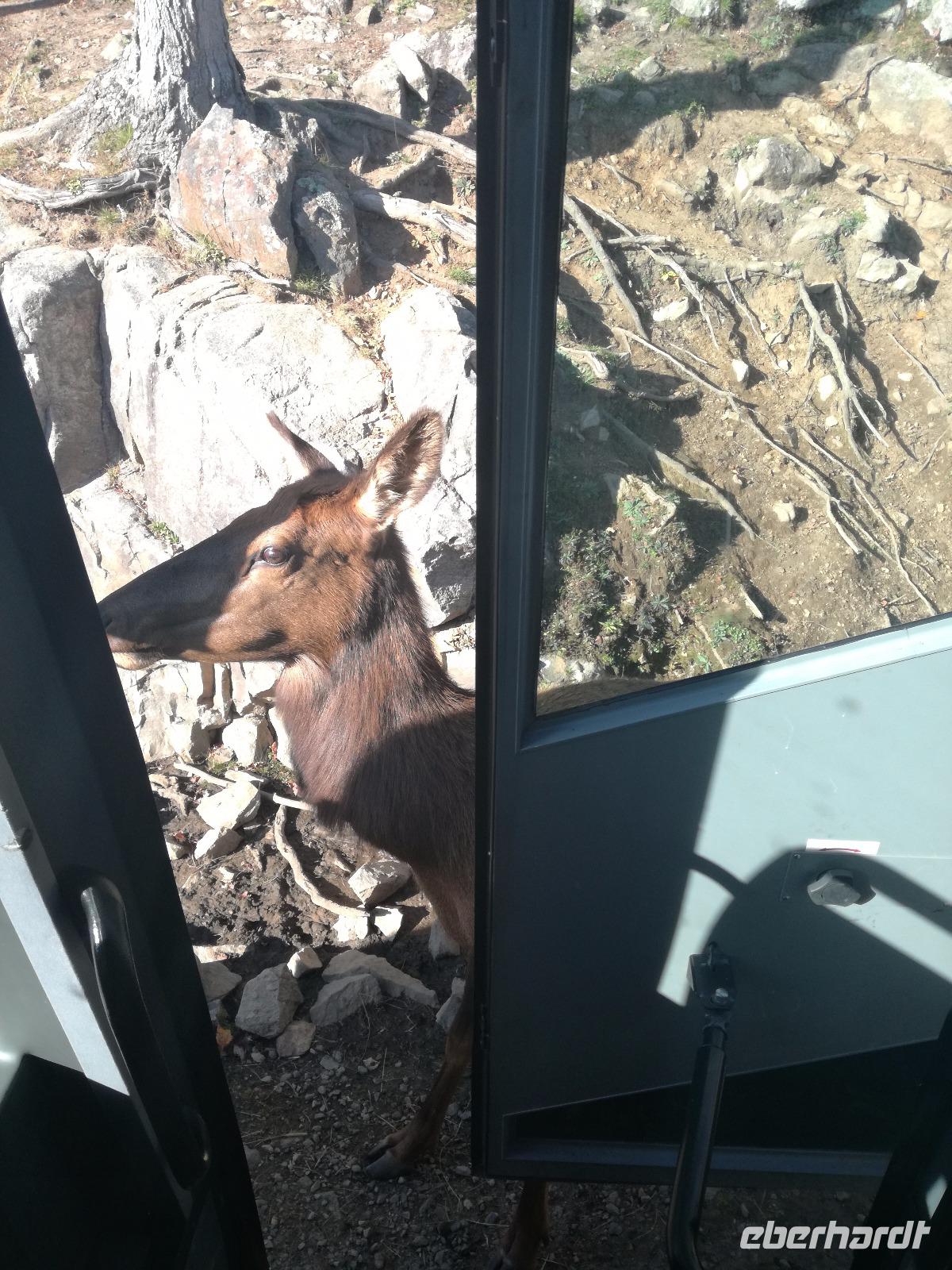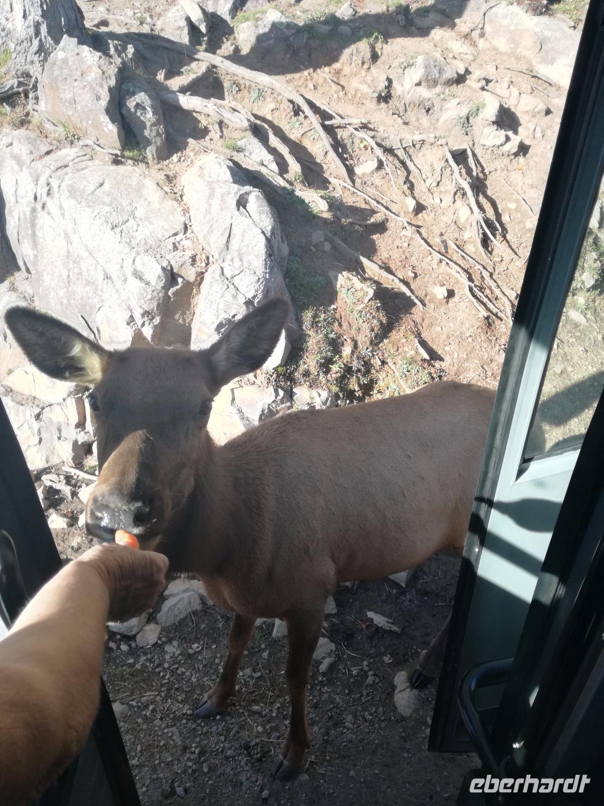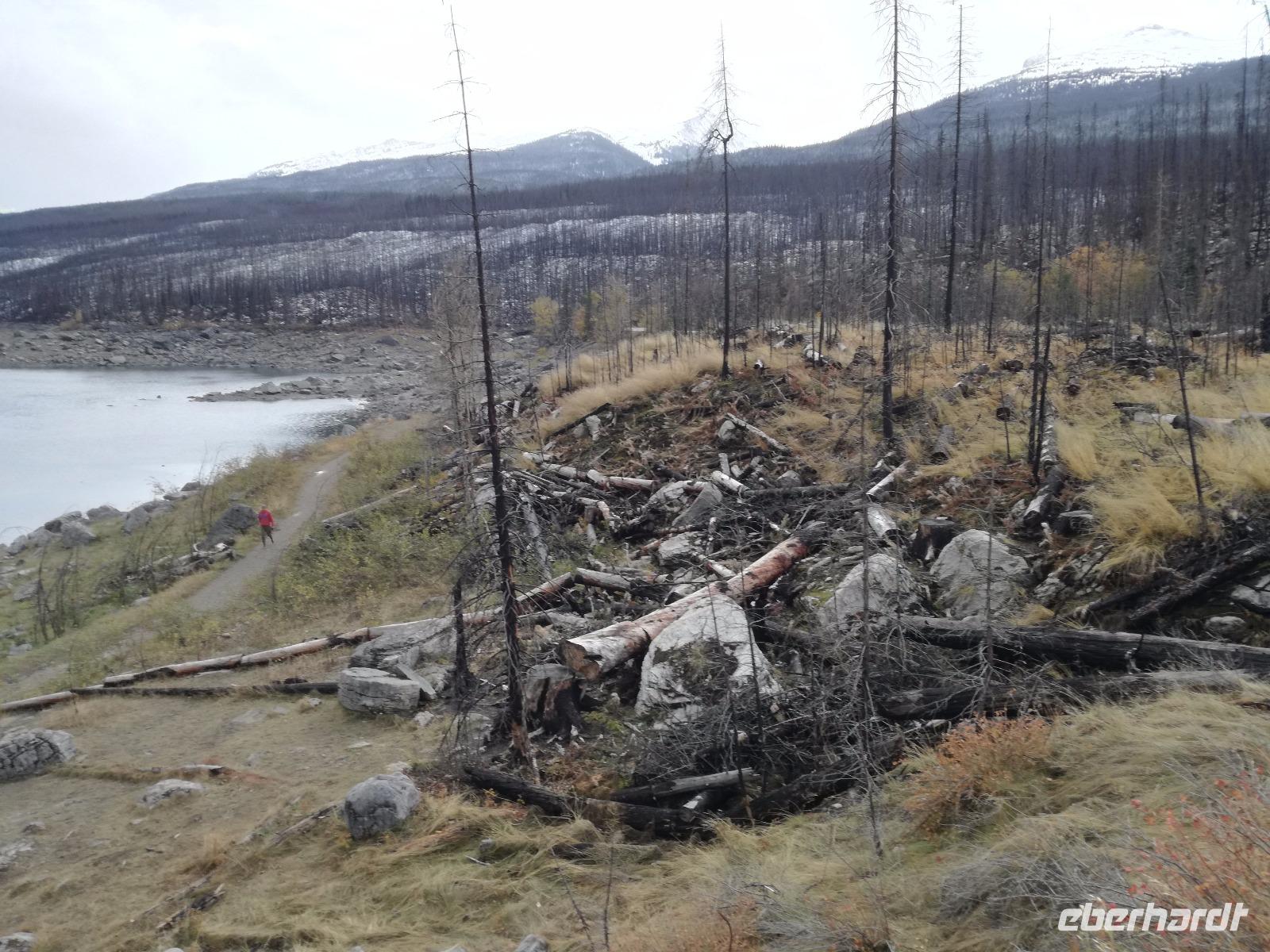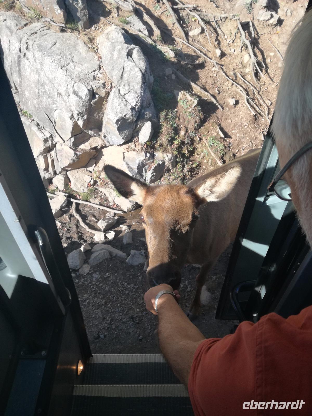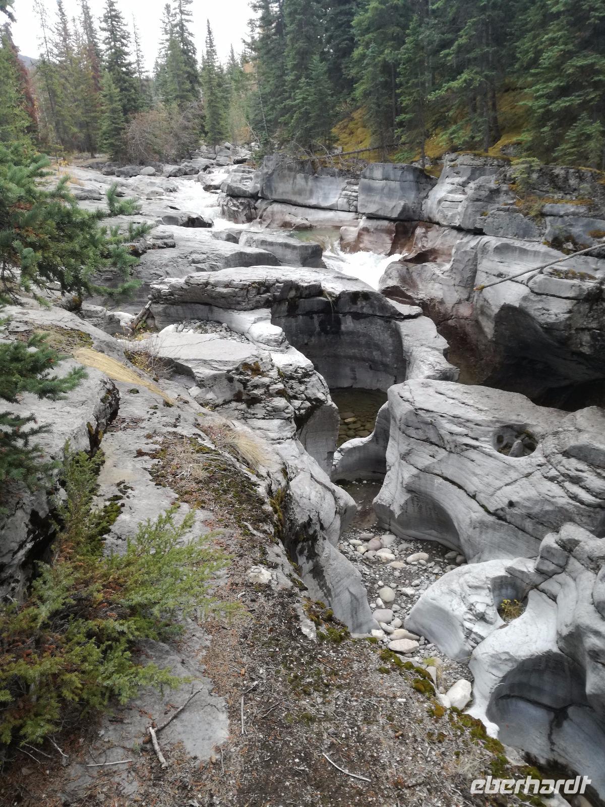 Nach einer gemütlichen und ruhigen Nacht in unseren Bungalows brachen wir nach dem Frühstück auf. Unser Ziel der berühmte Japser Nationalpark und zunächst einmal die Athabasca Fälle. Die 23 Meter hohen Fälle sind besonders für Ihre Kraft bekannt, mit der die Wassermassen durch den Berg fließen. Nach dem Aufenthalt an den Fällen fuhren wir weiter in Richtung Maligne Lake. Während der Busfahrt sahen wir zwei Wapitis am Straßenrand grasen. Weiter ging es zum Maligne Lake. Während sich die ersten bereits mit Kaffee und Essen stärkten, entdecken 2 Gäste plötzlich Elche auf einem abgelegenen Parkplatz. Schnell wurde die Gruppe informiert und wir konnten alle ein schönes Bild von den gemütlich erscheinenden Tieren machen. Nach dieser Bekanntschaft stand noch ein Spaziergang entlang des Seeufers auf dem Programm. Nach der kleinen Wanderung kehrten wir alle in ein Restaurant ein und wärmten uns mit Suppe und Kaffee. Nach der Mittagspause fuhren wir weiter zum Maligne Canyon. Über mehrere Brücken passierten wir die tiefen Schluchten des Canyons. Auch hier erkannte man wieder die Kraft der Wassermassen, da die Steinfelsen rundförmig durch die Strömung abgetragen wurden. Als wir zurück zum Bus liefen, entdeckten wir wieder Wapitis, die vorm Bus grasten. Unseren letzten Halt des Tages machten wir in der Provinzstadt Jasper, wo wir ausreichend Zeit zum Bummel oder spazieren hatten, bevor wir zurück zur unserer Lodge fuhren.