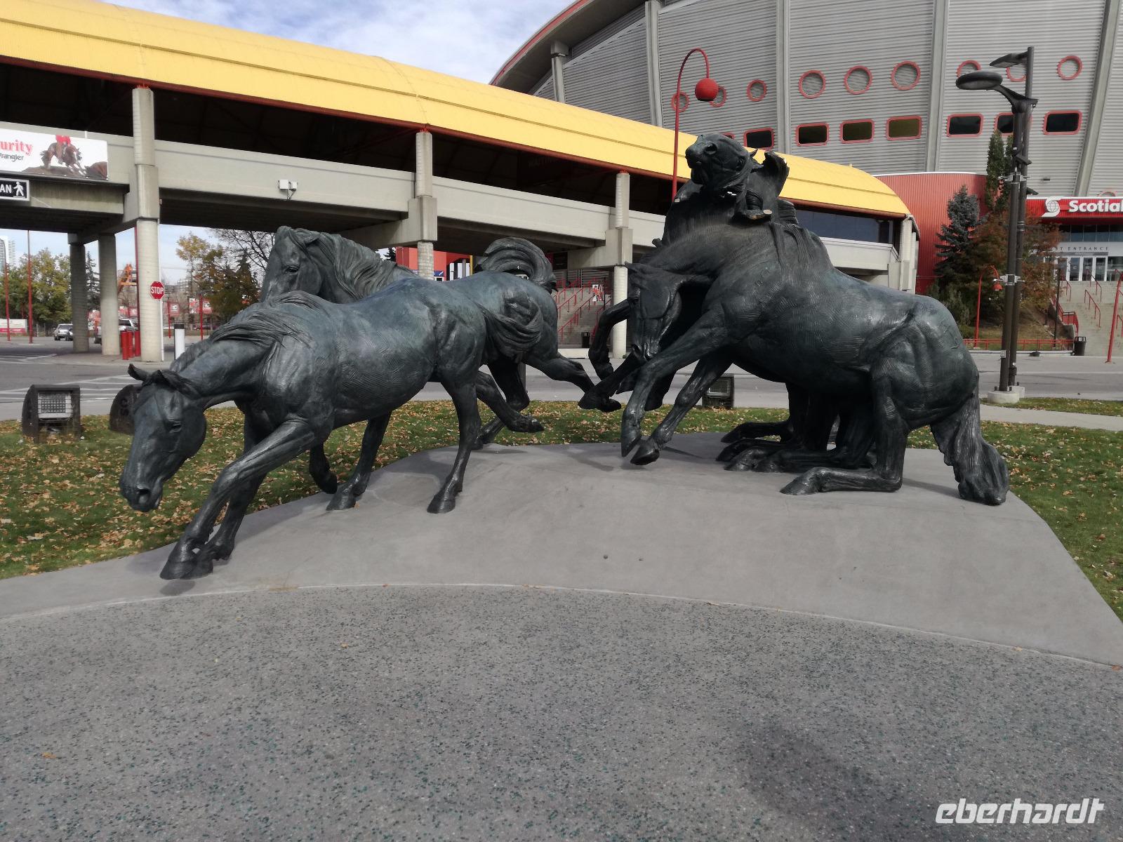 Früh am Morgen verließen wir das Städtchen Niagara zurück in Richtung Toronto. Heute hieß es leider Abschied nehmen von Kanadas Osten und unserer Reiseleitung Magarith und unseren Fahrer Richard. Zwar fiel uns der Abschied schwer aber wir hatten ja noch vor den Westen Kanadas für uns zu entdecken. Schnell checkten wir ein und flogen nach Calgary. Hier erwarteten uns schon Marion und unser Fahrer Peter. Schnell wurde uns klar, dass beide mit ihrer freundlichen und offenen Art unsere Truppe bereichern werden. Direkt starteten wir auch unsere Stadtrundfahrt in Calgary. Die olympische Stadt schlossen wir schnell in unser Herz. Unser erster Stopp erfolgte bei der Skulpturen der Pferde, die gegenüber der Eishockeyhalle der Calgary Flames stehen. Die Skulpturen wurde zum Ehre der jährlichen Rodeo-Spiele Stampede erbaut, die zu den größten der Welt gehören. Im Anschluss fuhren wir weiter zu der Olympischen Skisprungsschanze. Calgary war 1988 Austragungsort der Winter-Olympiade. Dies war auch die Geburtsstunde des legendären Jamaika Bobs, der neben der olympischen Rodelbahn nachgebaut war und des englischen Skispringers Eddy the Eagle. Getreu nach dem olympischen Motto "dabei sein ist alles" konnten wir uns im Bob fotografieren oder als Skispringer ablichten lassen. Nach einer weiteren kurzen Kaffeepause fuhren wir in die Rocky Mountains. Das Felsengebirge erstreckt sich von Feuerland bis Alaska und beinhaltet die schönsten Nationalparks der Welt. Der älteste und bekannteste Nationalpark Banff Nationalpark war auch unser erster Anlaufpunkt. Sofort zog uns die unbeschreiblich schöne Natur in seinen Bann. Gegen Abend erreichten wir die Kleinstadt Banff. Nach einer kurzen Orientierungsfahrt durch das Städtchen entdeckten wir das Fairmont Banff Springs Hotel, das oberhalb der Stadt thront. Nach ein paar Fotos ging es zurück in die Stadt und wir bezogen unsere Unterkunft für die Nacht. Gemeinsam gingen wir nach Abendessen bevor wir erschöpft und müde in Bett fielen.