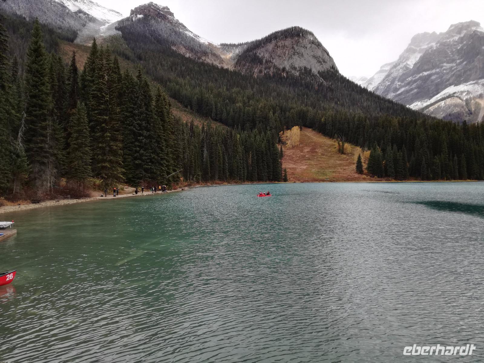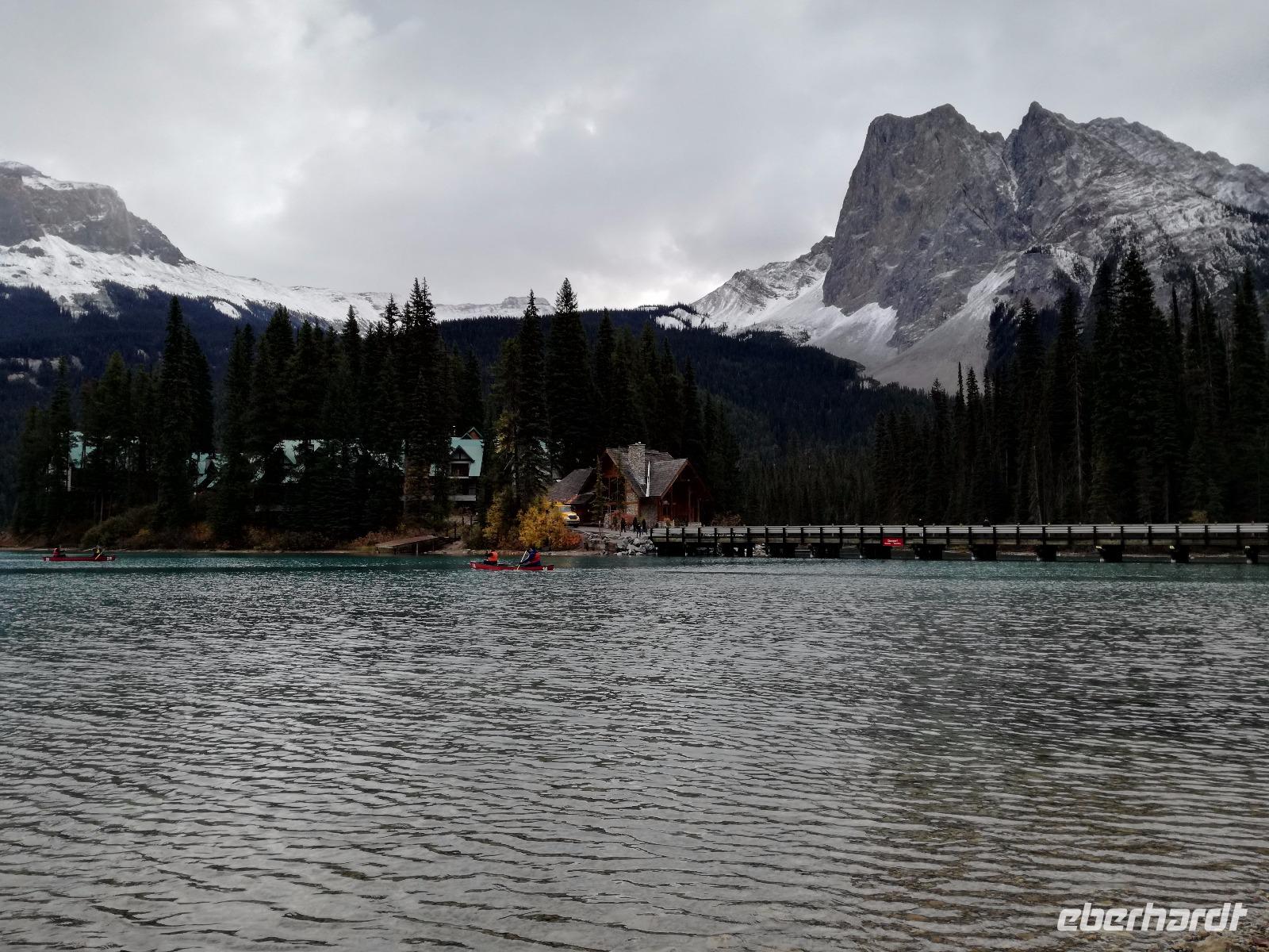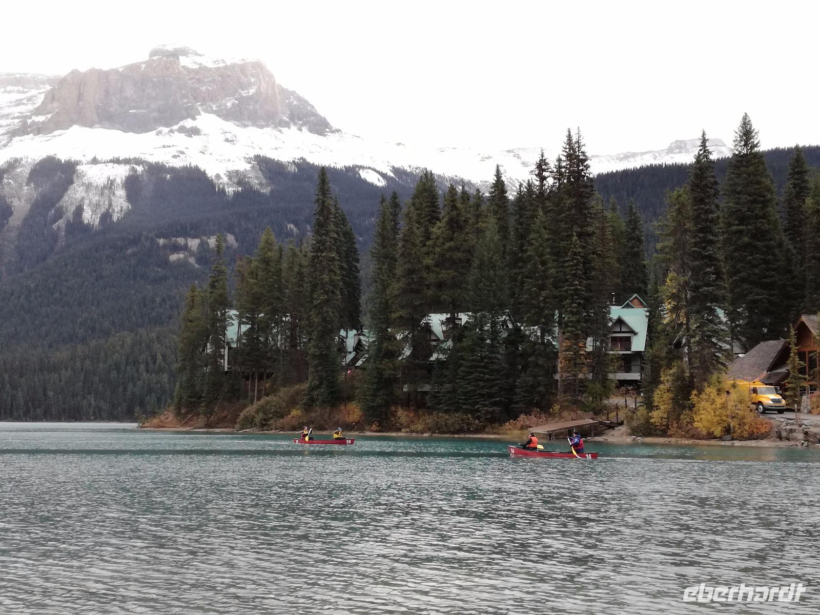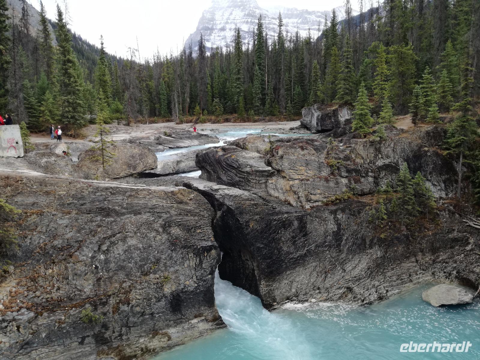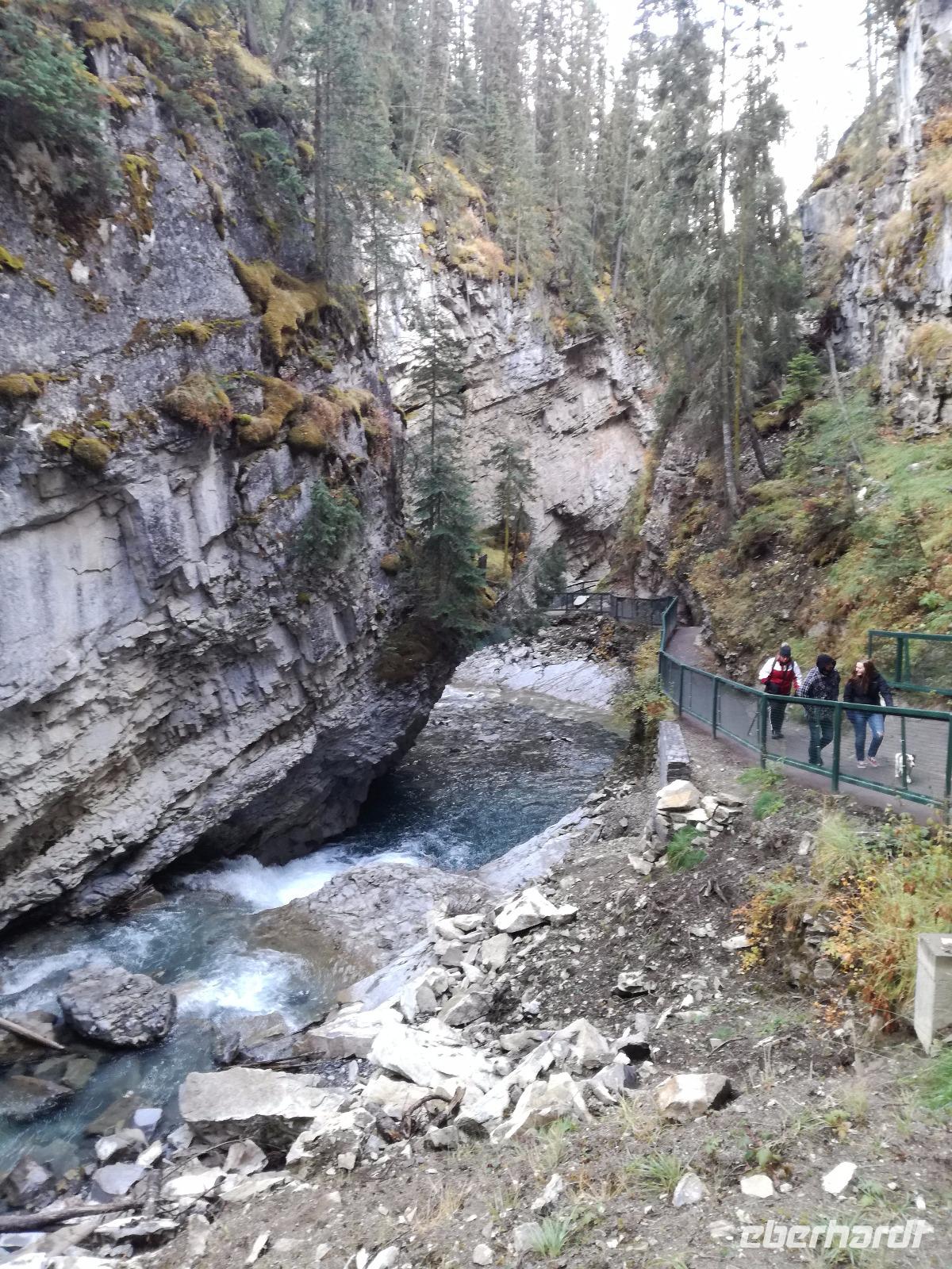 Mitten in der Natur, Umkreis von den Rocky Mountain erwachte die Gruppe. Nach einem leckeren Frühstück hieß es: Auf in die Natur. Wir startet mit einem Spaziergang durch den Johnston Canyon, der im Laufe der Jahrtausende durch den Johnston Creek geformt wurde. Hier wanderten wir durch den Canyon und ließen die wunderbare Natur auf uns wirken. Weiter führte uns unsere Route zum Emerald Lake. Im Hintergrund des Sees ragen die Rocky Mountains aus dem Boden und im Vordergrund schimmerte das kristallblaue Wasser. Auf dem See konnten wir trotz kühlen Temperaturen noch Kanufahrer sehen. Doch zum Kanufahren hatten wir keine Zeit und keine Lust. Denn wir wollte noch mehr erleben. Der nächste Stopp hieß Natural Bridge. Diese imposante Felsenformation formte sich einst zu einer riesen natürlichen Brügge, die den Kicking Horse Fluss überbrückt. Wieder staunten wir nicht schlecht, wozu die Natur in der Lage ist. Auch beim nächsten Halt kamen wir aus dem Staunen nicht mehr raus. Am Moraine Lake spazierten wir auf einen wunderbaren Aussichtspunkt, sodass wir den See in voller Pracht sehen konnten. Wieder staunen und Fassungslosigkeit aufgrund der unbeschreiblich schönen Natur. Kurz vor unserem letzten Stopp am Kicking Horse River entdeckten wir plötzlich einen kilometerlangen Zug, wie er in die sogenannten Spiral Tunnel fährt. Diese Tunnel wurden aufgrund der Lange der Züge erbaut und schlängeln sich spiralförmig durch das Gebirge der Rockys. Den Tag ließen wir anschließend bei einem Country-Rock-Konzert in einem örtlichen Restaurant ausklingen.