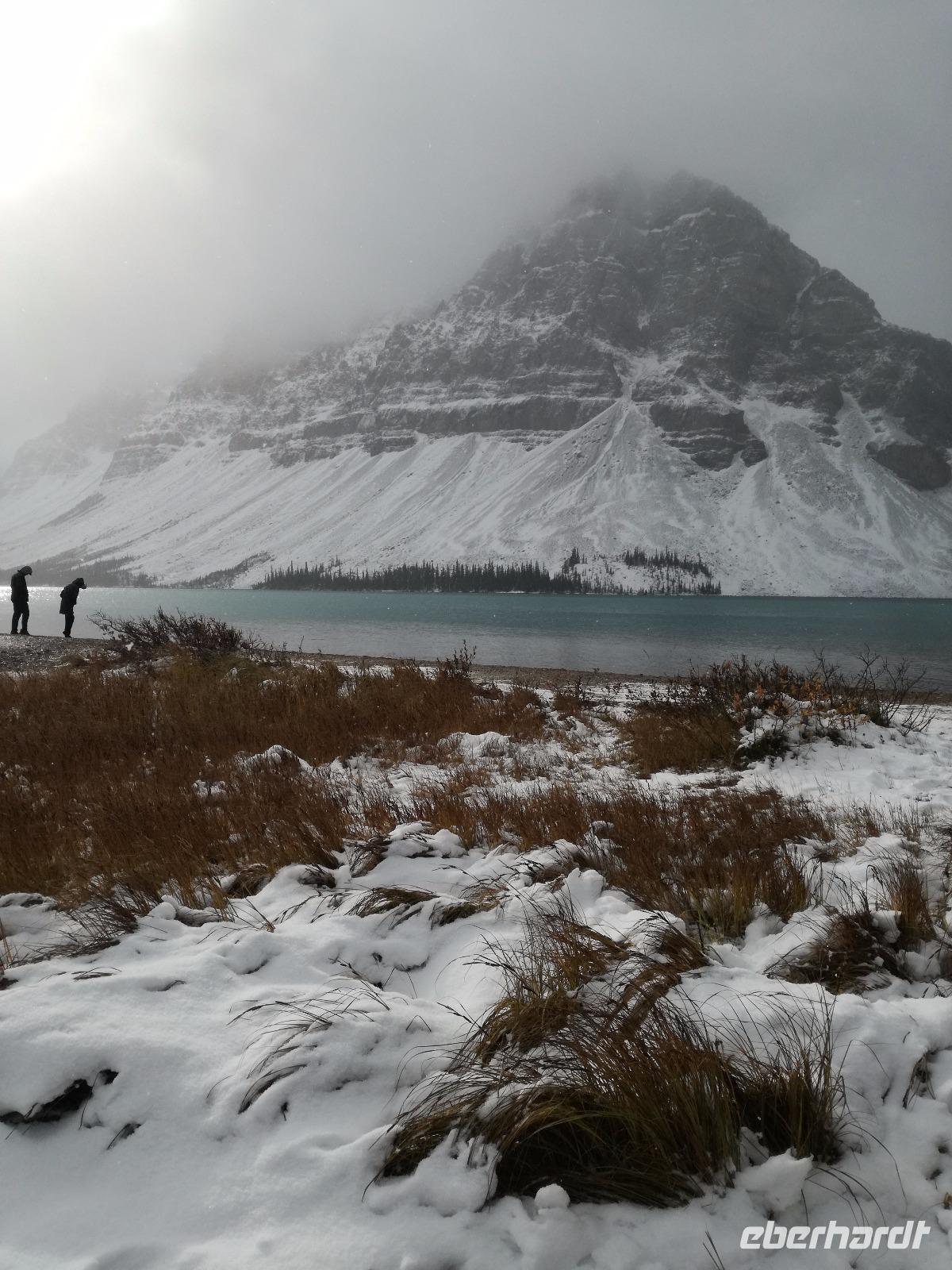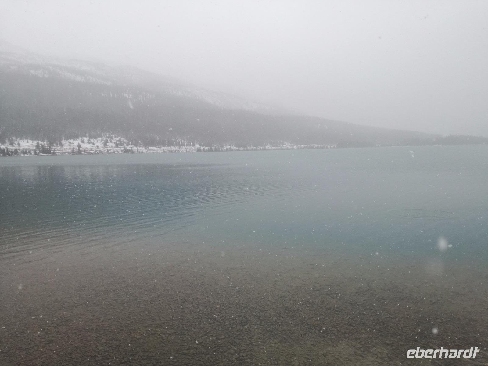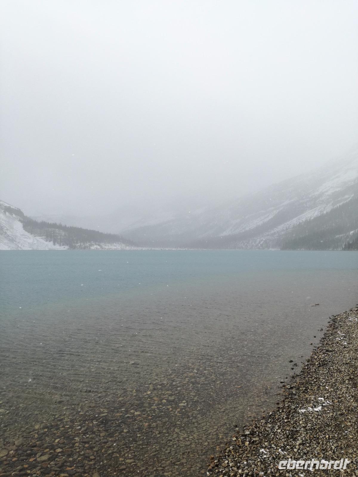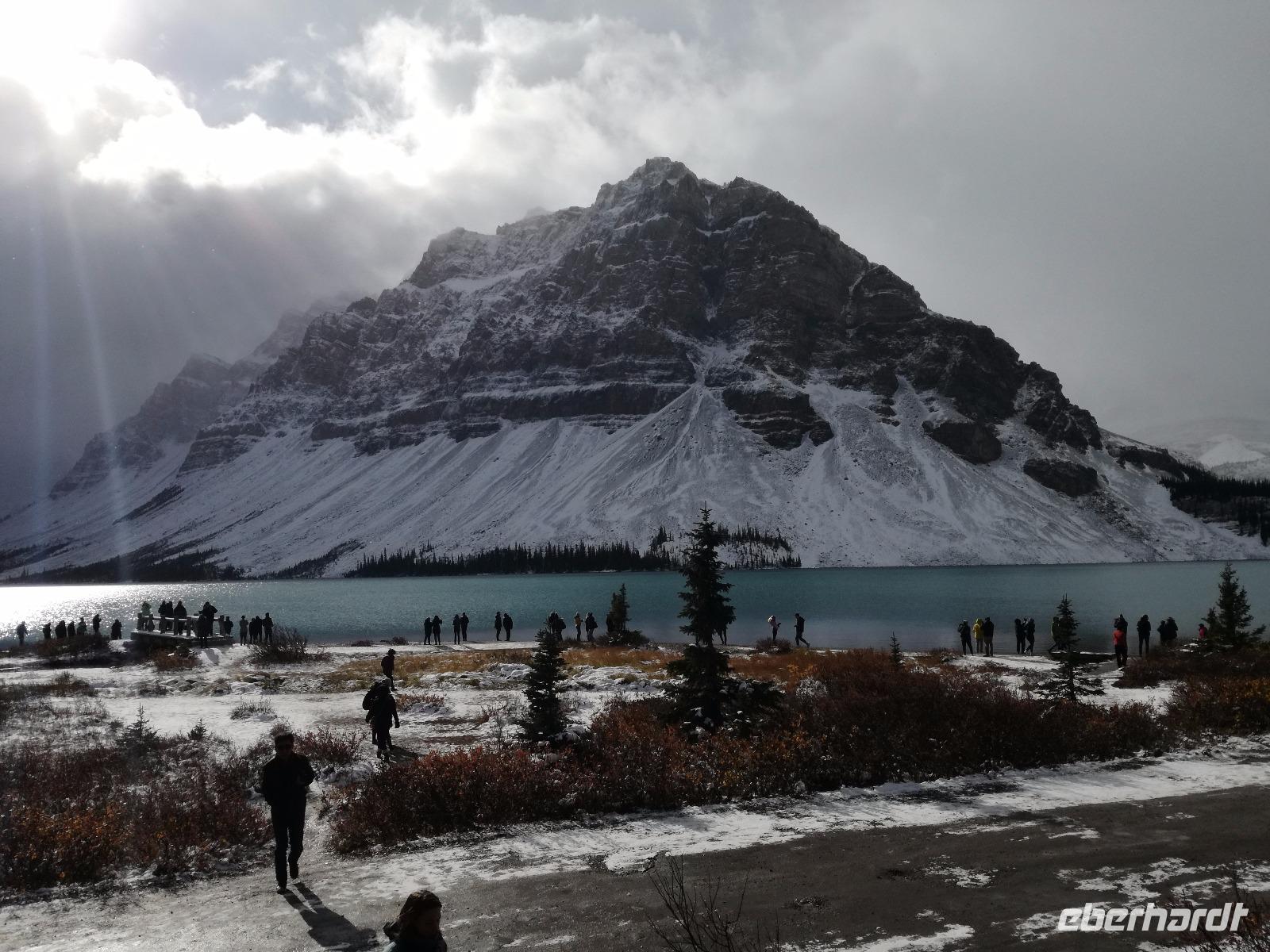 Noch beeindruckt vom Vortag brachen wir mit gepackten Koffer auf in Richtung Lake Louise. Der bezaubernde See lag leider noch etwas im Nebel, aber wir wärmten uns zunächst einmal im Fairmont Chateau Lake Louise bei einem Kaffee auf. Der See wurde nach der Tochter von Königin Victoria, Prinzessin Louise Caroline Alberta benannt. Das Chateau wurde ursprünglich 1890 als kleines Chalet erbaut und nach einem Feuer 1924 als elegantes Hotel wieder aufgebaut. Nach einer kurzen Zeit zeigte sich auch die Sonne und der Lake Louise erstrahlt in einem wundervollen türkisblau. Der Lake Louis erhält seiner Farbe durch Steinmehl, das vom Gletscherwasser in den See gespült wird und es somit in der kraftvollen Farbe erscheinen lässt. Weiter ging unsere Route über den Icefield Parkway zum Bow Lake. Hier wurde der Nebel wieder etwas dichter und es begann zu schneien. Die Schönheit des Sees minderte dies aber nicht. Im Gegenteil. Die Schneebedeckte Landschaft ließ den See in einem saftigen Blau leuchten. Nach einem kurzen Aufenthalt ging es weiter zum Lake Peyto. Für mich persönlich der schönste Fotostopp der Reise. Doch zunächst musste die Gruppe eine Eisbahn überwinden. Aber die Mühe wurde belohnt. Der Ausblick auf den See war atemberaubend. Die auffälligen Türkise Farbe strahlte in Front des schneebedeckten Berge. Dieser einmalige Blick auf den See ließ uns alle innehalten. Nachdem wir genügend Bilder geschossen und den Ausblick genossen hatten, ging es wieder in Richtung Bus. Nach einer Mittagspause ging es weiter auf dem Highway 93, auch Icefield Parkway genannt. Ein weiterer Stopp erfolgte am Sunwapta Pass. Auf über 2.000 Meter Höhe wurde uns erstmal die Weite des Landes und Höhe des Highways und des Passes bewusst. Gleichzeitig bildet der Sunwapta Pass auch die Grenze zwischen Banff und Jasper Nationalpark. Nach nur wenigen weiteren Kilometern erreichten wir auch das Besucherzentrum des Athabasca-Gletschers. Hier hatten wir etwas Zeit zur freien Verfügung. Manche schauten einen sehr interessanten Film über den Gletscher, manche bauten einen kleinen Schneemann und manchen genoss die Faszination des Gletschers bei einem Kaffee auf der Terrasse. Gegen Nachmittag ging es weiter durch den Jasper Nationalpark. Unsere heutige Übernachtung war in Bungalow umgeben von Natur. Nach den wir die Unterkünfte bezogen haben, machten wir noch einen Spaziergang zu den Sunwapta Wasserfällen. Abends ließen wir den aufregenden Tag bei einem gemeinsamen Abendessen ausklingen.