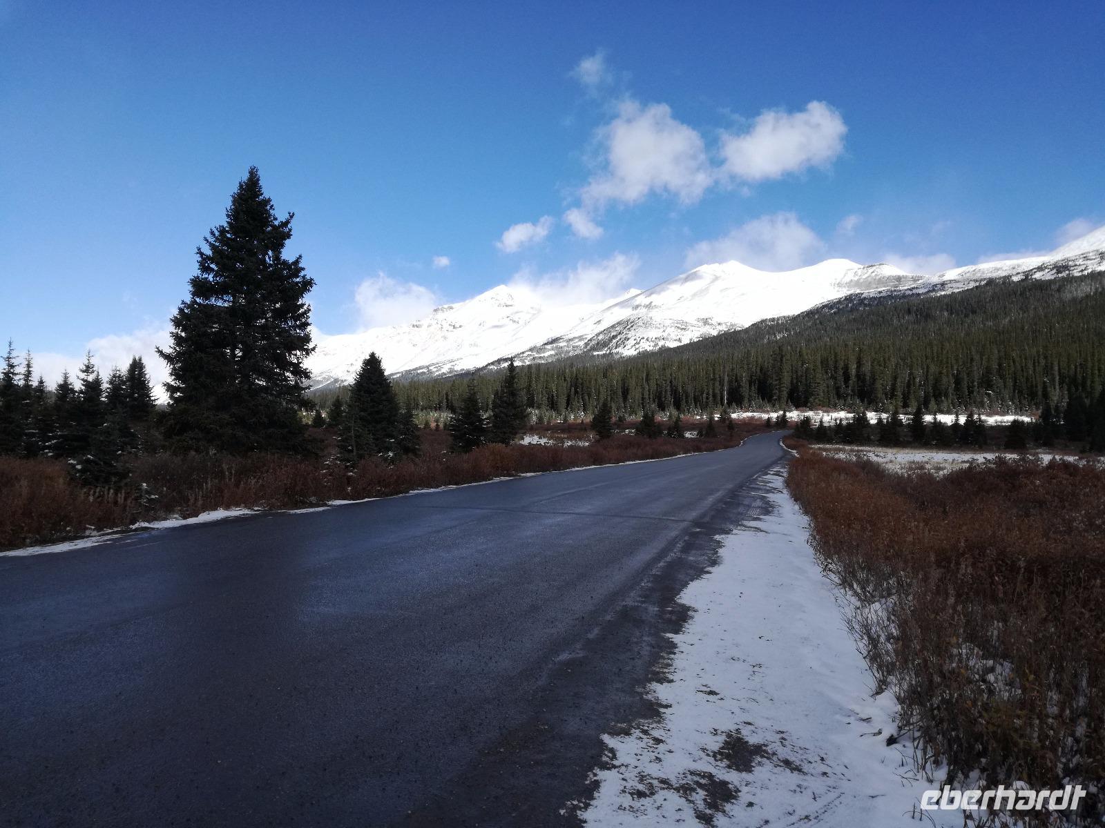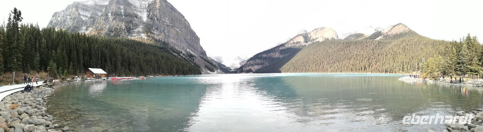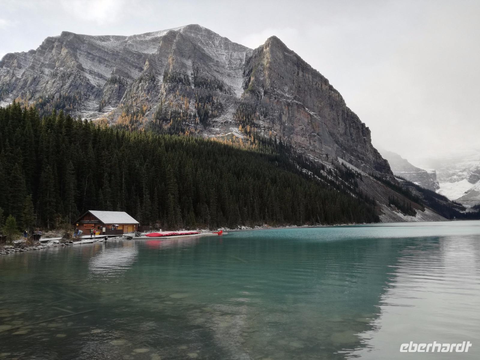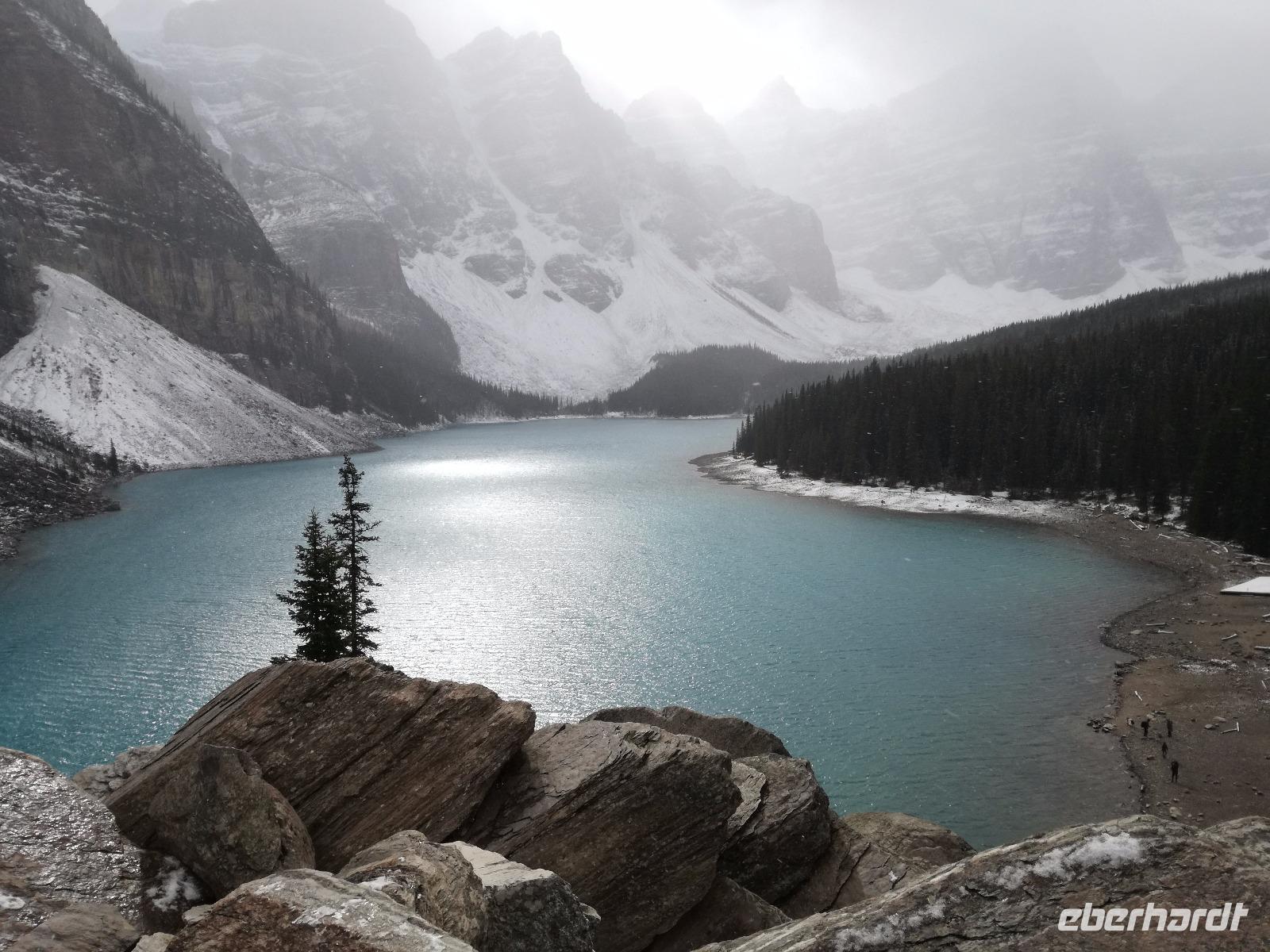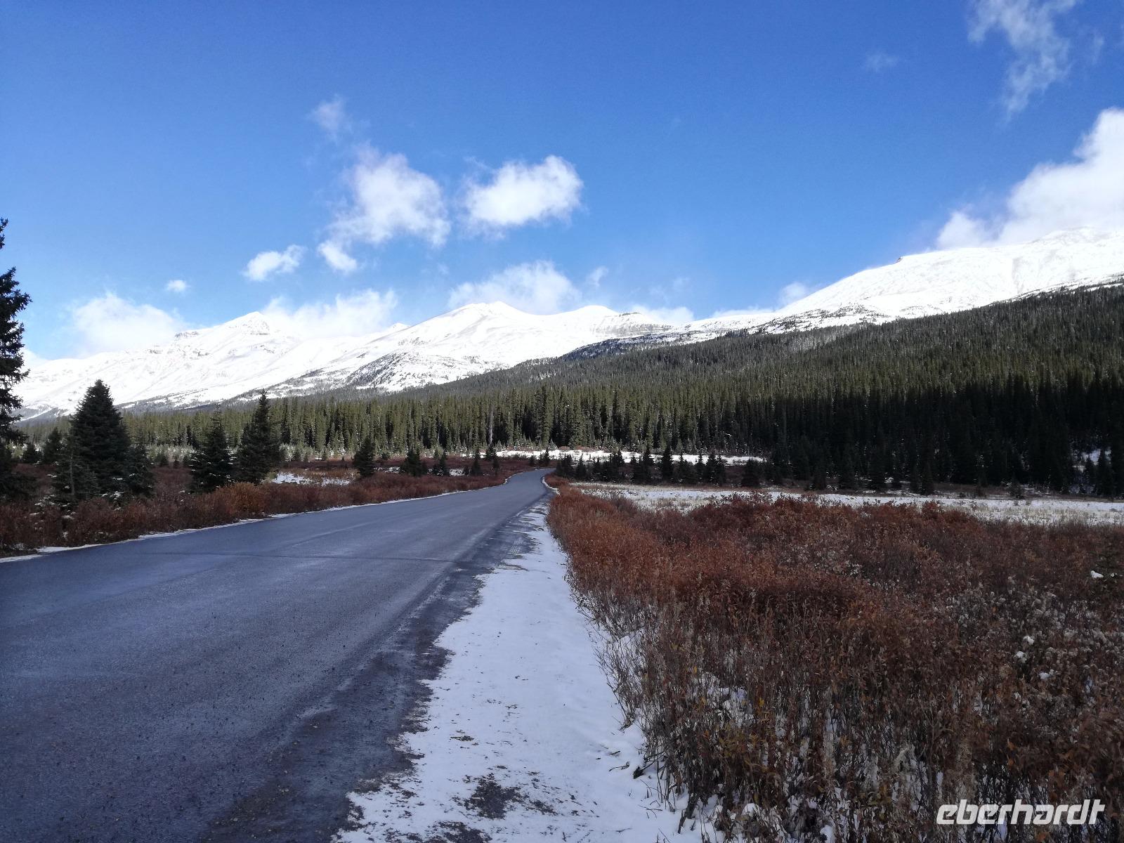 Noch beeindruckt vom Vortag brachen wir mit gepackten Koffer auf in Richtung Lake Louise. Der bezaubernde See lag leider noch etwas im Nebel, aber wir wärmten uns zunächst einmal im Fairmont Chateau Lake Louise bei einem Kaffee auf. Der See wurde nach der Tochter von Königin Victoria, Prinzessin Louise Caroline Alberta benannt. Das Chateau wurde ursprünglich 1890 als kleines Chalet erbaut und nach einem Feuer 1924 als elegantes Hotel wieder aufgebaut. Nach einer kurzen Zeit zeigte sich auch die Sonne und der Lake Louise erstrahlt in einem wundervollen türkisblau. Der Lake Louis erhält seiner Farbe durch Steinmehl, das vom Gletscherwasser in den See gespült wird und es somit in der kraftvollen Farbe erscheinen lässt. Weiter ging unsere Route über den Icefield Parkway zum Bow Lake. Hier wurde der Nebel wieder etwas dichter und es begann zu schneien. Die Schönheit des Sees minderte dies aber nicht. Im Gegenteil. Die Schneebedeckte Landschaft ließ den See in einem saftigen Blau leuchten. Nach einem kurzen Aufenthalt ging es weiter zum Lake Peyto. Für mich persönlich der schönste Fotostopp der Reise. Doch zunächst musste die Gruppe eine Eisbahn überwinden. Aber die Mühe wurde belohnt. Der Ausblick auf den See war atemberaubend. Die auffälligen Türkise Farbe strahlte in Front des schneebedeckten Berge. Dieser einmalige Blick auf den See ließ uns alle innehalten. Nachdem wir genügend Bilder geschossen und den Ausblick genossen hatten, ging es wieder in Richtung Bus. Nach einer Mittagspause ging es weiter auf dem Highway 93, auch Icefield Parkway genannt. Ein weiterer Stopp erfolgte am Sunwapta Pass. Auf über 2.000 Meter Höhe wurde uns erstmal die Weite des Landes und Höhe des Highways und des Passes bewusst. Gleichzeitig bildet der Sunwapta Pass auch die Grenze zwischen Banff und Jasper Nationalpark. Nach nur wenigen weiteren Kilometern erreichten wir auch das Besucherzentrum des Athabasca-Gletschers. Hier hatten wir etwas Zeit zur freien Verfügung. Manche schauten einen sehr interessanten Film über den Gletscher, manche bauten einen kleinen Schneemann und manchen genoss die Faszination des Gletschers bei einem Kaffee auf der Terrasse. Gegen Nachmittag ging es weiter durch den Jasper Nationalpark. Unsere heutige Übernachtung war in Bungalow umgeben von Natur. Nach den wir die Unterkünfte bezogen haben, machten wir noch einen Spaziergang zu den Sunwapta Wasserfällen. Abends ließen wir den aufregenden Tag bei einem gemeinsamen Abendessen ausklingen.