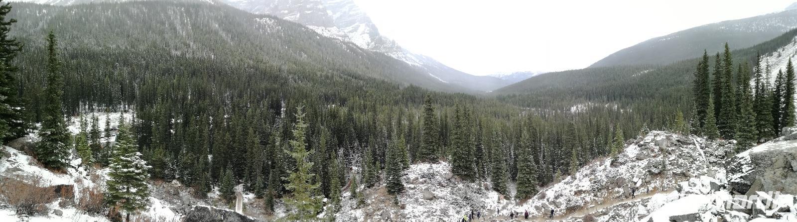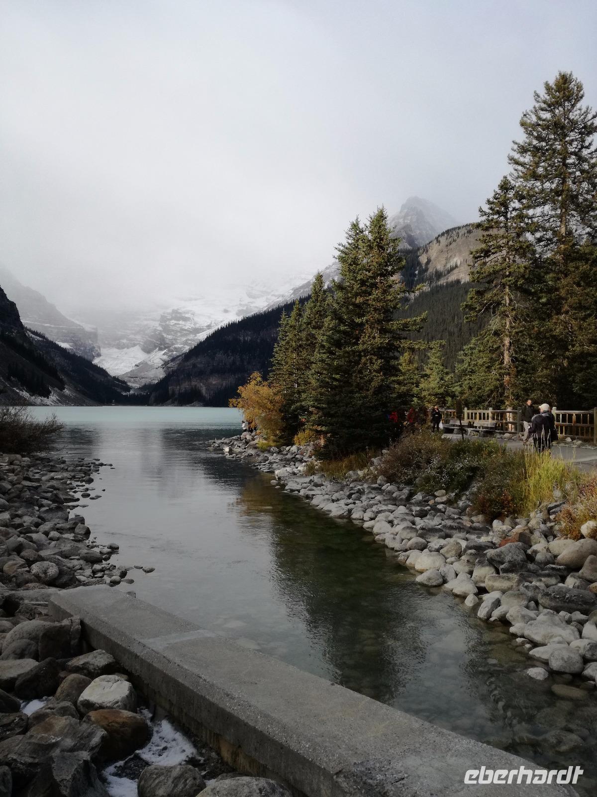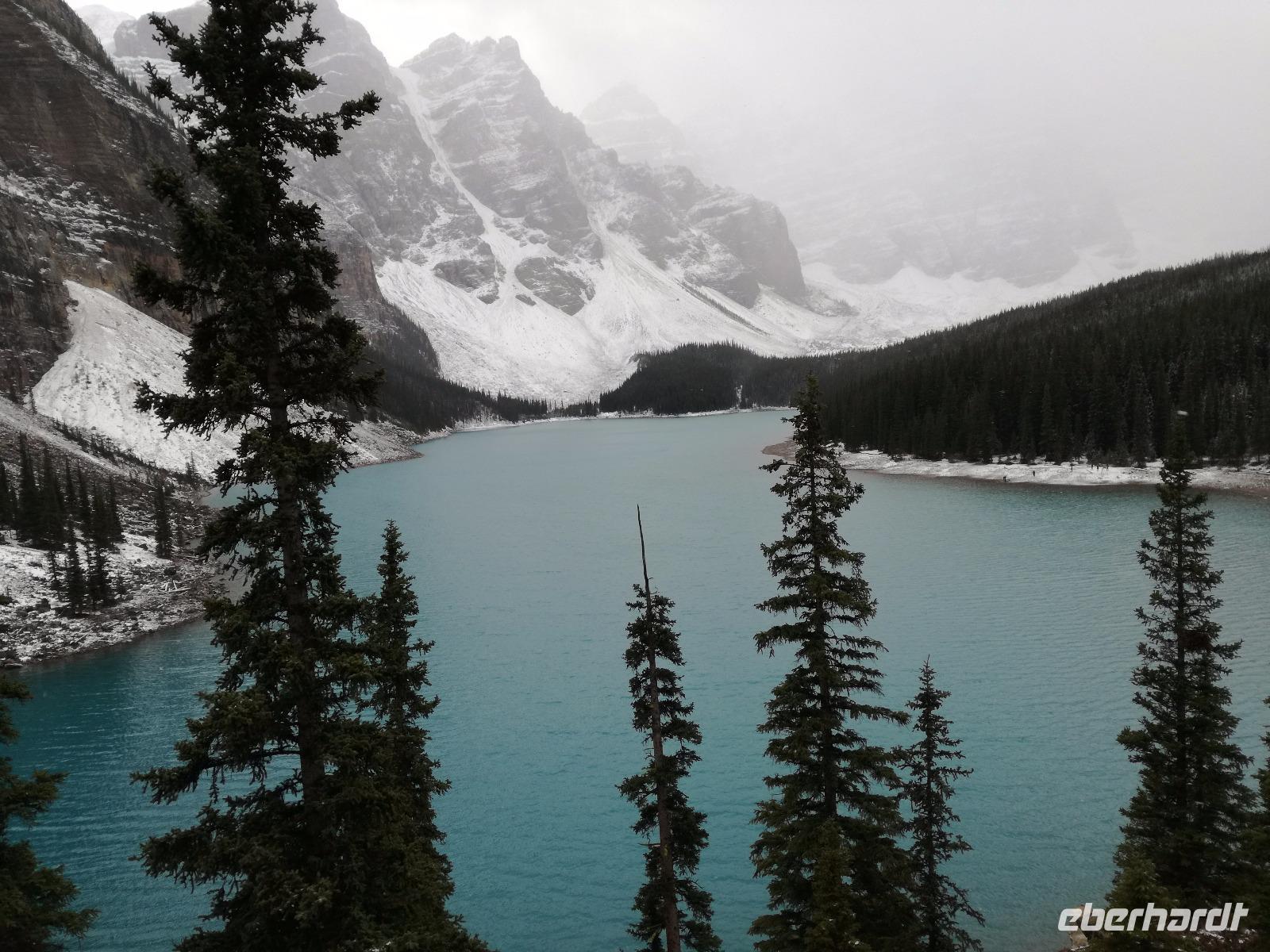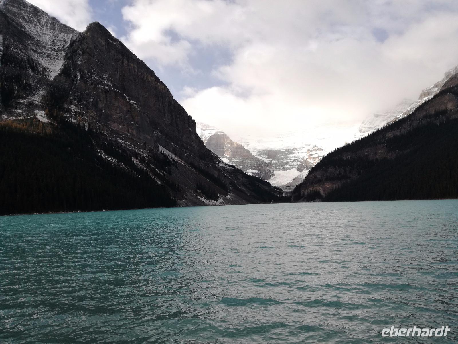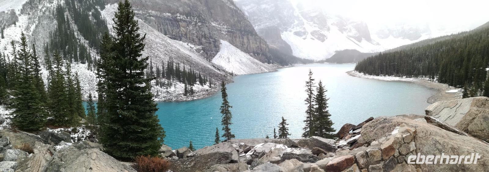 Noch beeindruckt vom Vortag brachen wir mit gepackten Koffer auf in Richtung Lake Louise. Der bezaubernde See lag leider noch etwas im Nebel, aber wir wärmten uns zunächst einmal im Fairmont Chateau Lake Louise bei einem Kaffee auf. Der See wurde nach der Tochter von Königin Victoria, Prinzessin Louise Caroline Alberta benannt. Das Chateau wurde ursprünglich 1890 als kleines Chalet erbaut und nach einem Feuer 1924 als elegantes Hotel wieder aufgebaut. Nach einer kurzen Zeit zeigte sich auch die Sonne und der Lake Louise erstrahlt in einem wundervollen türkisblau. Der Lake Louis erhält seiner Farbe durch Steinmehl, das vom Gletscherwasser in den See gespült wird und es somit in der kraftvollen Farbe erscheinen lässt. Weiter ging unsere Route über den Icefield Parkway zum Bow Lake. Hier wurde der Nebel wieder etwas dichter und es begann zu schneien. Die Schönheit des Sees minderte dies aber nicht. Im Gegenteil. Die Schneebedeckte Landschaft ließ den See in einem saftigen Blau leuchten. Nach einem kurzen Aufenthalt ging es weiter zum Lake Peyto. Für mich persönlich der schönste Fotostopp der Reise. Doch zunächst musste die Gruppe eine Eisbahn überwinden. Aber die Mühe wurde belohnt. Der Ausblick auf den See war atemberaubend. Die auffälligen Türkise Farbe strahlte in Front des schneebedeckten Berge. Dieser einmalige Blick auf den See ließ uns alle innehalten. Nachdem wir genügend Bilder geschossen und den Ausblick genossen hatten, ging es wieder in Richtung Bus. Nach einer Mittagspause ging es weiter auf dem Highway 93, auch Icefield Parkway genannt. Ein weiterer Stopp erfolgte am Sunwapta Pass. Auf über 2.000 Meter Höhe wurde uns erstmal die Weite des Landes und Höhe des Highways und des Passes bewusst. Gleichzeitig bildet der Sunwapta Pass auch die Grenze zwischen Banff und Jasper Nationalpark. Nach nur wenigen weiteren Kilometern erreichten wir auch das Besucherzentrum des Athabasca-Gletschers. Hier hatten wir etwas Zeit zur freien Verfügung. Manche schauten einen sehr interessanten Film über den Gletscher, manche bauten einen kleinen Schneemann und manchen genoss die Faszination des Gletschers bei einem Kaffee auf der Terrasse. Gegen Nachmittag ging es weiter durch den Jasper Nationalpark. Unsere heutige Übernachtung war in Bungalow umgeben von Natur. Nach den wir die Unterkünfte bezogen haben, machten wir noch einen Spaziergang zu den Sunwapta Wasserfällen. Abends ließen wir den aufregenden Tag bei einem gemeinsamen Abendessen ausklingen.