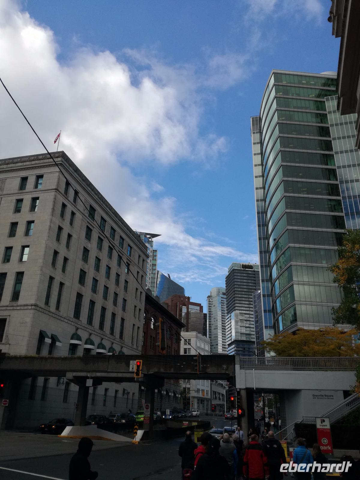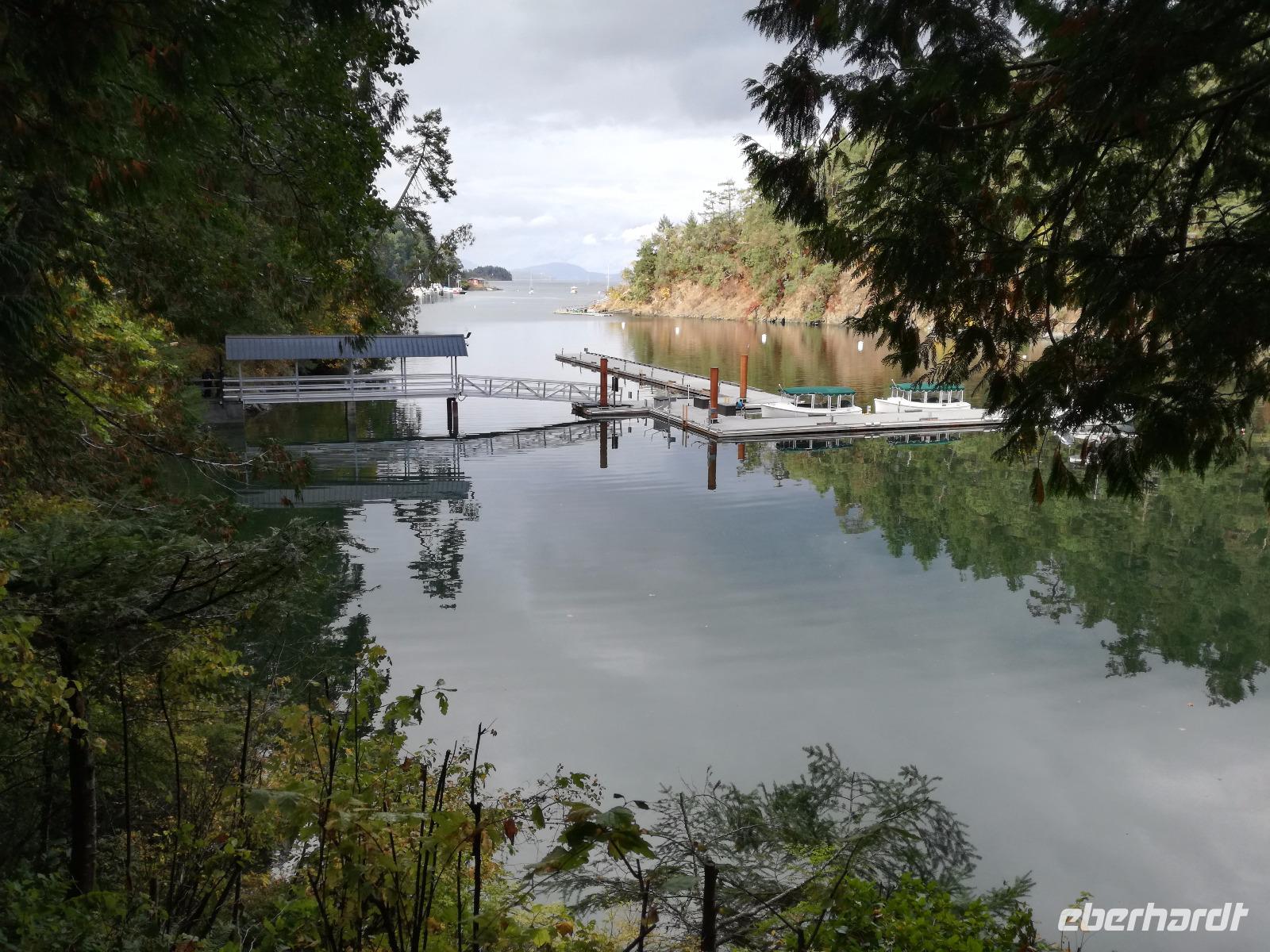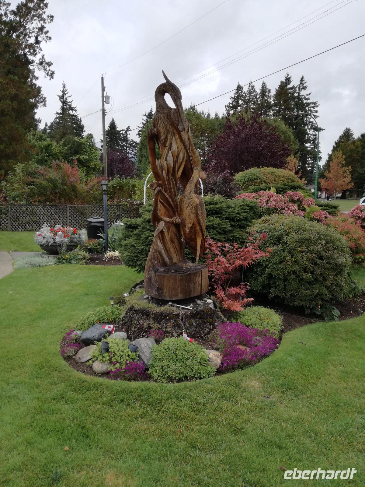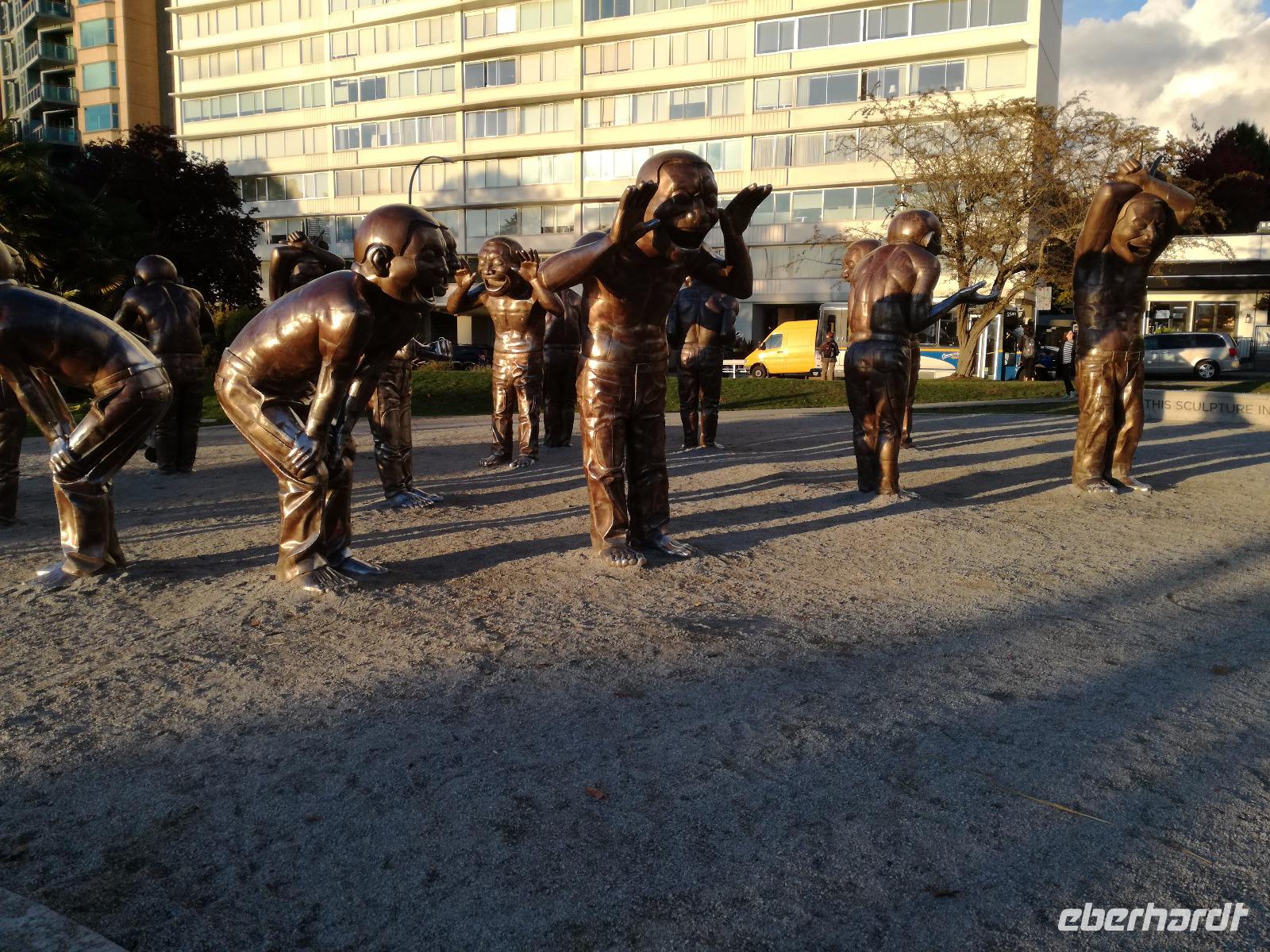 Den Morgen begannen wir mit einem leckeren Frühstück und einem Kaffee auf dem Balkon. Es fiel uns schwer diesen traumhaften Ort zu verlassen, aber unser nächstes Ziel war die Perle des Pazifiks - Vancouver. Über den Conquihallo Highway erreichten wir gegen Mittag die Stadt Hope. In der Stadt wurden vielen verschiedene Holzskulpturen, die mit Kettensägen bearbeitet wurden, aufgestellt. Wir schlenderten durch das Städtchen oder aßen gemütlich in einem Kaffee zu Mittag. Nach der Mittagszeit erreichten wir unser Ziel Vancouver und begannen mit unserer Stadtrundfahrt. In Gastown erfolgte unser erster Halt. Der Name verdankt das Stadtteil einem umtriebigen (Gazzy) britischen Siedler - John Gazzy Deighton, der hier seine Bar eröffnete. Hier steht auch eines der Wahrzeichen der Stadt. Die Dampfuhr dampft zu jeder vollen Stunde aus seinen 5 Dampfpfeifen. Zu jeder 1/4-Stunde spielt die Uhr den sogenannten Westminster Schlag. Unser nächster Halt erfolgte am Canada Place. Das markante Gebäude im Herzen der kanadischen Stadt Vancouver liegt am Ufer des Burrard Inlet. Es beherbergt das Messe- und Kongresszentrum, ein Hotel und das weltweit erste IMAX-Kino. Zudem ist es Anlegestelle der meisten Kreuzfahrtschiffe, die in Vancouver einlaufen. Hier wurden auch 2010 die Medaillen der Olympischen Spiele überreicht, woran heute eine Skulptur erinnert. Nach einer Fahrt durch Chinatown erreichten wir den an Stanley Park. Das schöne Ambiente des größten Stadtparkes von Kanada beeindruckte uns erneut. Neben den vielen Totempfählen, die noch heute in die verstorbenen Indianer erinnern sollen, hatten wir einen fantastischen Blick auf die Skyline der Stadt. Also letzten Programmpunkt des Tages liefen wir den Aussichtspunkt Prospect Point oberhalb der Lions Gate Bridge an. Von hier aus bekamen wir einen weiteren Überblick über die Stadt und den Ozean. Auf dem Weg zum Hotel mussten wir uns leider schon von unserem tollen Busfahrer Peter verabschieden, den uns während unserer Reise durch den Westen wunderbar begleitet hat. Im Hotel angekommen hatten wir noch etwas Zeit, um den Strand und die Skulptur der lachenden Menschen zu besichtigen, ehe wir ein letztes Mal gemeinsam zu Abend aßen.