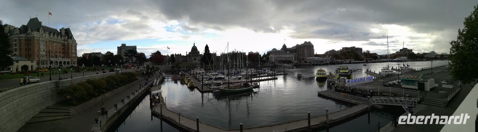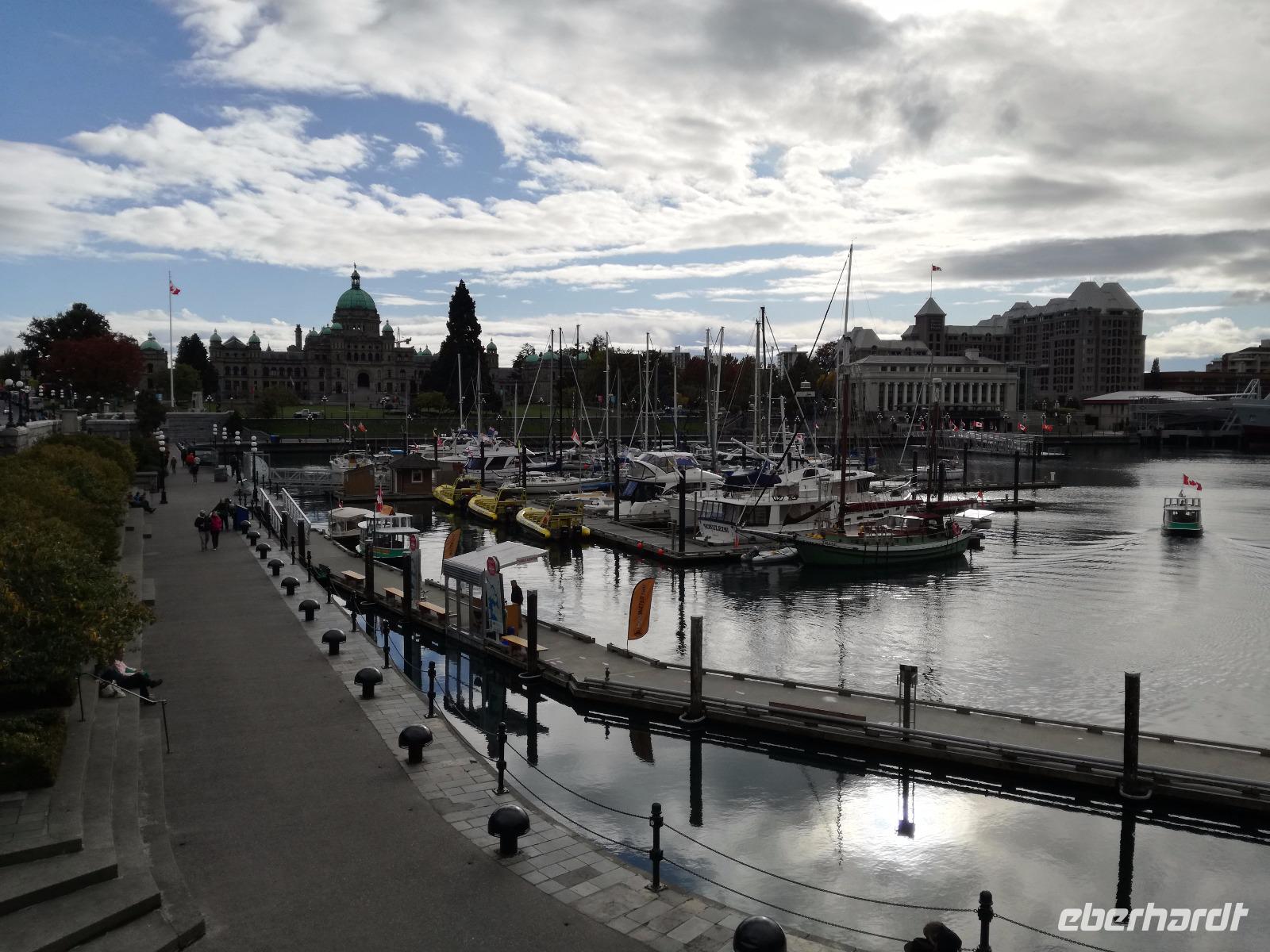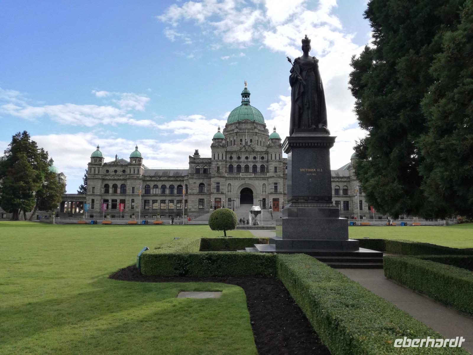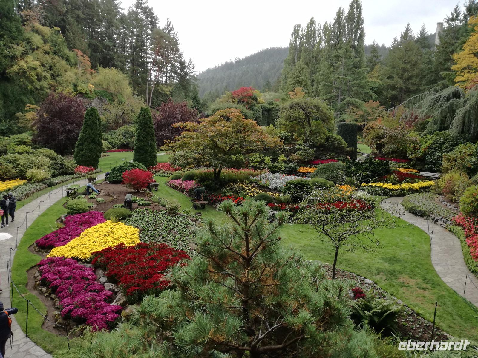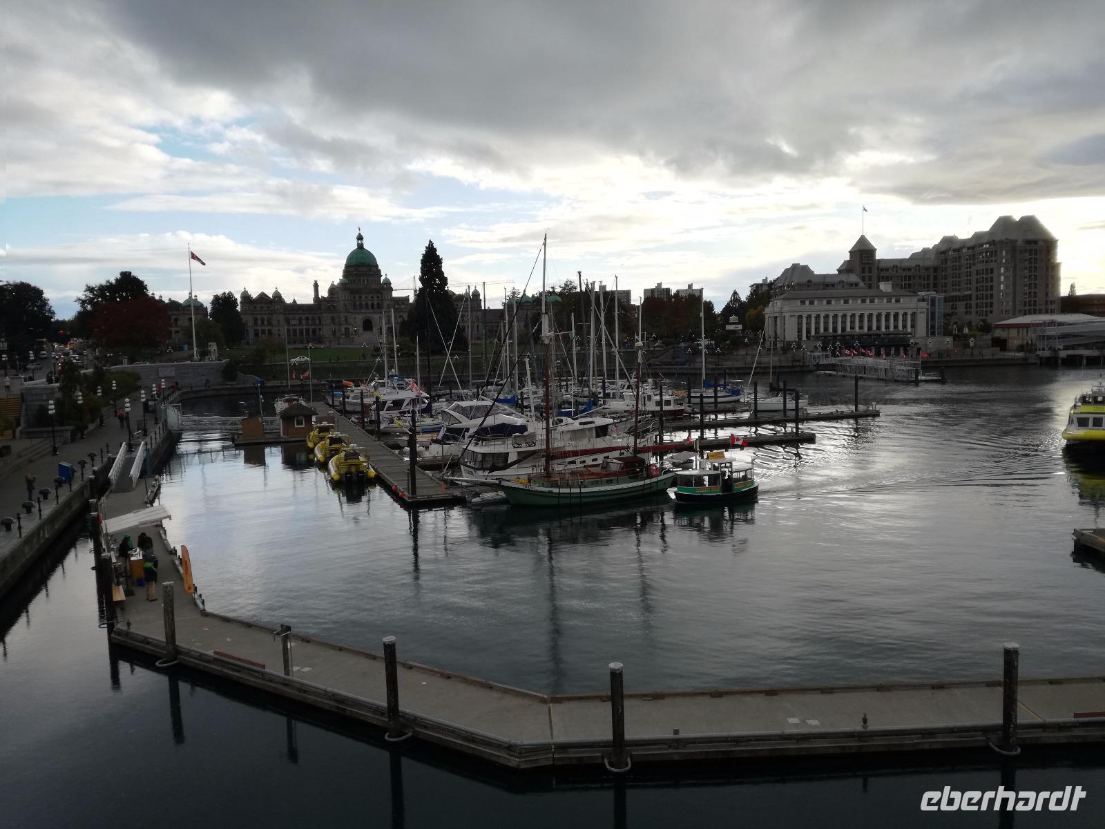 Am letzten Morgen zeigte sich Vancouver von seiner verregneten Seiten. Es war Zeit dem Regen zu entfliehen. Victoria auf Vancouver Island war unser Ziel des heutigen Tages. Auf der Busfahrt und dann nochmal eineinhalb Stunden Fährüberfahrt zogen Vancouver und die wunderbare Landschaft British Columbias an uns vorbei. Während der Zeit auf der Fähre hatte man die Möglichkeit die vorbeiziehenden kleinen Inseln und Landstriche zu beobachten oder ein paar tolle Fotos zu schießen. Als wir anlegten hatte es bereits aufgehört zu regnen. Wir steuerten sofort den Butchart Gardens, ein 22 Hektar großer, privater Blumengarten an. 1904 wurde der erste Garten von Jennie Butchart angelegt und stets erweitert. Jennie beschloss damals sogar, den ehemaligen Steinbruch, der durch das Zementgeschäfte ihres Mannes entstanden, aufzuhübschen und legte in diesem einen weiteren Garten an. Der Versunkene Garten heute eine der Hauptattraktionen der Butchart Gardens, aber früher konnte man hier nur Zuckererbsen und Rosen entdecken. Wir spazierten gemütlich durch die Rosengarten, den japanischen Garten und den italienischen Garten und erfreuten uns an der Vielfalt der Gärten. Am Nachmittag fuhren wir in die Hauptstadt von British Columbia - Victoria. Hier lebt auch unsere tolle Reiseleiterin Marion. Bei einer Stadtrundfahrt zeigte sie uns ihre Lieblingsecken, Chinatown, das Parlamentsgebäude, Fishermans Wharf und den Jachthafen. Im Anschluss konnten wir die Stadt auf eigene Faust erkunden und uns alle Plätze in Ruhe angucken. Dies war ein wunderbarer Abschluss unserer Reise. Gegen Abend nahmen wir wieder die Fähre zurück aufs Festland und ließen den letzten Abend in unserer Hotelbar ausklingen.
