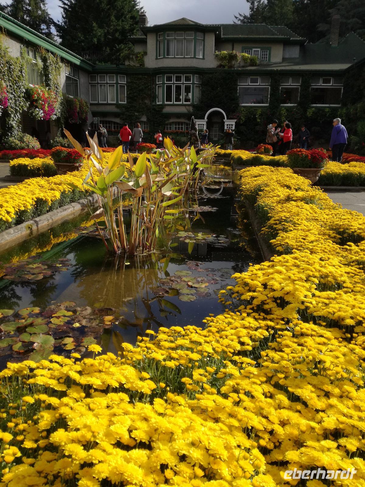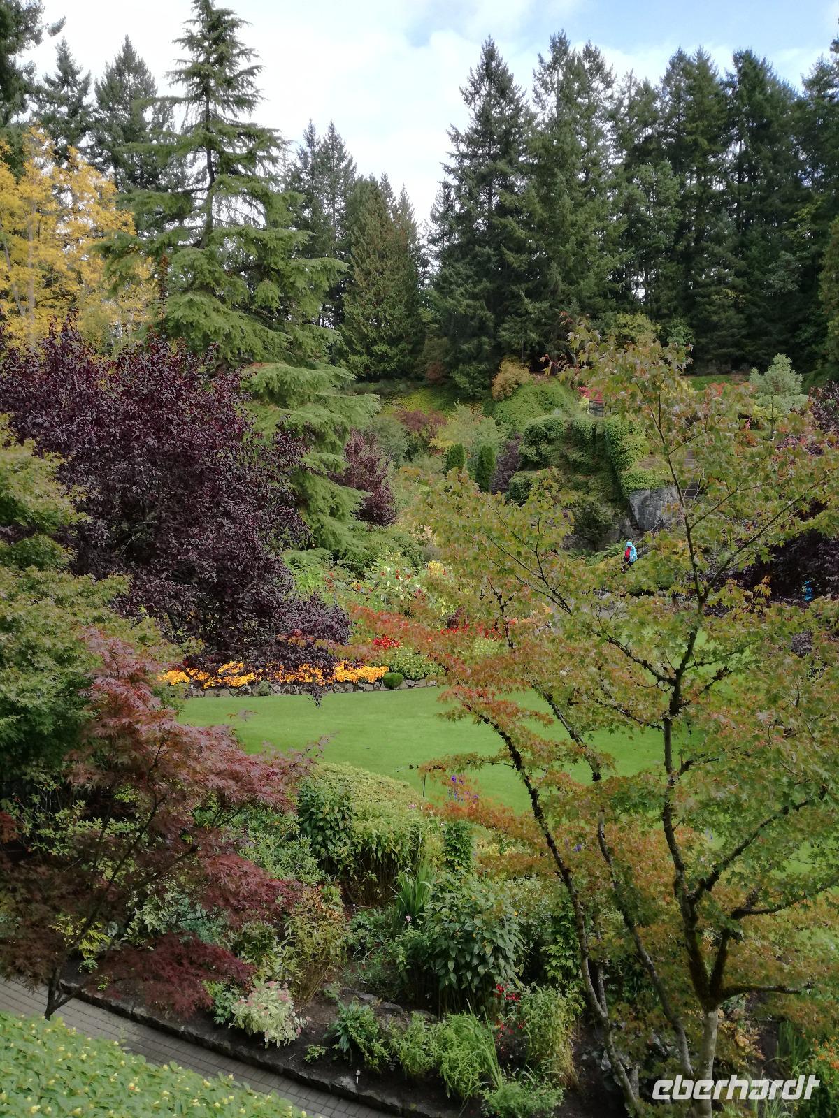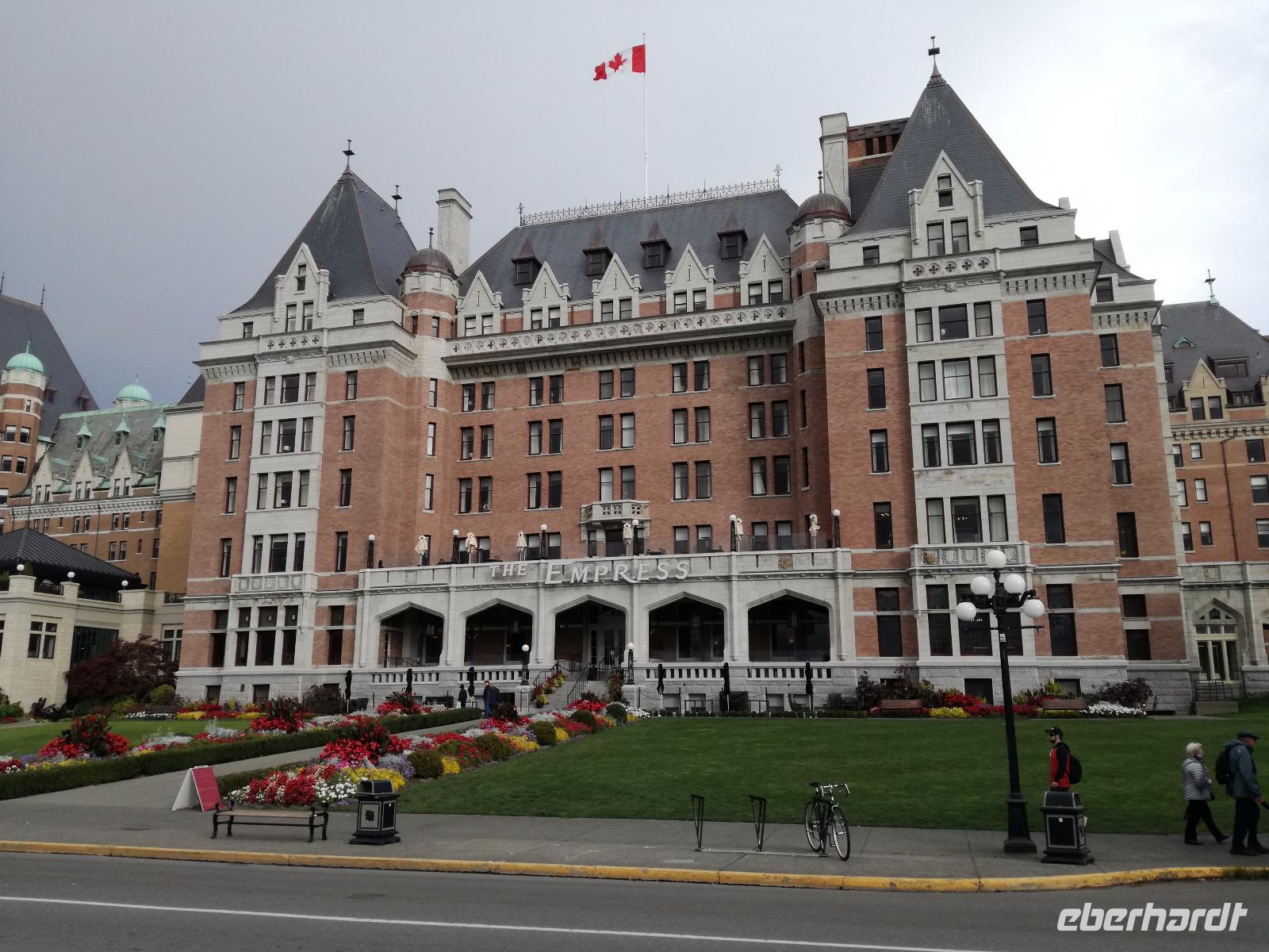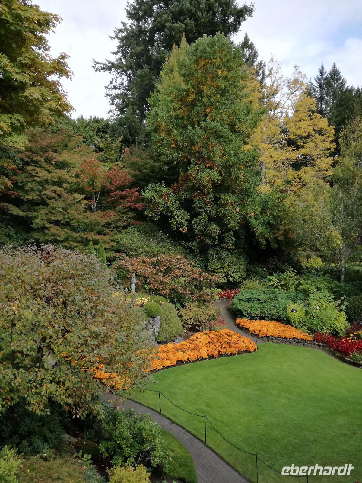 Am letzten Morgen zeigte sich Vancouver von seiner verregneten Seiten. Es war Zeit dem Regen zu entfliehen. Victoria auf Vancouver Island war unser Ziel des heutigen Tages. Auf der Busfahrt und dann nochmal eineinhalb Stunden Fährüberfahrt zogen Vancouver und die wunderbare Landschaft British Columbias an uns vorbei. Während der Zeit auf der Fähre hatte man die Möglichkeit die vorbeiziehenden kleinen Inseln und Landstriche zu beobachten oder ein paar tolle Fotos zu schießen. Als wir anlegten hatte es bereits aufgehört zu regnen. Wir steuerten sofort den Butchart Gardens, ein 22 Hektar großer, privater Blumengarten an. 1904 wurde der erste Garten von Jennie Butchart angelegt und stets erweitert. Jennie beschloss damals sogar, den ehemaligen Steinbruch, der durch das Zementgeschäfte ihres Mannes entstanden, aufzuhübschen und legte in diesem einen weiteren Garten an. Der Versunkene Garten heute eine der Hauptattraktionen der Butchart Gardens, aber früher konnte man hier nur Zuckererbsen und Rosen entdecken. Wir spazierten gemütlich durch die Rosengarten, den japanischen Garten und den italienischen Garten und erfreuten uns an der Vielfalt der Gärten. Am Nachmittag fuhren wir in die Hauptstadt von British Columbia - Victoria. Hier lebt auch unsere tolle Reiseleiterin Marion. Bei einer Stadtrundfahrt zeigte sie uns ihre Lieblingsecken, Chinatown, das Parlamentsgebäude, Fishermans Wharf und den Jachthafen. Im Anschluss konnten wir die Stadt auf eigene Faust erkunden und uns alle Plätze in Ruhe angucken. Dies war ein wunderbarer Abschluss unserer Reise. Gegen Abend nahmen wir wieder die Fähre zurück aufs Festland und ließen den letzten Abend in unserer Hotelbar ausklingen.