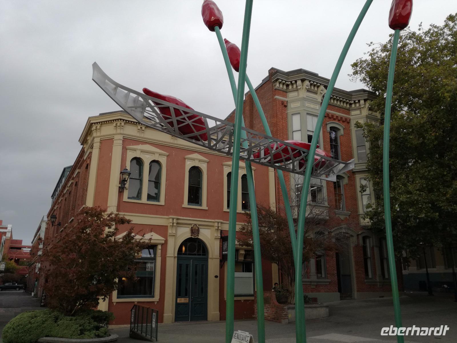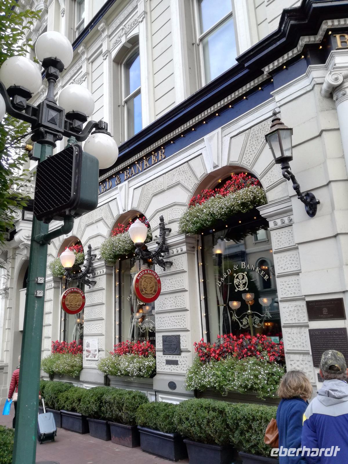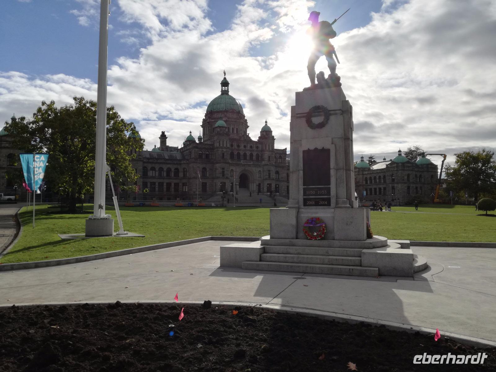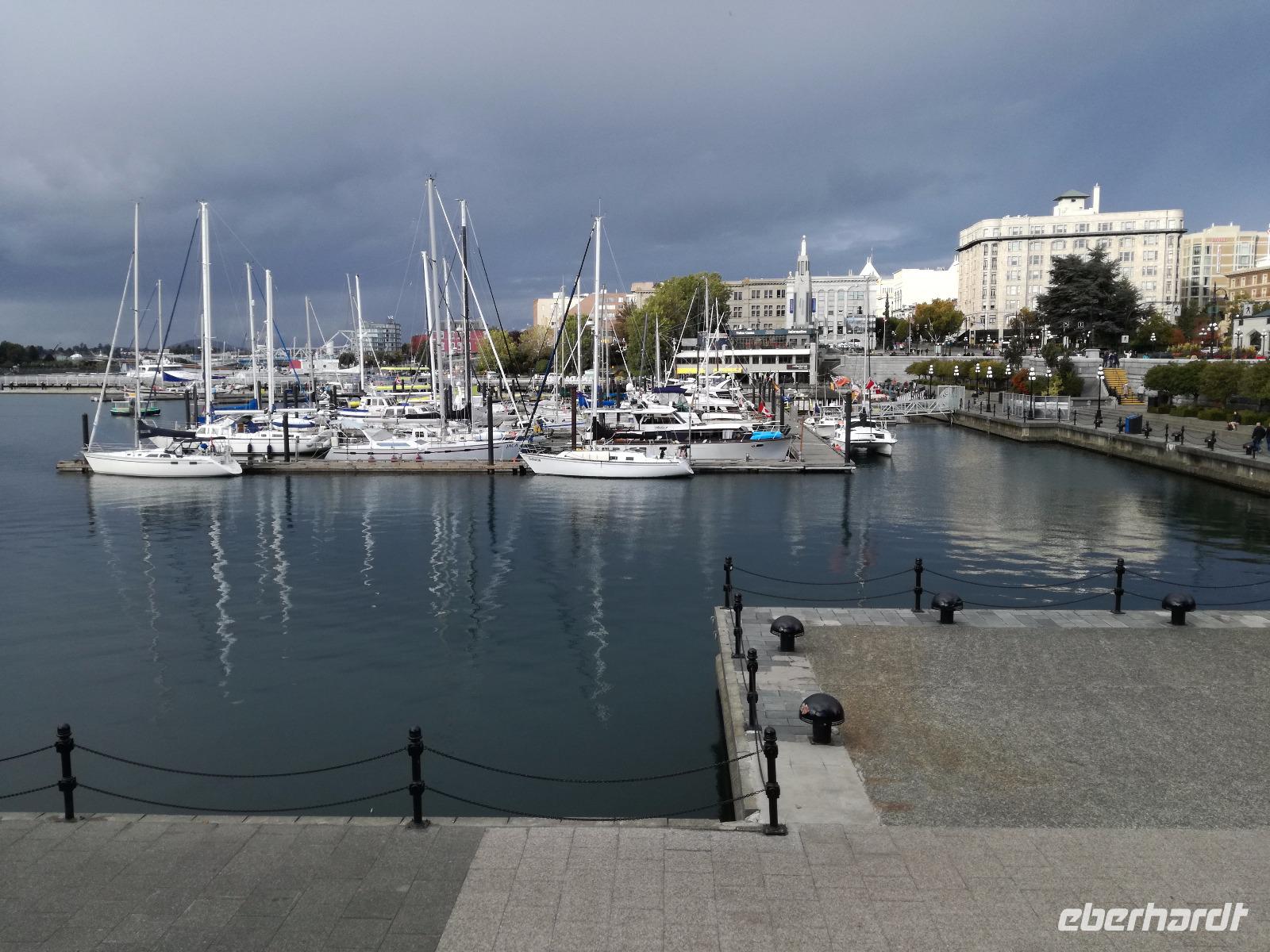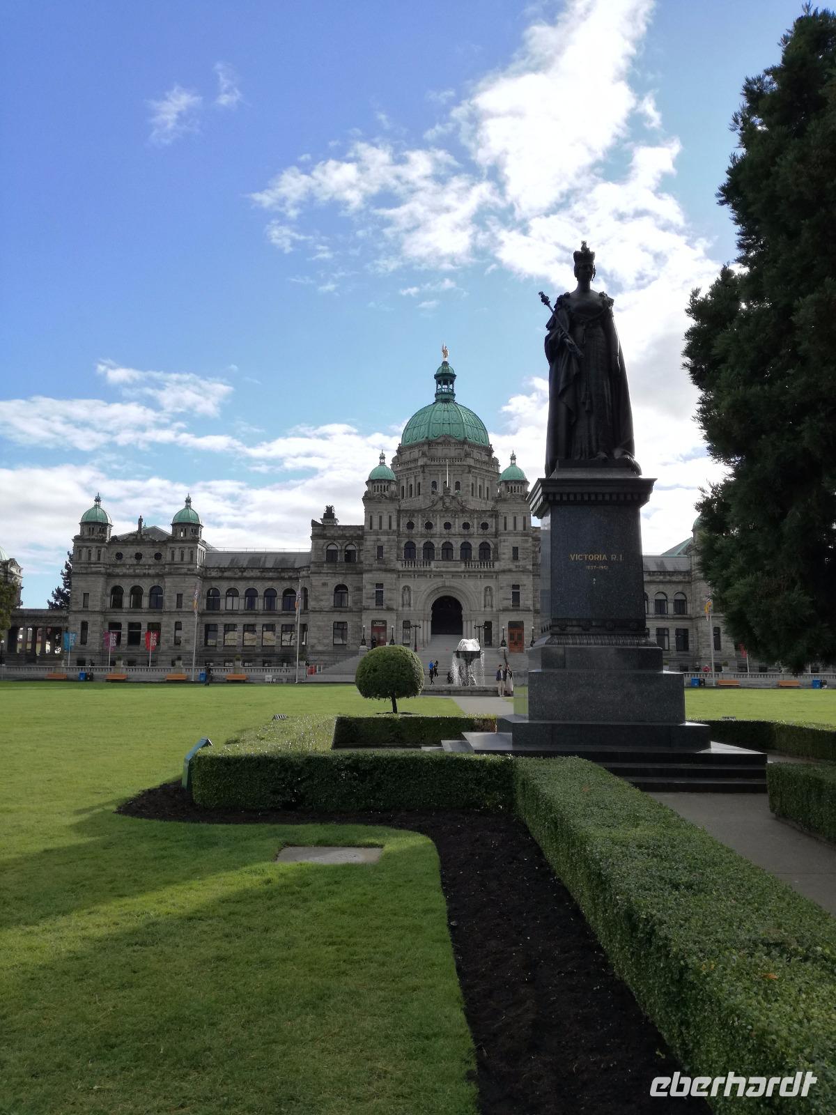 Am letzten Morgen zeigte sich Vancouver von seiner verregneten Seiten. Es war Zeit dem Regen zu entfliehen. Victoria auf Vancouver Island war unser Ziel des heutigen Tages. Auf der Busfahrt und dann nochmal eineinhalb Stunden Fährüberfahrt zogen Vancouver und die wunderbare Landschaft British Columbias an uns vorbei. Während der Zeit auf der Fähre hatte man die Möglichkeit die vorbeiziehenden kleinen Inseln und Landstriche zu beobachten oder ein paar tolle Fotos zu schießen. Als wir anlegten hatte es bereits aufgehört zu regnen. Wir steuerten sofort den Butchart Gardens, ein 22 Hektar großer, privater Blumengarten an. 1904 wurde der erste Garten von Jennie Butchart angelegt und stets erweitert. Jennie beschloss damals sogar, den ehemaligen Steinbruch, der durch das Zementgeschäfte ihres Mannes entstanden, aufzuhübschen und legte in diesem einen weiteren Garten an. Der Versunkene Garten heute eine der Hauptattraktionen der Butchart Gardens, aber früher konnte man hier nur Zuckererbsen und Rosen entdecken. Wir spazierten gemütlich durch die Rosengarten, den japanischen Garten und den italienischen Garten und erfreuten uns an der Vielfalt der Gärten. Am Nachmittag fuhren wir in die Hauptstadt von British Columbia - Victoria. Hier lebt auch unsere tolle Reiseleiterin Marion. Bei einer Stadtrundfahrt zeigte sie uns ihre Lieblingsecken, Chinatown, das Parlamentsgebäude, Fishermans Wharf und den Jachthafen. Im Anschluss konnten wir die Stadt auf eigene Faust erkunden und uns alle Plätze in Ruhe angucken. Dies war ein wunderbarer Abschluss unserer Reise. Gegen Abend nahmen wir wieder die Fähre zurück aufs Festland und ließen den letzten Abend in unserer Hotelbar ausklingen.