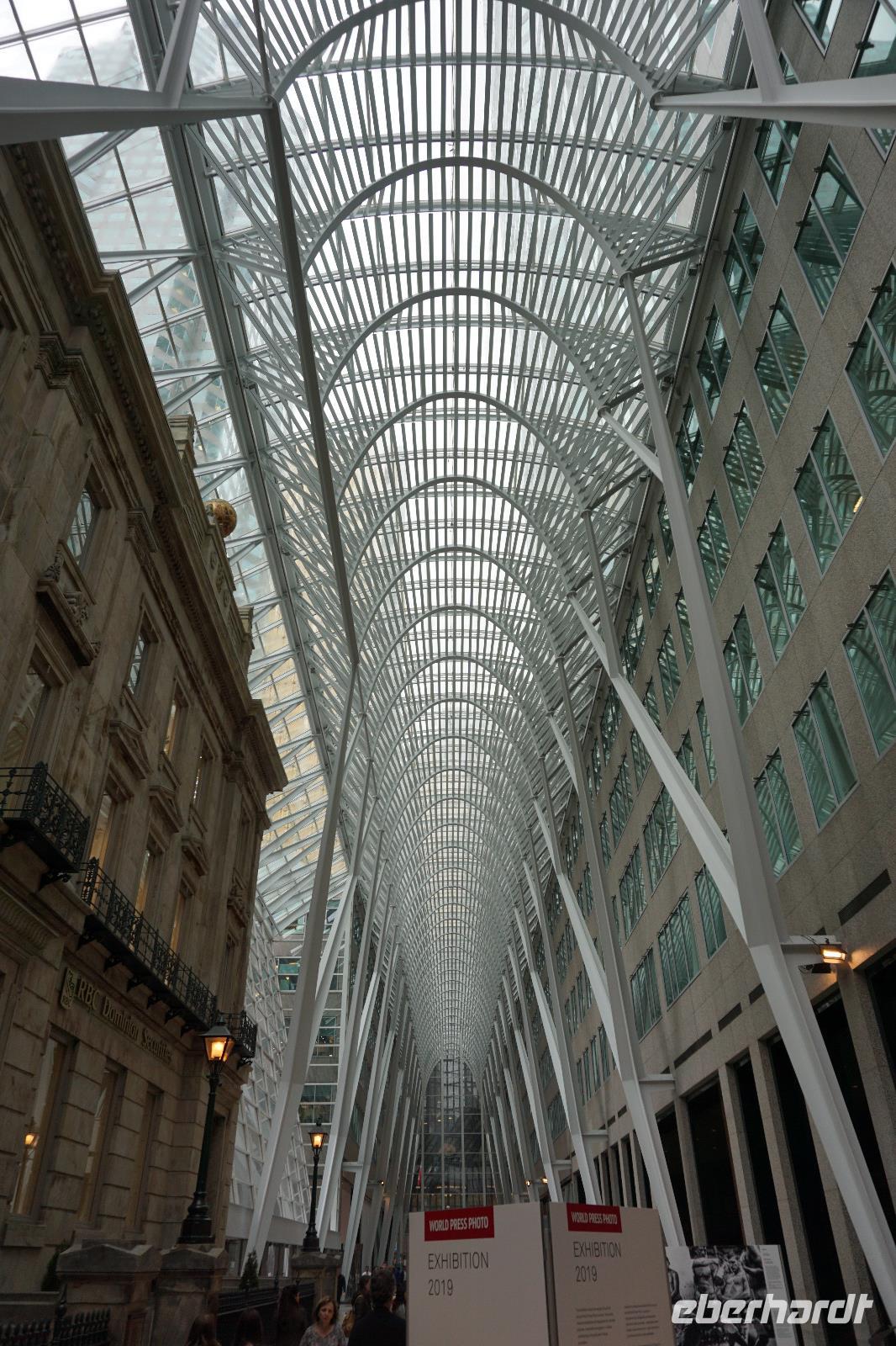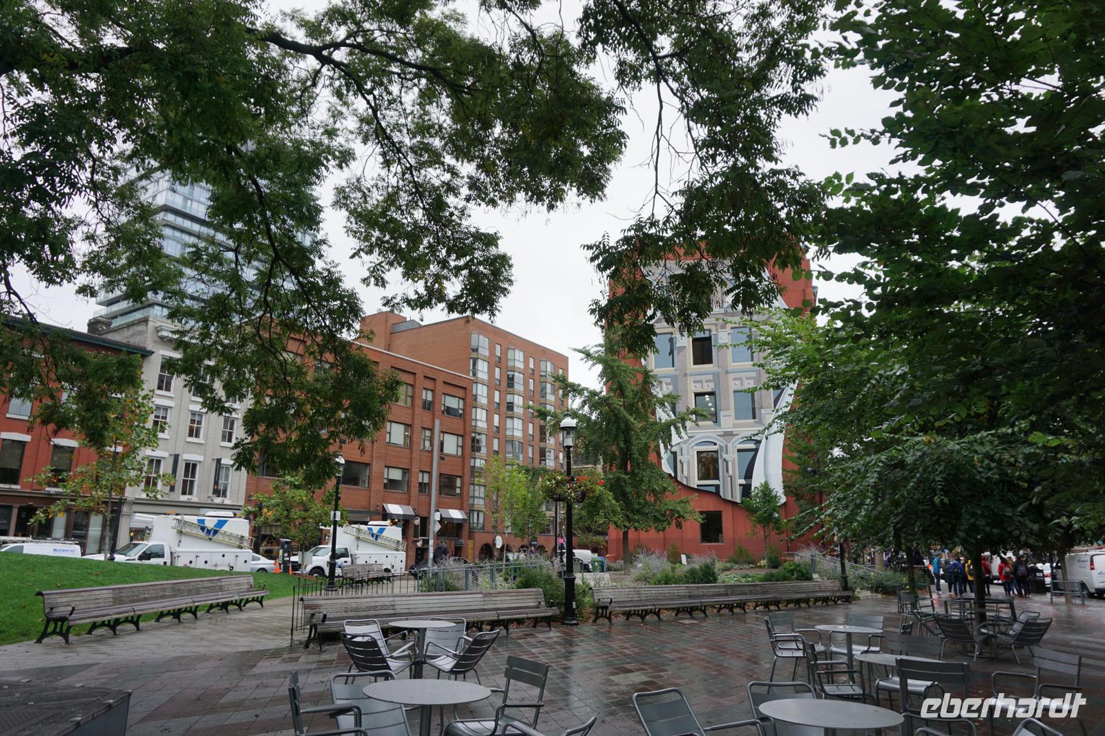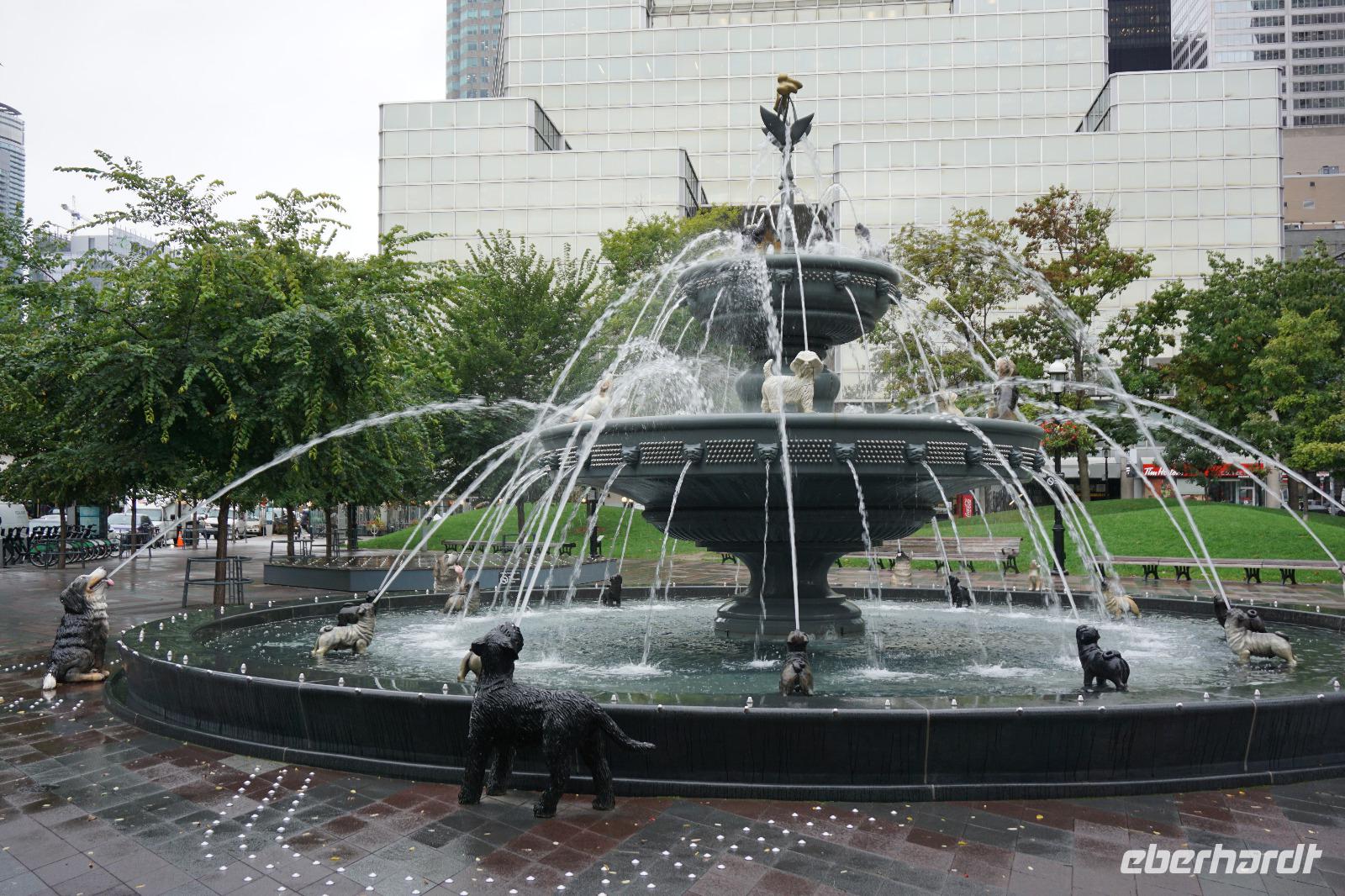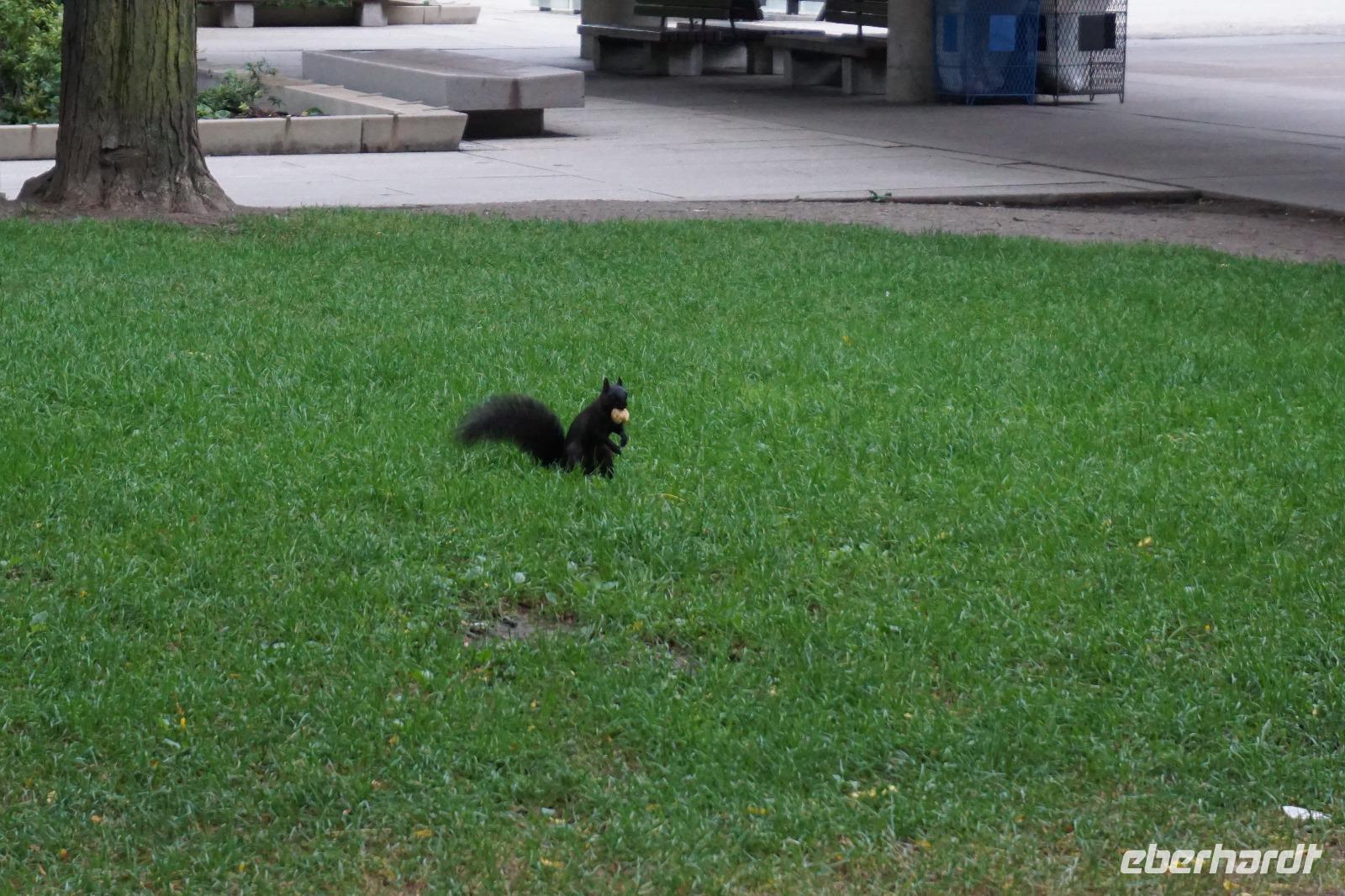 Am frühen Vormittag luden wir (oder eher Simon) unsere Koffer in den Bus und brachen mit Marion zu einer Stadtführung auf. Vorbei an der Sparks Street und dem Terry Fox Denkmal liefen wir zum Gelände des Parlaments mit der Centennial Flame, einer symbolischen Flamme zwischen den Wappen der Provinzen und Territorien Kanadas, inmitten eines Springbrunnens. Neben dem imposanten Hotel Chateau Laurier bestaunten wir die meisten Schleusen auf einer Stelle, die Ottawa Locks mit acht Schleusen. Insgesamt gibt es 43 Schleusen auf dem Rideau Kanal. Im Winter wird das Wasser des Kanals größtenteils abgelassen, dieser friert zu und wird zur Eislaufbahn für Einheimische und Touristen. Gegenüber der Ottawa Locks befand sich das Nationale Kriegsdenkmal, eine Erinnerungsstätte an die vielen gefallenen kanadischen Soldaten im Ersten Weltkrieg und aller späteren Kriege. Am Hotel stiegen wir wieder in den Bus ein und setzten unsere Stadtrundfahrt fort. Wir fuhren durch das Botschaftsviertel entlang des Ottawa Flusses, wo wir auf der anderen Seite Gatineau erblicken konnten. Wir spazierten durch den Rideau Hall Park. Anschließend verließen wir Ottawa, um weiter Richtung Osten zu fahren. Unterwegs spielte uns Marion verschiedene Lieder vor, darunter auch die kanadische Nationalhymne. Durch den kleinen Ort Brockville mit Häusern im viktorianischen Stil fuhren wir nach Rockport, wo wir eine Bootsfahrt entlang der berühmten 1000 Inseln antraten. Die Inseln liegen am Abfluss des Ontariosees in der Grenzregion zwischen den USA und Kanada. Hier findet man ebenfalls die angeblich kleinste internationale Brücke der Welt. Im Anschluss an unsere Fahrt auf dem Wasser ließen wir es uns in einem kleinen Restaurant zum Mittagessen schmecken. Zum Salat reichte man uns das typische 1000-Inseln-Dressing, was sehr gut schmeckte. Entlang des 1000 Insel Parkway fuhren wir weiter in die Garnissionsstadt Kingston, wo wir Zeit zum Verweilen hatten. Die Stadt mit über 120.000 Einwohner liegt am nordöstlichen Ende des Ontariosees. Auf der Weiterfahrt nach Toronto erzählte uns Marion viel Wissenswertes über das kanadische Schul- und Rentensystem. Am Abend erreichten wir unser Hotel in Toronto, welches mitten im belebten Zentrum der Stadt lag. Bei einem abendlichen Spaziergang durch die beleuchtete Stadt, erhaschten wir erste Blicke auf den Yonge-Dundas Square, in das Eaton Centre und auf das Toronto-Schild vor dem neuen Rathaus.