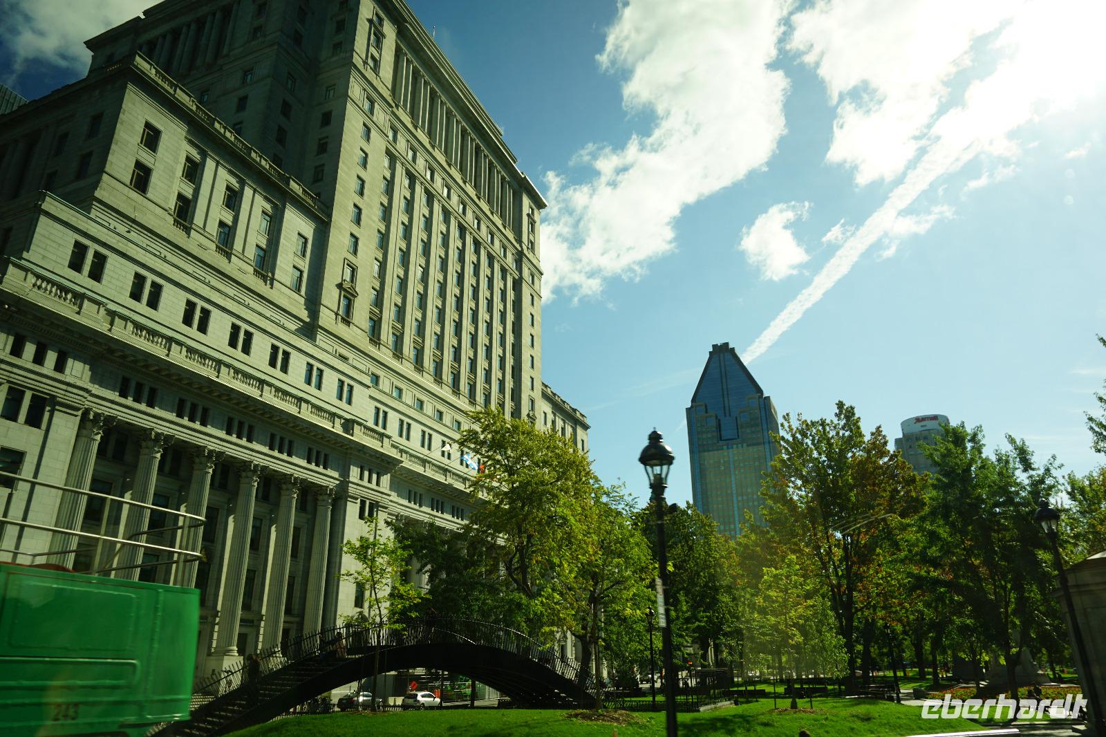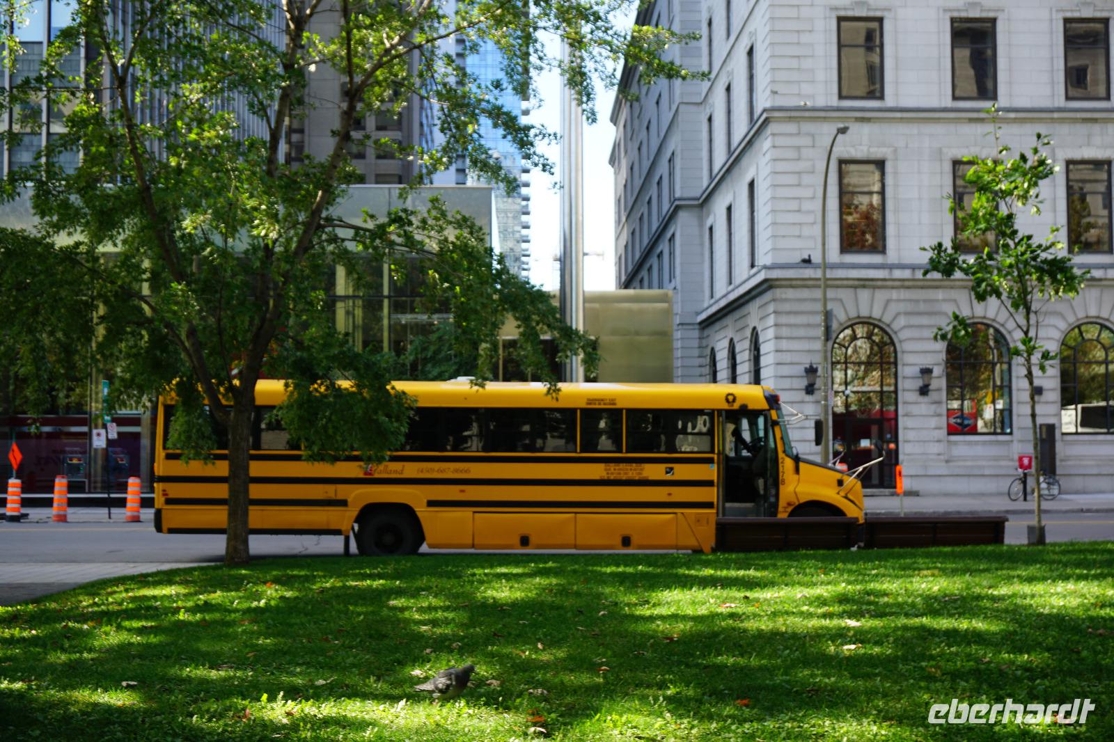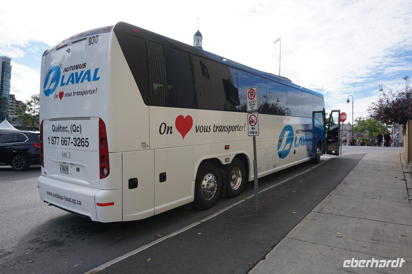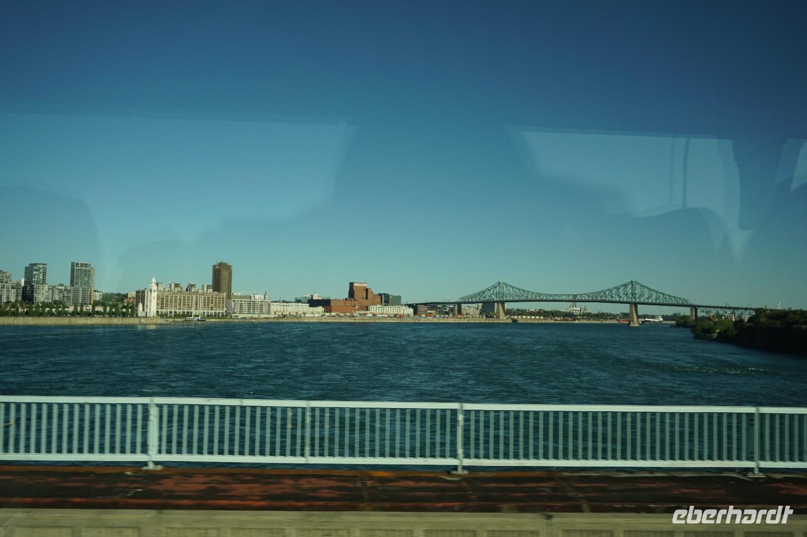 Am frühen Morgen traf sich die Hälfte der Reisegruppe am Flughafen in Dresden. Nach einem kleinen Snack nach der Sicherheitskontrolle, starteten wir Richtung Frankfurt, wo wir die meisten anderen der Gruppe trafen. Fast pünktlich flogen wir ab und begaben uns auf große Reise ins weit entfernte Kanada. Gespannt, was uns erwarten würde, brachten wir schnell sieben Stunden Flug hinter uns und kamen in Montreal an, wo wir noch durch die Einreisekontrolle und unser Gepäck abholen mussten. Durch den Ausfall eines Gepäckbandes in Frankfurt, blieben leider zwei Reisende vorerst ohne Koffer. Am Flughafen wartete bereits unsere sehr sympathische örtliche Reiseleitung Marion auf uns und kurze Zeit später trafen wir auch unseren netten Busfahrer Simon. Nach der Ankunft im Hotel, was sich im Unterhaltungsbezirk (Le Quartier de Spectacle) befand, unternahmen wir bei Nieselregen einen kleinen Spaziergang über die Rue Saint-Catherine zum Place des Arts, der Mall und einer Wechselstube. Am frühen Abend fuhren die meisten von uns in die Altstadt zum Abendessen im Vieux - Port Steakhouse. Als Vorspeise wurde Salat oder Crab Cake (Krabbenkuchen) serviert, beim Hauptgang konnte man zwischen Steak und Lachs wählen und als Dessert reichte man uns leckeren Schokokuchen. Da wir alle sehr müde waren, dauerte das Essen nicht allzu lange bevor wir wieder mit dem Bus ins Hotel gebracht wurden.