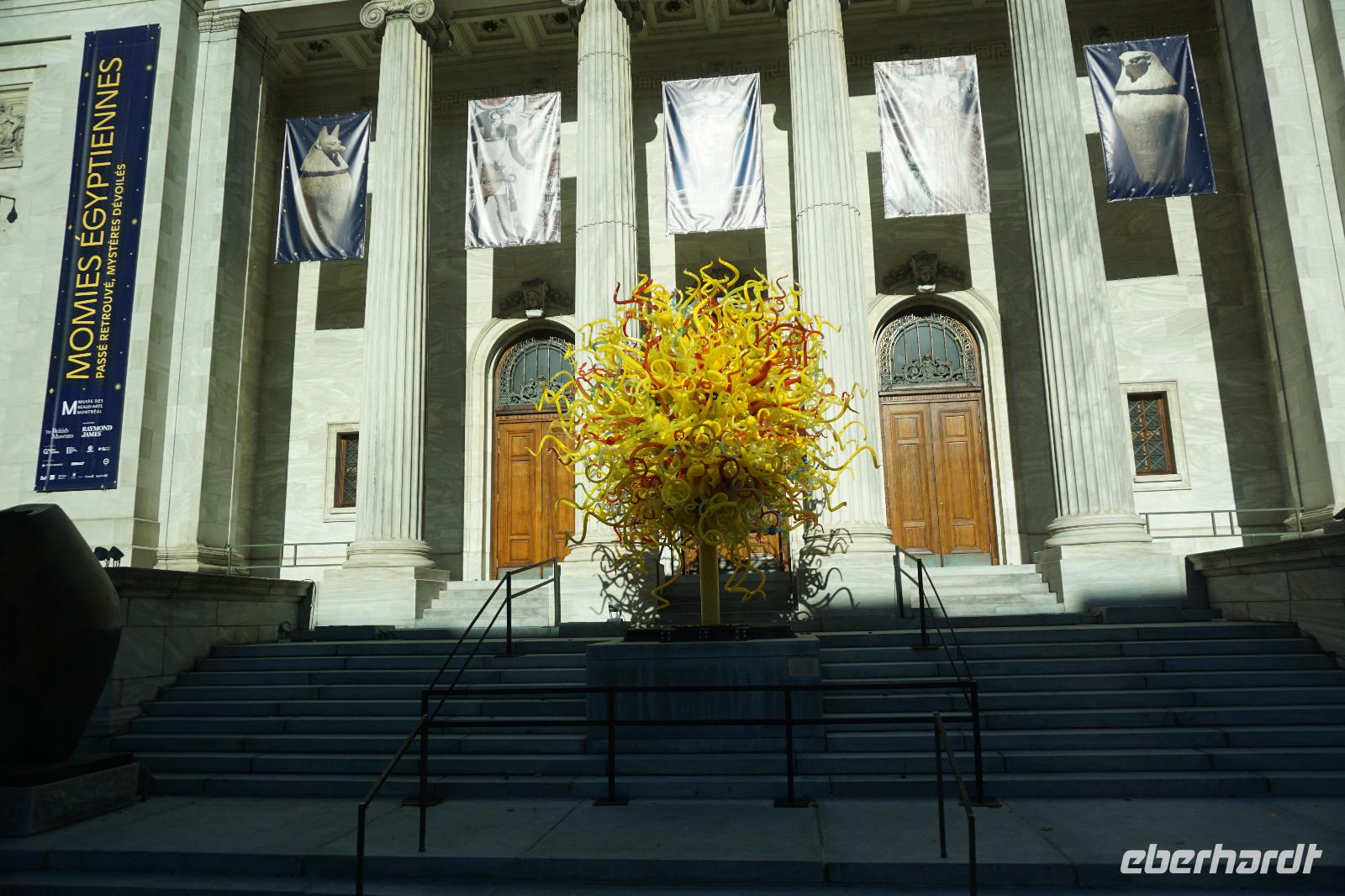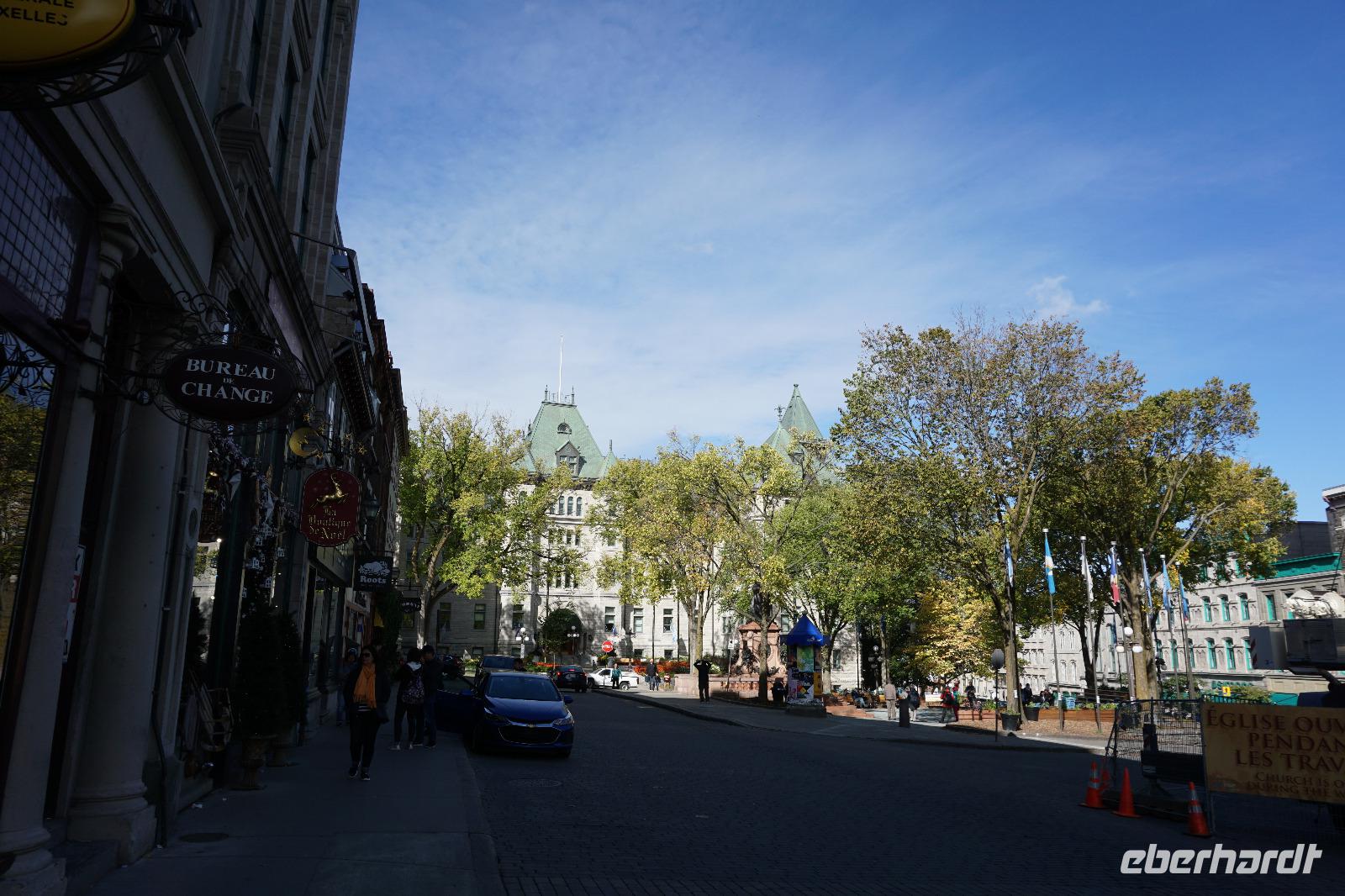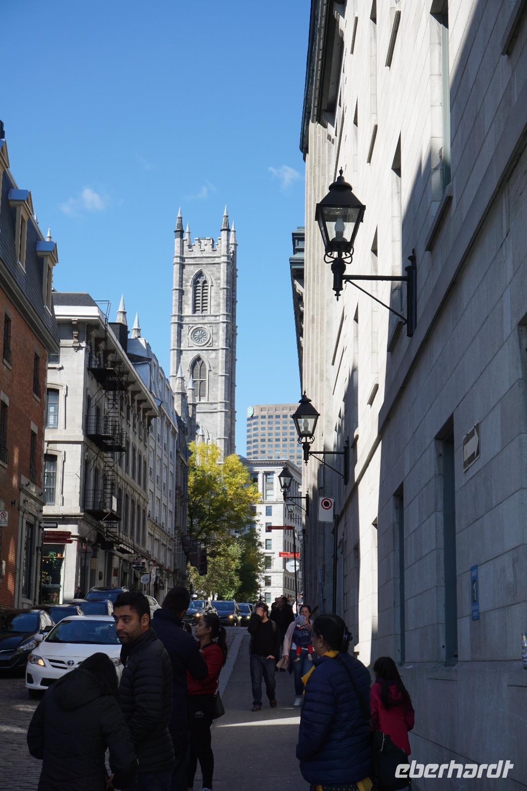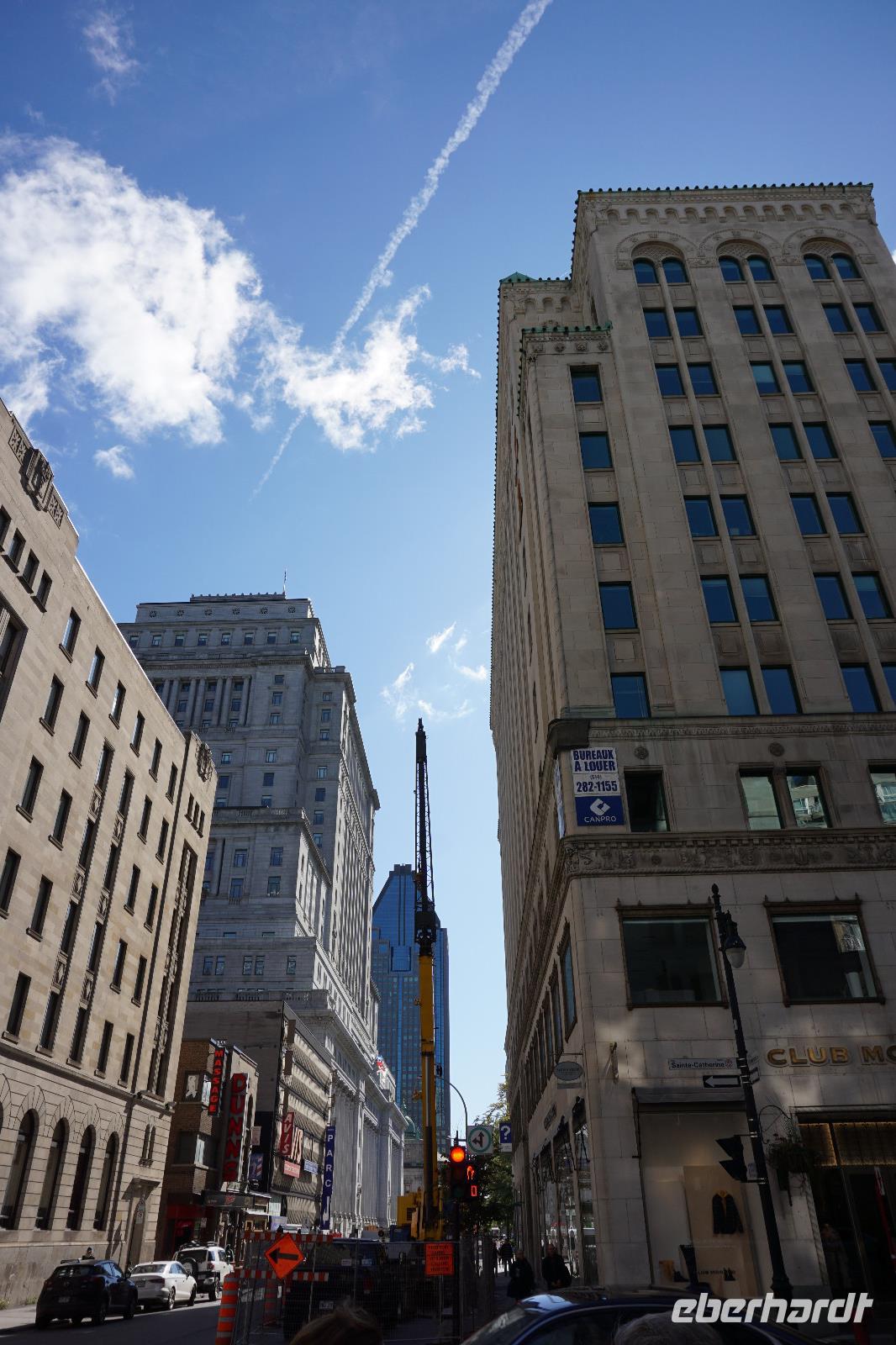 Am frühen Morgen traf sich die Hälfte der Reisegruppe am Flughafen in Dresden. Nach einem kleinen Snack nach der Sicherheitskontrolle, starteten wir Richtung Frankfurt, wo wir die meisten anderen der Gruppe trafen. Fast pünktlich flogen wir ab und begaben uns auf große Reise ins weit entfernte Kanada. Gespannt, was uns erwarten würde, brachten wir schnell sieben Stunden Flug hinter uns und kamen in Montreal an, wo wir noch durch die Einreisekontrolle und unser Gepäck abholen mussten. Durch den Ausfall eines Gepäckbandes in Frankfurt, blieben leider zwei Reisende vorerst ohne Koffer. Am Flughafen wartete bereits unsere sehr sympathische örtliche Reiseleitung Marion auf uns und kurze Zeit später trafen wir auch unseren netten Busfahrer Simon. Nach der Ankunft im Hotel, was sich im Unterhaltungsbezirk (Le Quartier de Spectacle) befand, unternahmen wir bei Nieselregen einen kleinen Spaziergang über die Rue Saint-Catherine zum Place des Arts, der Mall und einer Wechselstube. Am frühen Abend fuhren die meisten von uns in die Altstadt zum Abendessen im Vieux - Port Steakhouse. Als Vorspeise wurde Salat oder Crab Cake (Krabbenkuchen) serviert, beim Hauptgang konnte man zwischen Steak und Lachs wählen und als Dessert reichte man uns leckeren Schokokuchen. Da wir alle sehr müde waren, dauerte das Essen nicht allzu lange bevor wir wieder mit dem Bus ins Hotel gebracht wurden.