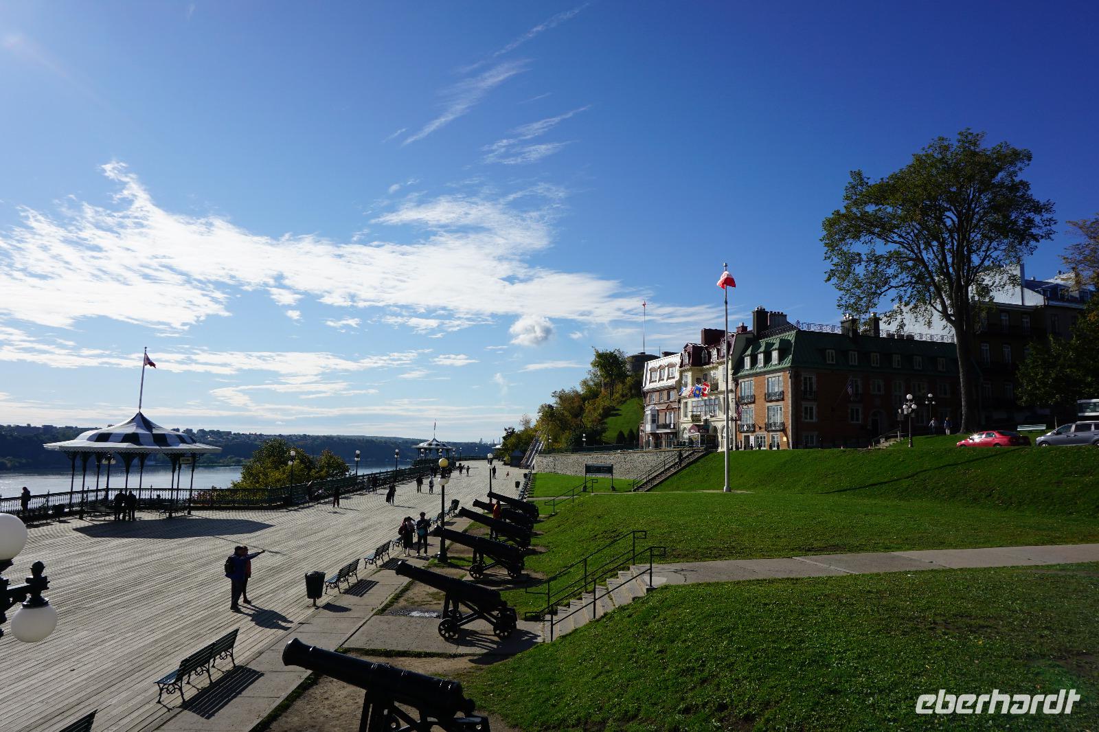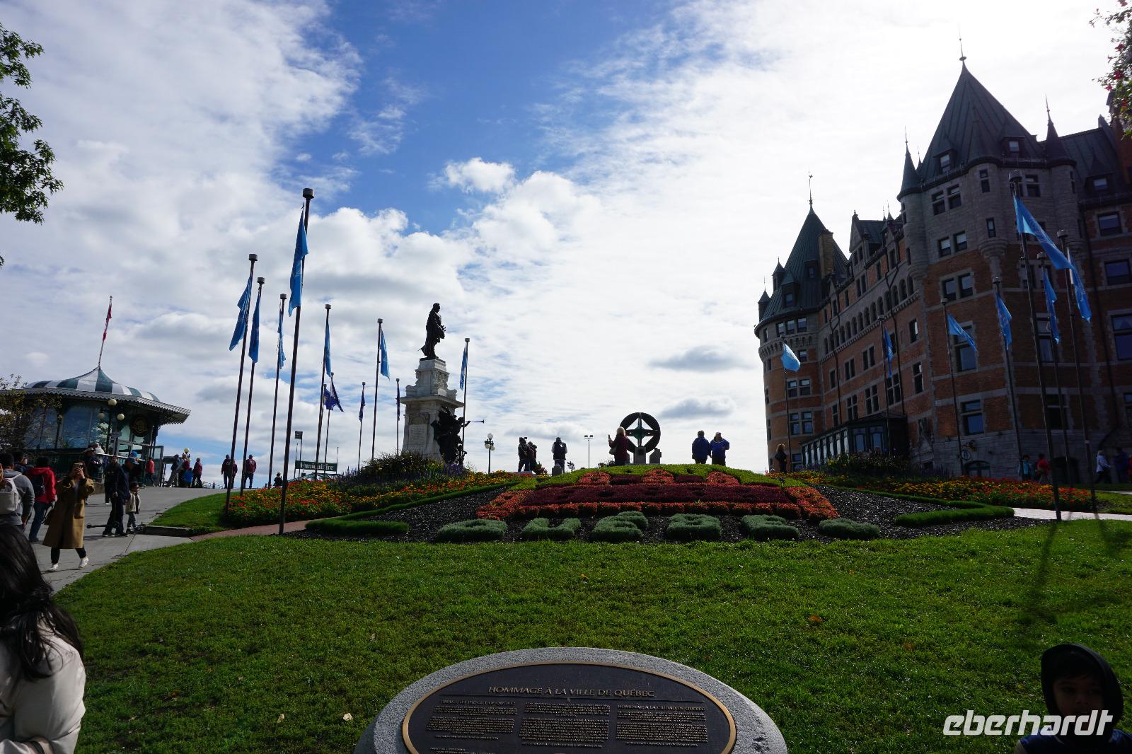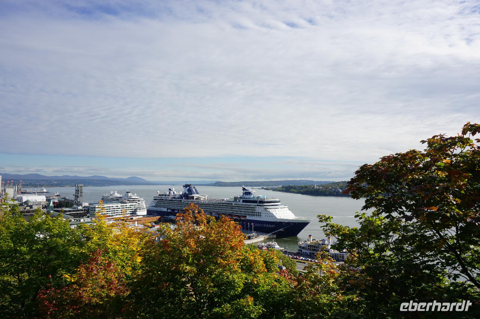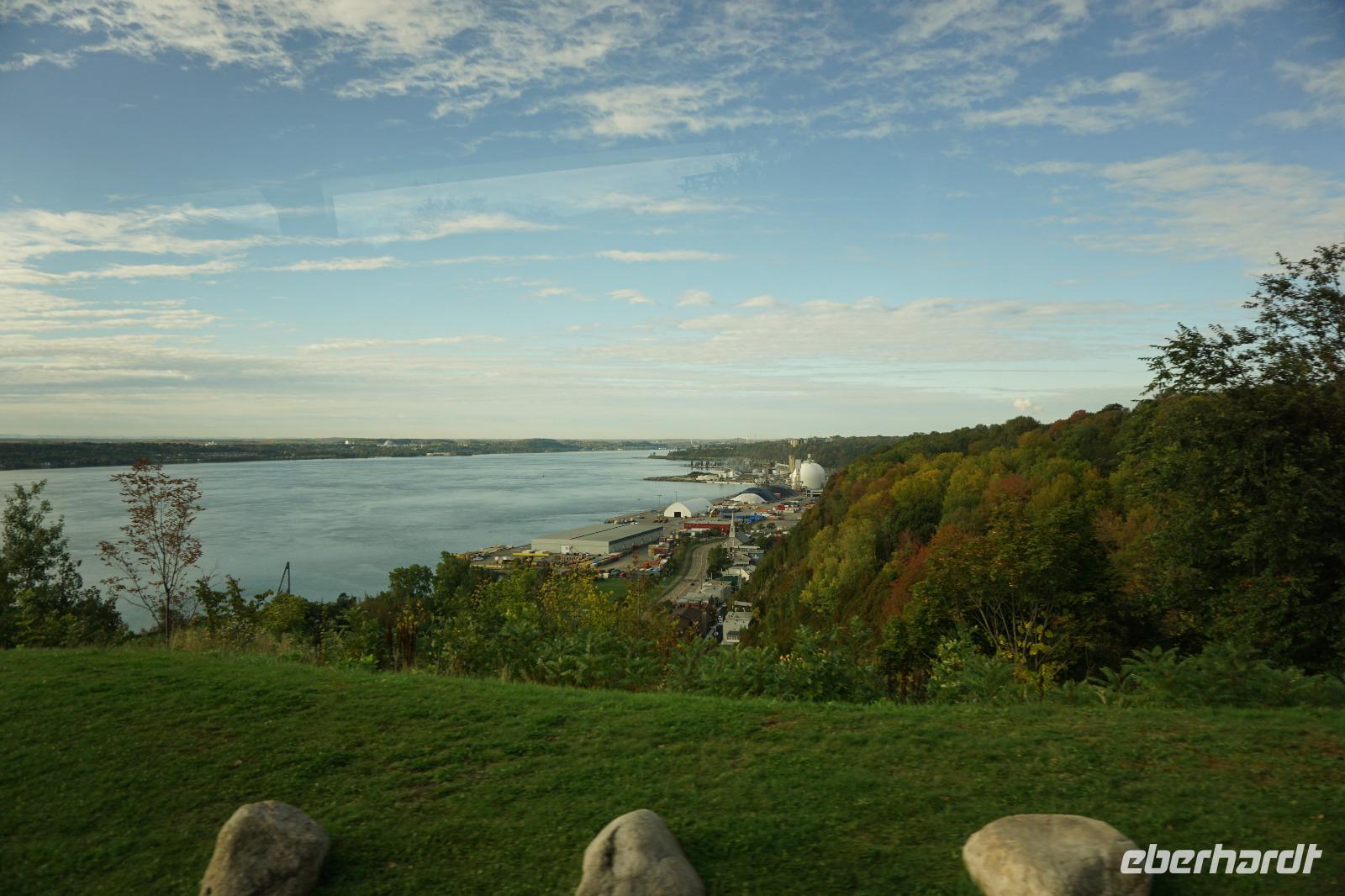 Nach einer mehr oder weniger guten Nacht durch die Zeitverschiebung, waren viele von uns bereits sehr zeitig wach und beim Frühstück. Mit gepackten Koffern machten wir eine Stadtrundfahrt bei sonnigem Wetter durch Montreal, bei der wir die St. Helenen Insel sahen und für einen ersten Fotostopp im Park Jean-Drapeau hielten, von wo aus wir einen Blick auf die Skyline von Montreal hatten. Über die La Cartier Brücke fuhren wir zur und entlang der Formel 1 Rennbahn mit dem Bus. Die Montrealer Formel 1 Strecke ist dafür bekannt, dass man nicht gut überholen kann. Anschließend fuhren wir noch einmal über die Brücke, von der man sehr schön auf die Altstadt blicken konnte. Hier beginnt auch der St. Lorenz Seeweg. Am Platz Ville Marie, der so benannt wurde, um Altes und Modernes zu vereinen, tauchten wir in die 30 km lange und durch unzählige Korridore verbundene Untergrundstadt Ville Souterraine ab. Im sehr kalten Winter müssen die Montrealer nicht raus gehen und sich warme Kleidung anziehen, um bequem einzukaufen. In der Untergrundstadt sahen wir auch die Barbie Expo, eine Ausstellung verschieden gekleideter Barbies (auch jedes Land wurde repräsentiert durch unterschiedliche Kleidung) und Nachstellung z.B. des New Yorker Catwalks oder einer Opernaufführung. In der Stadt ist auch der Bahnhof fast ausschließlich unterirdisch zu finden. Wir fuhren weiter zum Mount Royal, der sich 233 m über dem Meeresspiegel befindet und die größte Friedhofsanlage Kanadas mit ca. einer Million Grabstätten beherbergt. Hier gibt es auch eine berittene Parkpolizei. Der Platz vorm Mount Royal Obervatorium bot uns eine tolle Sicht über die Stadt. An der bekannten Kathedrale Notre Dame blieb uns Zeit um Mittag zu essen, durch die Gassen oder zum Hafen zu spazieren. Die Besichtigung der imposanten Notre Dame durfte natürlich nicht fehlen. Am Nachmittag besuchten wir noch den Olympiapark, der für die olympischen Spiele 1976 erbaut wurde, bevor wir nach Québec City fuhren und dort in einem Restaurant in der Unterstadt zu Abend aßen.