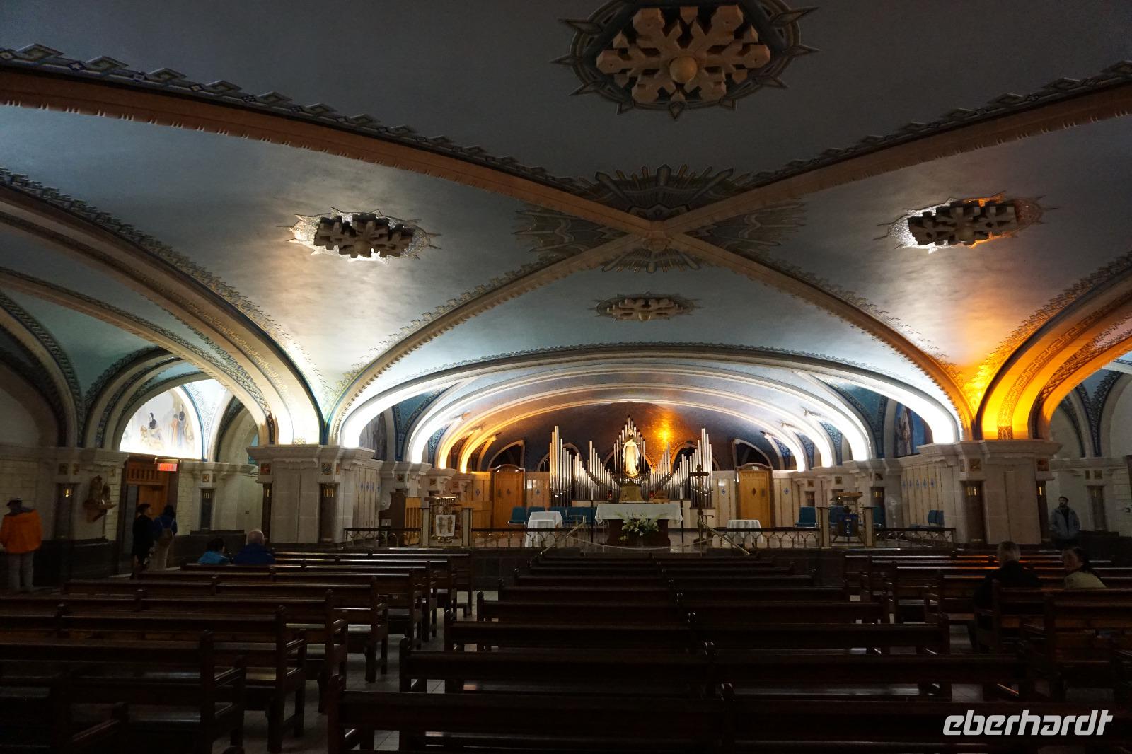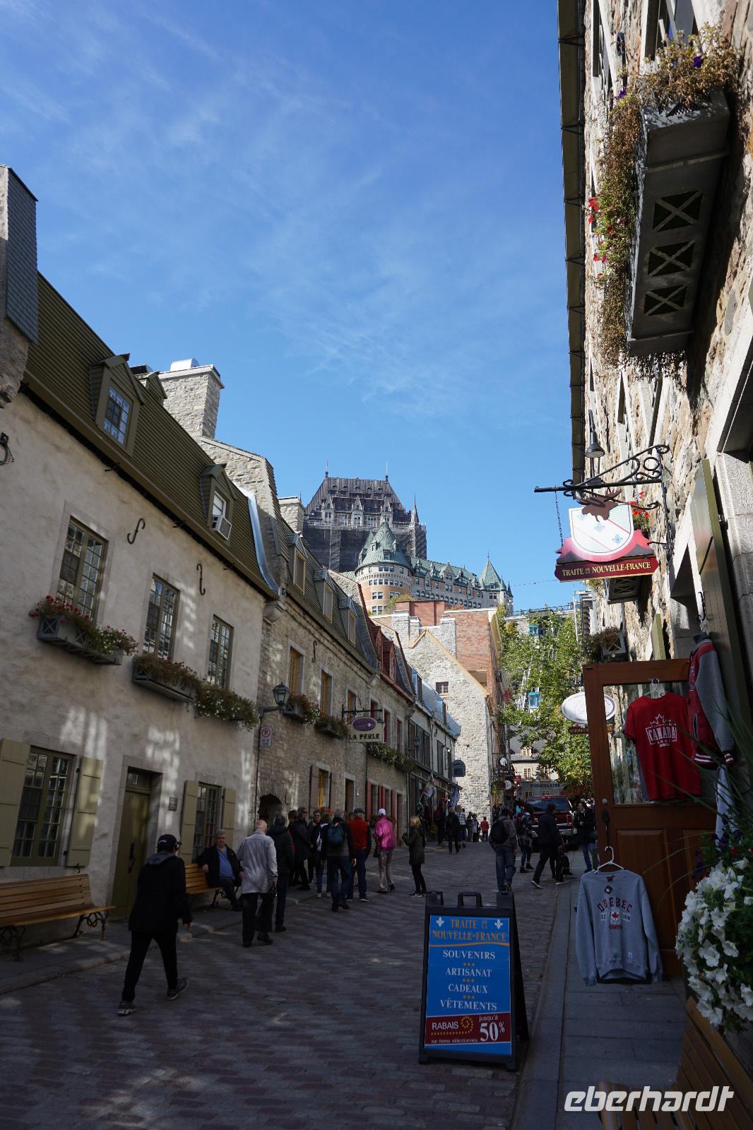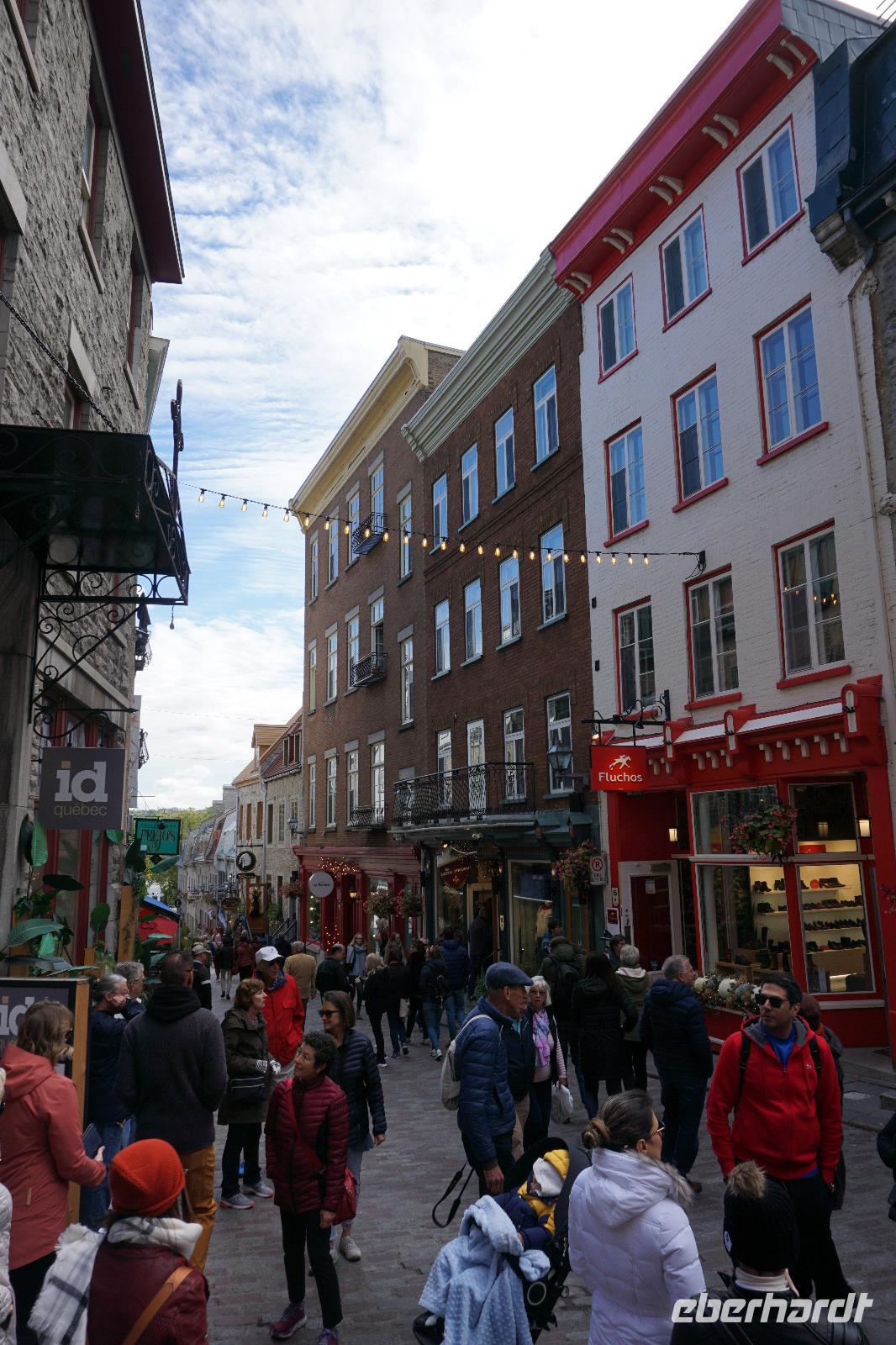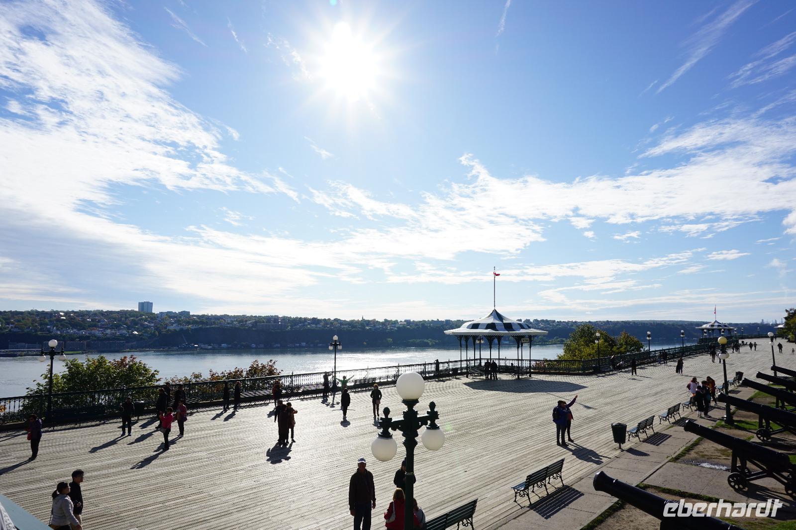 Nach dem Frühstück trafen wir uns alle beim Bus, um zu einer Stadtrundfahrt durch Québec City aufzubrechen. Dabei fuhren wir zuerst durch den zwei km langen und 800 m breiten Park Abraham mit seiner sternenförmigen Zitadelle und dem Parlamentsgebäude. Die Stadtmauer von Québec City ist 4,5 km lang. Vorbei am Kongresszentrum begaben wir uns in die Oberstadt, wo wir einen Spaziergangentlang der Terrasse Dufferin, dem Chateau Frontenac, was ca. 600 Zimmer beherbergt und der Kirche Notre Dame de Québec. Über die Halsbrechertreppe gingen wir in die belebte und von kleinen Läden gesäumte Unterstadt mit dem berühmten Wandgemälde. Nach der aufschlussreichen Stadtführung blieb uns noch etwas Zeit, um in der Stadt zu bummeln oder ein Café aufzusuchen. Anschließend führte unsere Reise weiter zu den bekannten Montmorency Wasserfällen, die sogar 30 m höher sind als die Niagara-Wasserfälle, aber sehr schmal. Dort spazierten wir entlang der Wasserfälle, fotografierten und hatten eine wunderbare Aussicht über den Sankt-Lorenz-Strom und auf die gegenüberliegende Insel Ile d'Orleans. Danach besuchten wir den St. Anne Canyon, wo wir über drei Brücken (eine davon 60 m über dem Grund des Canyons) gehen und verschiedene kleine und große Wasserfälle beobachten konnten. Nach einem ausgiebigen Spaziergang entlang des Canyons erreichten wir kurze Zeit später die imposante Kathedrale St. Anne de Beaupre, wo wir genügend Zeit für eigene Erkundungen hatten. Mit rund einer halben Million Pilgern jährlich zählt diese zu den bedeutendsten Wallfahrtsorten Nordamerikas. Auf dem Weg zum Abendessen fuhren wir an den für die Region typischen Häusern mit Schlittendächern, in den Berg gehauenen Vorratskellern und kleinen Kapellen vorbei. An der „Zuckerhütte" angekommen, erklärte uns ein Mitarbeiter den Prozess des Ahornsirup-Abbaus und dessen Weiterverarbeitung zu verschiedenen Produkten, wie Ahornsirup, -butter oder -toffee. Hier hatten wir auch die Möglichkeit selbst ein paar Produkte zu probieren und zu kaufen. Uns wurde ein reichhaltiges Abendessen serviert, bei dem wir verschiedenste Gerichte, wie Kartoffeln, Rührei, Schinken, Suppe oder Pancakes mit dem klebrig-süßen Ahornsirup probieren und verfeinern durften. Für Unterhaltung sorgte ein Livemusiker und eine französische Reisegruppe. Nachdem wir uns alle satt gegessen hatten, gab es noch ein „Dessert". Draußen goss man über Eis Ahornsirup, wartete etwa zehn Sekunden und rollte dann die klebrige Masse auf einen Holzstiel. Der Lolli aus Ahornsirup war süß, aber auch sehr köstlich.