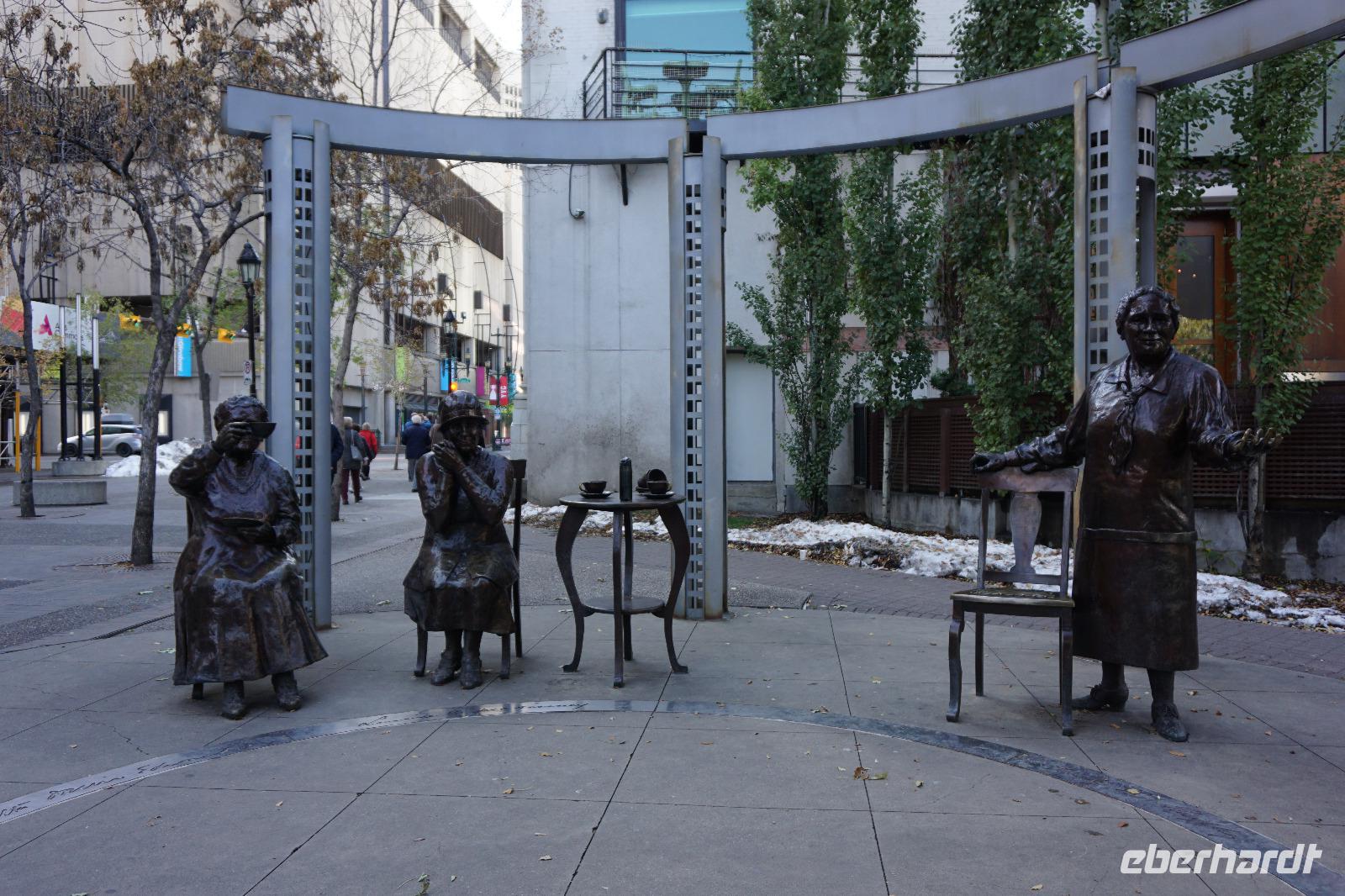 Bereits 5 Uhr machten wir uns mit gepackten Koffern auf dem Weg zum Flughafen. Bei Dennys Diner gab es für uns typisch amerikanisches Frühstück. Nach dem Check In am Flughafen in Toronto blieb noch ein bisschen Zeit um sich umzusehen, bevor wir ins Flugzeug stiegen und vier Stunden über die kanadischen Provinzen Ontario, Manitoba und Saskatchewan in die Provinz Alberta flogen. Aus dem Flugzeug hatte man eine gute Sicht auf die teilweise noch mit Schnee bedeckten Felder Albertas. Da wir weiter Richtung Westen gekommen waren, hatten wir durch die Zeitverschiebung sogar wieder zwei Stunden mehr zur Verfügung. Am Flughafen in Calgary nahmen wir unsere Koffer in Empfang, auf der Plattform zwischen den Kofferbändern sang eine junge Frau mit Cowboy-Hut Country-Lieder. Unser Busfahrer im Westen, Gerard, verlud unsere Koffer und wir starteten in die Innenstadt für eine Stadtrundfahrt und eine Mittagspause bei schönstem Sonnenschein. Calgary ist die Hauptstadt von Alberta und hier leben ca. 1,3 Mio. Menschen. Vorbei an Chinatown fuhren wir zum Calgary Tower. Nicht weit entfernt, nahmen wir die Straßenbahn, um zwei Stationen bis zur City Hall und Olympic Plaza zu fahren. Hier wurden 1988 die olympischen Winterspiele ausgetragen. Auf dem Gelände der Stampede hatten wir auf dem Scotsman Hill einen fantastischen Blick auf die Skyline der Stadt. Die Stampede ist eine jährlich stattfindende Landwirtschafts-Ausstellung und gilt als größte Rodeoshow der Welt. In der Provinz Alberta gibt es in Kanada die meisten Pferde. Über den Bow Fluss, der 600 km lang ist und in den Rocky Mountains entspringt, gelangten wir zum Olympischen Park mit den Skischanzen und einer Bob-Bahn, bevor wir weiter nach Banff fuhren. Die kanadischen Rocky Mountains sind 1464 km lang und durchschnittlich 150 km breit. Wir fuhren vorbei am Lac de Arc und erreichten am Abend den Ort Banff, der in einem runden Kessel, umgeben von Bergen liegt. Hier sind viele Straßen nach Tieren (Wolf, Cariboo, Bär, ...) benannt. Es blieb noch Zeit für einen Spaziergang durch die kleine Stadt und den Besuch eines der vielen Restaurants. Durch die Zeitverschiebung sind wir nicht mehr sehr lange aufgeblieben.