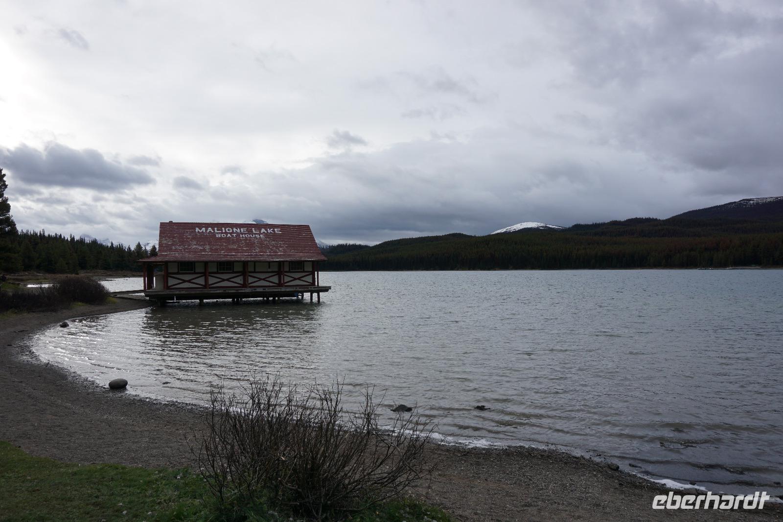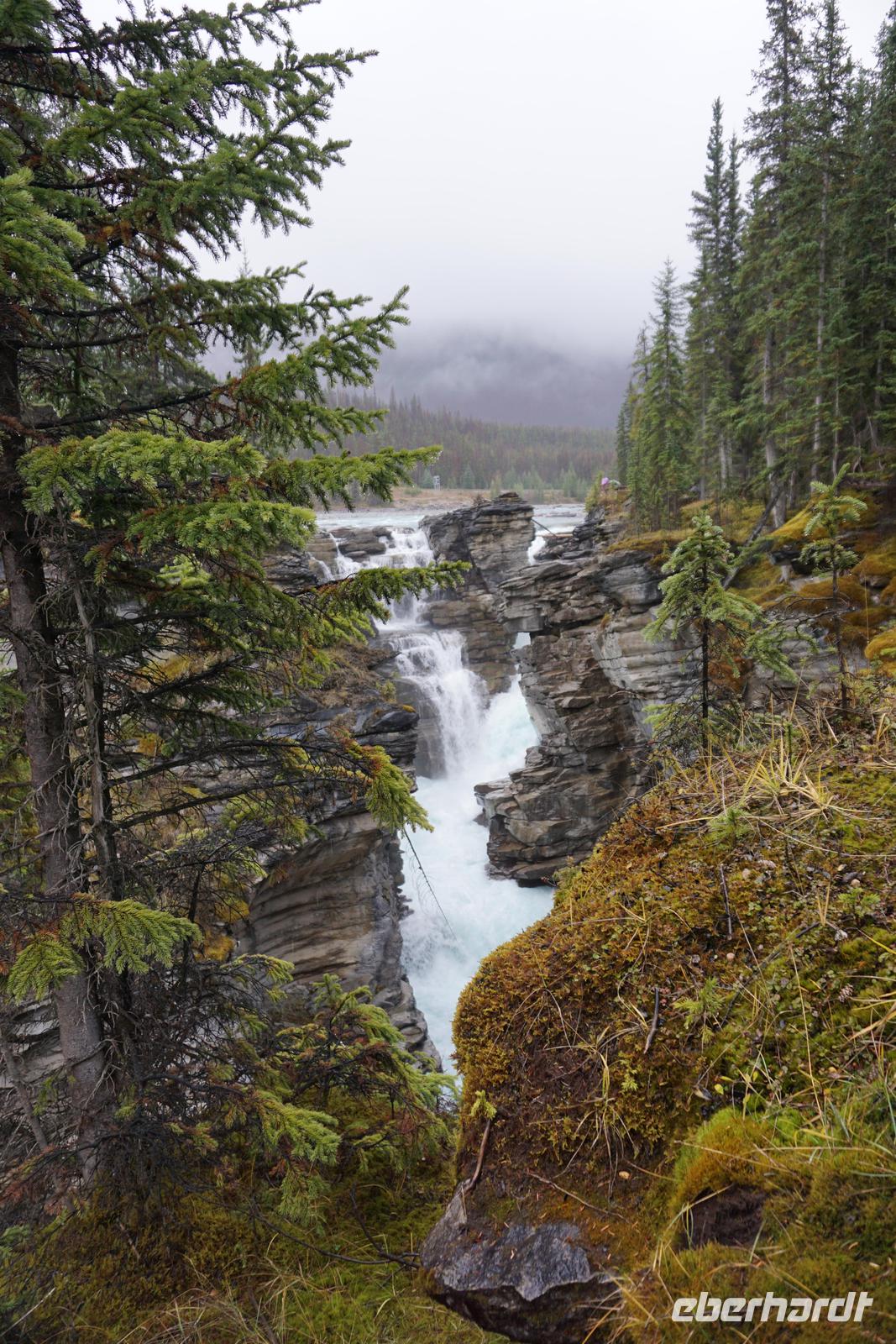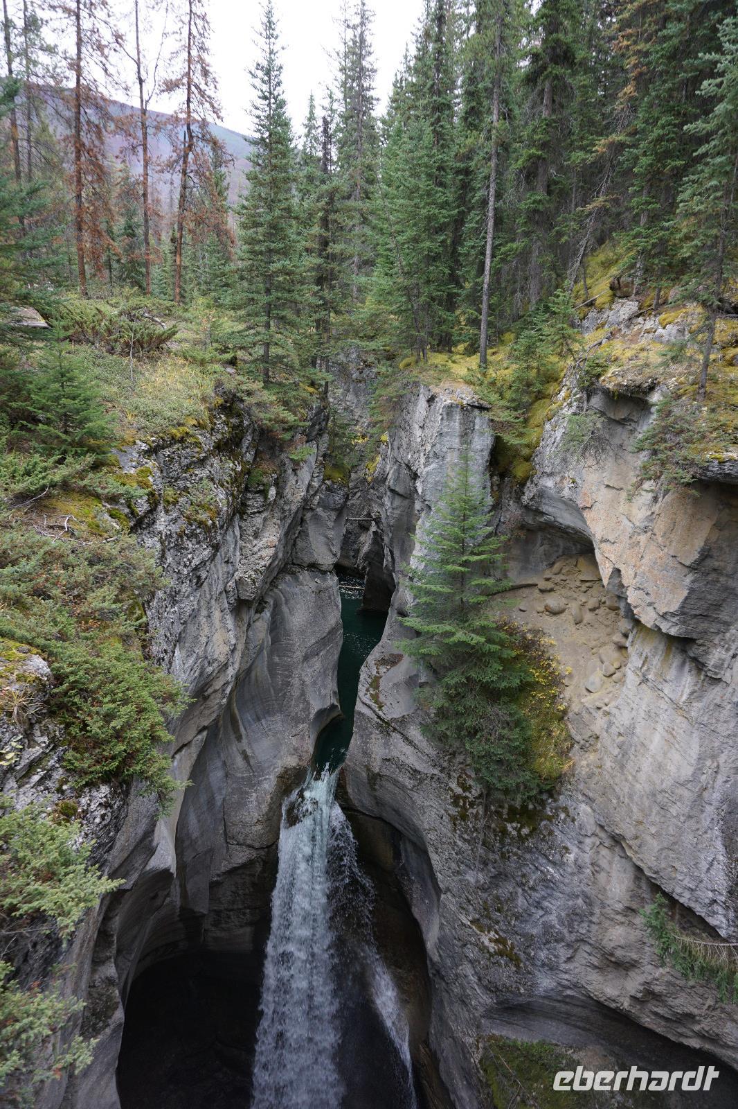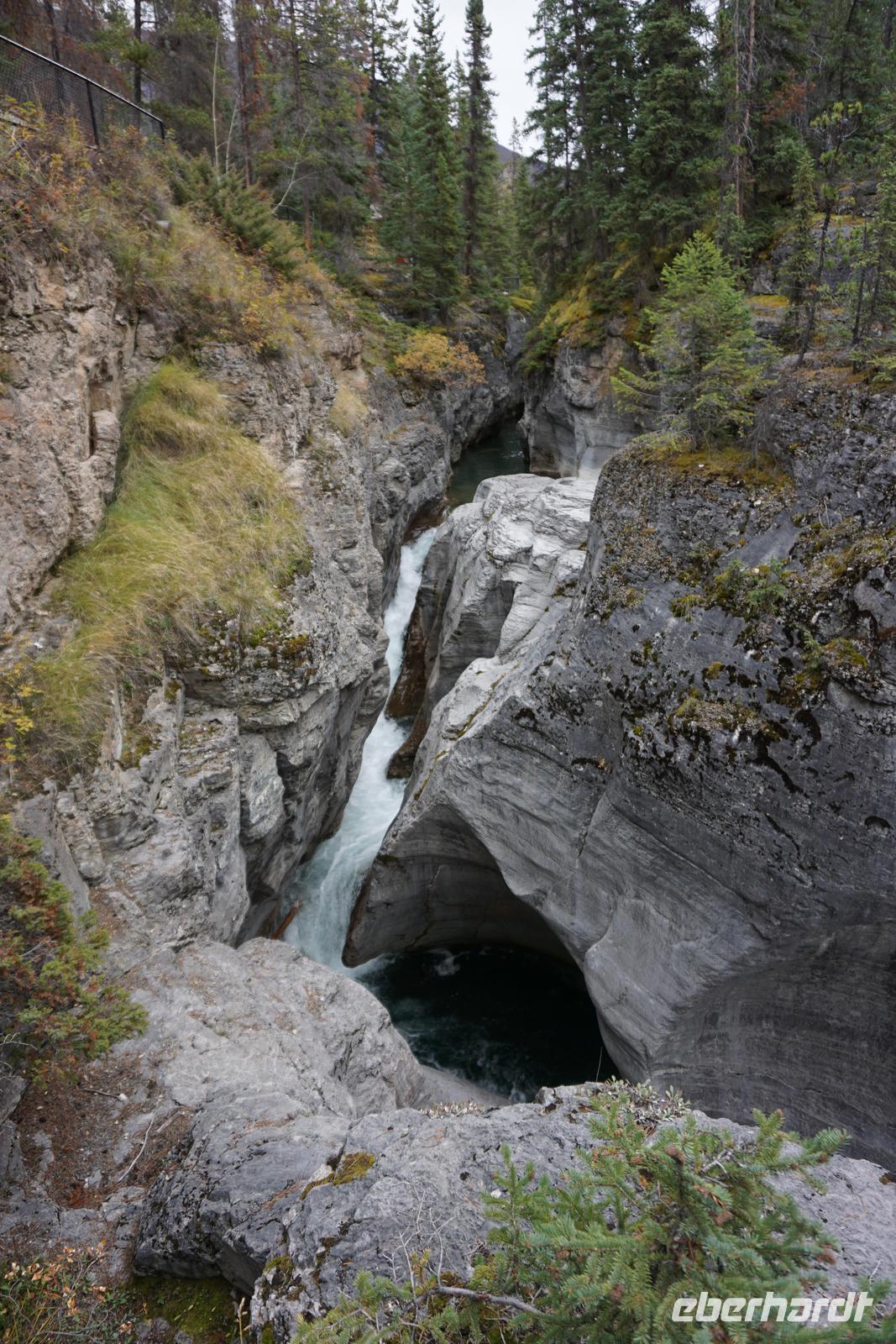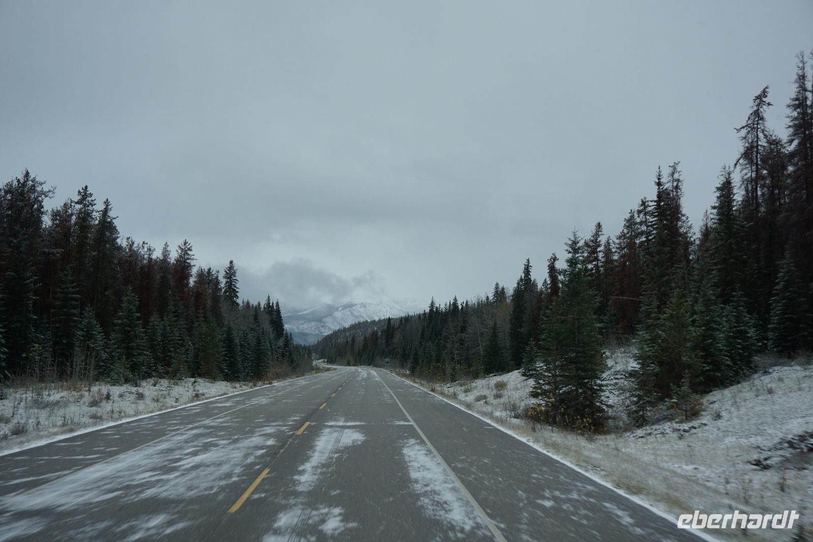 Nach einem ausgiebigen und leckeren Frühstück fuhren wir Richtung Jasper zum Maligne Lake über den Athabasca Fluss. Auf dem Weg dorthin sahen wir ein paar Wapitis am Straßenrand grasen. Am Medicine Lake, dessen Wasser immer weniger wird, hielten wir für einige Fotos und kamen kurze Zeit später am Rosemary Rock vorbei. Am wunderschönen Maligne Lake gingen wir entlang des Mary Schäfer Rundwegs bis zu einem Aussichtspunkt, an dem sich die Gruppe teilte. Ein paar Leute gingen zurück, die anderen liefen weiter entlang des Rundweges durch den Wald. Kurz vorm Ende des Weges kamen wir an einer Lichtung vorbei, auf der wir zwei Elchkühe und einen Elch sahen, die gemütlich am Rande der Lichtung Gras futterten. Leise und mit Abstand wagten wir uns auf die Lichtung vor, um einige gute Fotos zu schießen und die beeindruckenden Tiere zu beobachten. Wir schlichen vorsichtig weiter entlang des Rundweges, der nur ca. zehn Meter von einem der Elche entfernt war. Mit einem Elch wollten wir es lieber nicht aufnehmen. Kurze Zeit später kamen wir wieder auf dem Parkplatz an und berichteten den anderen von unserer Begegnung mit den großen Tieren. Auf dem Weg zum Maligne Canyon erzählten einige von uns amüsante Witze. Am Canyon gab es für alle eine kleine (oder große) Kostprobe kanadischen Whiskys mit Ahornsirup. Gut gestärkt spazierten wir weiter entlang des Canyons, einige mit Marion bis zur dritten Brücke, die Mehrheit nur über die erste und zweite Brücke. Wir bestaunten immer wieder die Kraft der gewaltigen Wassermassen. Im Ort Jasper war viel Zeit um Mittag zu essen, durch die Straßen zu bummeln oder einzukaufen. Leider fing es dann an zu regnen und war draußen nicht sehr gemütlich. Nachmittags besuchten wir die Athabasca Wasserfälle, wo es auch von oben ziemlich nass wurde. Bei strömendem Regen fuhren wir zurück zur Unterkunft. Die wolkenverhangenen Berge, die an uns vorbeizogen, hatten etwas Mystisches. Unterwegs sahen wir noch einmal vier junge Wapitis am Straßenrand. In der Lodge hatten wir noch etwas Zeit bis zum Abendessen. Es fing an zu schneien.