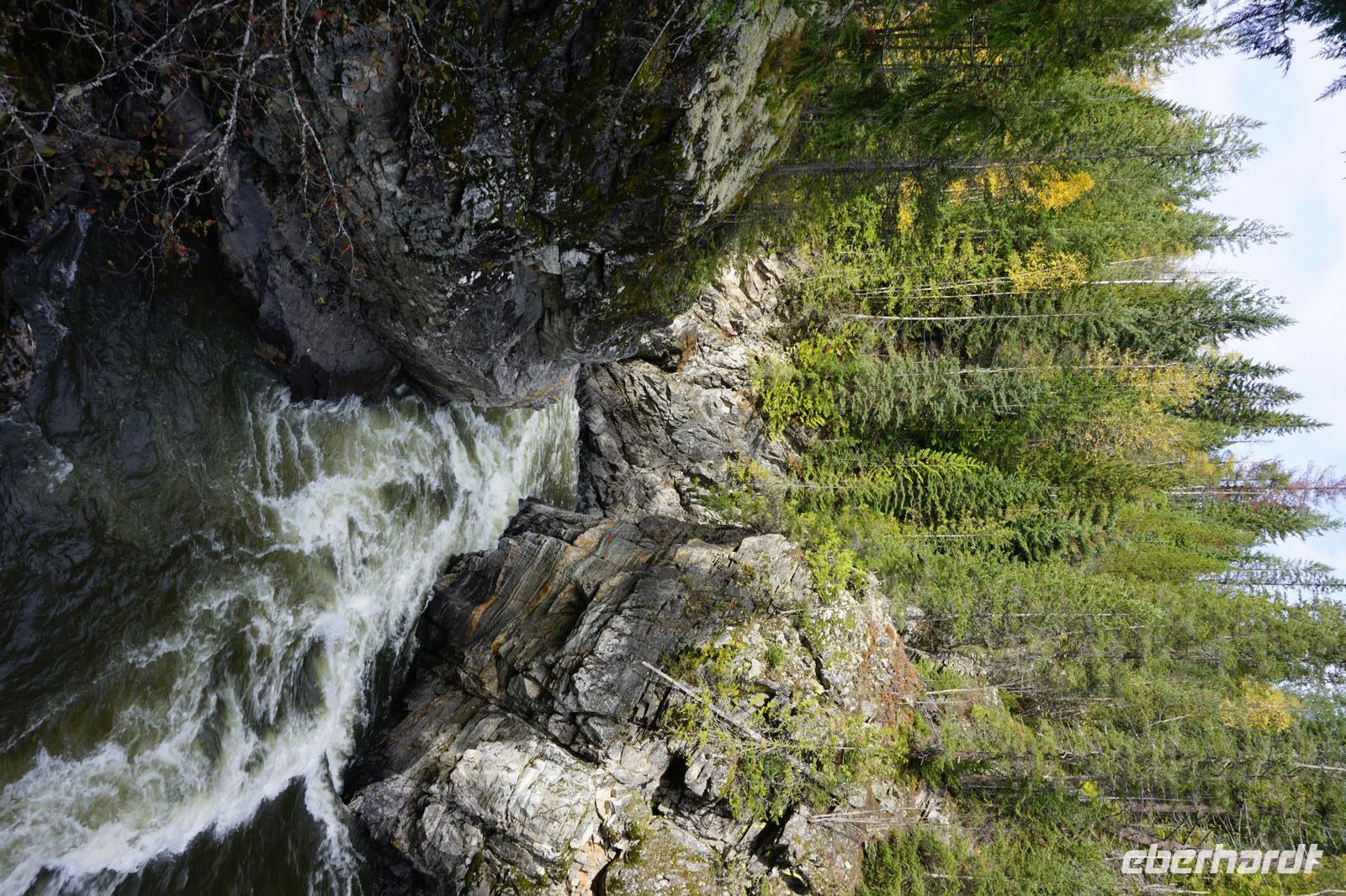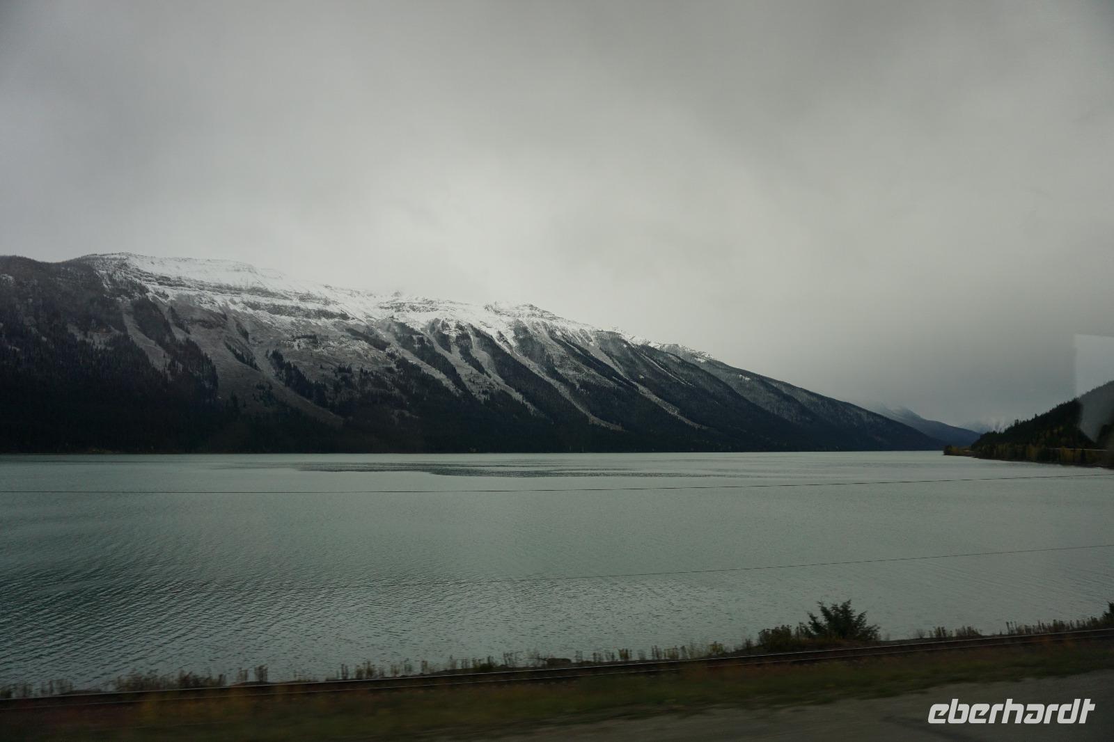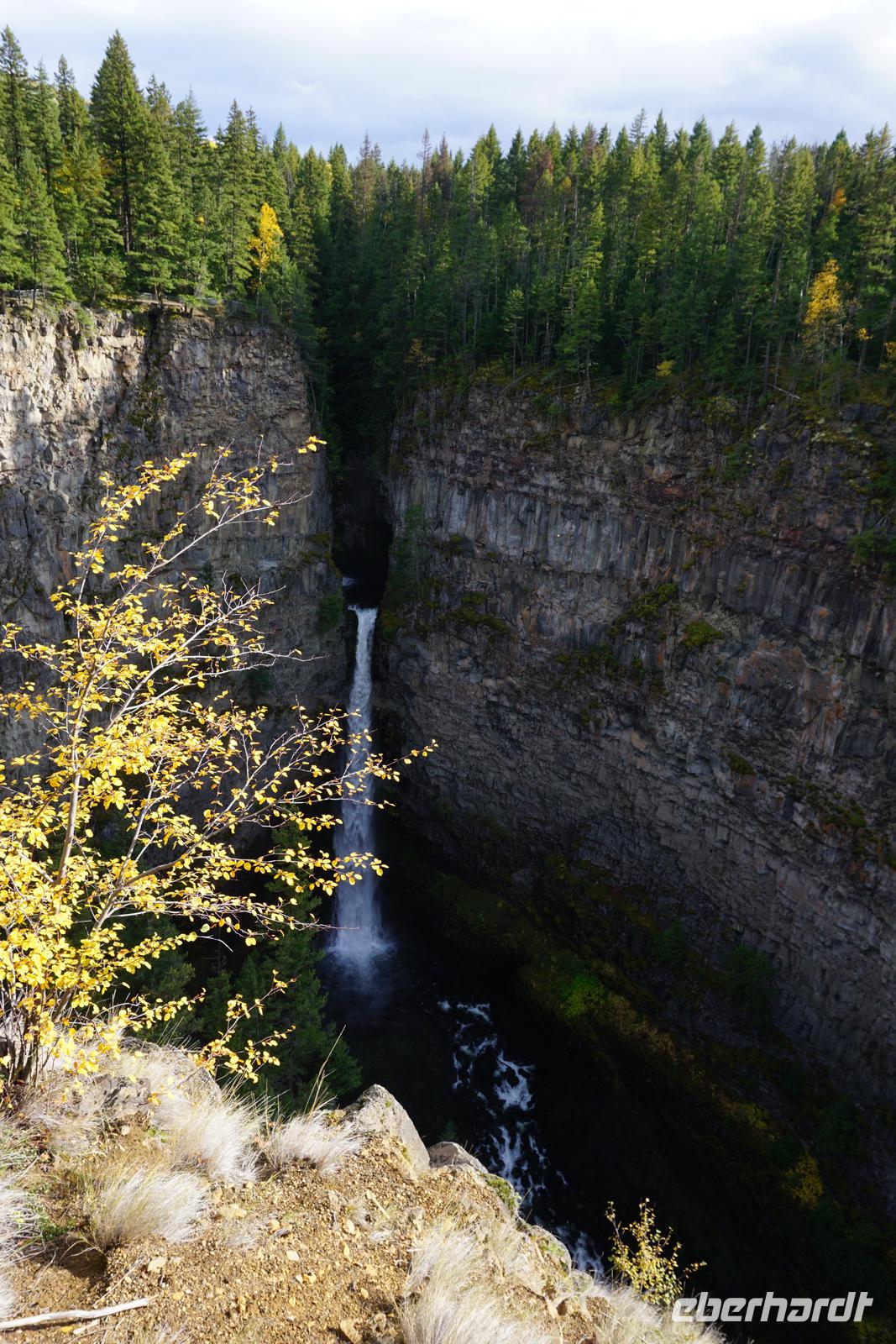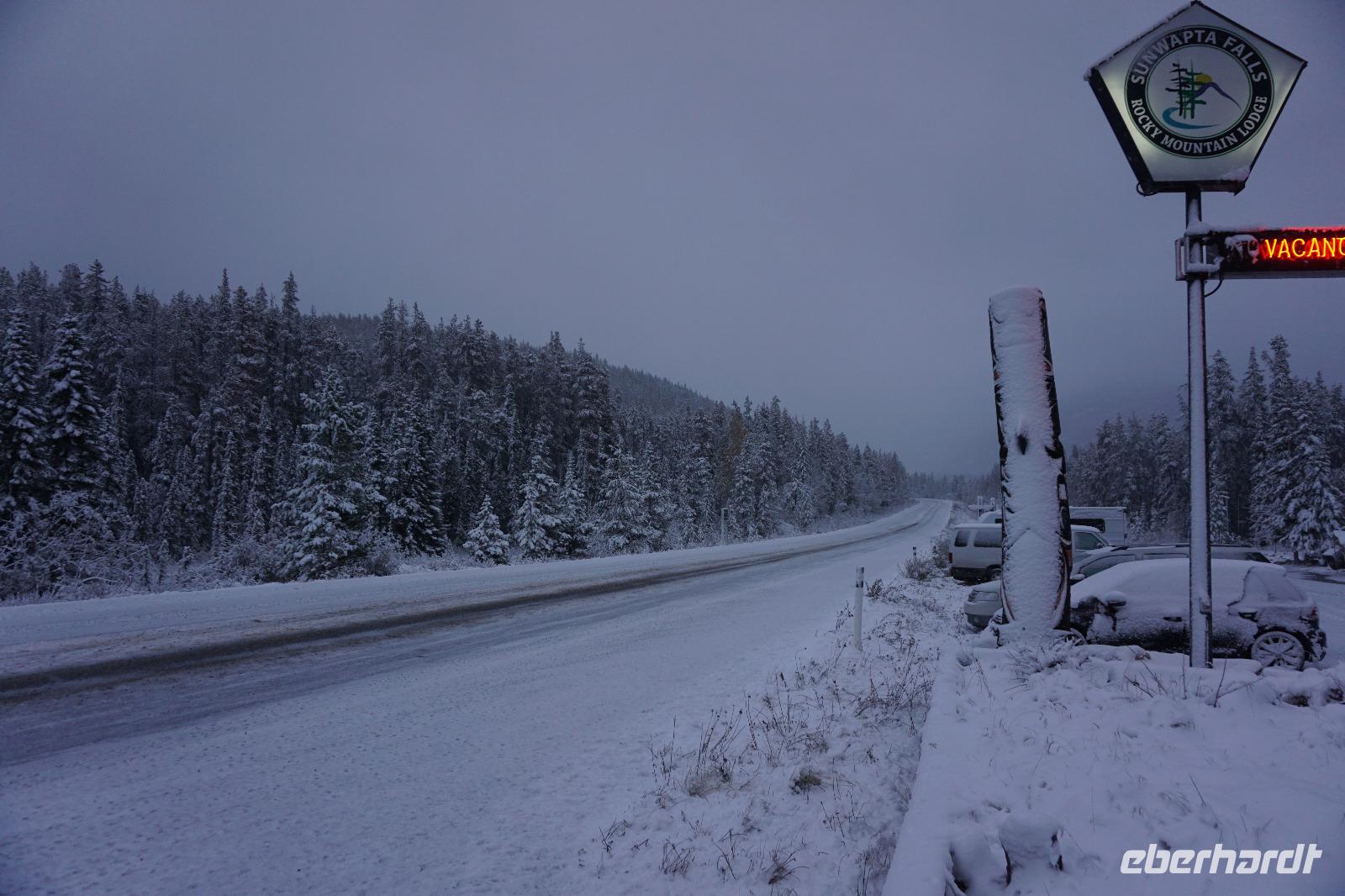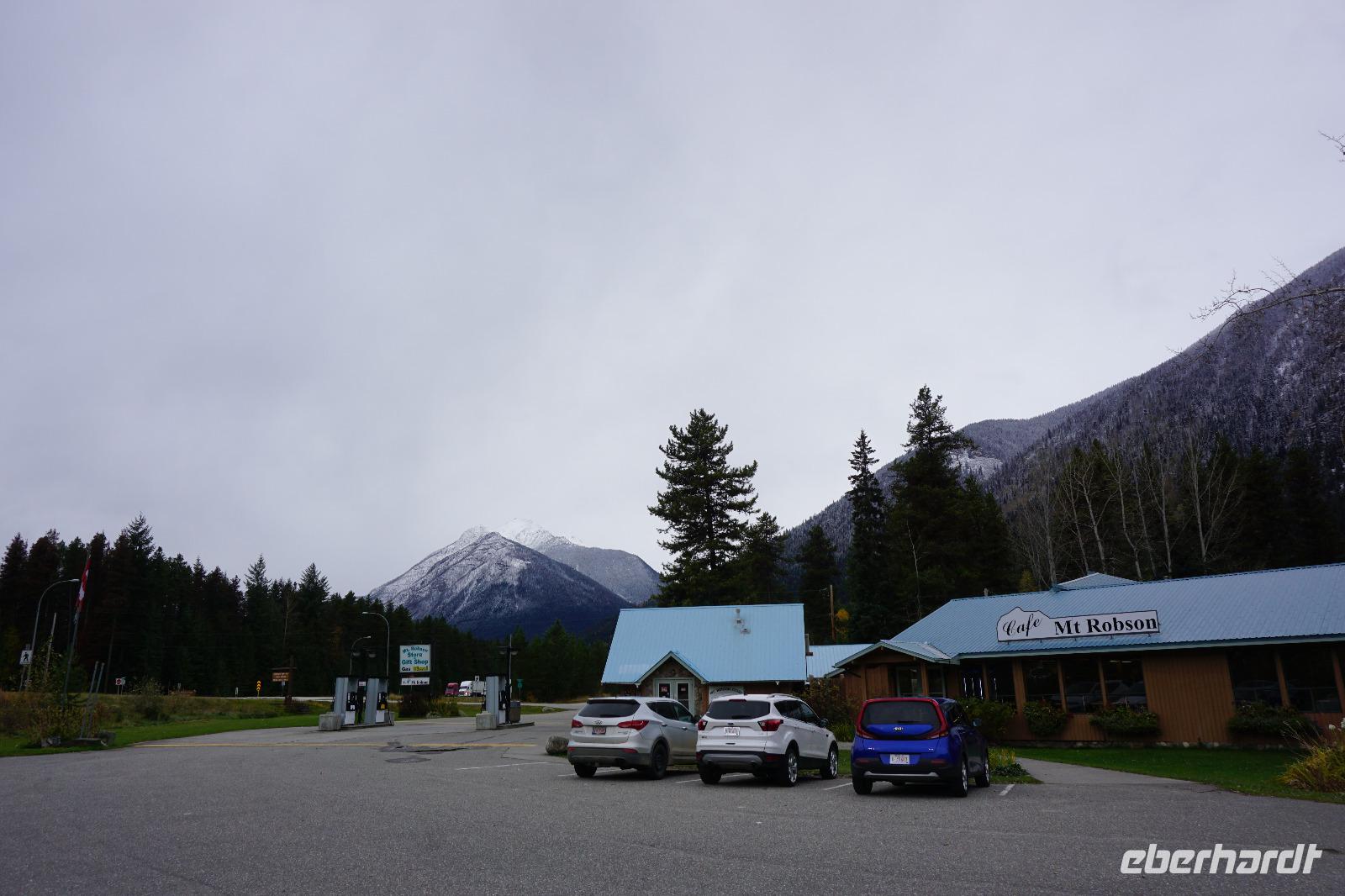 Knackige minus 6°C und fünf Zentimeter Schnee erwarteten uns am Morgen draußen. Vom reichlichen Frühstück gestärkt traten wir unsere Weiterfahrt nach British Columbia an. Am Anfang hatten wir noch eine weiße, vom Schnee bedeckte Straße, kurze Zeit später wurde es weniger und dann lag gar kein Schnee mehr. Den ersten Fotostopp machten wir am Yellowhead Pass mit dem Portal Lake, wo auch der Eingang zum Mount Robson Provincial Park ist. Hier stellten wir unsere Uhren nochmal um eine Stunde zurück, da wir soeben die Grenze zu British Columbia überfahren hatten. Wir fuhren weiter entlang des Fraser Flusses, der wichtig für die Lachswanderung ist. Unterwegs sahen wir ein paar versteckte Elche, aber so schnell konnte der Bus leider nicht anhalten. Wir passierten den Moose Lake, der 11,4 km lang und an seiner tiefsten Stelle 84 m tief ist. Als nächstes verbrachten wir etwas Zeit am Mount Robson Besucherzentrum, bevor wir weiter Richtung Kamloops fuhren. Mount Robson ist 3.954 Meter hoch und damit der höchste Berg der kanadischen Rocky Mountains. Unterwegs hielten wir für eine technische Pause im kleinen Ort Blue River. Wir bogen vom Highway ab auf eine sehr abenteuerliche Straße, die uns zum Aussichtspunkt des Little Hells Gate (kleiner Hölleneingang) brachte. Nach einem kurzen Stopp im Supermarkt in Clearwater, machten wir unsere Mittagspause im Gateway Grill im gleichen Ort. Es gab richtig leckeres Steak mit Kartoffeln, Salat und ein himmlisches Dessert. Da wir vom Essen sehr satt waren, wanderten wir im Wells Gray Provincial Park noch durch den Wald zum Spahat Creek Wasserfall. Am Nachmittag fuhren wir weiter und erreichten am Abend unsere gemütliche Guest Ranch, direkt am South Thompson Fluss gelegen. Später versuchten wir es noch mit einem Lagerfeuer draußen mit Smoars (geröstetes Marschmallow zwischen zwei Keksen und einem Stück Schokolade - süß und lecker), was aber nicht sehr lange dauerte, da es einfach zu windig und ungemütlich wurde.