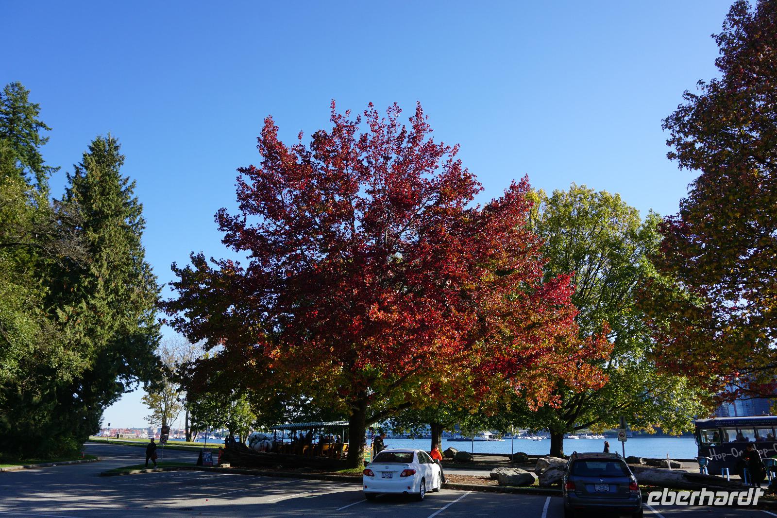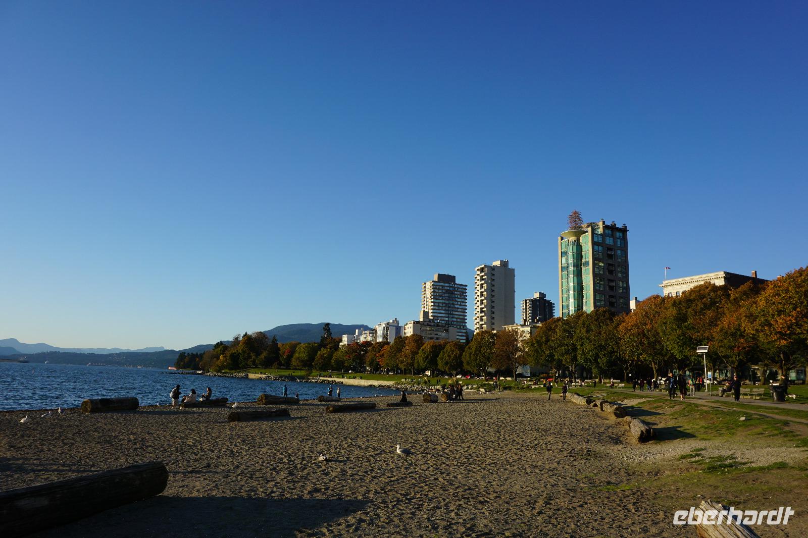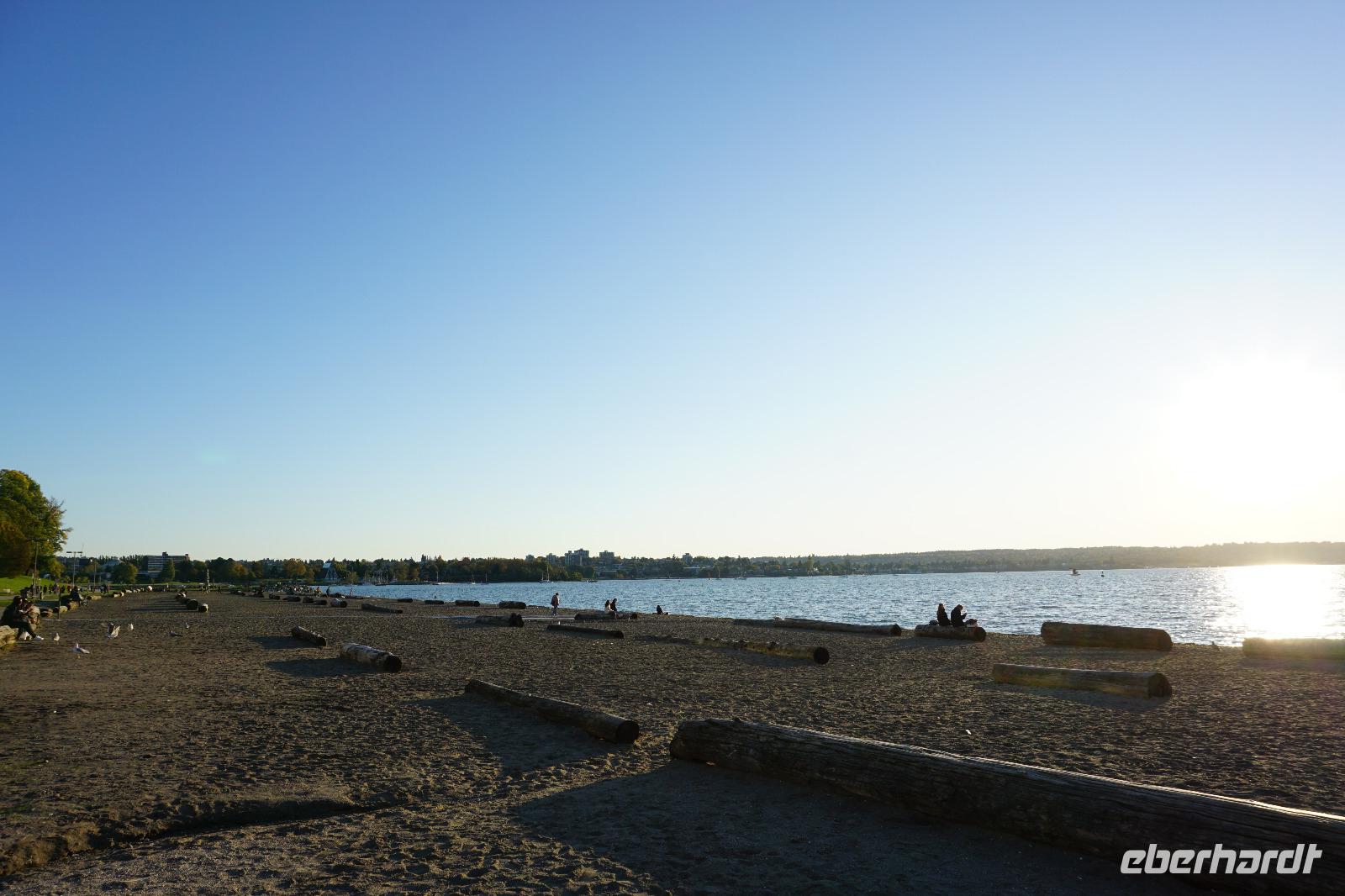 Am kalten, aber sonnigen Morgen wurden wir im Bus von einer Mitarbeiterin des South Thompson Inn und ihrem süßen Hund, der einmal durch den ganzen Bus lief, verabschiedet, bevor wir weiter Richtung Vancouver fuhren. Über den Trans-Canada Highway verließen wir das Thompson Tal, was ca. 500 m über dem Meeresspiegel liegt. Da wir auf den Coquihalla Pass immer weiter hochfuhren auf ca. 1000 m über den Meerespiegel, sahen wir rechts und links der Straße wieder viel mit Schnee bedeckte Landschaften. Unterwegs stoppten wir für eine längere Pause an einem kleinen Städtchen am Fraser Fluss - Hope. Hier steht die älteste noch betriebene Kirche im gesamten Fraser Valley. Im Memorial Park von Hope kosteten wir den typisch kanadischen Pumpkin Pie (Kürbiskuchen), den es im Herbst zum Erntedankfest überall zu kaufen gibt. Im Ort Hope gab es einige Restaurants, Cafés und Läden. Nach dem Mittag fuhren wir weiter über den Fraser Fluss nach Vancouver, mit ca. 2,4 Mio. Einwohnern die größte Stadt in Westkanada. Durch ein Wohngebiet und über False Creek, ein Meeresarm, der das Stadtzentrum vom übrigen auf der Burrard-Halbinsel gelegenen Stadtgebiet trennt, fuhren wir vorbei an der Science World und am Stadion. Bei einem kurzen Besuch in Chinatown schlenderten wir durch den japanischen Dr. Sun Yat-Sen Park, wo man im Hintergrund die Hochhäuser erblicken konnte. Nach einer kurzen Busfahrt stiegen wir an der Waterfront Station aus, wo wir vorbei am Canada Place zum Hafen und zum Jack Poole Plaza liefen. Auf dem Platz steht das olympische Feuer von den Olympischen Winterspielen 2010. Im Anschluss besuchten wir den Stanley Park, mit über 4000 m² der größte Stadtpark Kanadas. Die Totempfähle erinnern an die ehemaligen Bewohner des Parks. Totempfähle wurden und werden aus unterschiedlichen Gründen errichtet. Sie erinnern an Verstorbene, beherbergen gelegentlich die sterblichen Überreste einzelner Personen und erzählen die Geschichte einer Familie oder repräsentieren die Stellung einer Familie innerhalb der Gemeinschaft. Gegenüber des Parkplatzes hatte man eine fantastische Sicht auf die Skyline Vancouvers. Vorbei an der kleinen Meerjungfrau fuhren wir entlang der Park-Straße zum Prospect Point Aussichtspunkt. Auch hier hatte man wieder einen tollen Ausblick auf die Stadt, die Lions Gate Brücke und den Burrard Fjord. Am späten Nachmittag erreichten wir unser Hotel, das nicht weit vom Strand der English Bay entfernt lag. Wir verabschiedeten uns von unserem freundlichen Busfahrer Gerard. Bis zum Abendessen hatten wir noch Zeit, um spazieren zu gehen. Manche von uns saßen auf einem großen Baumstamm am Strand und genossen den traumhaften Sonnenuntergang über dem Meer. Zum Abendessen kehrten wir in einem Restaurant in der Nähe ein, wo es ein letztes Mal gemeinsam leckeres kanadisches Essen und süßes Dessert gab.