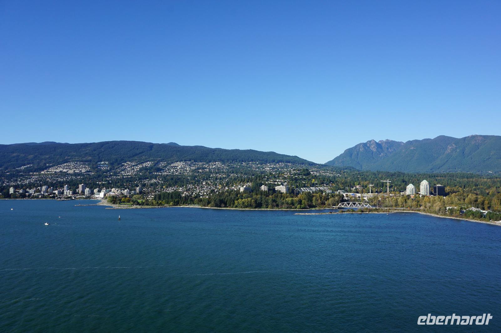 Heute stand der Tag für ein paar Mitreisende zur freien Verfügung zum Erkunden der Stadt. Alle anderen starteten nach dem Frühstück zu einem Ausflug nach Vancouver Island. Bei der Fährüberfahrt sahen wir die malerische Landschaft der vielen kleineren Inseln an uns vorbeiziehen, bevor wir in Swartz Bay auf der Saanich Halbinsel ankamen. Zuerst besuchten wir Butchart Gardens, einem 22 Hektar großen privaten Blumengarten, der in fünf Hauptbereiche gegliedert ist: der versunkene Garten, der Rosengarten, der Japanische Garten, der Italienische Garten und der Mediterrane Garten. Der erste Garten wurde 1904 von Jennie Butchart angelegt. Sie beschloss, den ehemaligen Steinbruch zu verschönern, der durch das Zementgeschäft Ihres Ehemannes entstanden war. Einst nicht viel mehr als ein paar Zuckererbsen und Rosen, ist der Versunkene Garten heute eine der Hauptattraktionen der Anlage. Entlang der malerischen Küste führen wir weiter in den Süden von Vancouver Island nach Victoria. Anschließend sahen wir bei einer Stadtrundfahrt unter anderem Chinatown, die Pazifikküste, das Parlamentsgebäude und den Hafen. Victoria ist die Hauptstadt British Columbias und liegt an der Südspitze von Vancouver Island in der Bucht des Pazifiks. Man bezeichnet sie als die britischste Stadt von Kanada, erkennbar zum Beispiel an der Architektur, den roten Doppeldeckerbussen und dem Namen Victoria. Sie hat ihren Ursprung in einem 1843 errichteten Handelsposten der Hudson's Bay Company. Am Nachmittag blieb Zeit für eigene Erkundungen, bevor wir wieder nach Swartz Bay zum Fährterminal fuhren. Auf der Fähre konnten wir einen herrrlichen Sonnenuntergang bestaunen. Nach einem erlebnisreichen Tag kamen wir spät am Abend wieder zurück nach Vancouver.