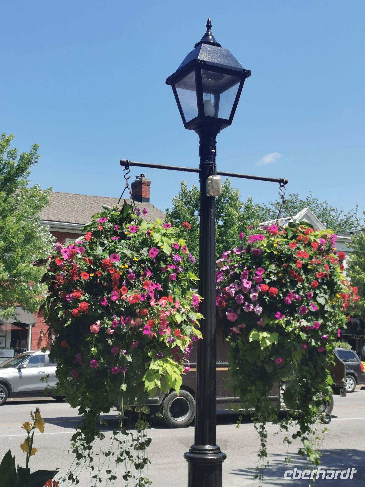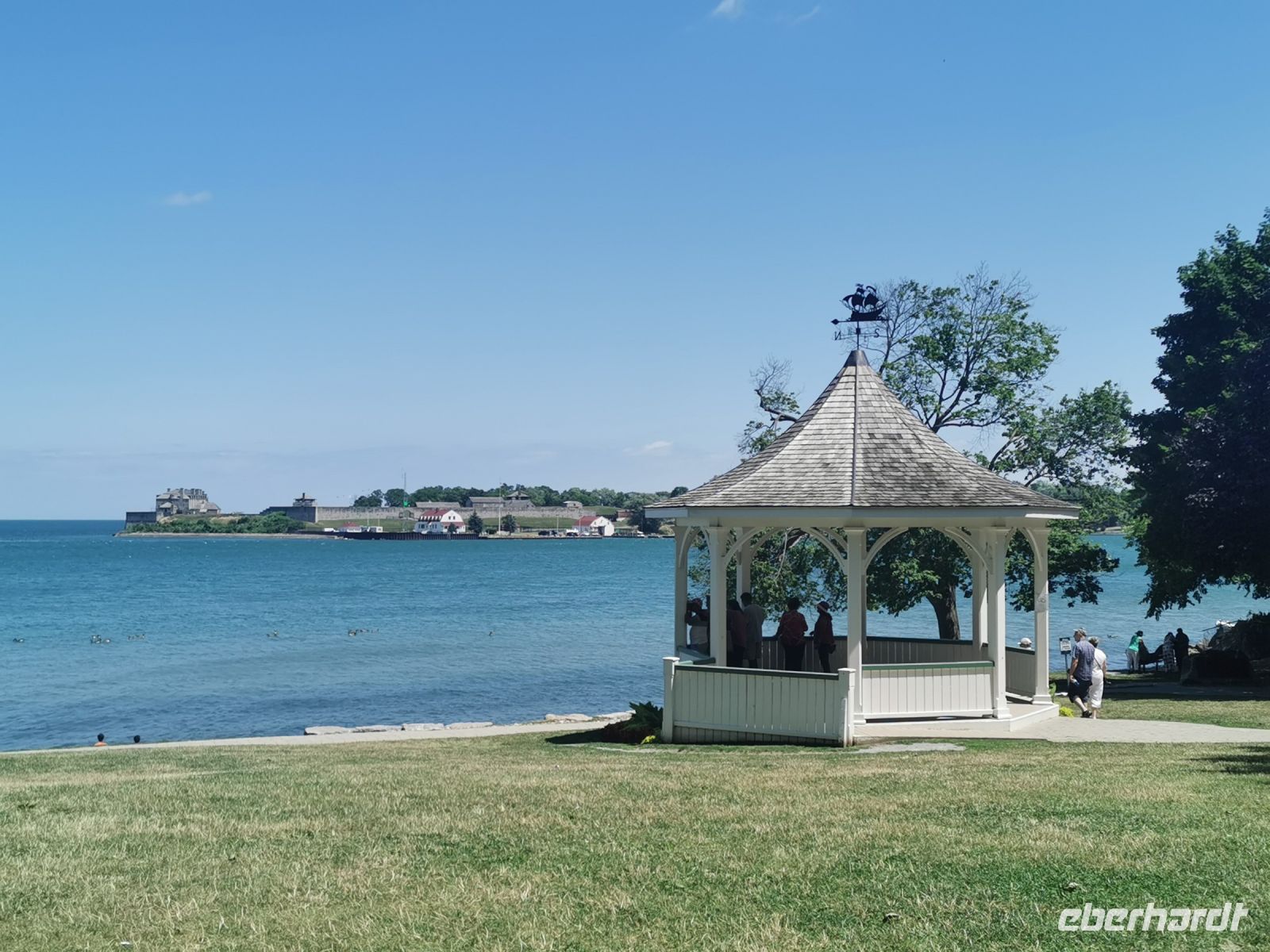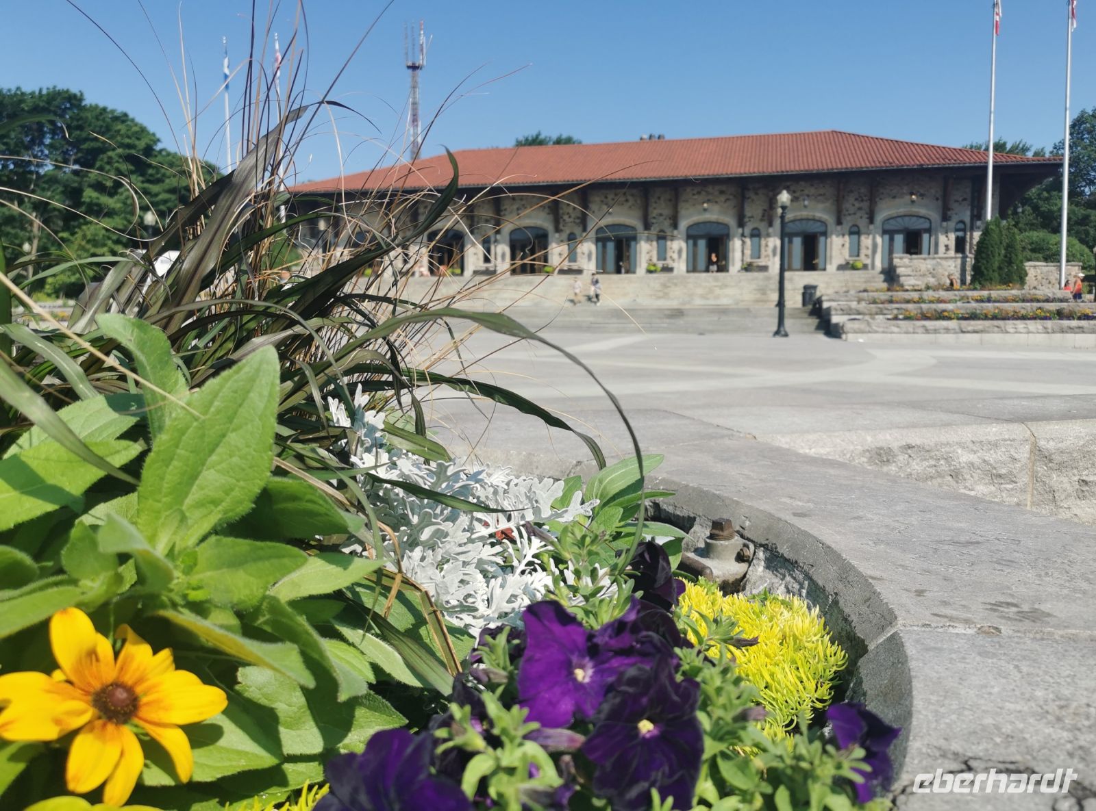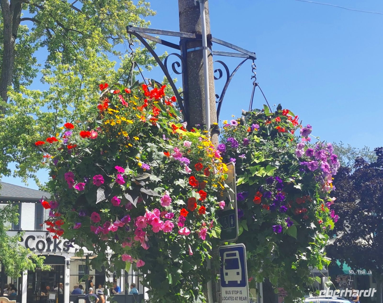 Danach haben sich Marina und Simone für die Gäste eine kleine Überraschung ausgedacht, eigentlich würden wir direkt zu den Niagarafällen fahren, da sich das Mittagslicht aber nicht fürs Fotografieren eignet, legen wir eine Pause im malerischen Niagara-on-the-Lake ein. Dieses kanadische Kleinstädtchen liegt an der Mündung des Niagara Flusses. Hier befinden sich einige der besten Weingüter Kanadas und man kann an herrlich bepflanzten Flaniermeilen entlang spazieren und die wunderschönen Holzvillen mit ihren gepflegten Vorgärten bewundern. Nach den ganzen Großstädten, die wir in den letzten Tagen gesehen haben, ist es eine regelrechte Erholung, mal durch so eine pittoreske Kleinstadt zu laufen und wir genießen das sehr.