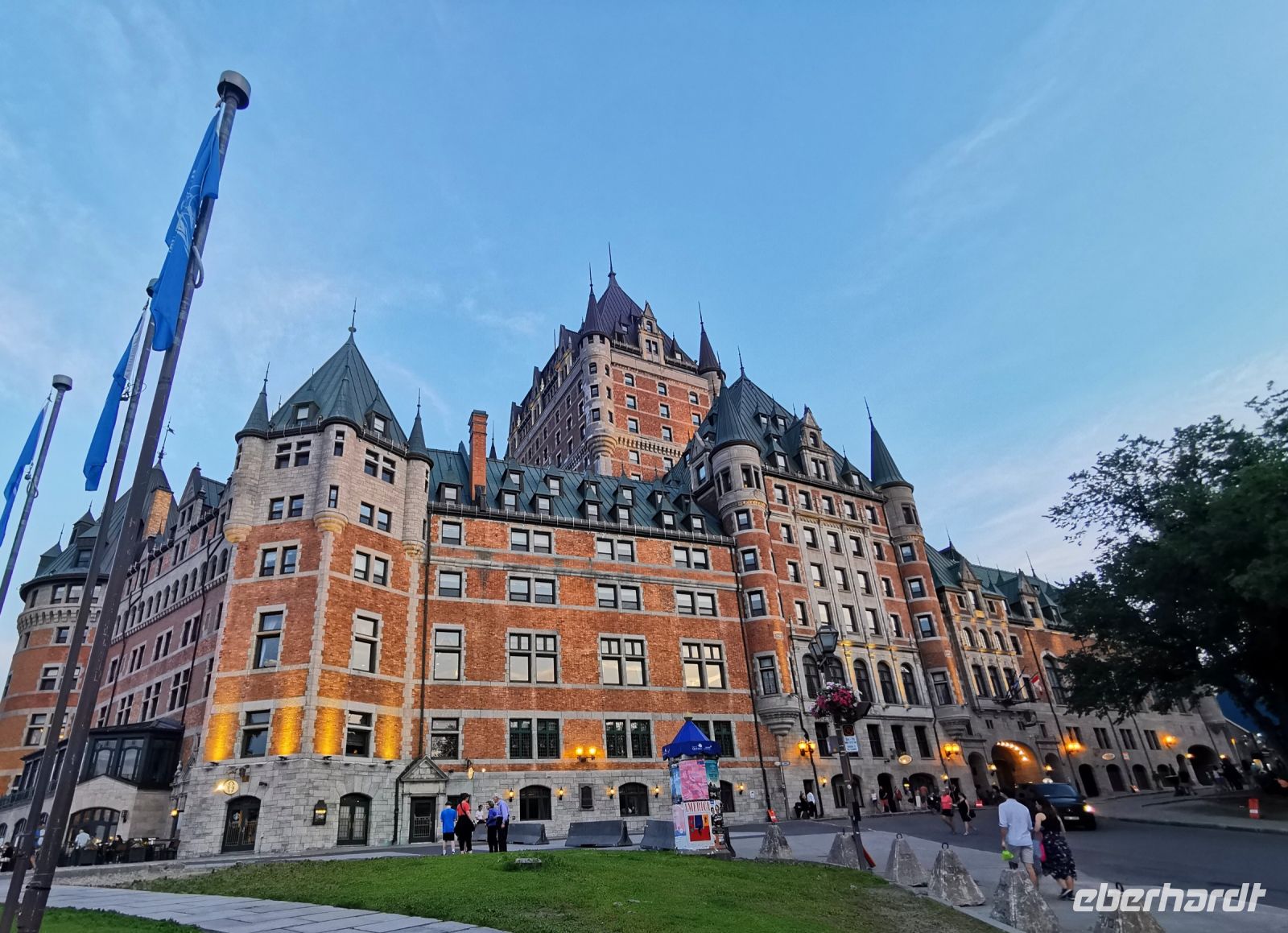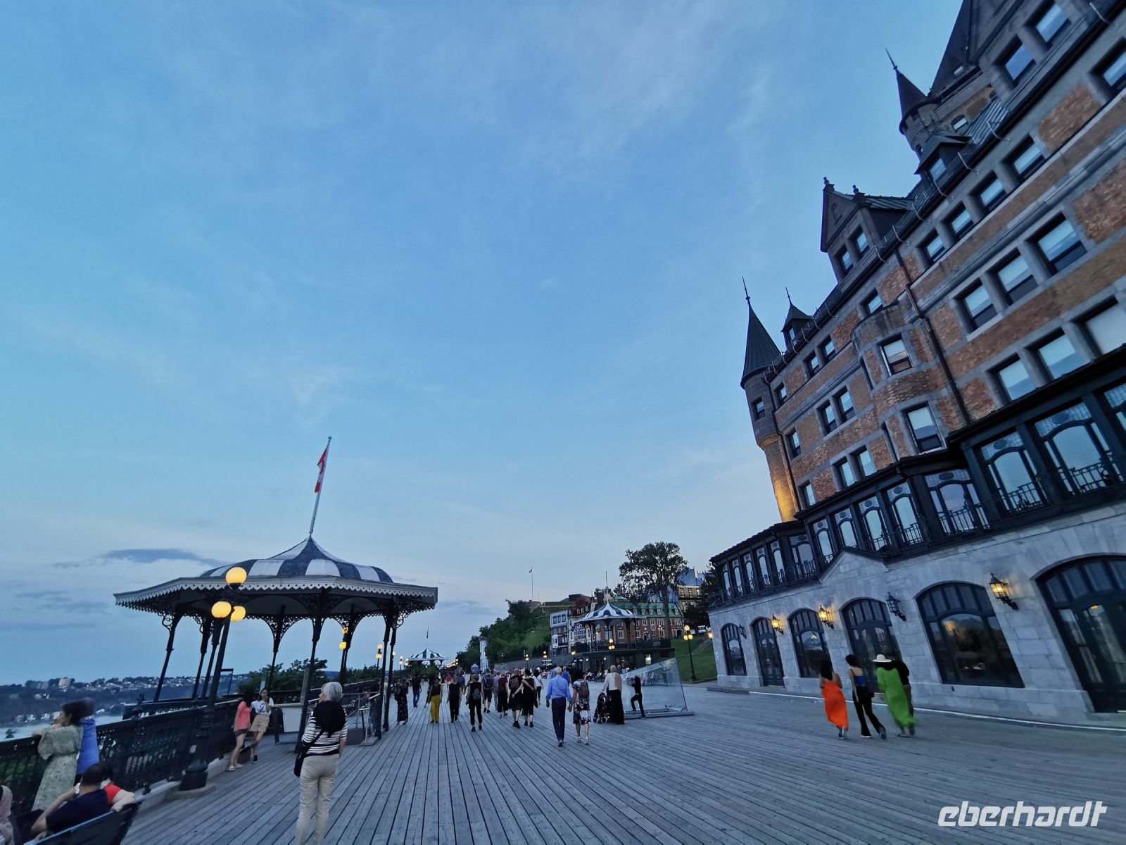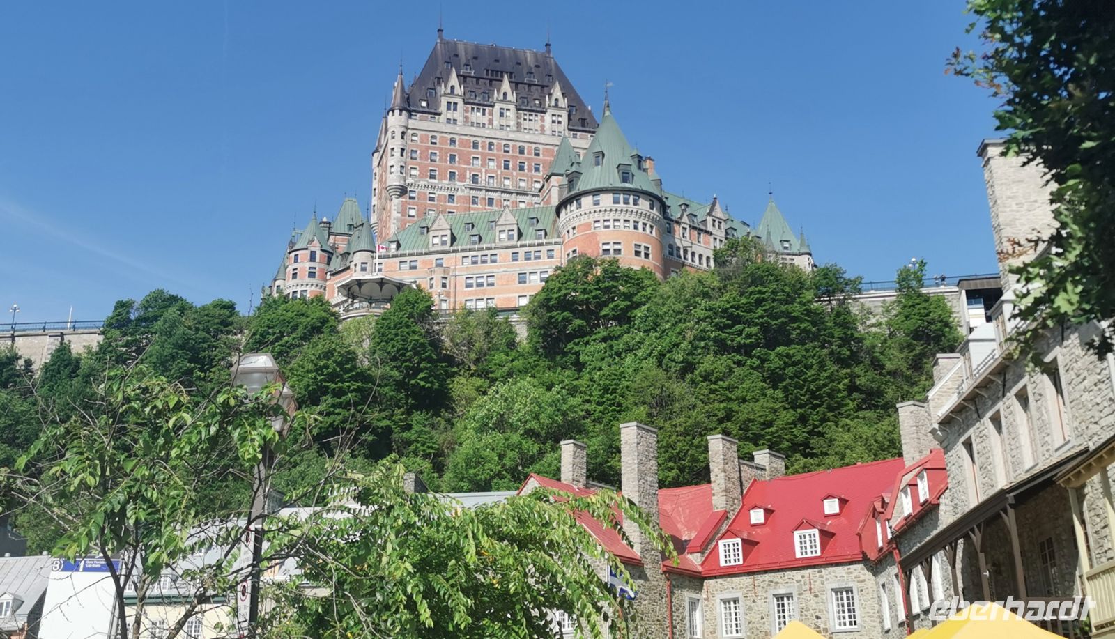 Danach bummeln wir durch die Gassen dieser sehr europäisch anmutenden Stadt mit ihren Stadtmauern, deren vier Eingangstore sehr an Carcassonne in Südfrankreich erinnern. In der sogenannten Haute-Ville (der Oberstadt) herrscht reges Treiben, Straßenmusiker singen Lieder von Edith Piaf und wir sind ganz verliebt in die Promenade am Sankt Lorenz Strom und vor allem in den Anblick des dort befindlichen Luxushotels Chateau Frontenac. Es sieht aus, wie eine südfranzösische Burganlage und wurde für die kanadische Eisenbahngesellschaft erbaut. Innen spürt man ein wenig Eisenbahnromantik a la Orient Express.