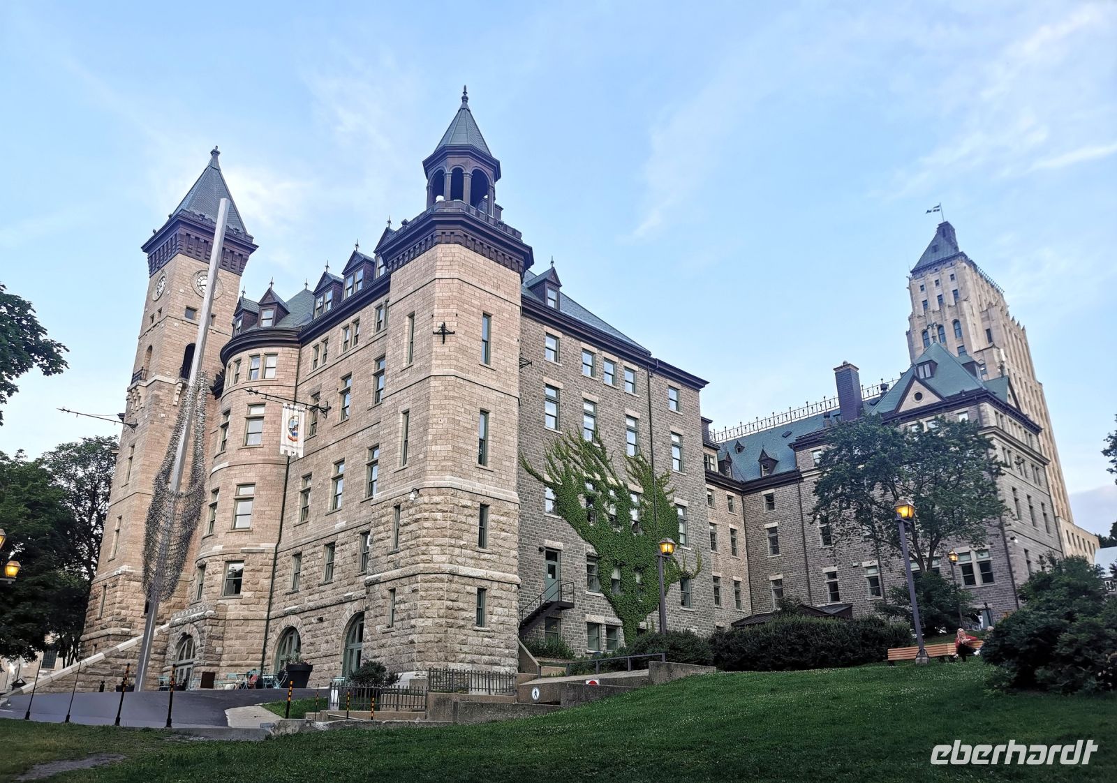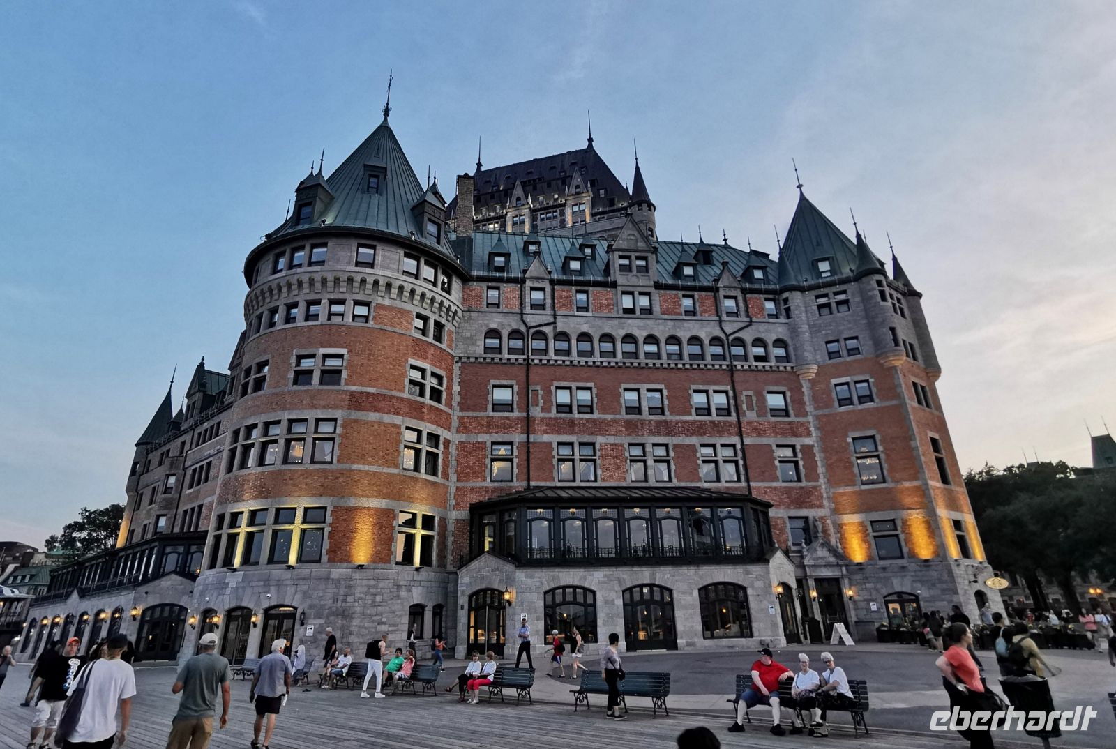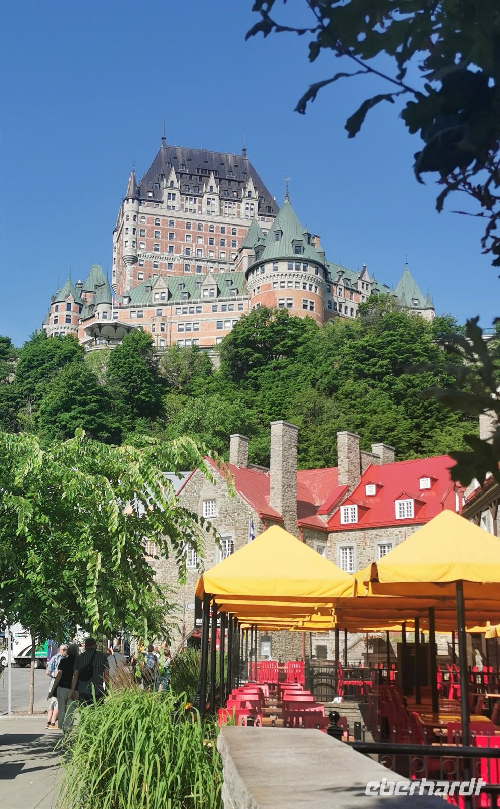 Danach bummeln wir durch die Gassen dieser sehr europäisch anmutenden Stadt mit ihren Stadtmauern, deren vier Eingangstore sehr an Carcassonne in Südfrankreich erinnern. In der sogenannten Haute-Ville (der Oberstadt) herrscht reges Treiben, Straßenmusiker singen Lieder von Edith Piaf und wir sind ganz verliebt in die Promenade am Sankt Lorenz Strom und vor allem in den Anblick des dort befindlichen Luxushotels Chateau Frontenac. Es sieht aus, wie eine südfranzösische Burganlage und wurde für die kanadische Eisenbahngesellschaft erbaut. Innen spürt man ein wenig Eisenbahnromantik a la Orient Express.