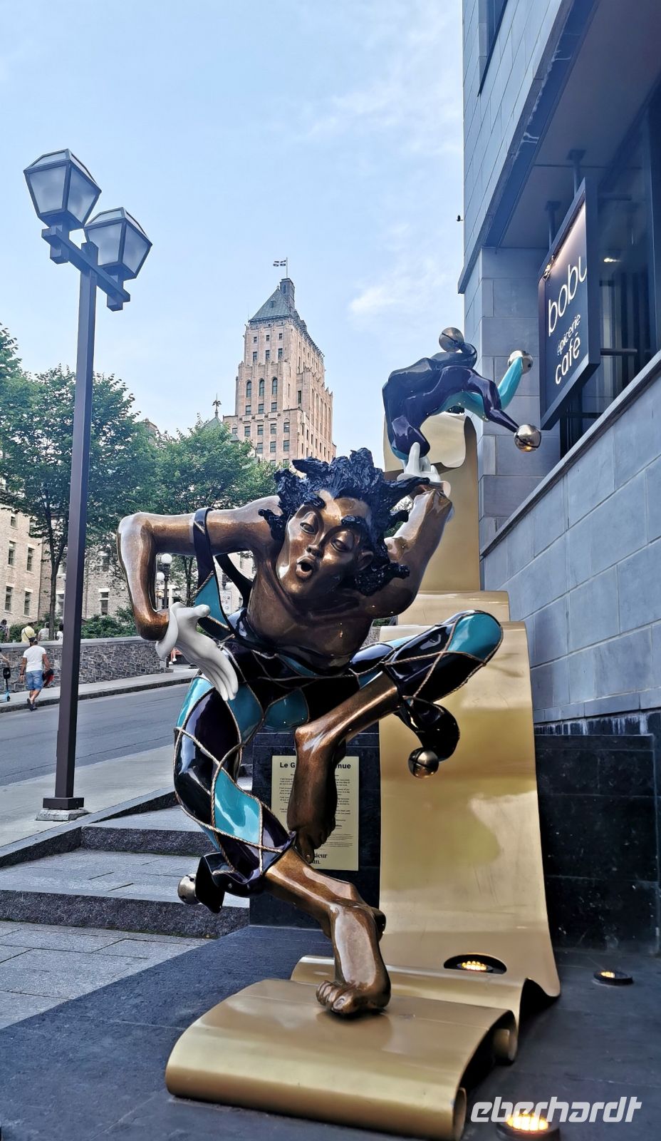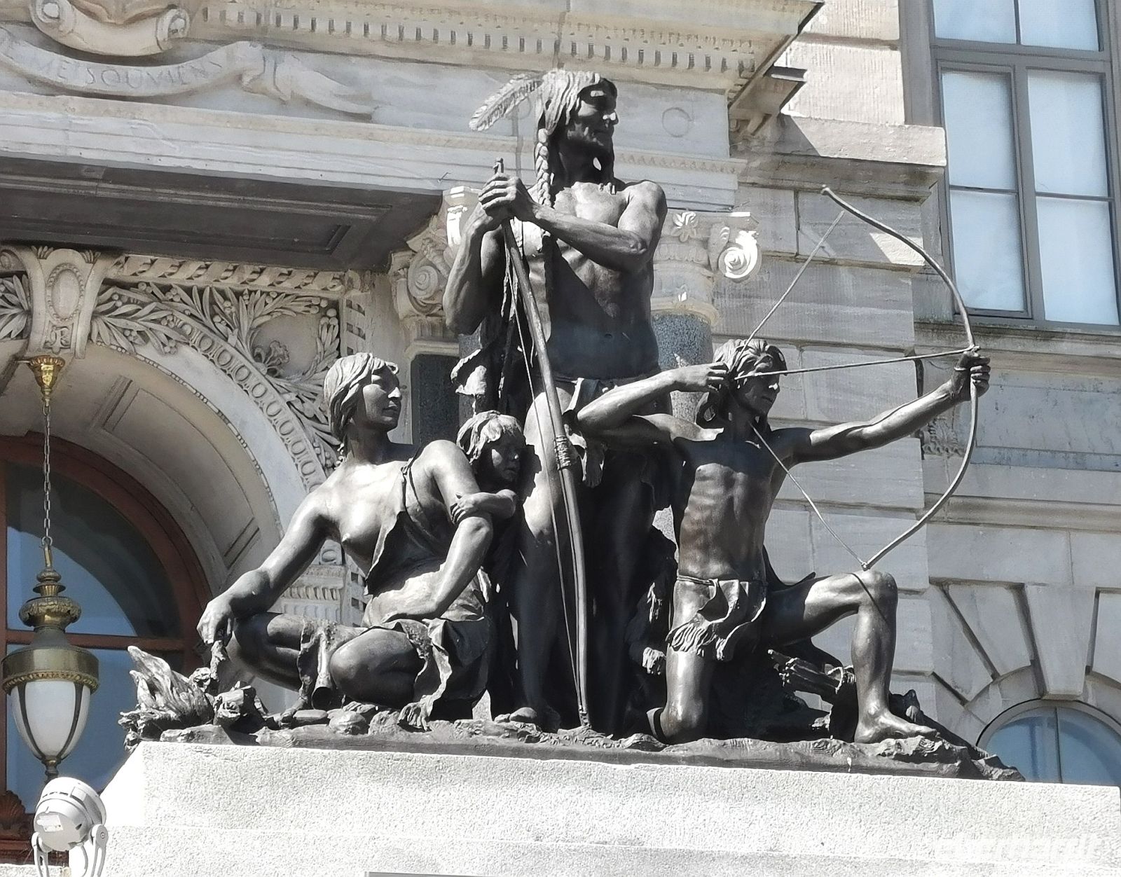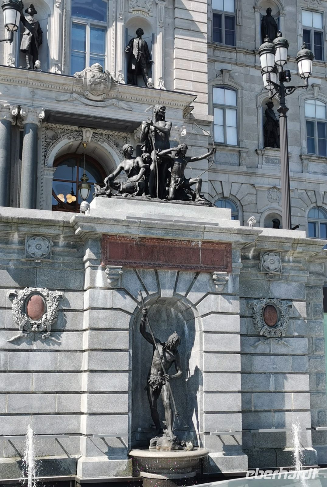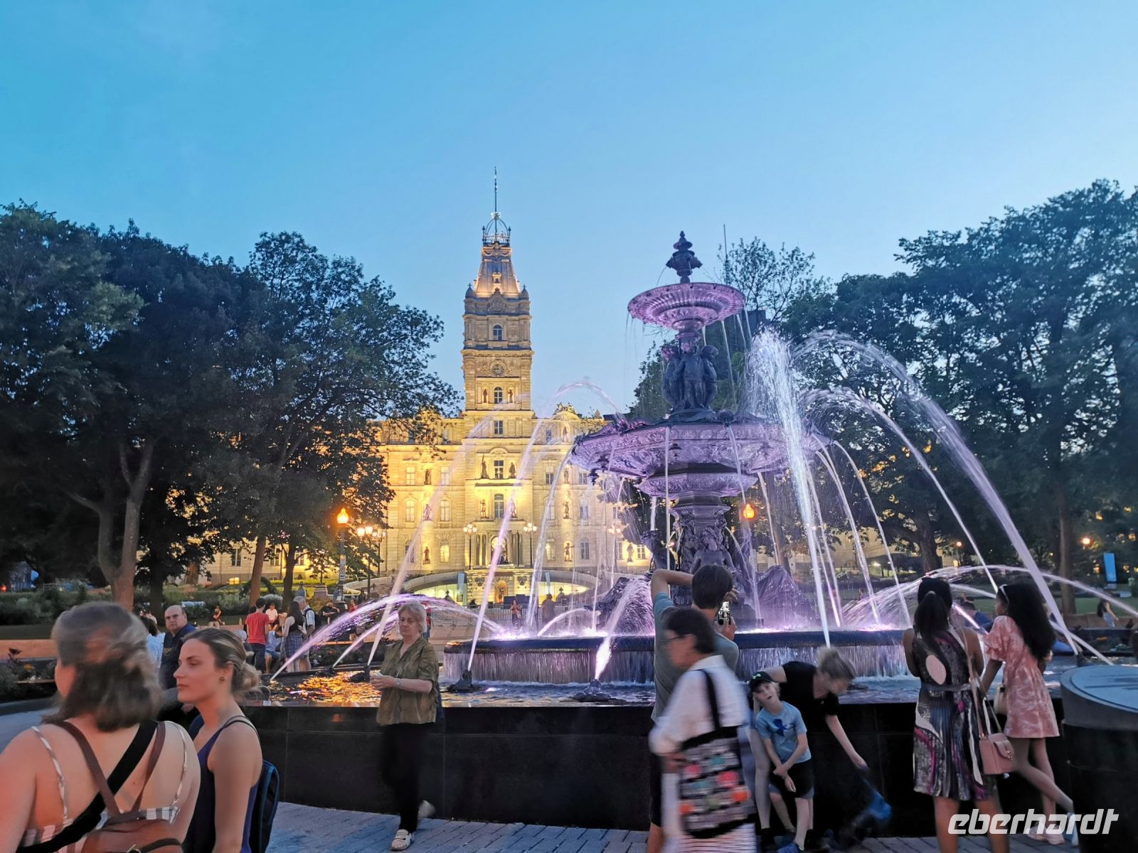 Am Parlament von Quebec legen wir einen Fotostop ein. Dieses imposante Gebäude wurde nach den Plänen von Eugene-Etienne Taché errichtet und vereint sowohl französische als auch englische Architekturstile. Vor der Eingangstür steht eine große Skulptur einer Indianerfamilie, die daran erinnern soll, daß die Ureinwohner Kanadas die ersten Siedler waren und nicht etwa Franzosen oder Engländer. Gleich neben dem Gebäude liegt ein kleiner Gemüsegarten, der das im Parlament befindliche Restaurant mit frischem Salat und verschiedenen Gemüse versorgt.