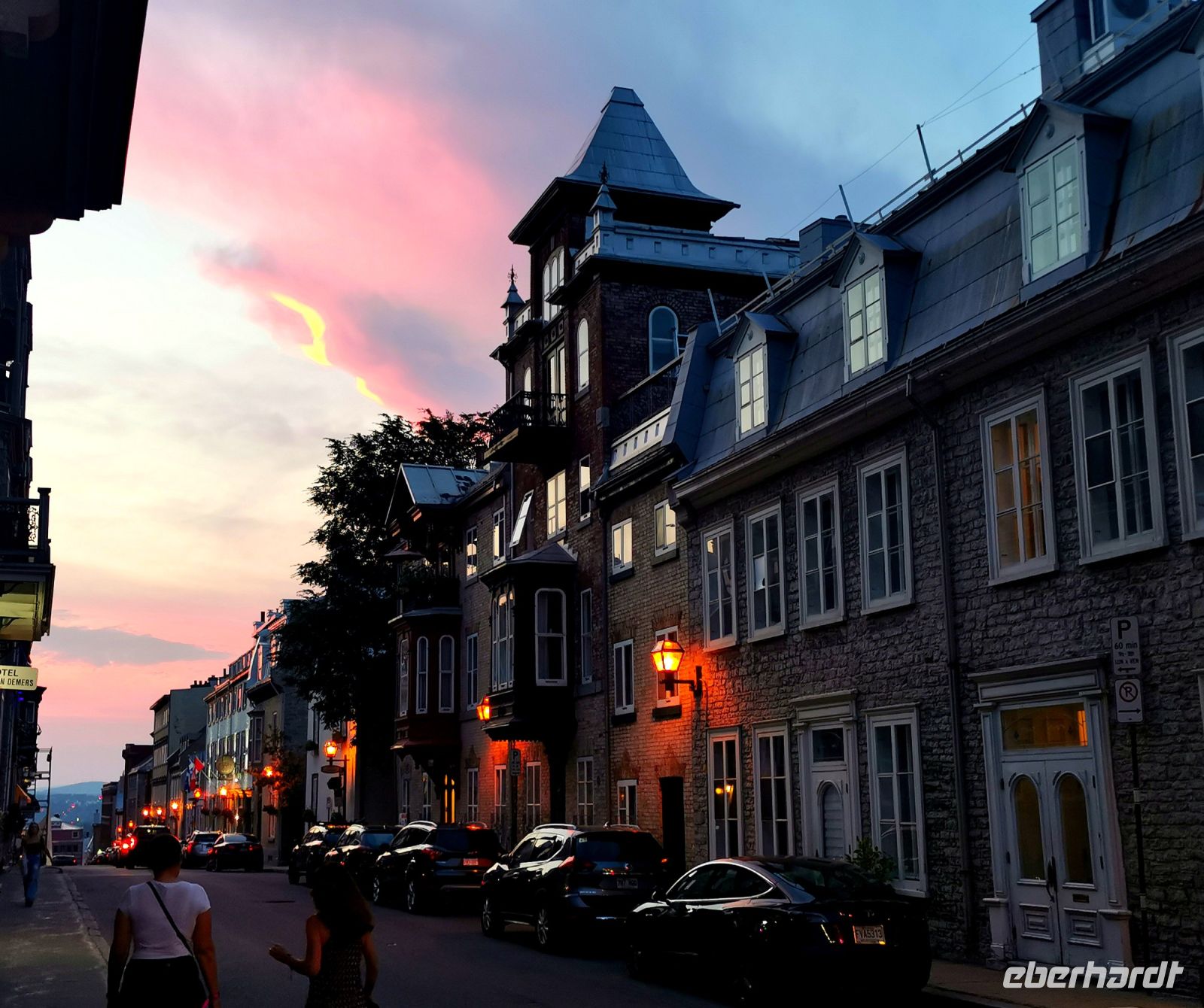 Die Landschaft, die an uns vorbeizieht, ist flach wie in den Niederlanden und wir sehen endlose Maisfelder, die nur ab und an durch eine am Rande liegende Farm unterbrochen werden. Nach einer kurzen Erfrischungspause im Hotel fahren wir gemeinsam in die Altstadt Quebecs und stärken uns dort erstmal in einem zünftigen Steakhaus.