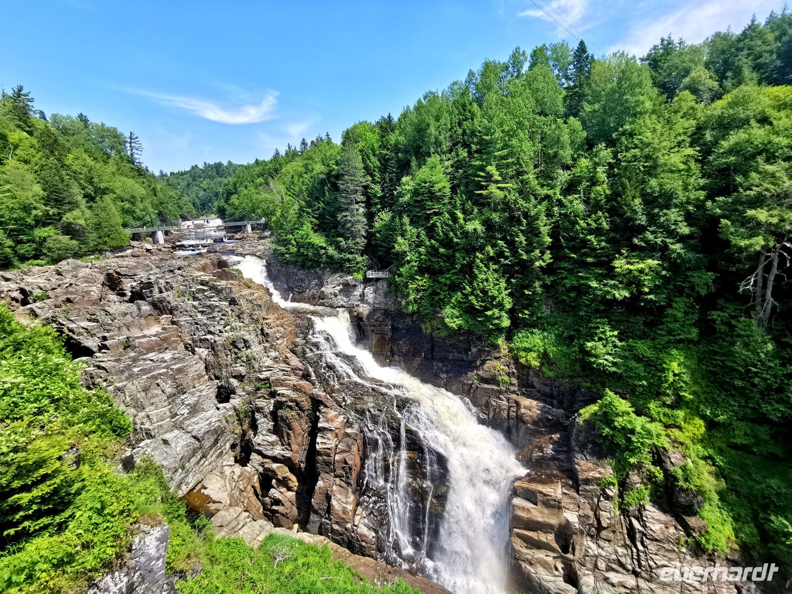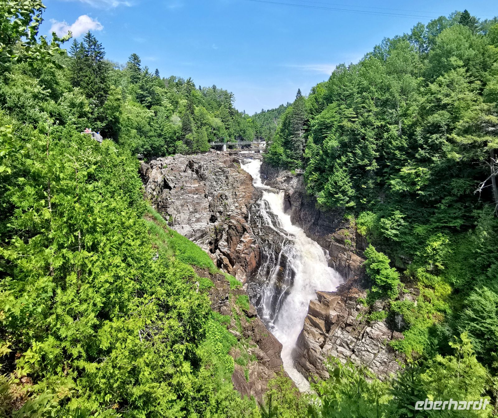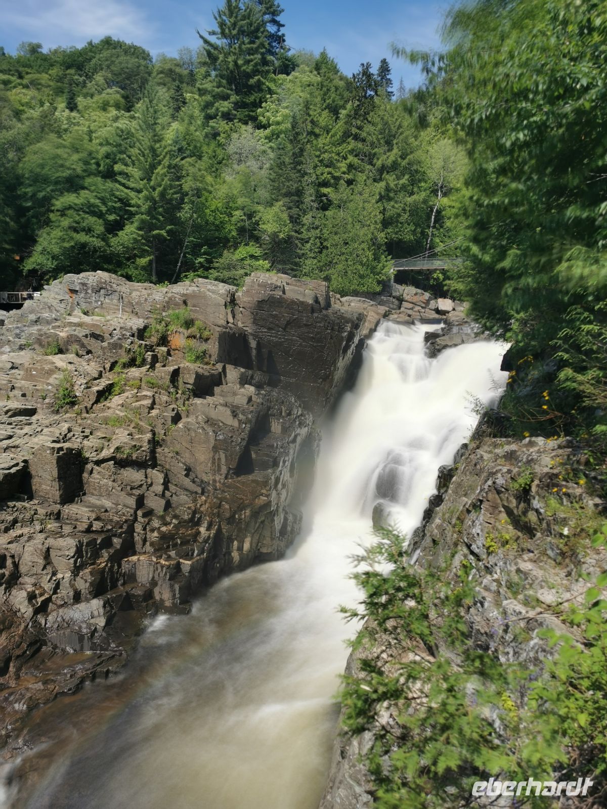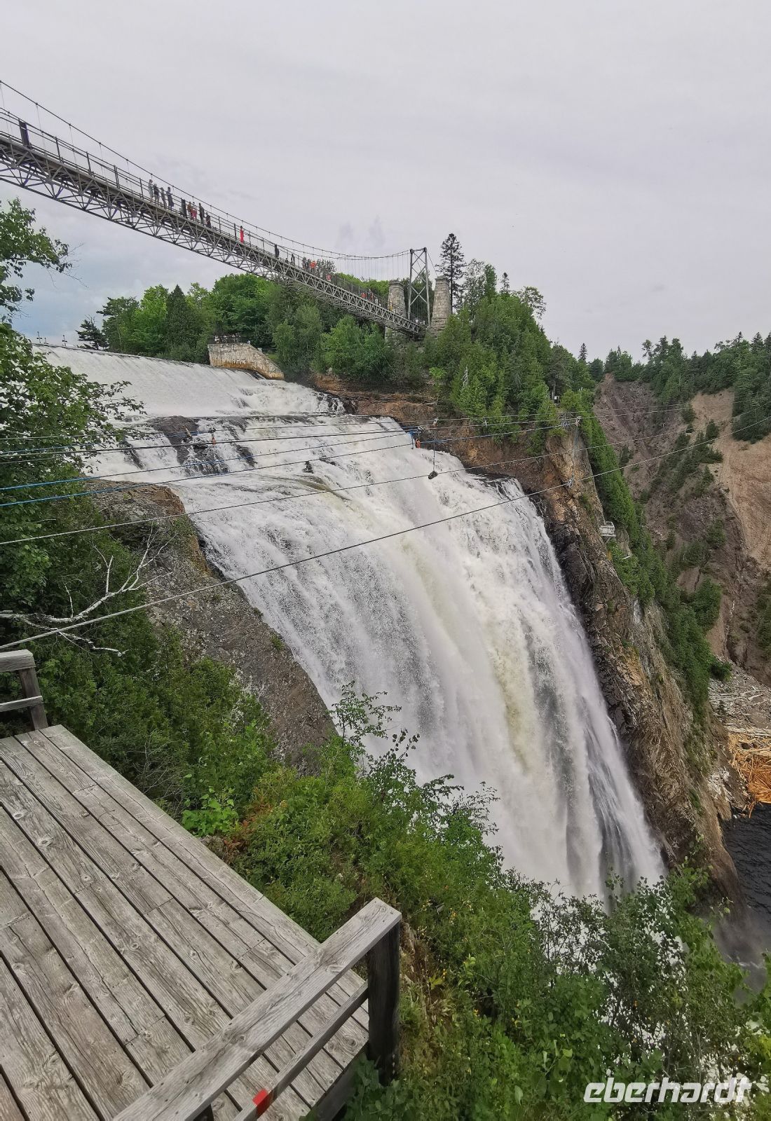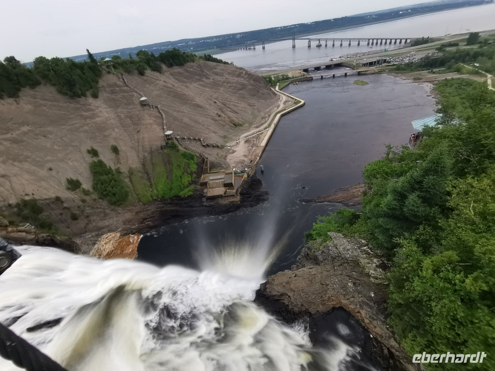 Am Nachmittag erreichen wir den Stausee und den Montmorency Wasserfall. Er bildet die Mündung des Flusses Montmorency und stürzt über eine Felswand 83 Meter in die Tiefen des Sankt Lorenz Stromes. Damit ist er der höchste Wasserfall der Provinz Quebec und sogar 30 Meter höher als die berühmten Niagara Fälle.