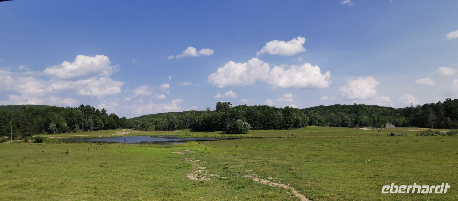 Wir können uns trotz Gudruns Erklärungen überhaupt nicht vorstellen, was Europäer im 19. Jahrhundert veranlaßt hat, hier in dieser Wildnis ohne Anschluß an Zivilisation, medizinische Hilfe und helfende Nachbarn zu siedeln. Sie mußten damals ohne breite komfortable Straße mit Flößen über den Fluß fahren, die teilweise von Rindern gezogen werden mußten. Jegliches Baumaterial wurde mühevoll auf Pferden in die Abgeschiedenheit gebracht. Noch heute ist dieser Teil Kanadas wenig besiedelt, es gibt außer der Hauptstraße keine weiteren Abzweigungen, kaum Ortschaften, weit und breit keine Einkaufsmöglichkeiten und nur wenige Wanderwege. Wer hierherkommt, der möchte Einsamkeit und Ruhe genießen.