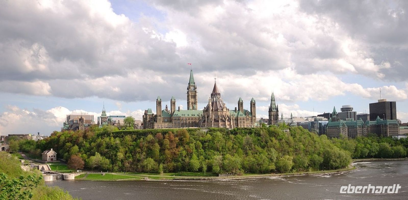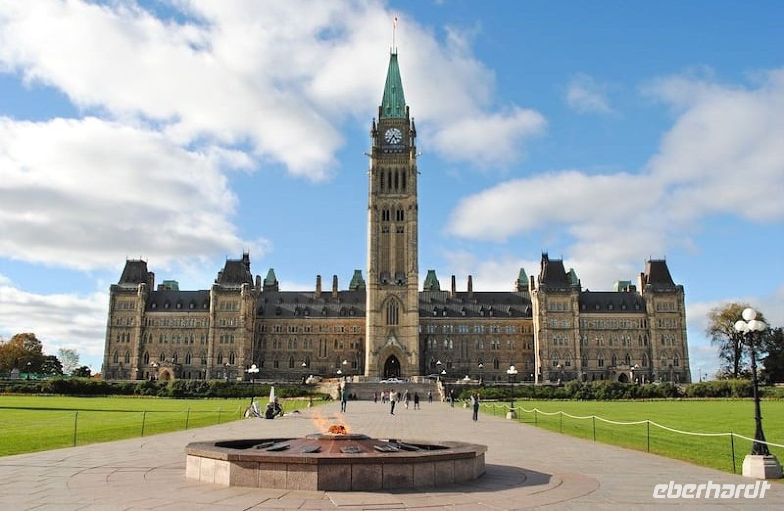 Unseren morgendlichen Spaziergang in Ottawa beginnen wir auf dem Parliament Hill am Südufer des Ottawa Flusses.