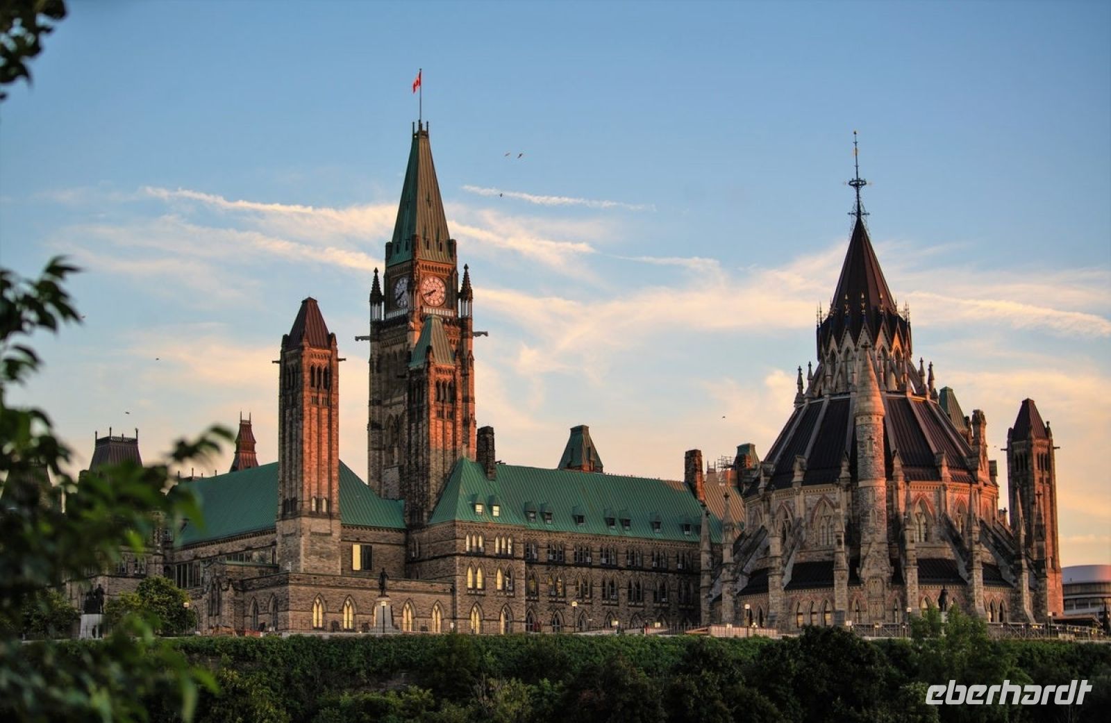 Nach einer weiteren Fahrstunde erreichen wir die Hauptstadt Kanadas: Ottawa. Sie liegt im südöstlichen Teil der Provinz Ontario nahe Montreal und gar nicht mehr weit von der Grenze zu den USA. Im Stadtzentrum am Ottawa River befinden sich die Parlamentsgebäude am Parliament Hill und weitere Gebäude im viktorianischen Stil, die National Gallery of Canada und zahlreiche Museen. Leider ist es schon wieder Abend geworden und unsere Erkundungstour müssen wir auf morgen früh verschieben ...