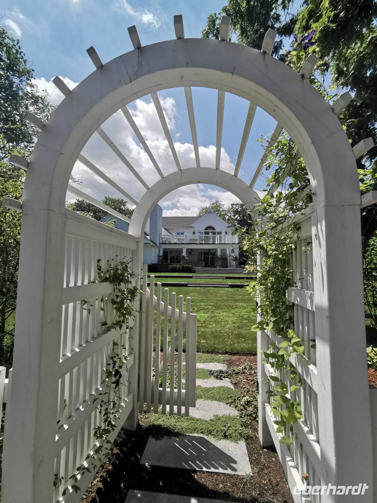 Wir beginnen im Rosengarten und selten haben wir so viele verschiedene Arten auf so kleinem Raum gesehen, man kann sogar durch mit rankenden Rosen bepflanzte Durchgänge laufen und es duftet verführerisch.