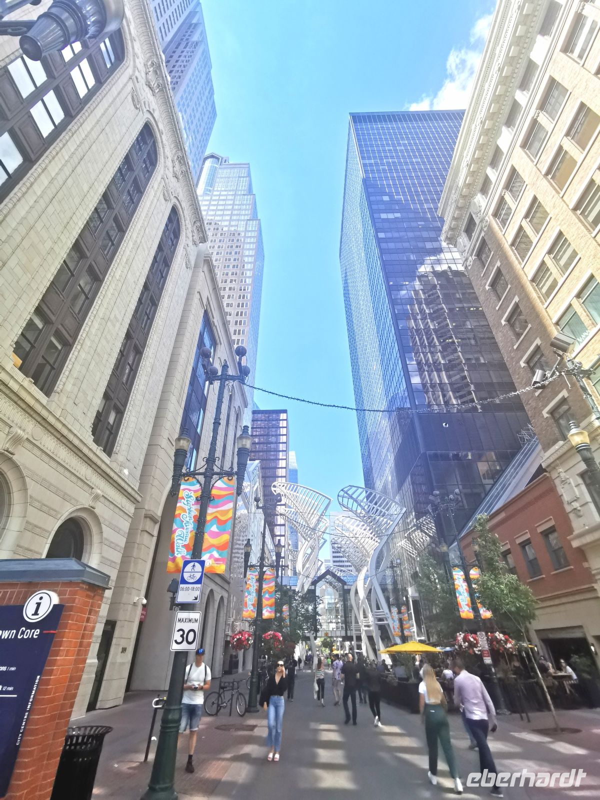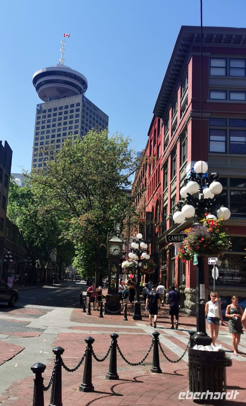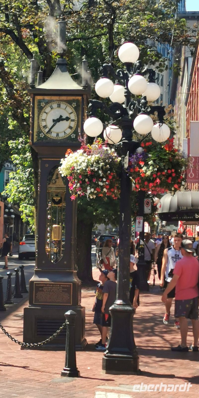 Wir schauen uns zuerst die berühmte Steam Clock an, eine mit Dampfkraft betriebene Uhr mitten im historischen Zentrum. Jede Viertelstunde gibt sie Geräusche von sich, die an eine Eisenbahn erinnern und zwischendurch dampft sie munter vor sich hin.