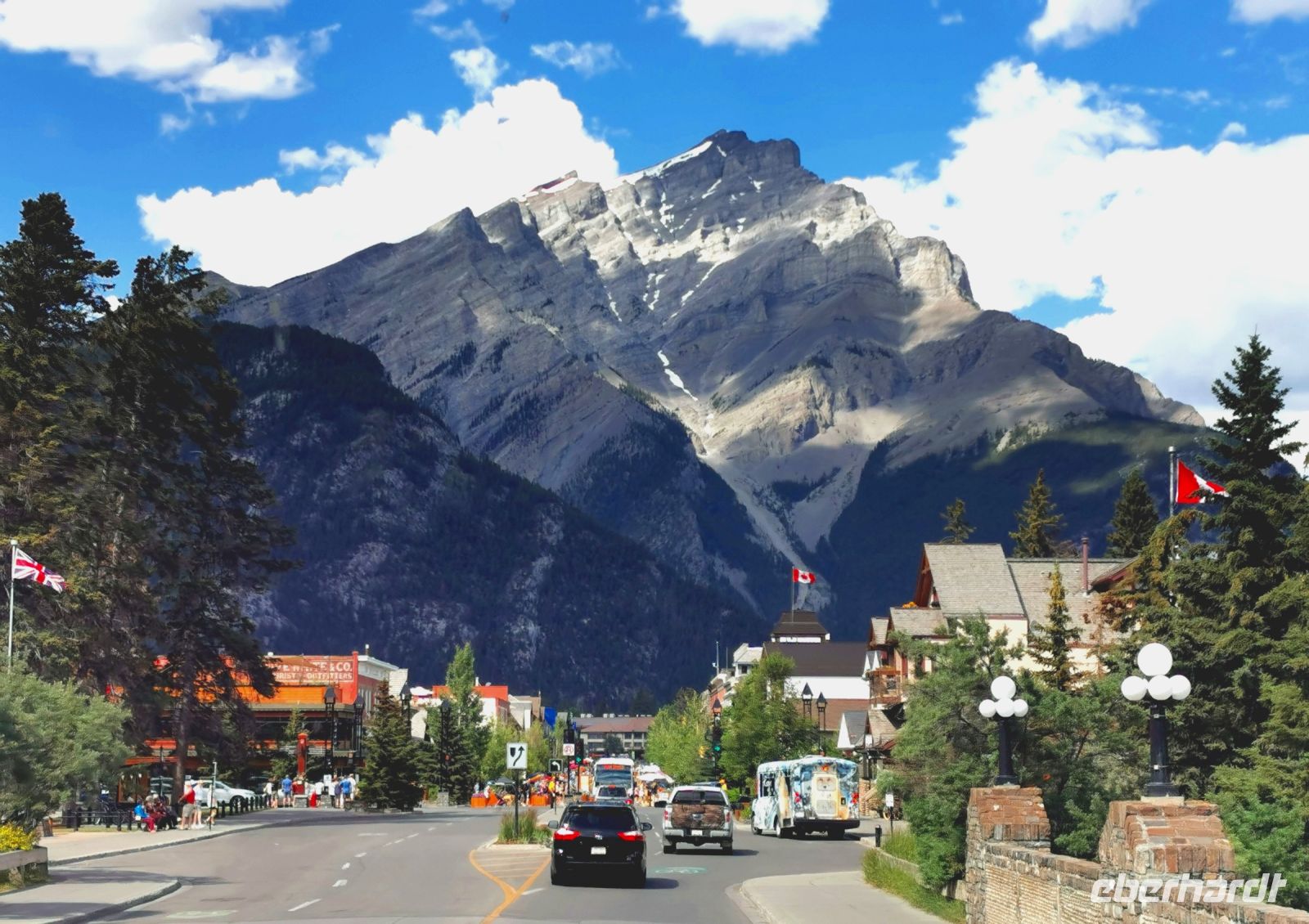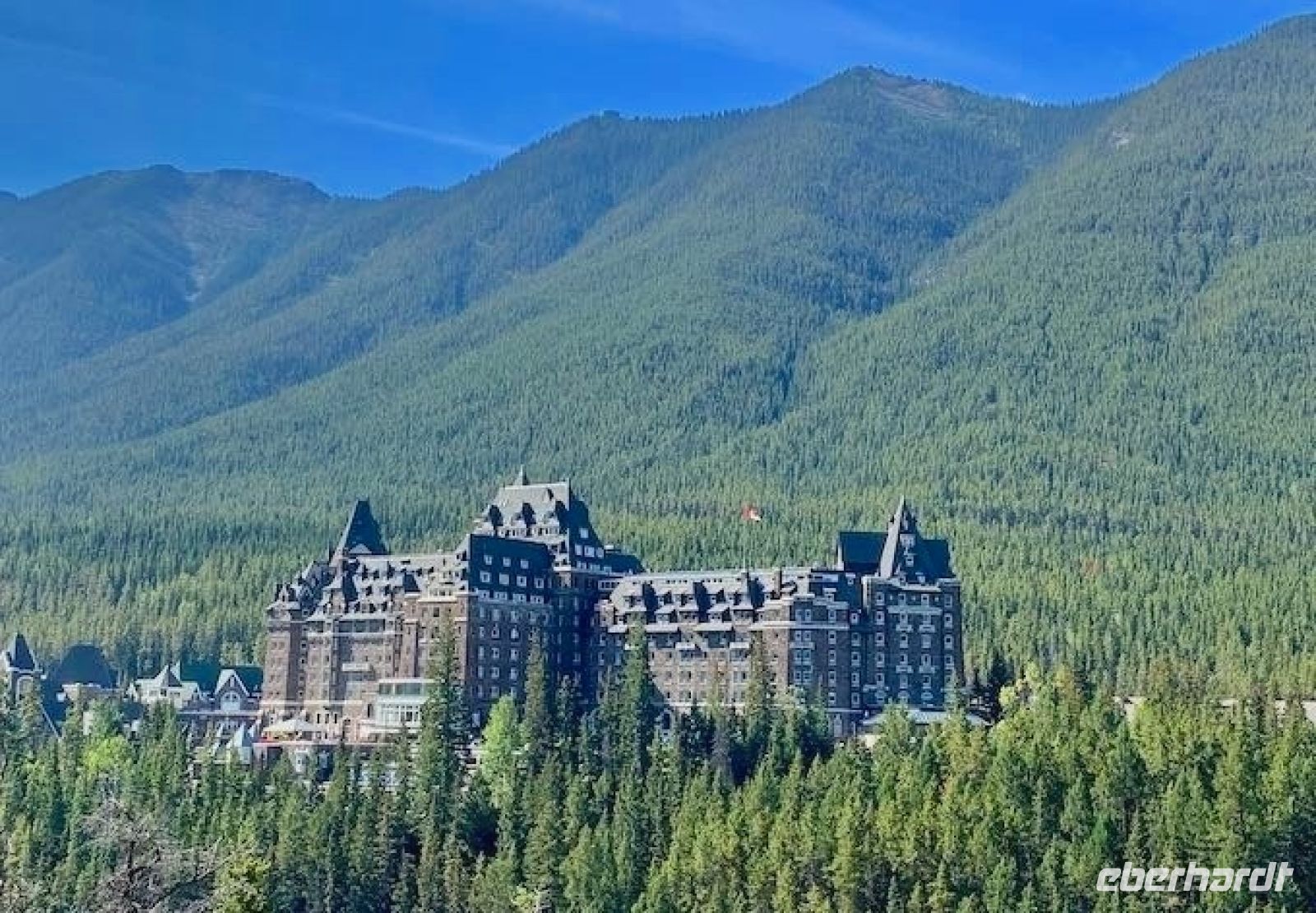 Als wir uns endlich von dem Anblick des türkisfarbenen Wassers lösen können, machen wir uns auf den Weg nach Banff. Hier steht erneut eines der Fairmount Hotels, wiederum in atemberaubender Lage mitten im Wald, unzählige Souvenirläden und Restaurants säumen die Fußgängerzone.