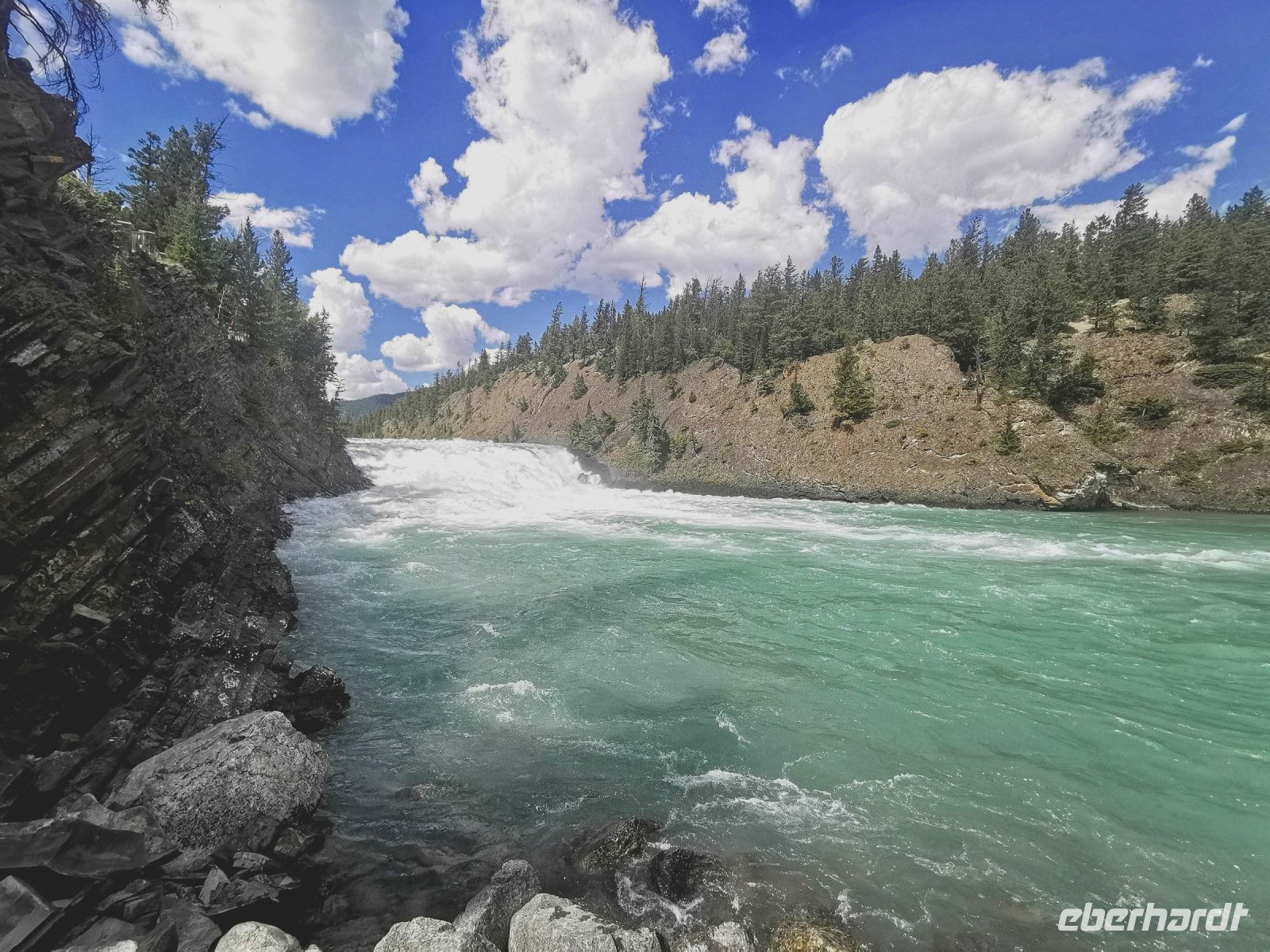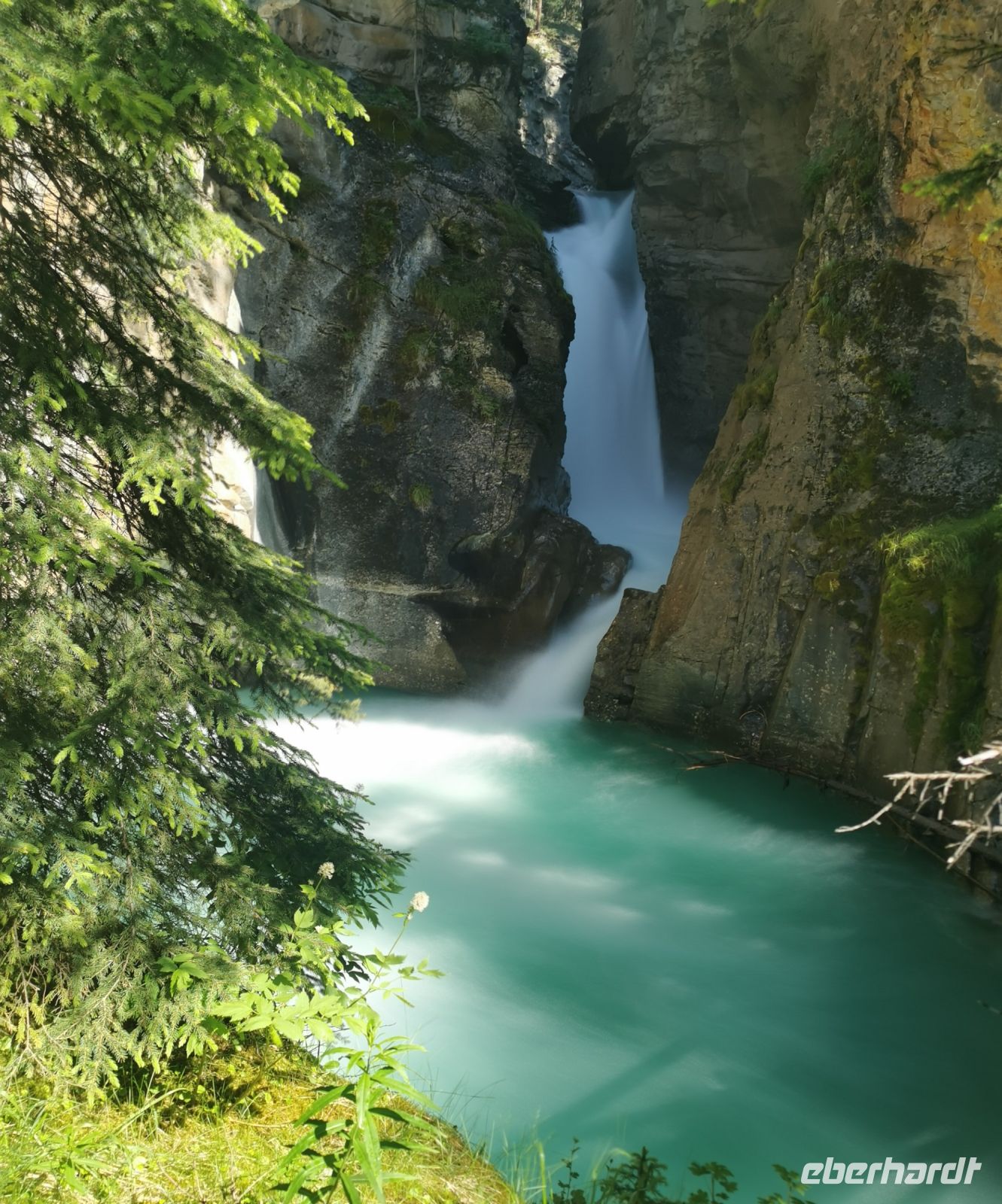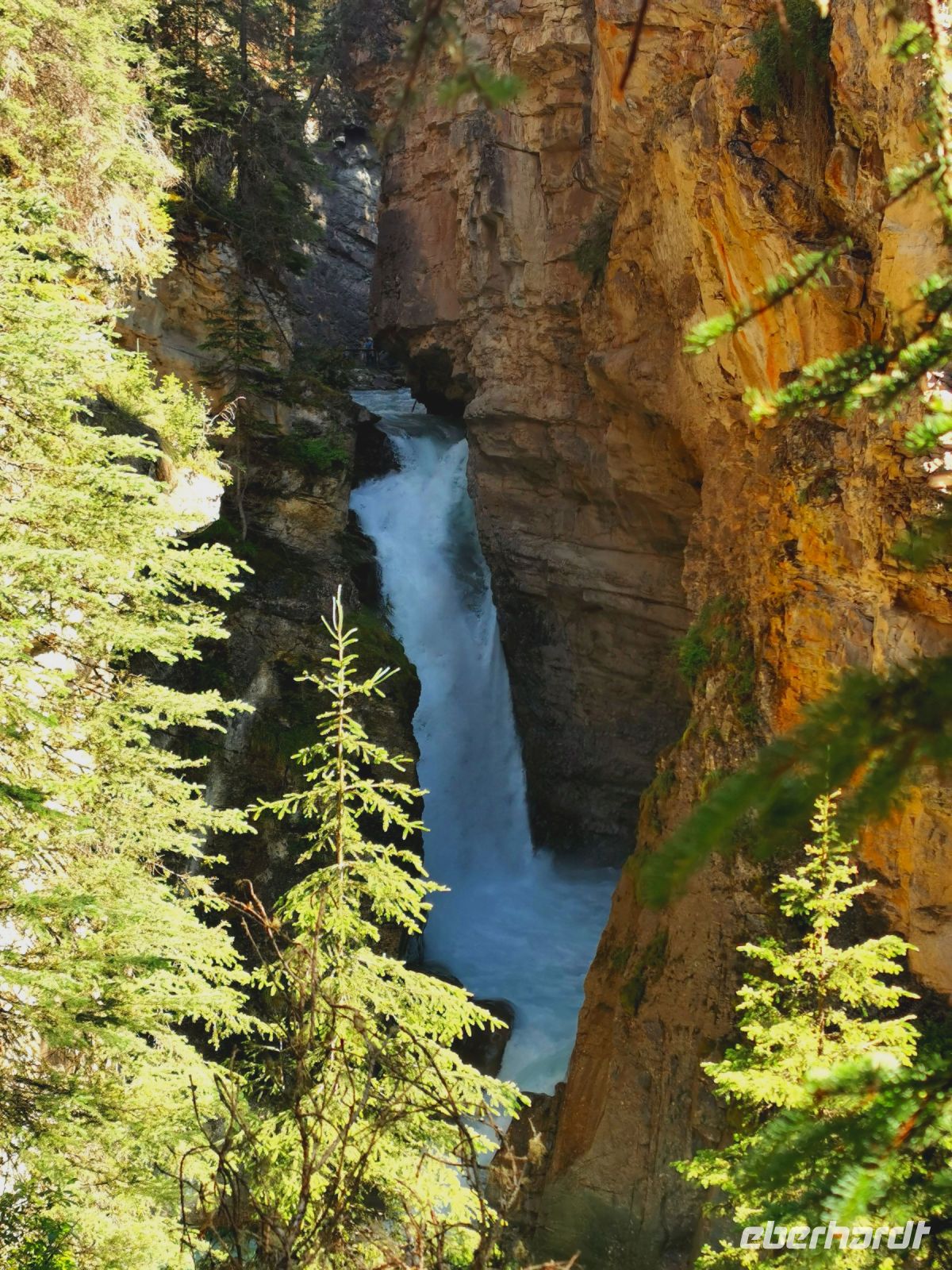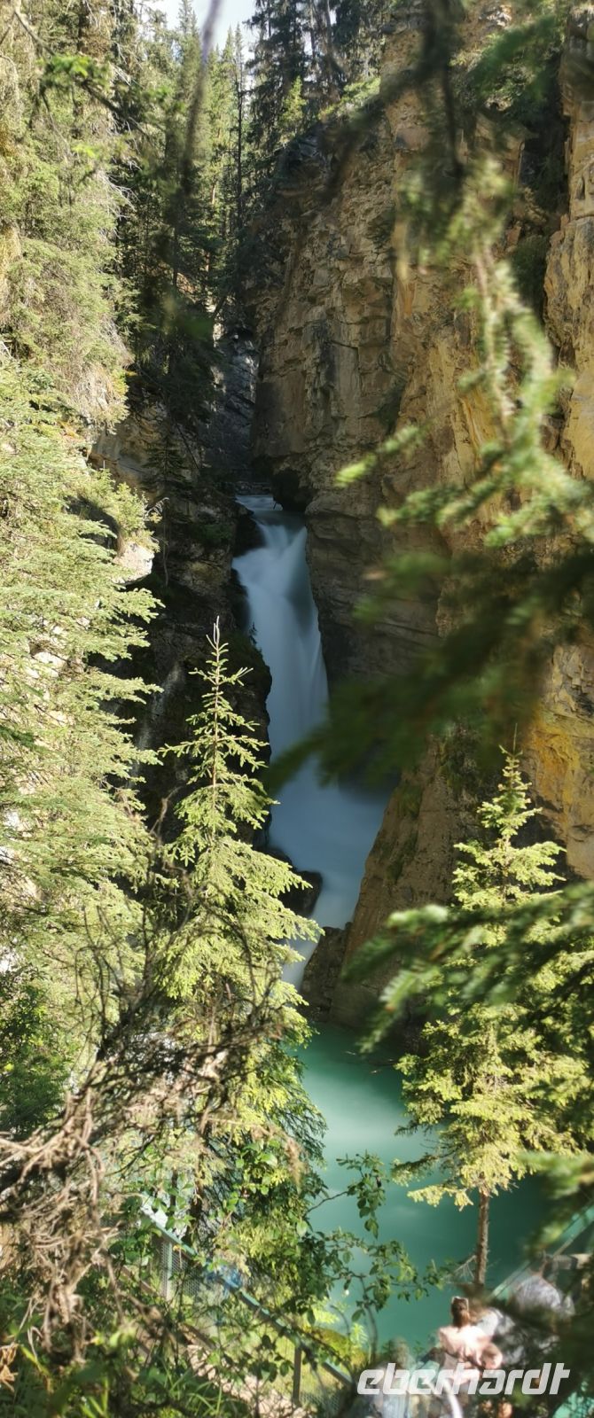 Nun wollen wir zu Fuß in der Natur unterwegs sein und begeben uns dazu zum Johnston Canyon. Man kann einen Pfad entlang der Felsen zum Wasserfall laufen und die klare Waldluft genießen.