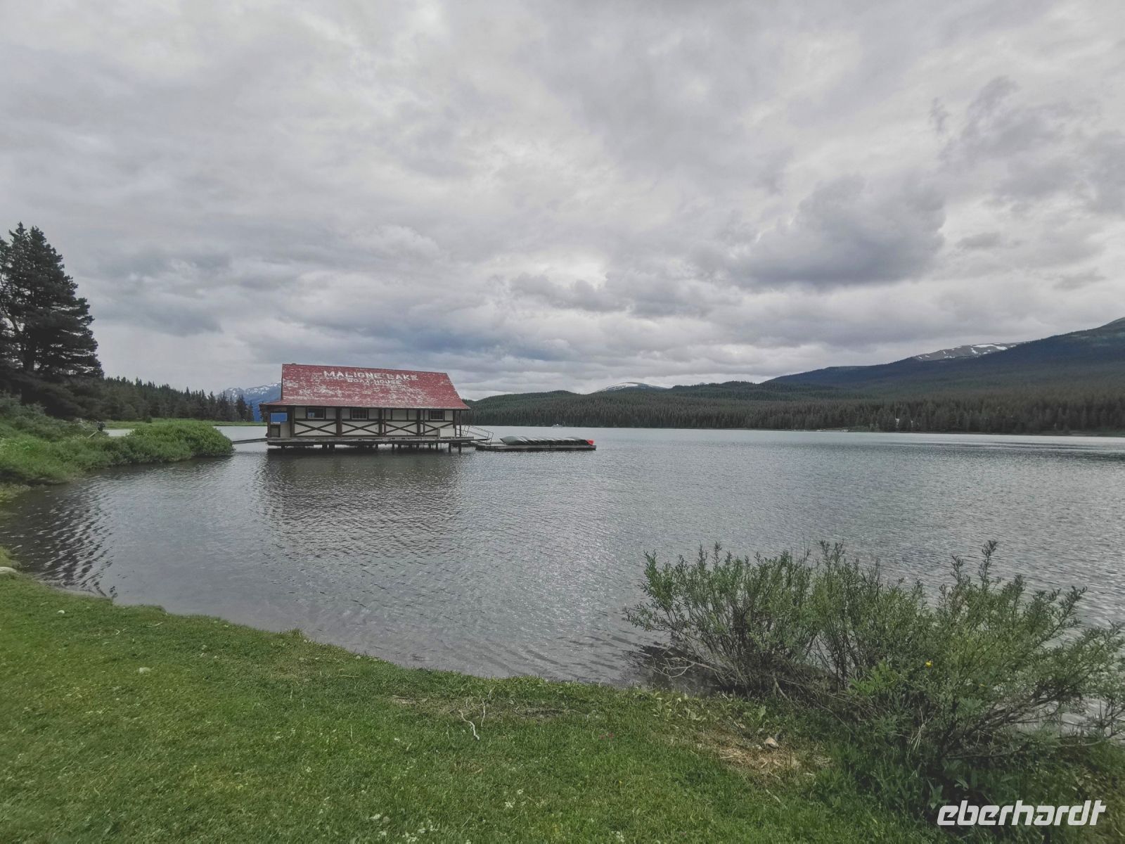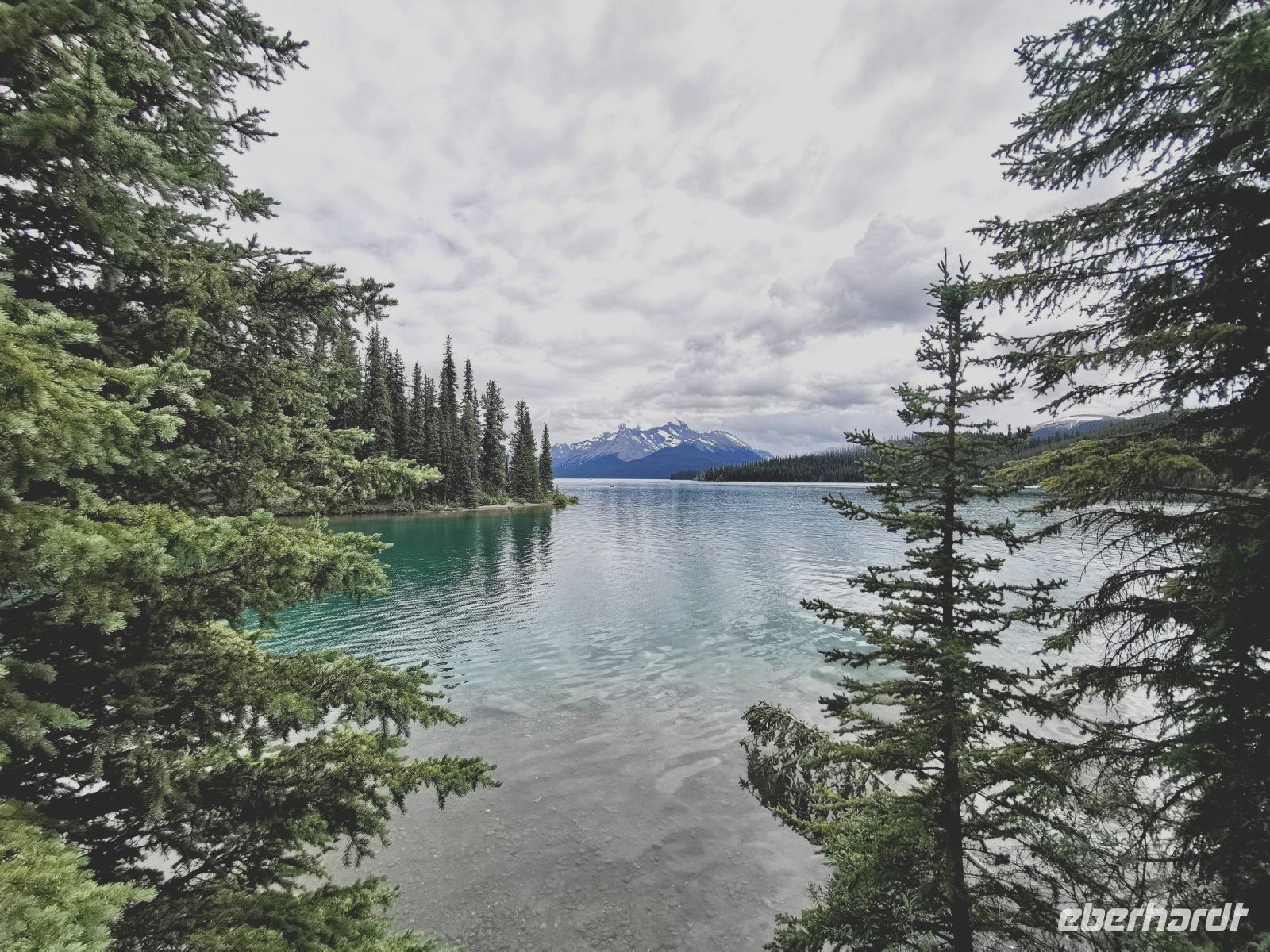 Am Medicine Lake beobachten wir einen Weißkopfadler, der majestätisch über unseren Köpfen kreist und dessen Junges gerade Flugübungen im Nest veranstaltet. Dieser See liegt auf einer Höhe von 1.436 Metern. Er ist ein Teil des Maligne River und fließt unterirdisch ab. Da der See hauptsächlich von Gletschern gespeist wird, ist die Wassertemperatur selten höher als sechs Grad.