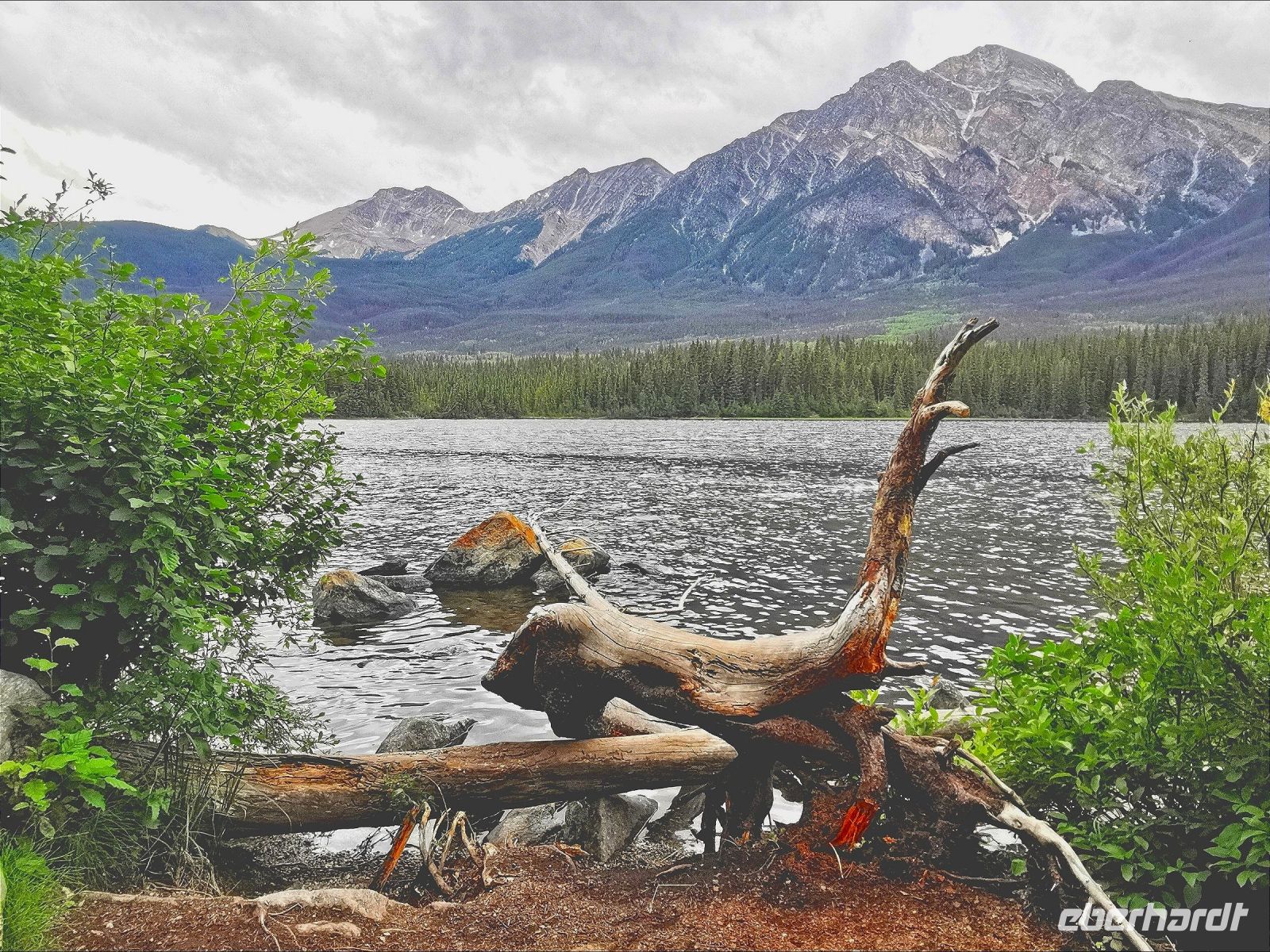 Nach etwa einer halben Stunde können wir uns endlich loslösen und erreichen den Pyramide Lake. Er liegt auf einer Höhe von 1..180 Metern und der See ist 1,2 km² groß. Nach einem kurzen Spaziergang entlang des Ufers fahren wir weiter zum Maligne Canyon. Unterwegs treffen wir allerdings auf weitere Bären und können gar nicht aufhören, sie so frei in der Natur zu beobachten.