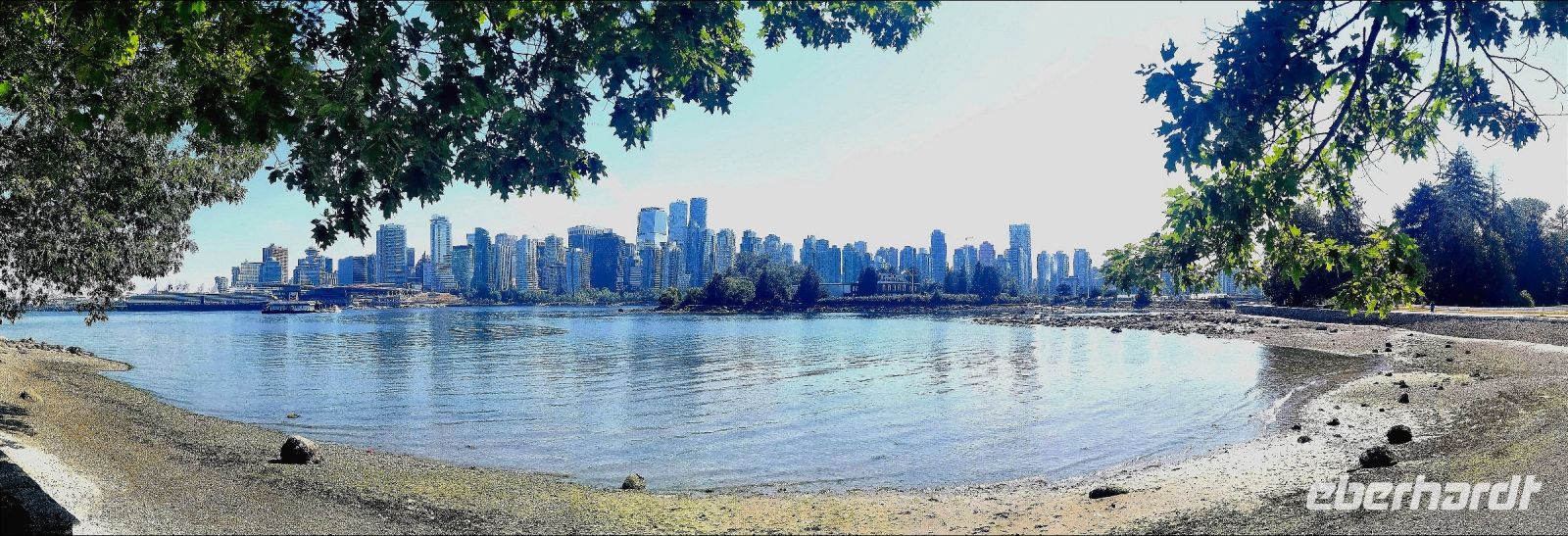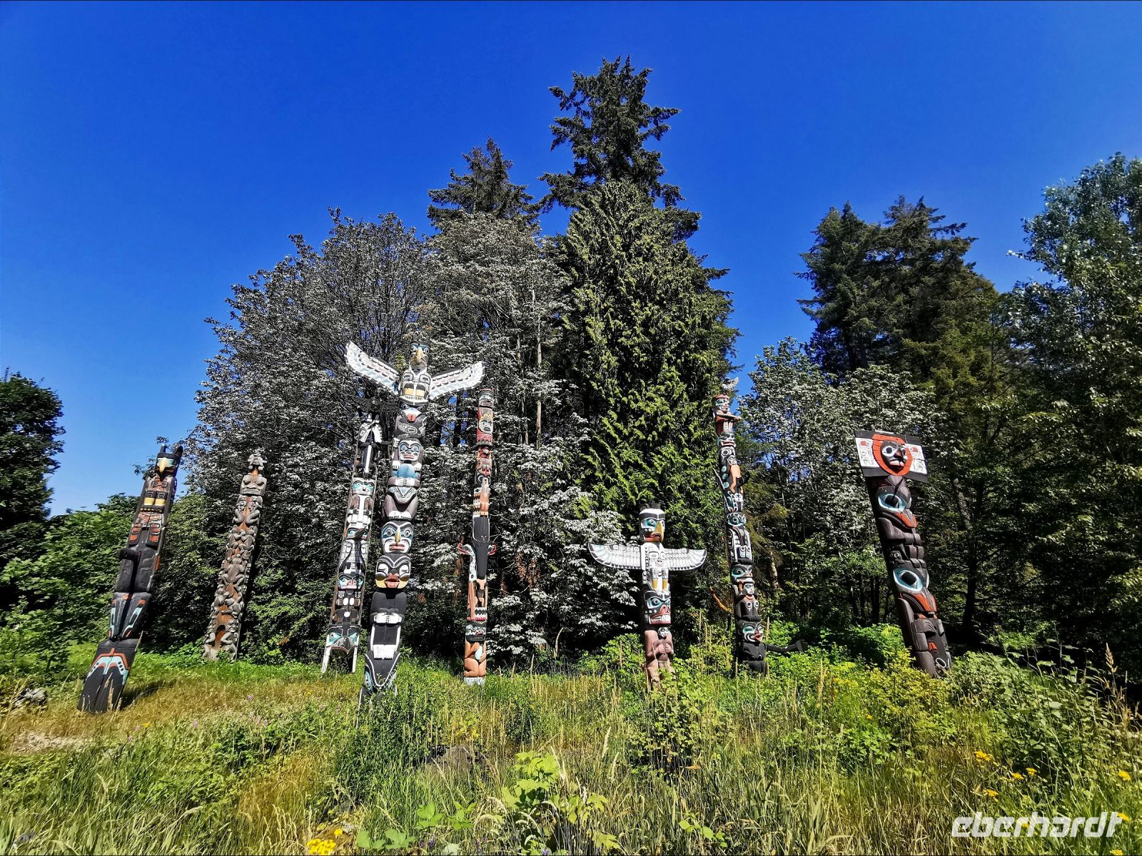 Danach laufen wir durch das Viertel am Hafen, schauen uns den ehemaligen Bahnhof an, der heute eine Metrostation beherbergt. Danach fahren wir in den riesigen Stanley Park, der eine Ausdehnung von über 400 Hektar hat. In diesem Park mit seinem beeindruckenden Wald ziehen sich 200 km lange Spazier- und Wanderwege und er hat einen unglaublichen Baumbestand von einer halben Million unterschiedlicher Bäume. Vom Park aus kann man wunderschöne Ausblicke auf die Skyline von Vancouver genießen.
