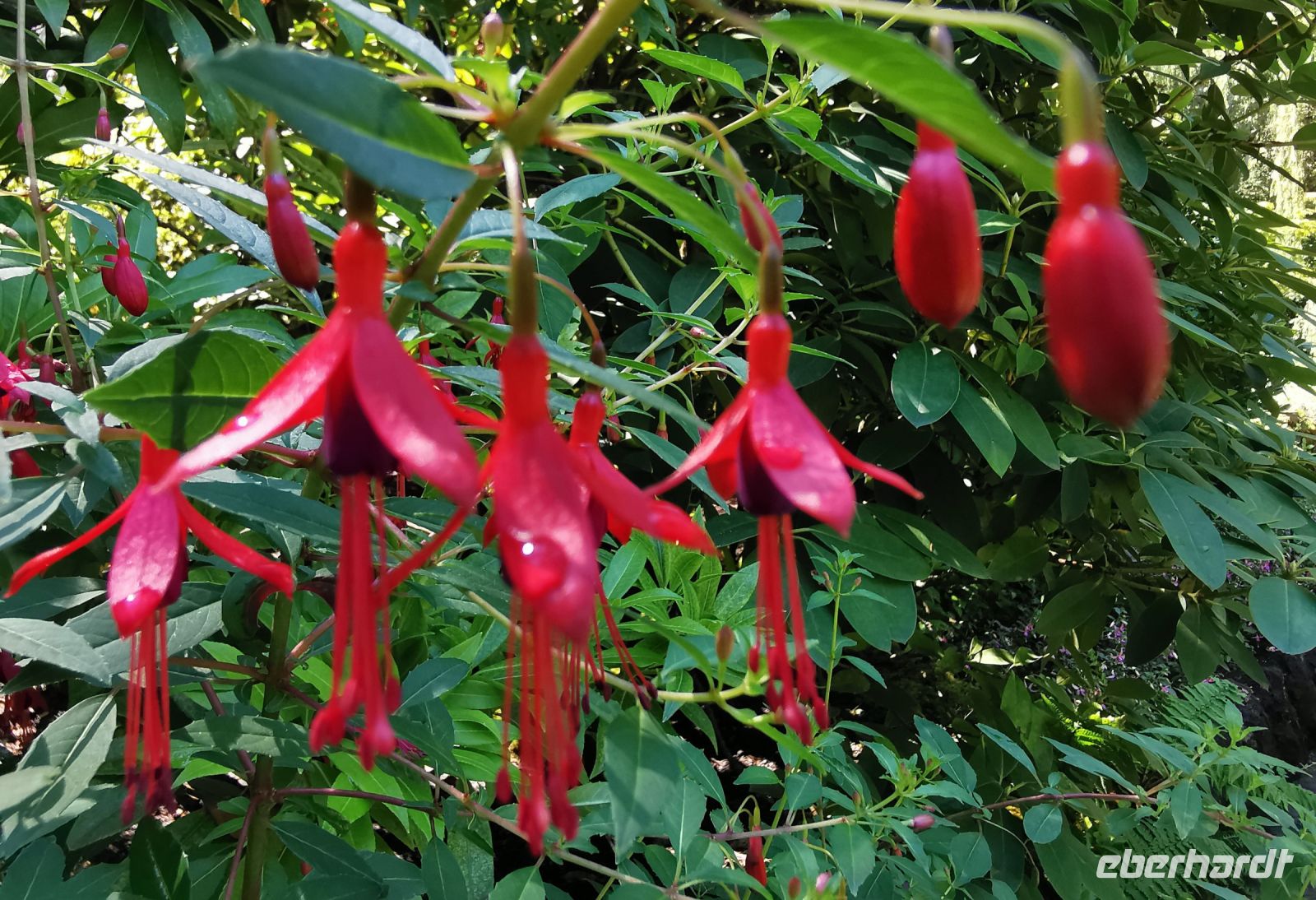 Etwas weiter hinten liegt der japanische Garten, der sehr schön schattig angelegt ist und in dem weniger blüht. Hier dominieren Bäume, Sträucher und japanische Holztore. Bei einem Springbrunnen kann man vom Plateau aus die verschiedenen Fontänen bewundern und die Seerosen im Teich schaukeln durch die kleinen Wellen leicht vor sich hin. Im mediterranen und italienischen Teil erkennen wir vieles wieder, was in Europa wild wächst und nach einer Stunde haben wir unzählige Blumenfotos gemacht und sind ganz berauscht von der Farben- und Blütenpracht.