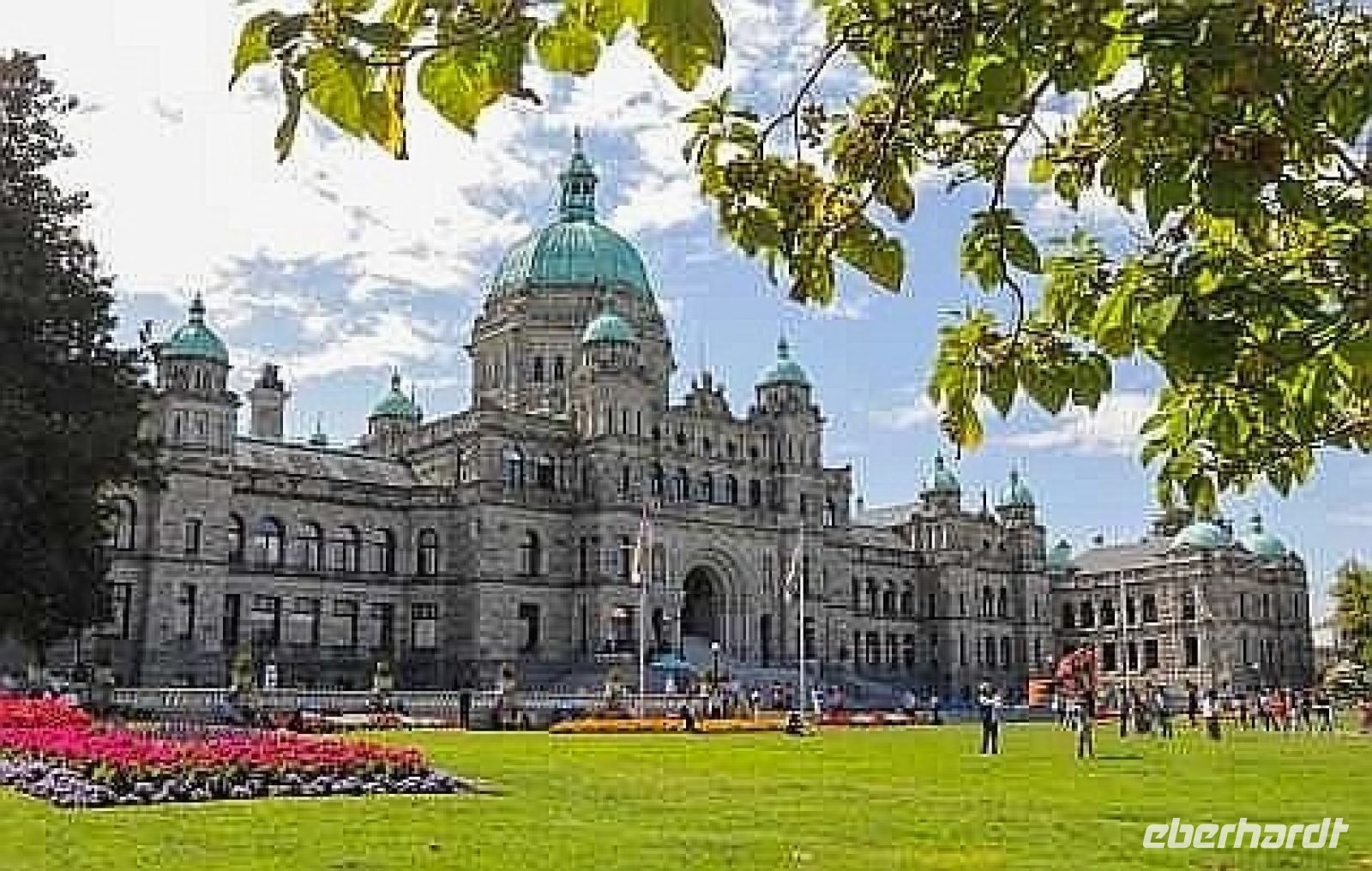 Nach diesem tollen Erlebnis fahren wir weiter in die Hauptstadt von Vancouver Island, die an der Küste von British Columbia liegt. Am südlichen Ende gelegen, beherbergt Victoria unzählige Parkanlagen. Um die Stadt herum liegen traumhafte Strände und viele Wassersportmöglichkeiten bieten sich. Das Klima ist mild, die Sommer sind heiß im Winter fallen die Temperaturen sehr selten unter null Grad und wenn wir mehr Zeit gehabt hätten, wären wir sicher einmal in die Fluten des Pazifik gestiegen.