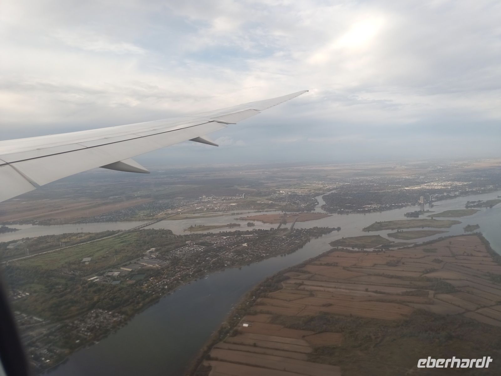 Nach dem Check In und einer kleinen Vorstellungsrunde steigen wir in den Flieger und fliegen mit Lufthansa mit etwa einer Stunde Verspätung nach Montreal. Durch etwa sechs Stunden Zeitverschiebung hat sich unser Tag etwas verlängert. Aber die erfahrenen Globetrotter sind es gewöhnt.