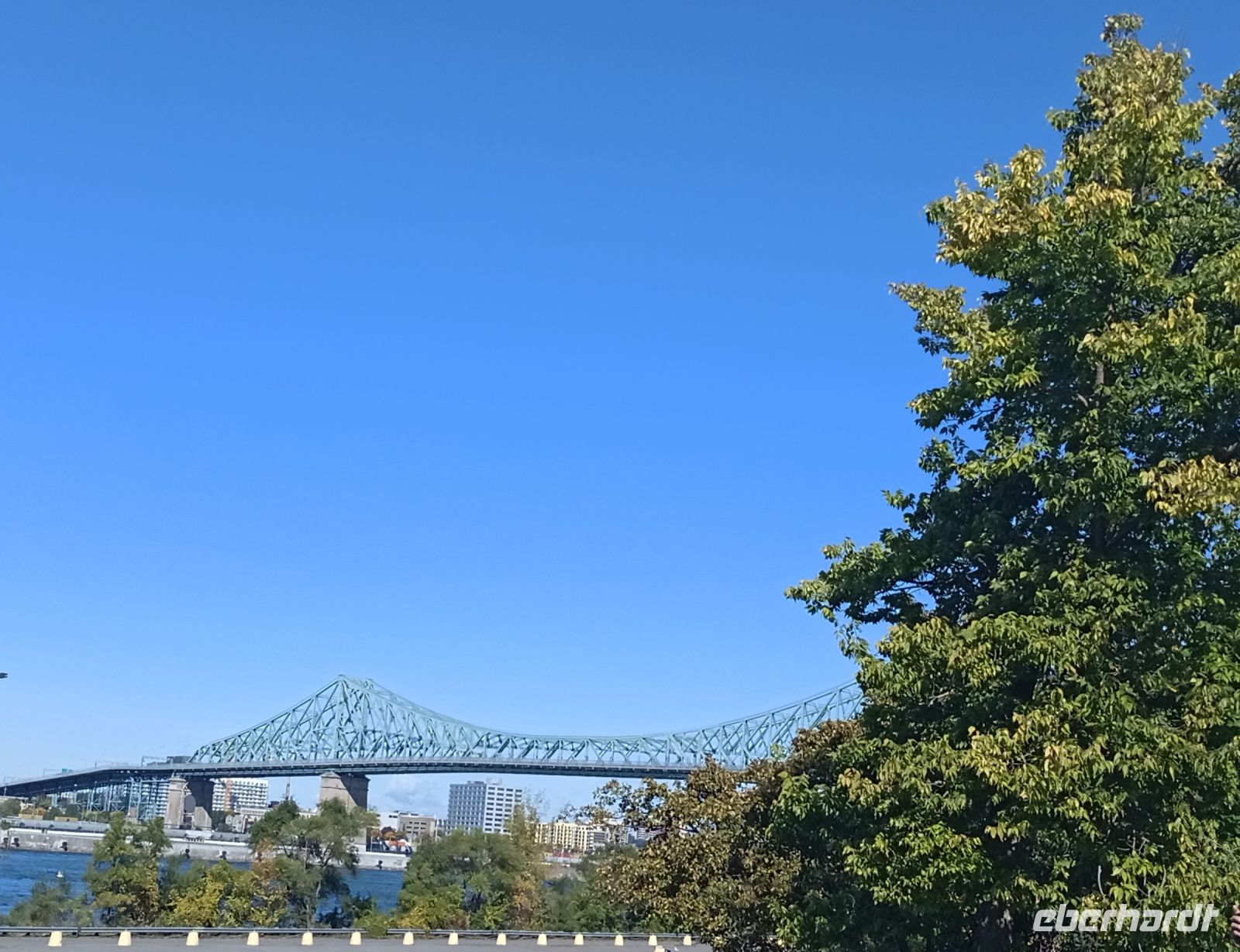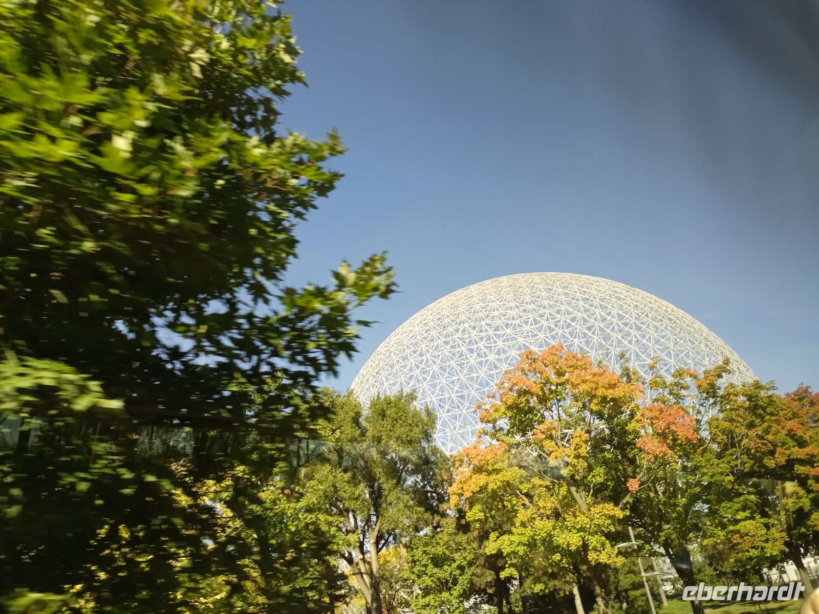 Jetzt geht es über die Brücke „Pont Jacques Cartier“ auf die andere Seite des St. Lorenz Strom, auf die Insel – Ile Sainte-Hèléne. Von hier genießen wir die Ausblicke auf Montreal von der anderen Perspektive über den St. Lorenz Strom. Wir fahren an dem Symbol der Expo 1967 Biosphäre vorbei. Hier auf der Ile Sainte-Hèléne fand die Weltausstellung Expo 1967 statt. Die Expo 67 war eine der erfolgreichsten und meistbesuchten Weltausstellungen des 20. Jahrhunderts und stand unter dem offiziellen Motto „Man and His World“. Die Expo 1967 gilt als ein wichtiger Moment in der Geschichte Montréals und Kanadas insgesamt. Sie trug zur internationalen Anerkennung der Stadt als Kultur- und Technologiezentrum bei. Von dem Expo Gelände ist heute nur das USA Pavillon „Die Biosphäre“ erhalten, in der heute das Umweltmuseum angesiedelt ist.