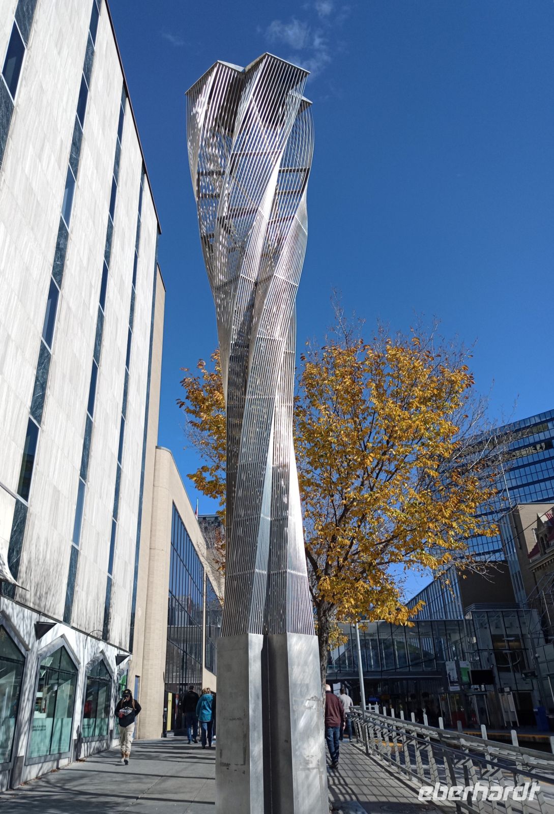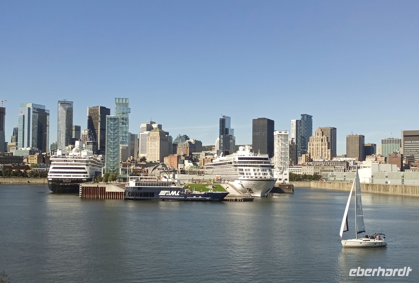 Über die Brücke Pont de la Concorde kehren wir an den Hafen in die Stadt zurück – vorbei an modernen Gebäuden und dem Messegelände kommen wir in die Nähe der Place d'Armes - des Herzstücks von Montreal.