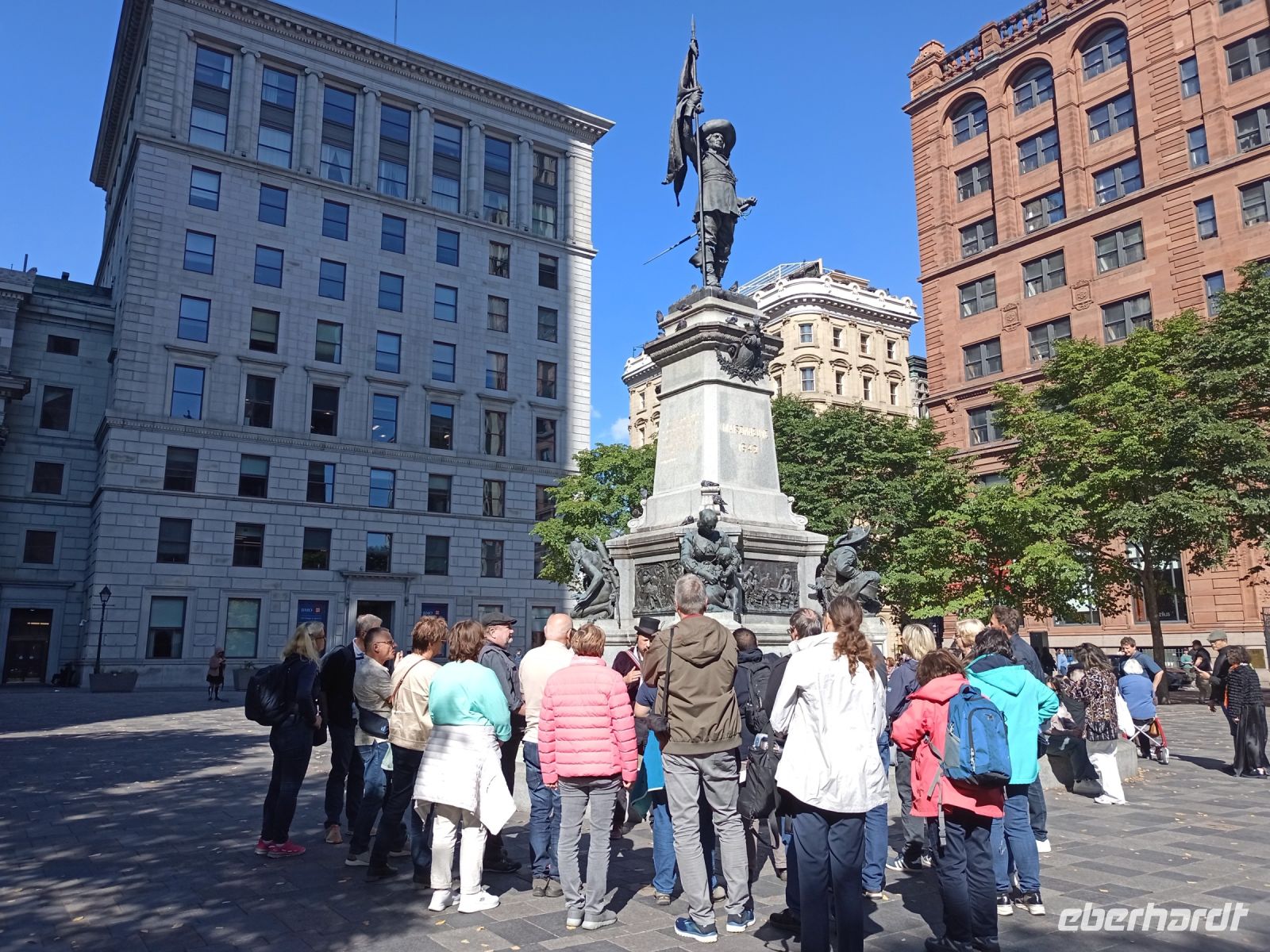 Das Monument in der Mitte des Place d'Armes wurde zu Ehren von Paul de Chomedey, Sieur de Maisonneuve, errichtet, der als Gründer der Stadt Montréal gilt. Maisonneuve war ein französischer Offizier und Gouverneur, der 1642 die Stadt gründete. Er spielte eine zentrale Rolle in den frühen Siedlungsbemühungen Neufrankreichs. An der Stelle verabschieden wir uns von unseren Stadtführer Louis, der uns unter anderem auch mit seiner humorvollen Art durch seine Stadt geführt hat.