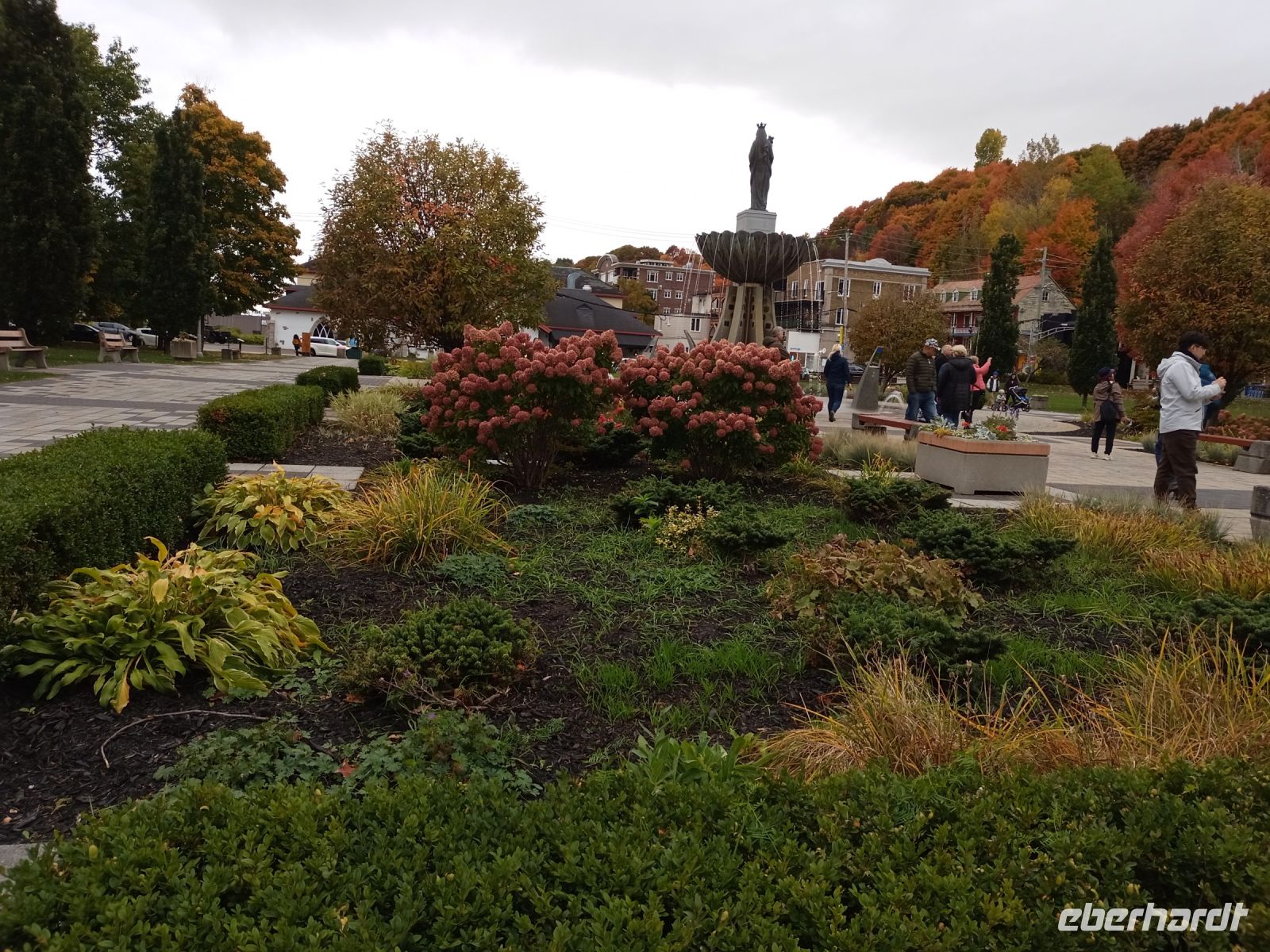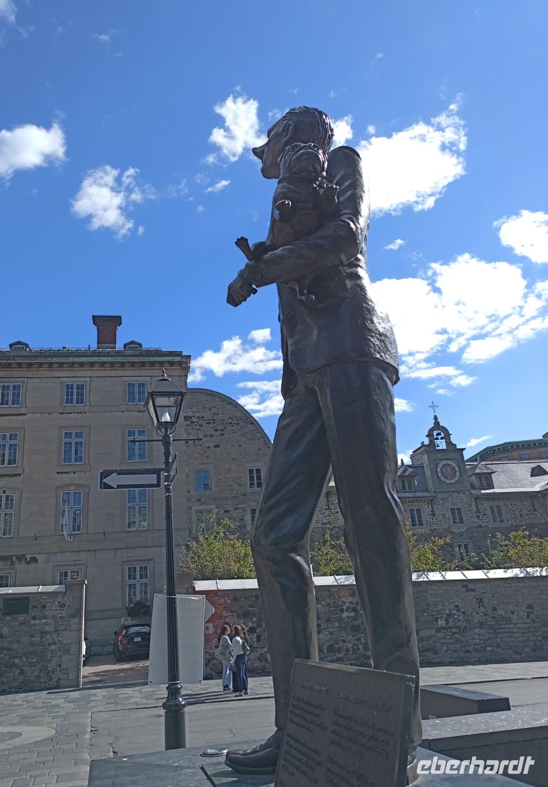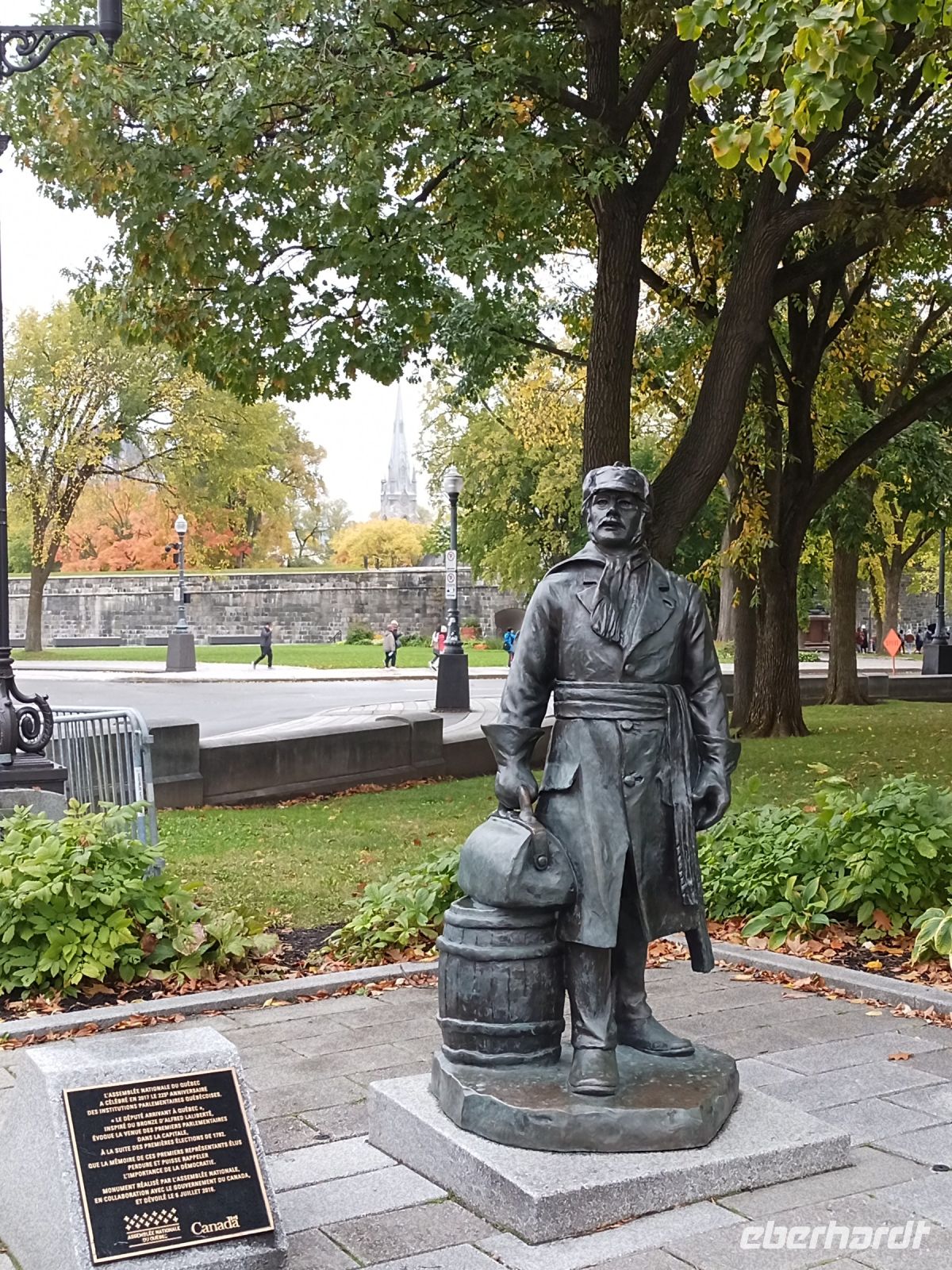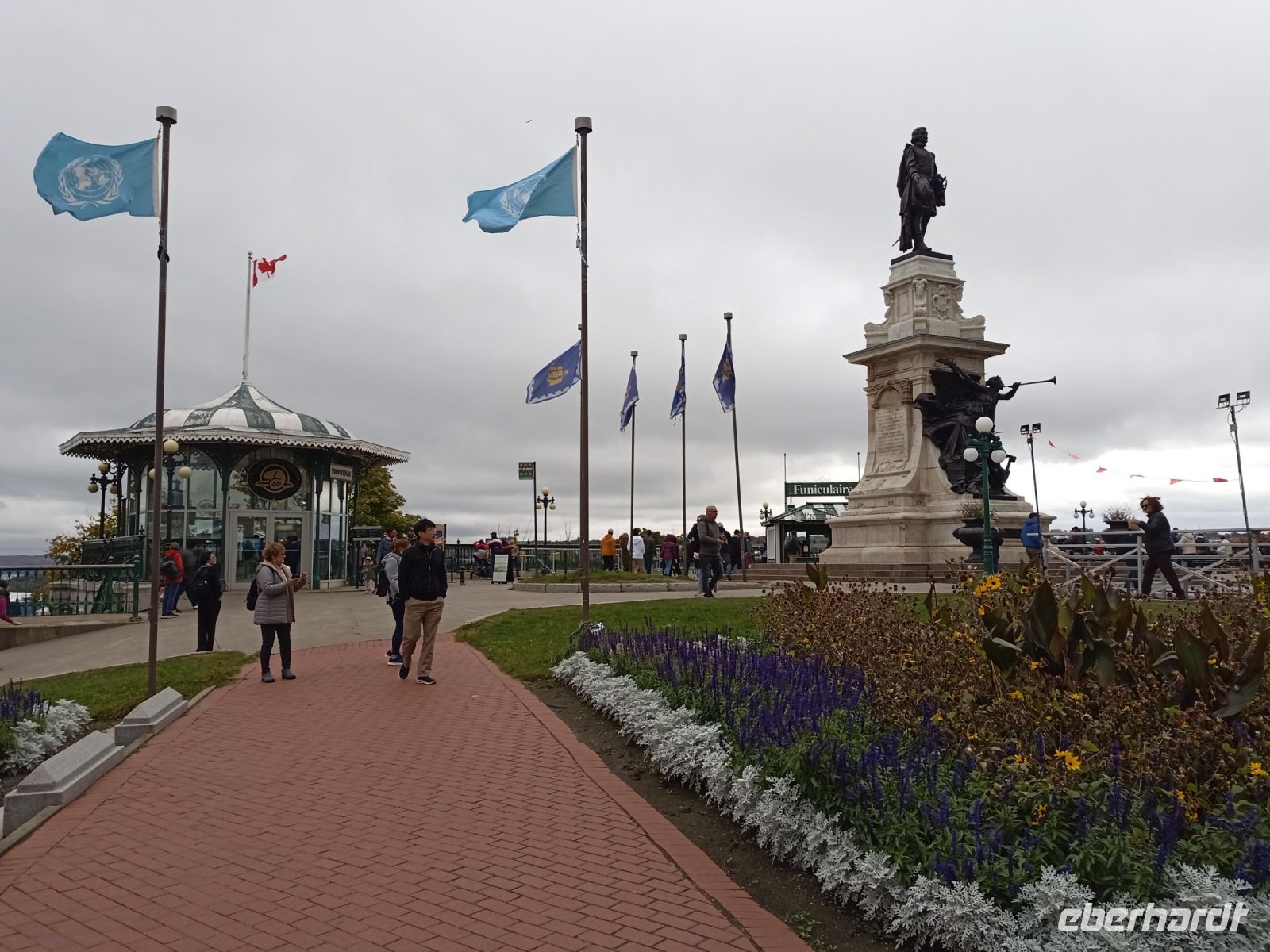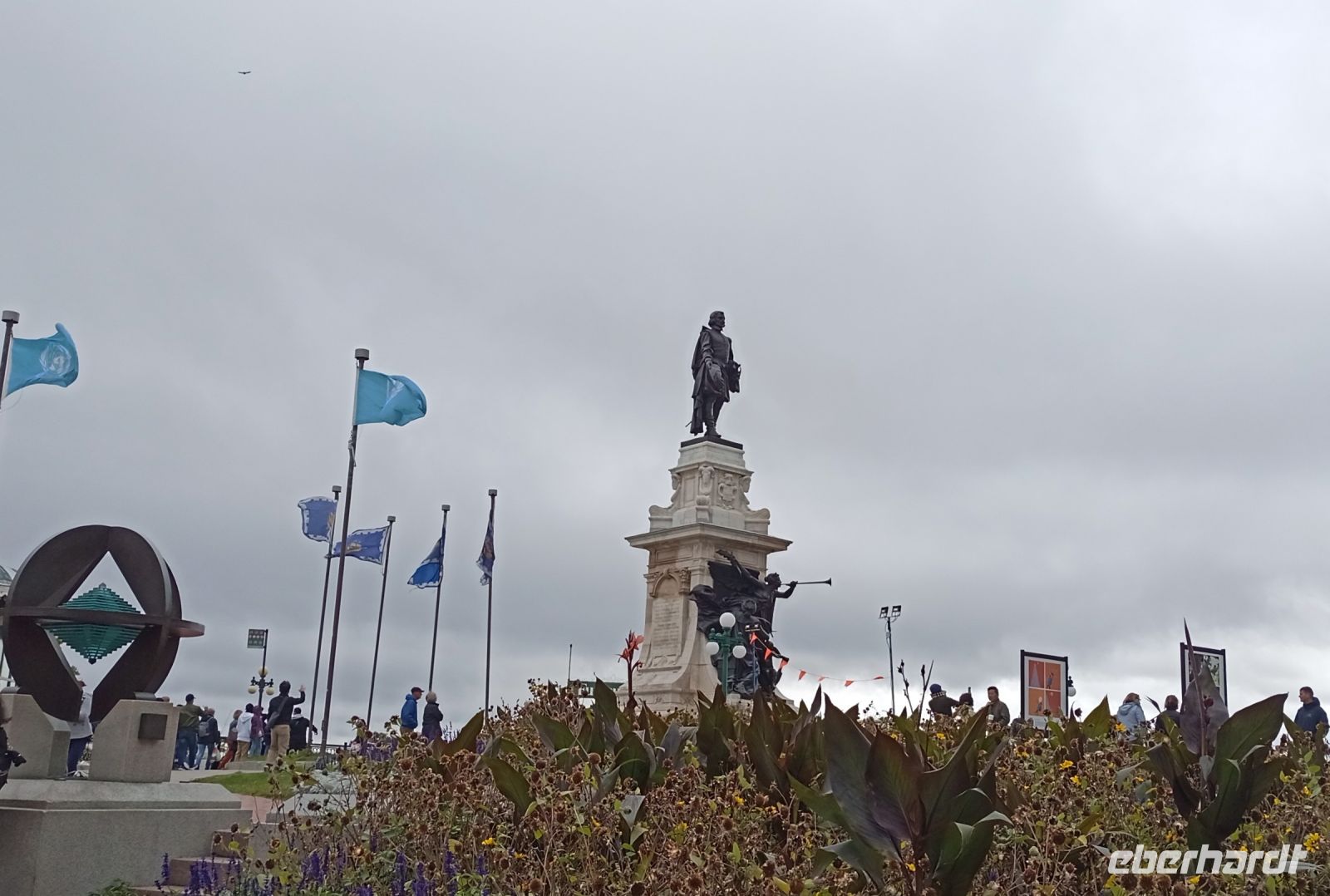 Hier auf der Promenade steht auch das markante Denkmal mit der Statue von Samuel de Champlain, dem Gründer der Stadt. Hier noch kurz zur Geschichte der Stadt, was uns später noch ausführlicher unsere Reiseleiterin Marion in Bus erzählte: Samuel de Champlain, war ein französischer Entdecker, Kartograph und Kolonisator und gründete im Jahr 1608 die Stadt Québec. Es war zu der Zeit ein wichtiger Handels- und Militärstützpunkt für das französische Neufrankreich. Er arbeitete mit den indigenen Völkern zusammen, vor allem im Pelzhandel.